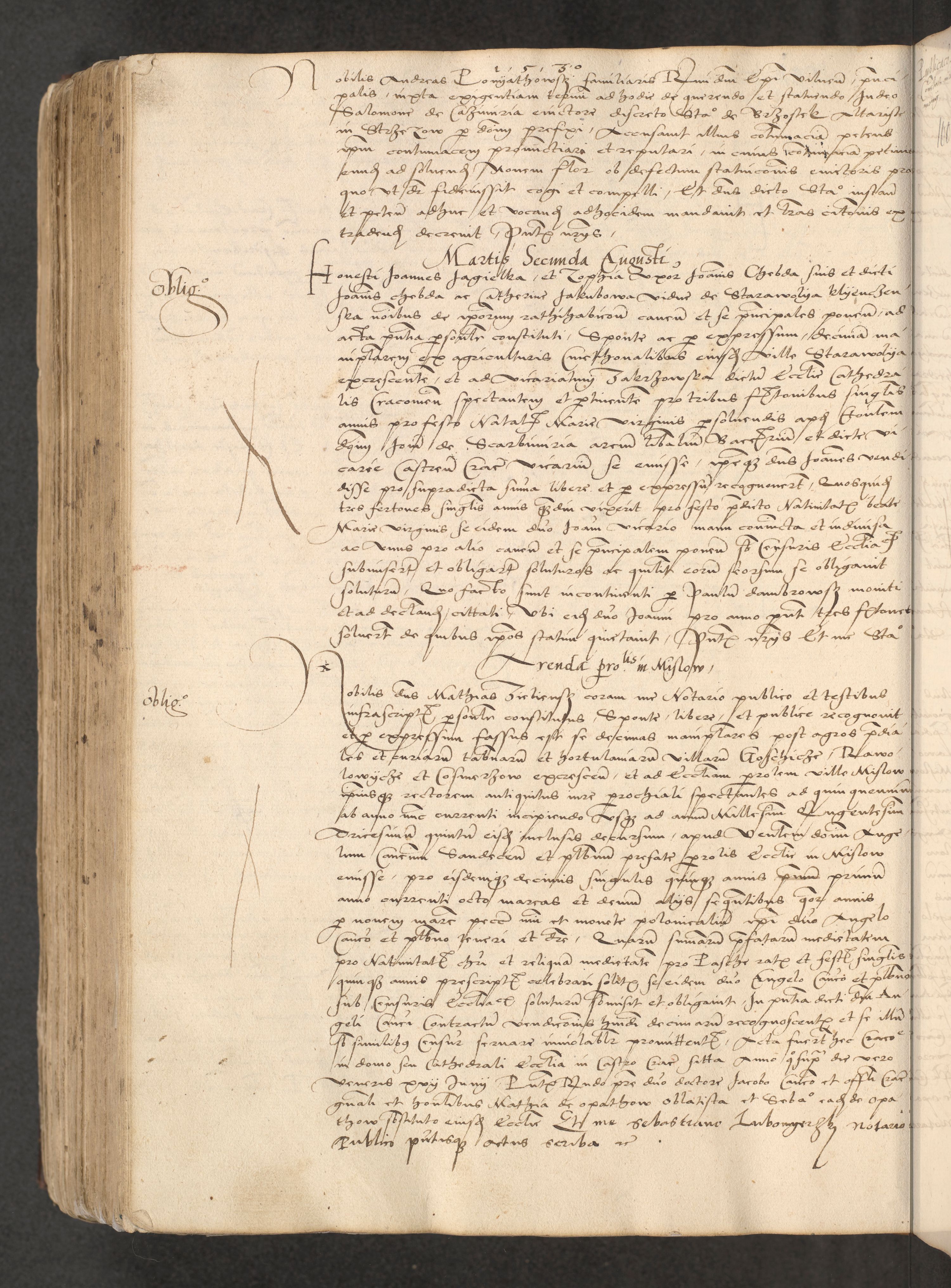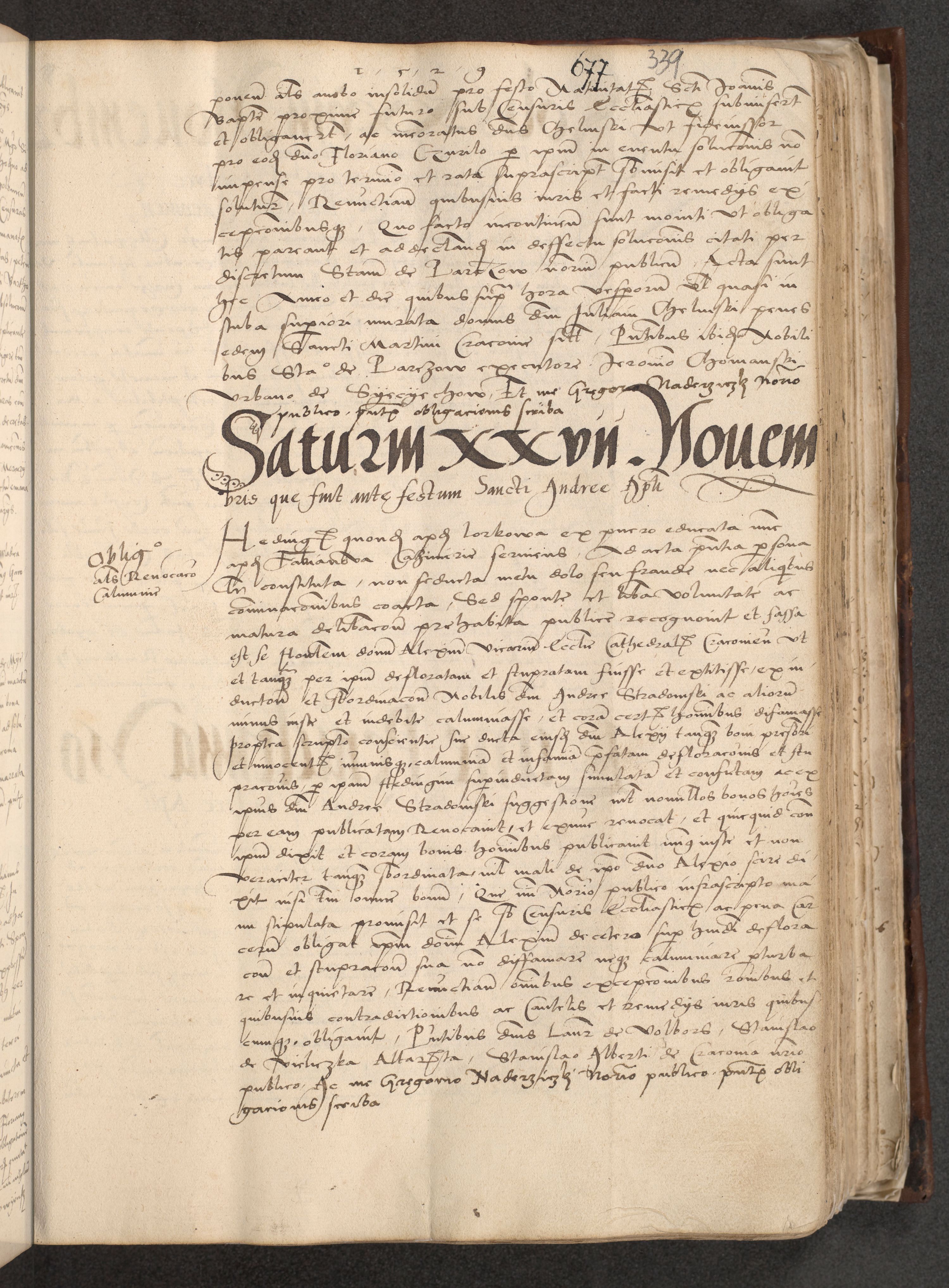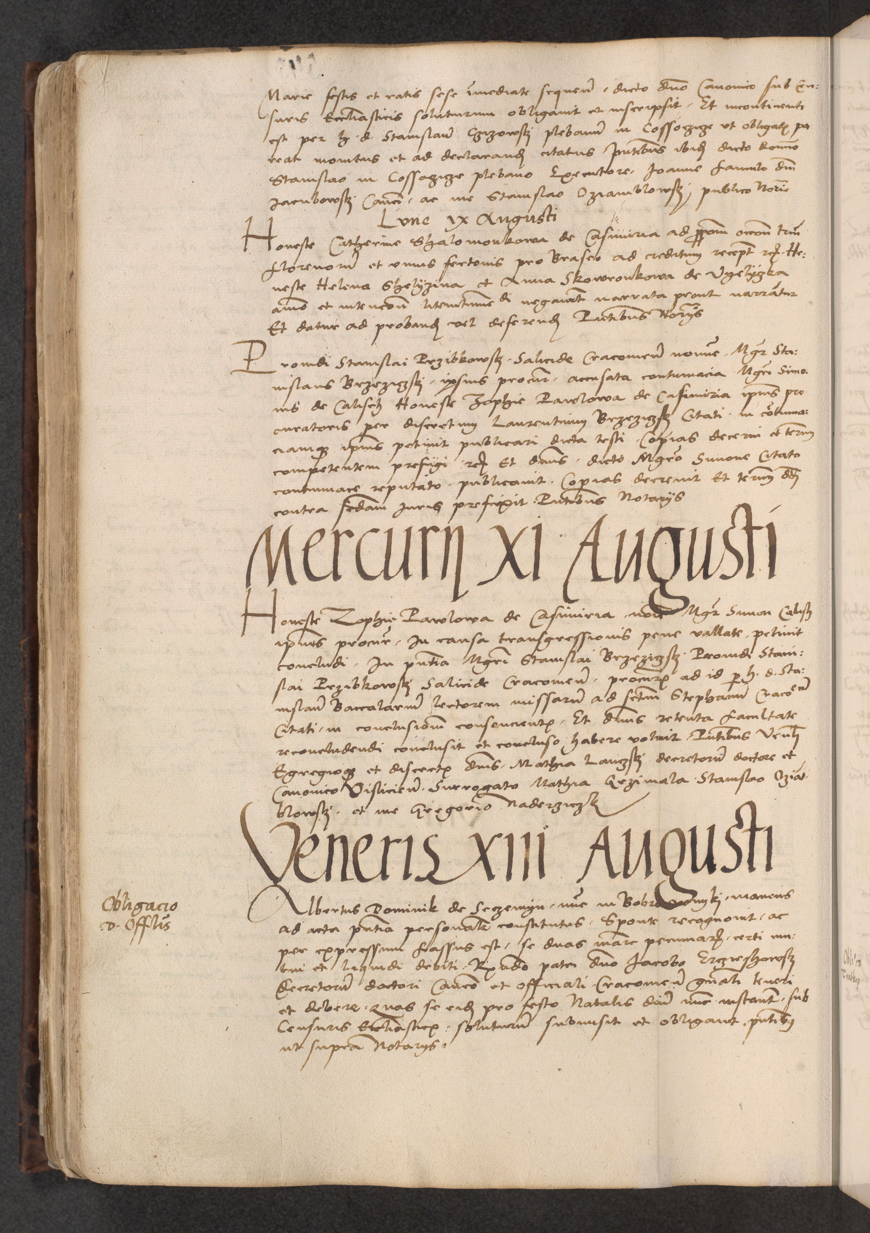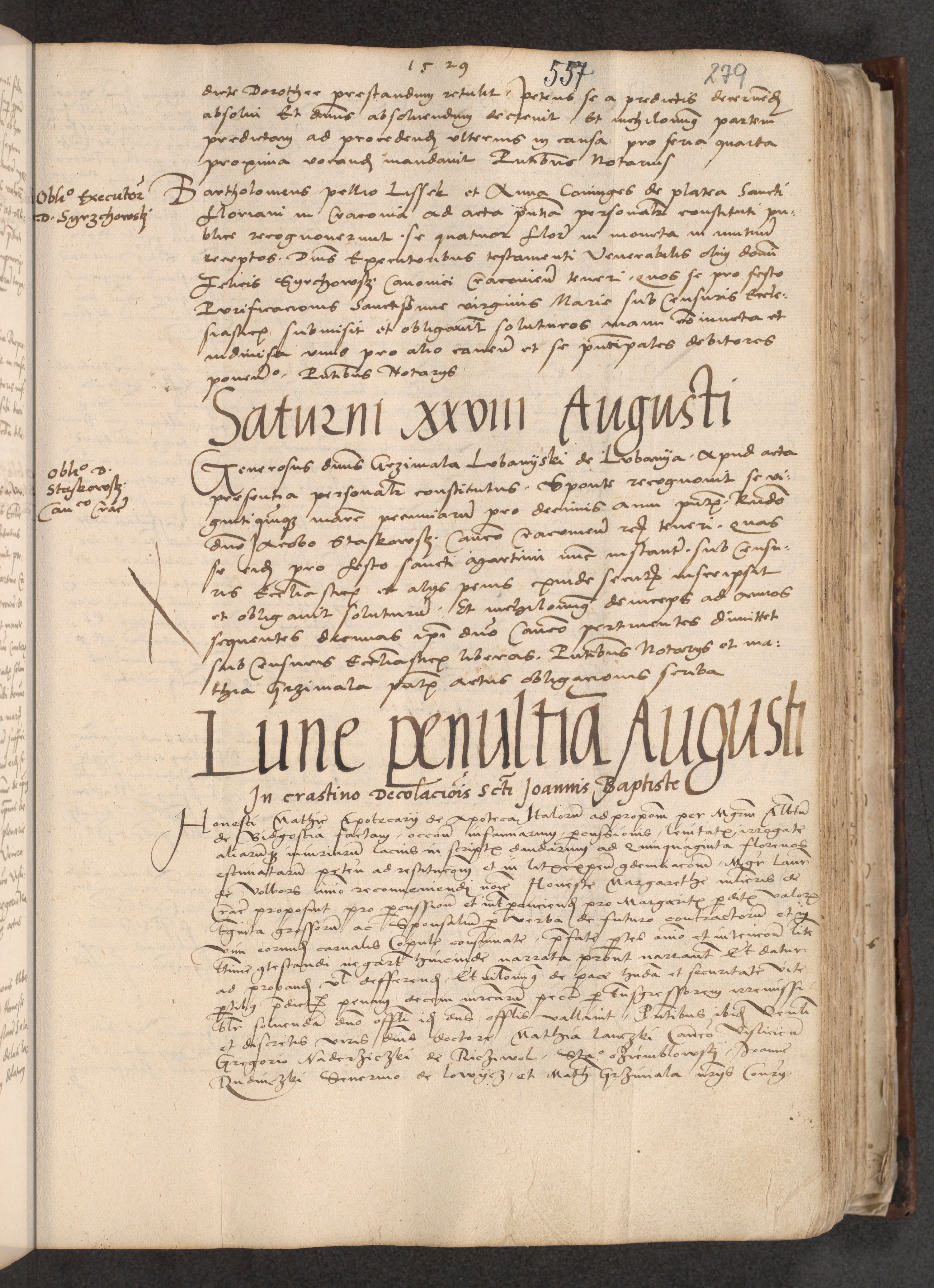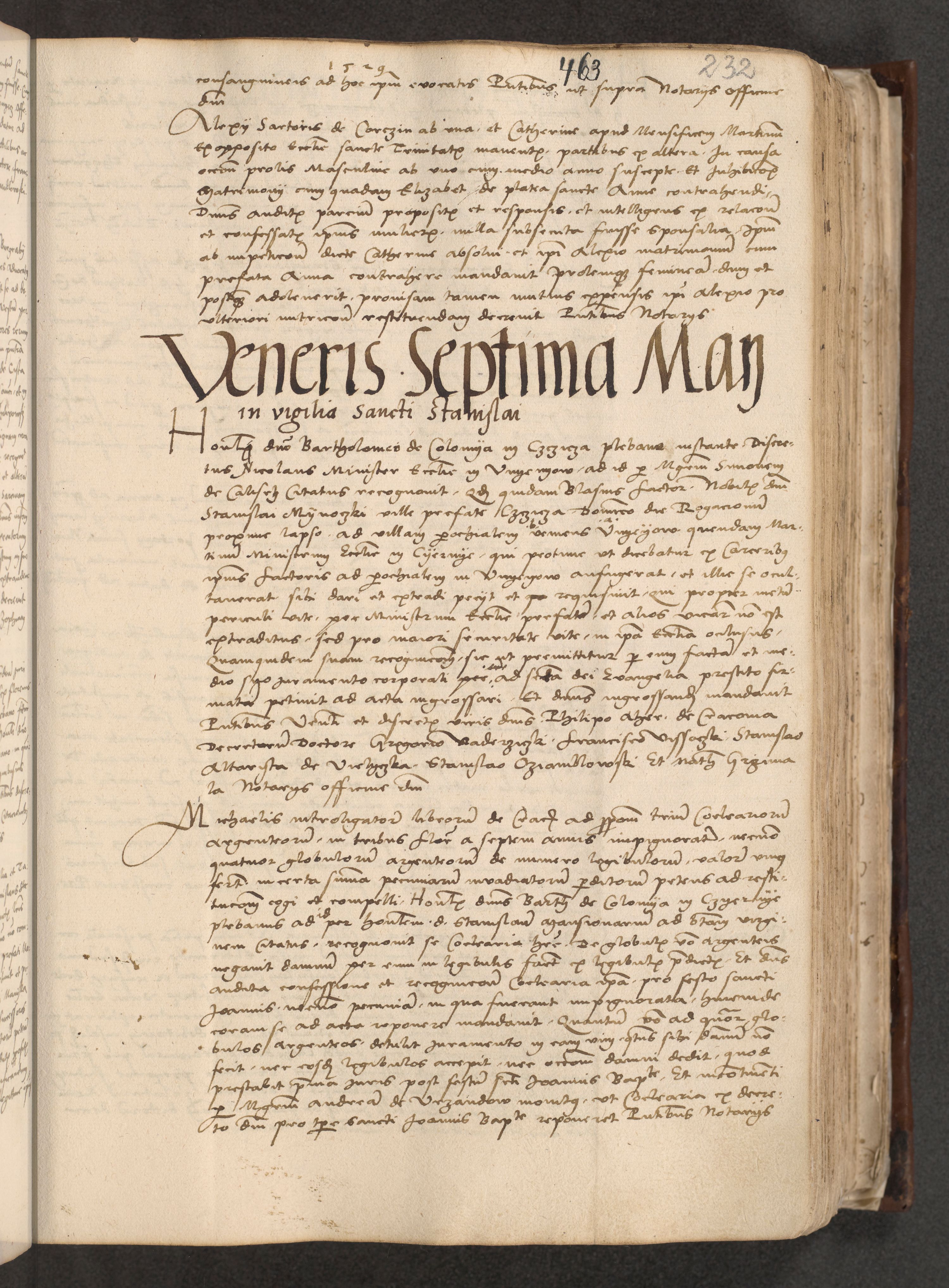 INRI. Acta actorum, obligacionum et sentenciarum tam interlocutoriarum quam diffinitivarum coram reverendo patre ac egregio viro domino Jacobo Erciss[o]wski decretorum doctorem, canonico et officiali generali Cracoviensi ad annum Domini 1528, indicionem primam, pontificatus sanctissimi in Christo patris et domini domini Clementis divina probidendcia pape seprtimi, annum quintum, per Stanislaum de Mordi legalem consistorii notarium omine felici inchoantur
