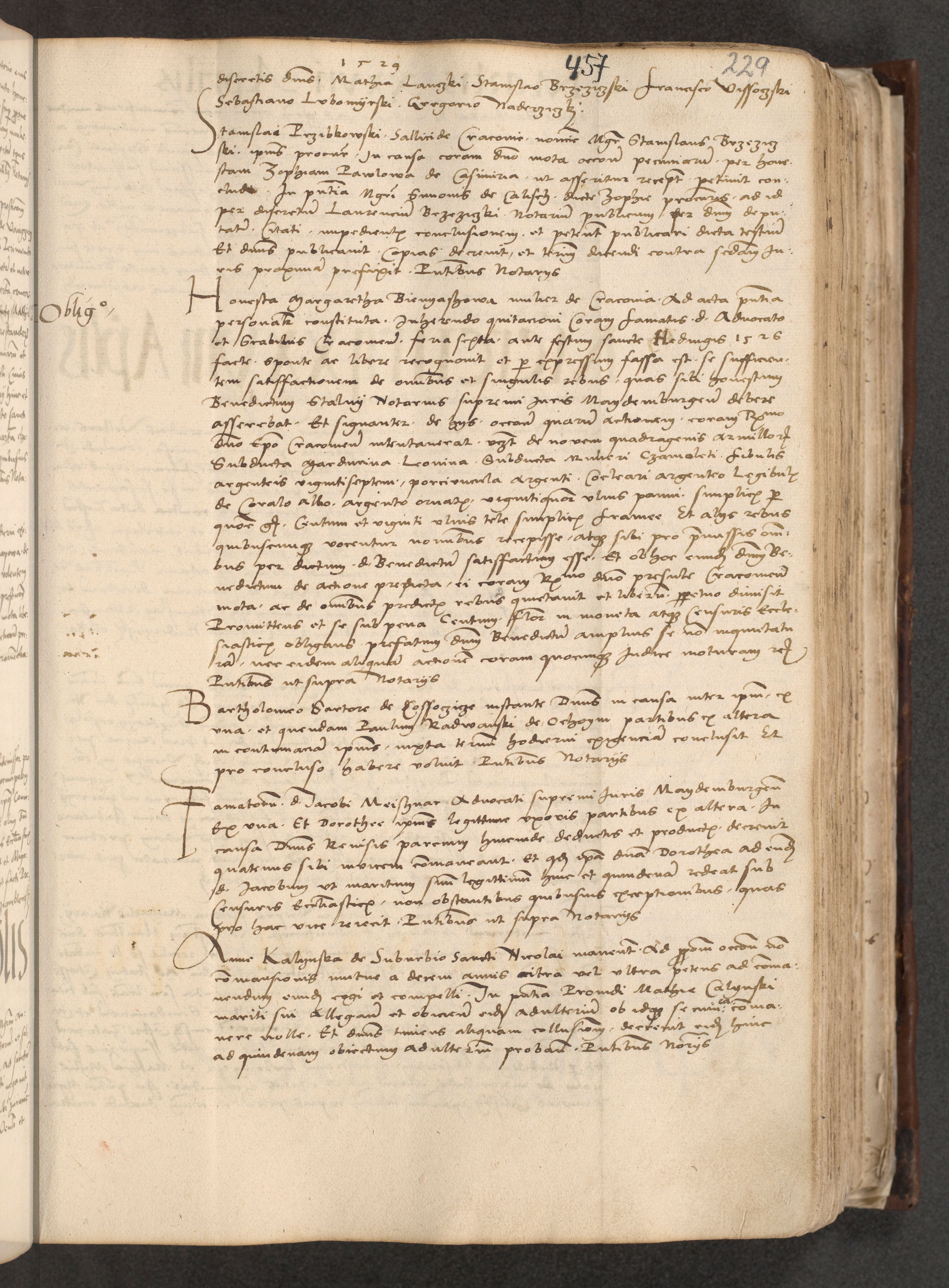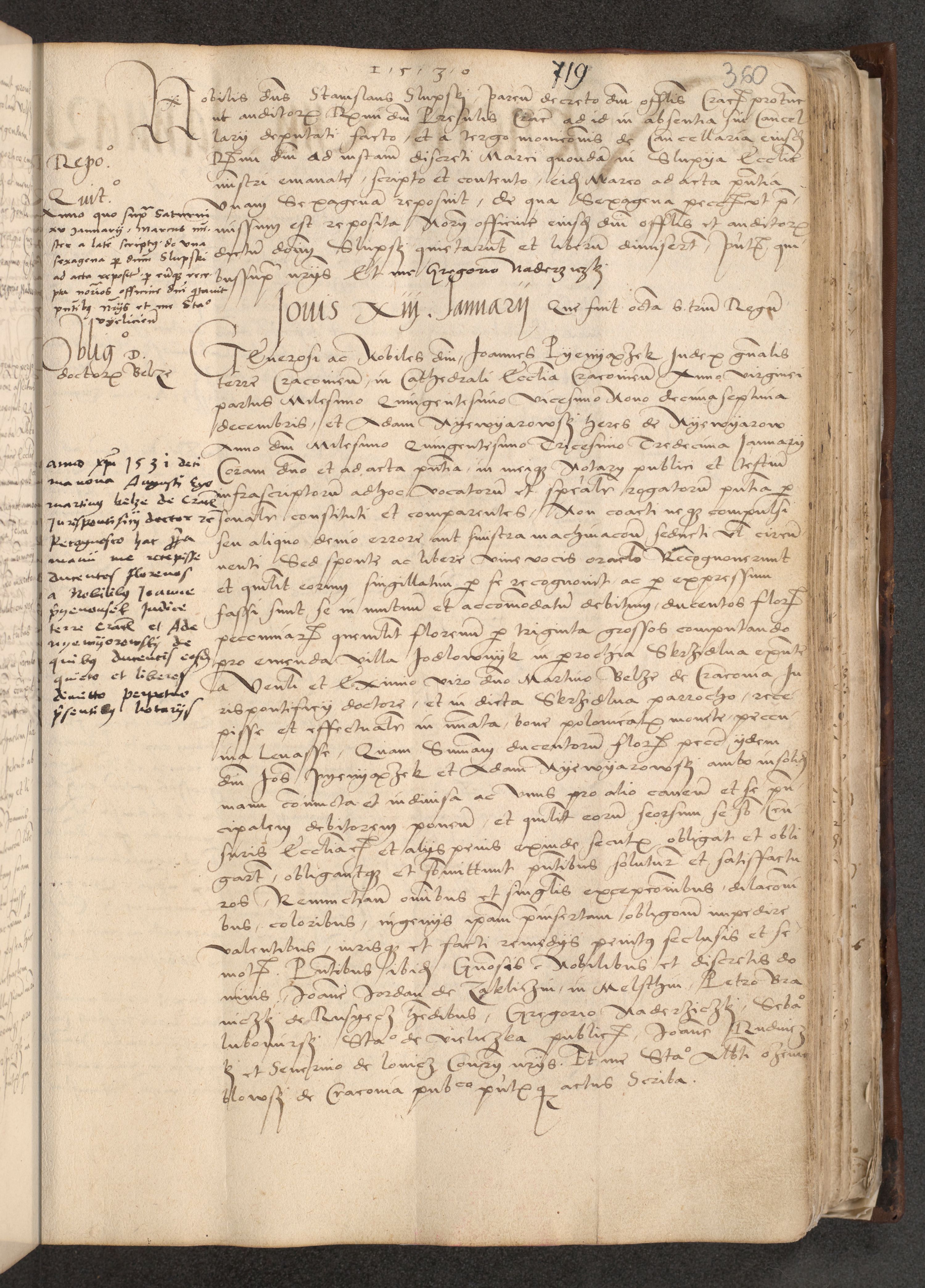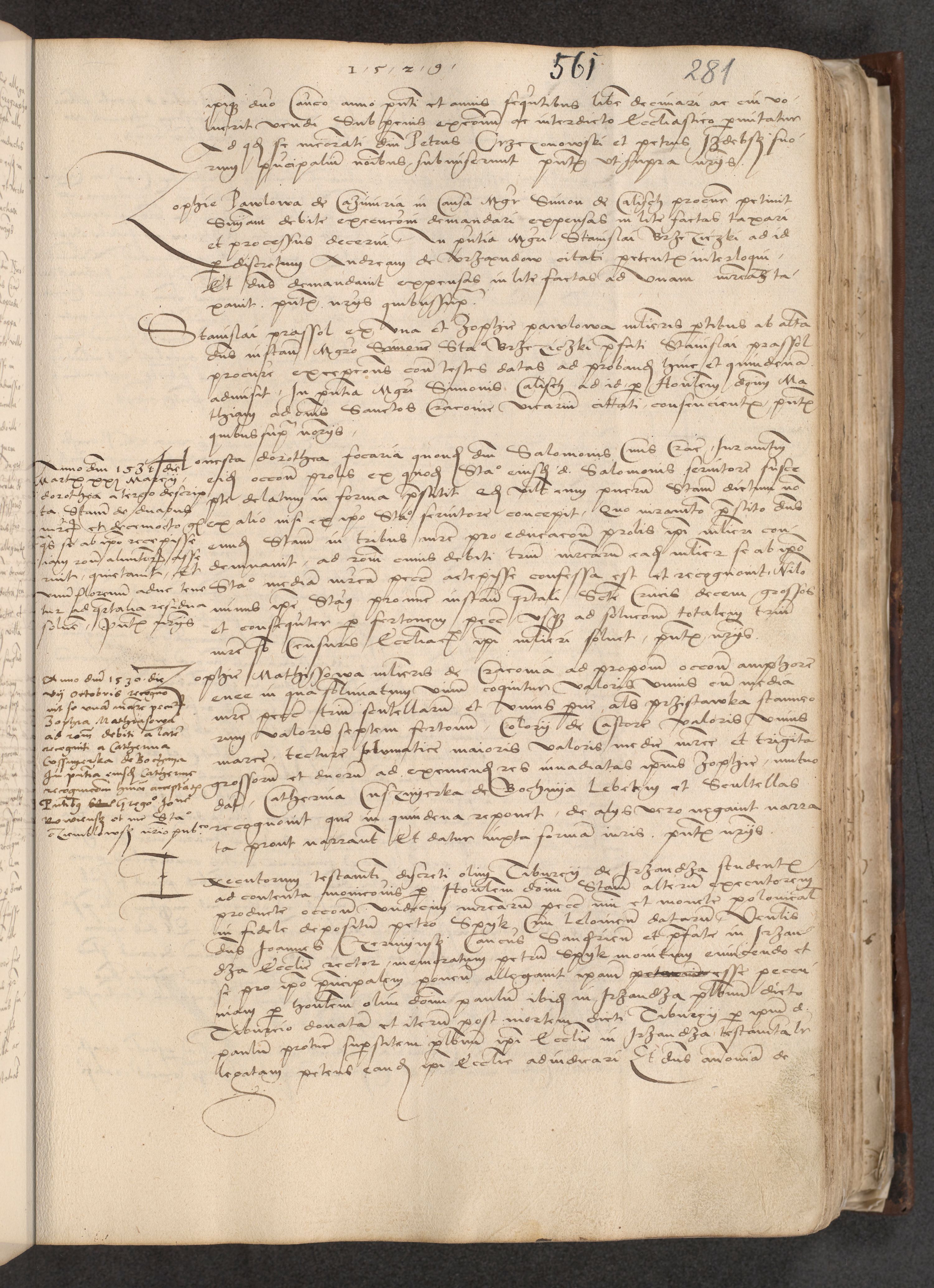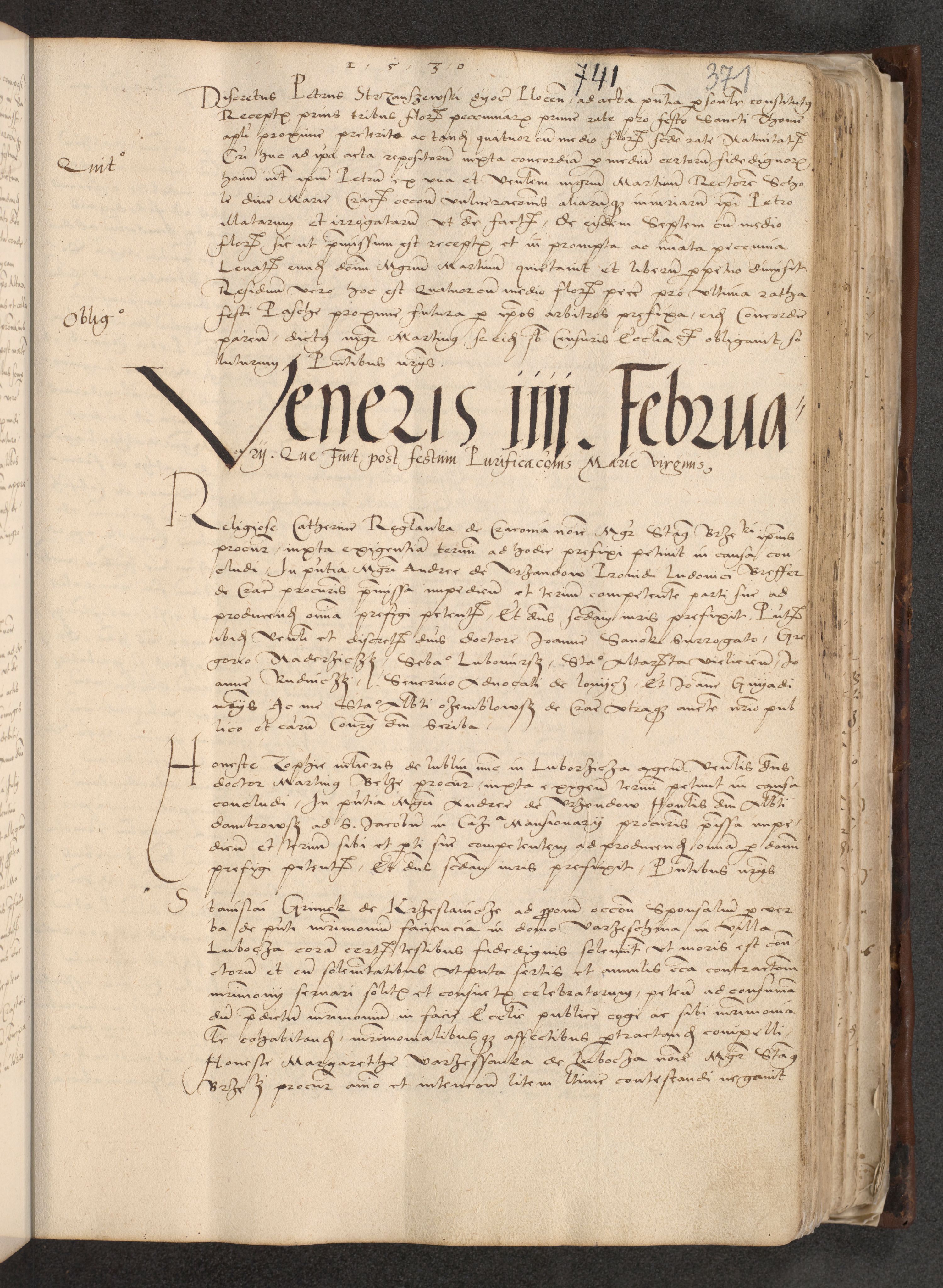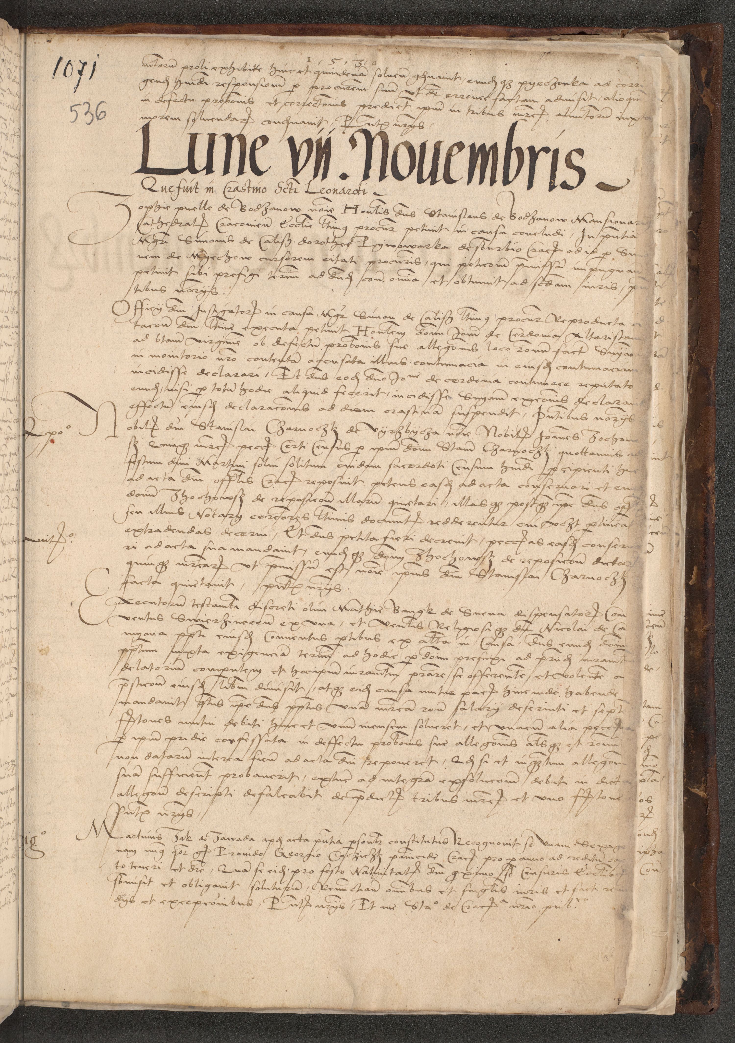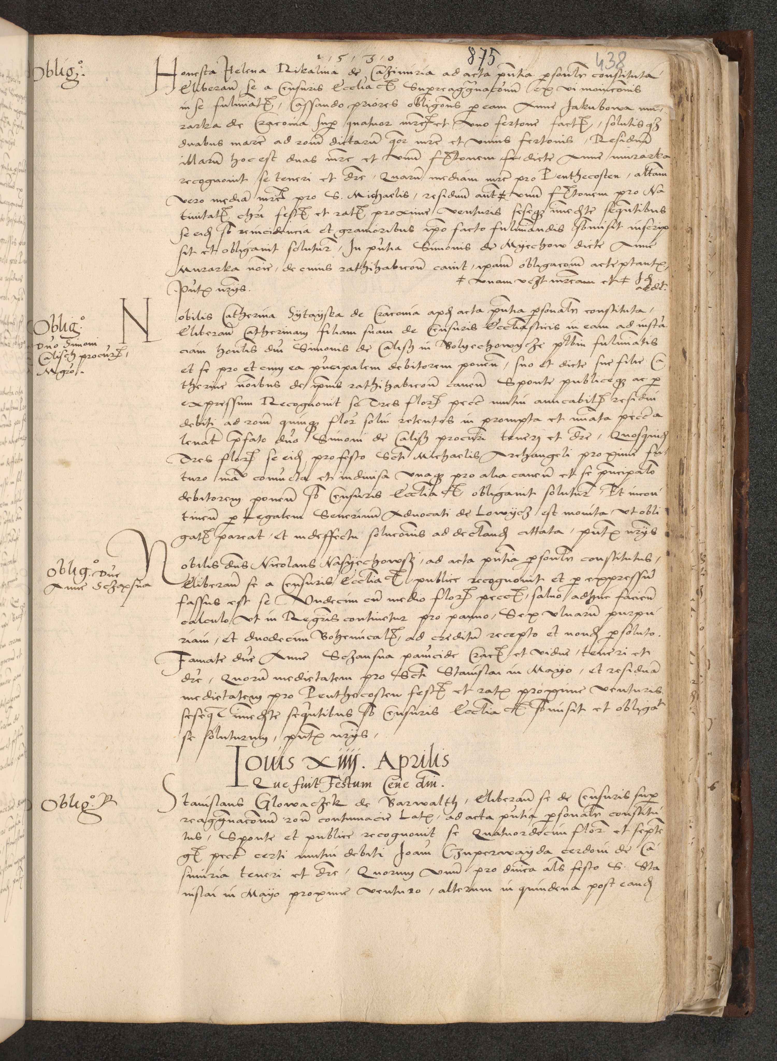 INRI. Acta actorum, obligacionum et sentenciarum tam interlocutoriarum quam diffinitivarum coram reverendo patre ac egregio viro domino Jacobo Erciss[o]wski decretorum doctorem, canonico et officiali generali Cracoviensi ad annum Domini 1528, indicionem primam, pontificatus sanctissimi in Christo patris et domini domini Clementis divina probidendcia pape seprtimi, annum quintum, per Stanislaum de Mordi legalem consistorii notarium omine felici inchoantur