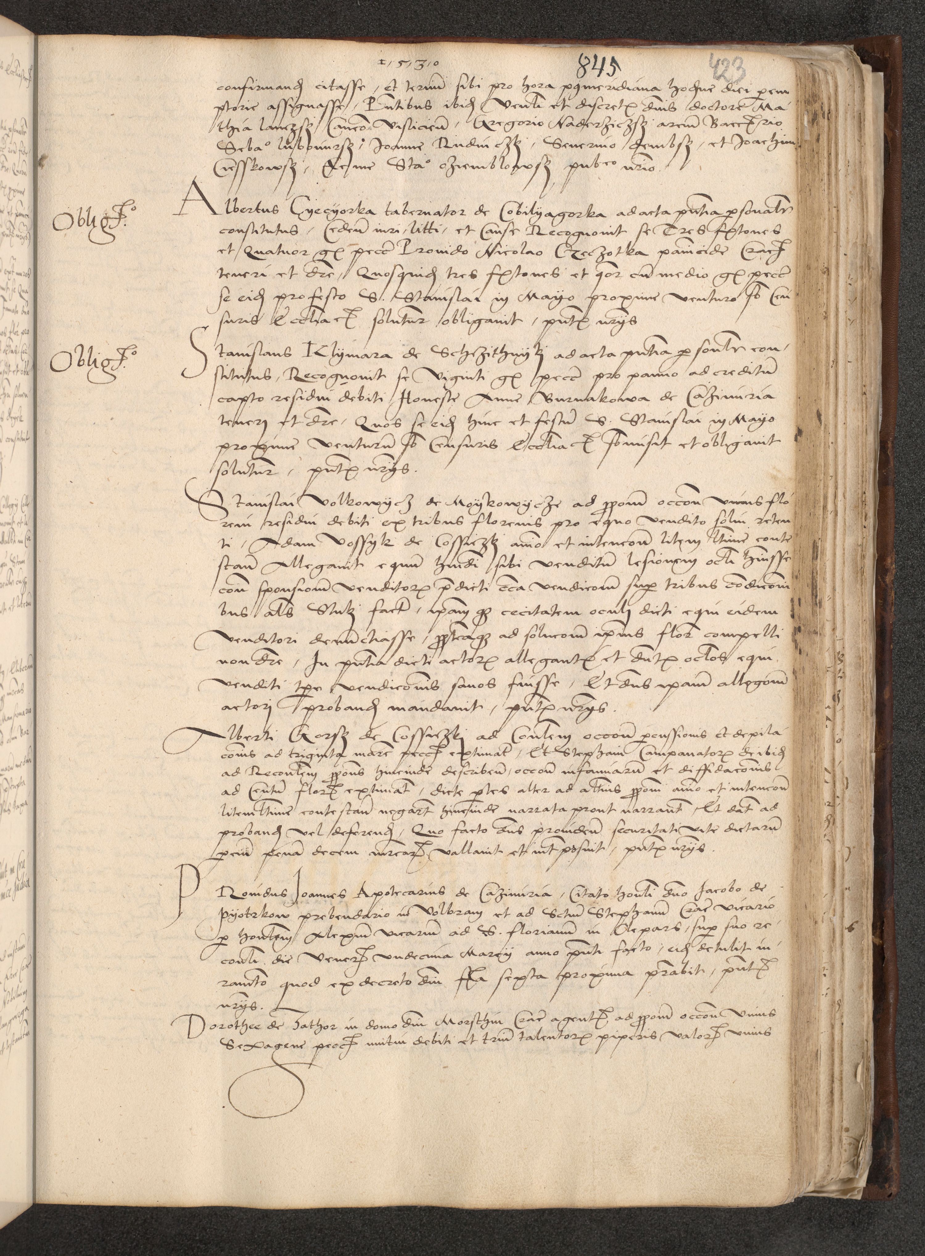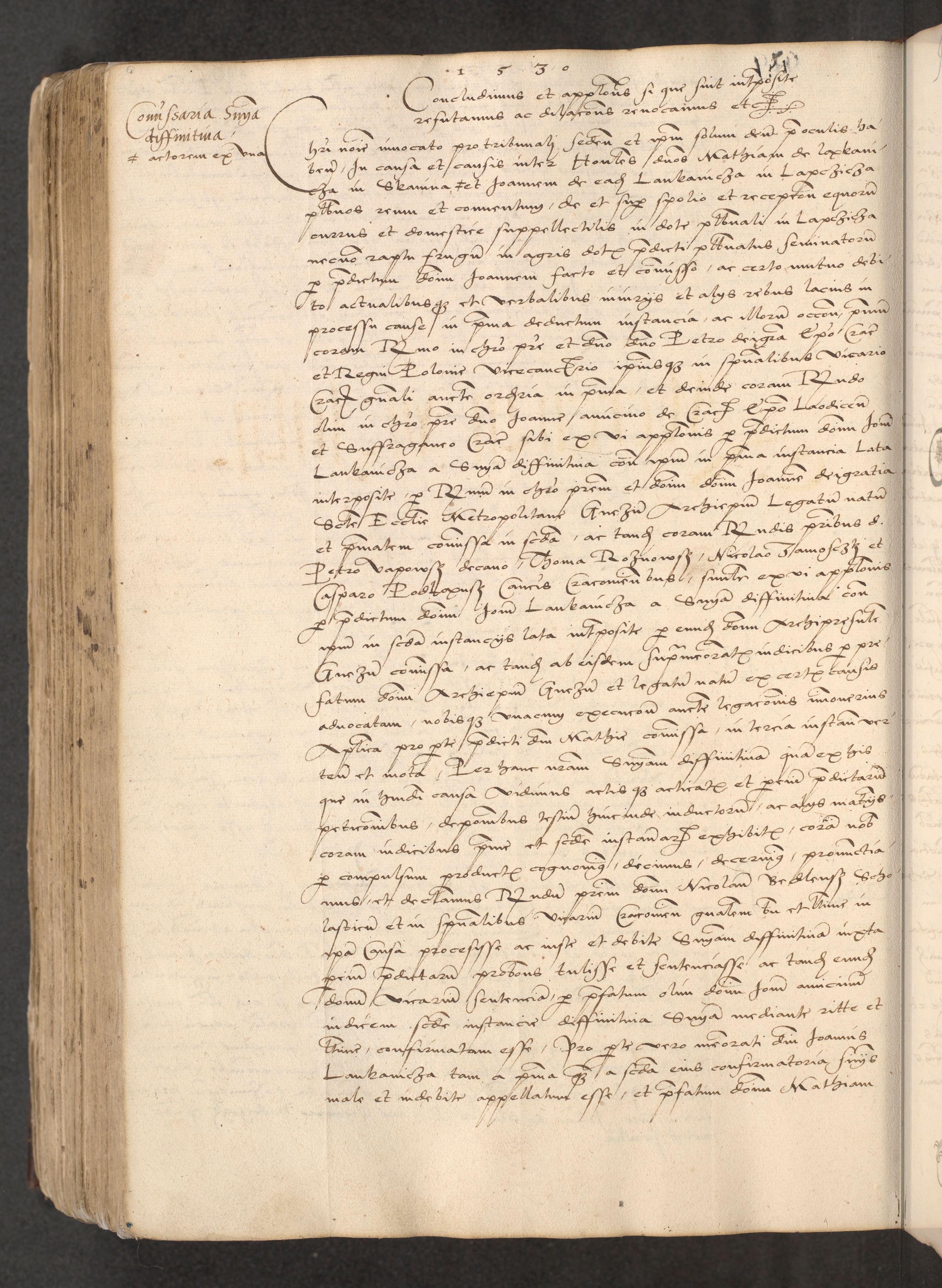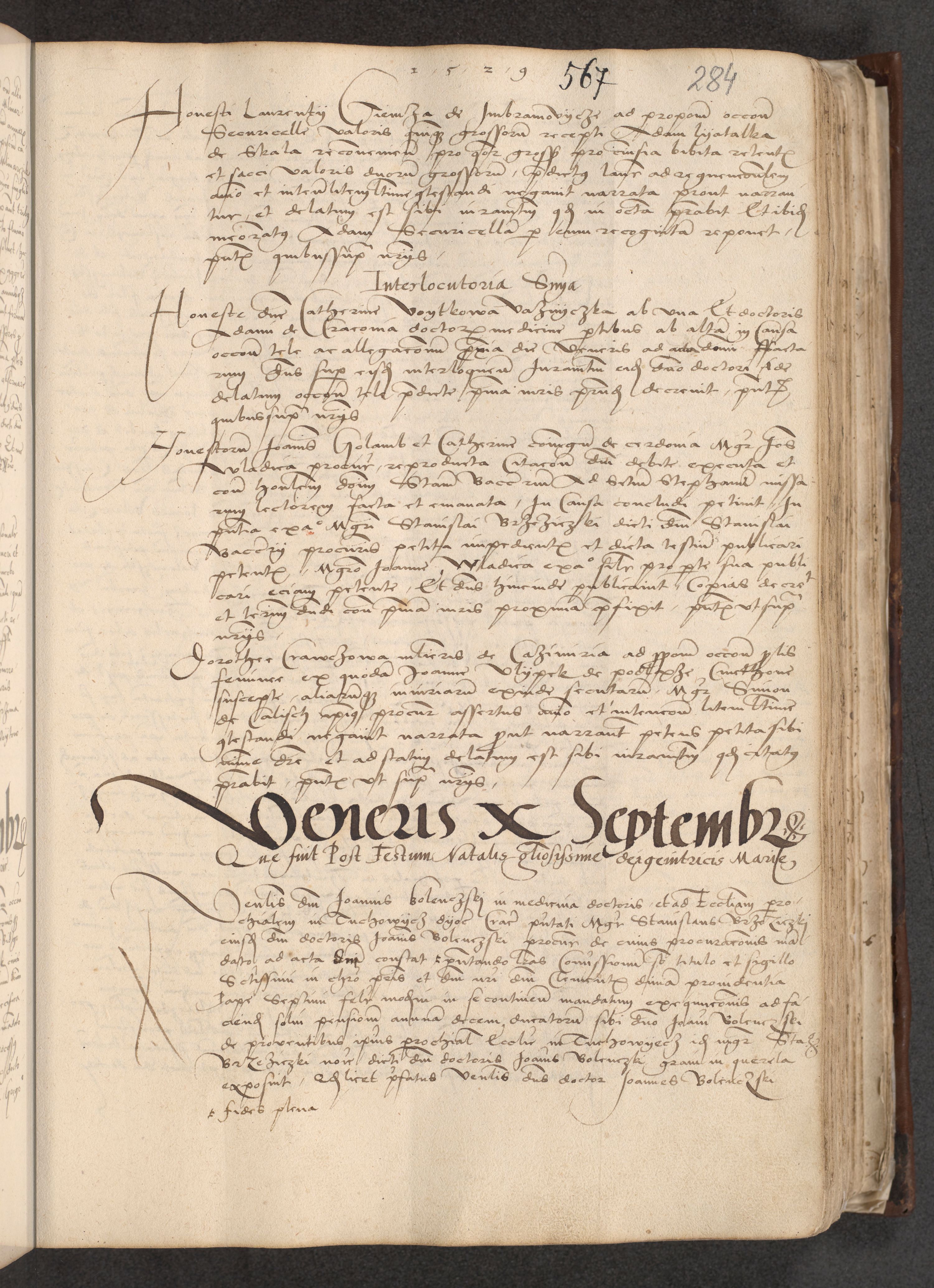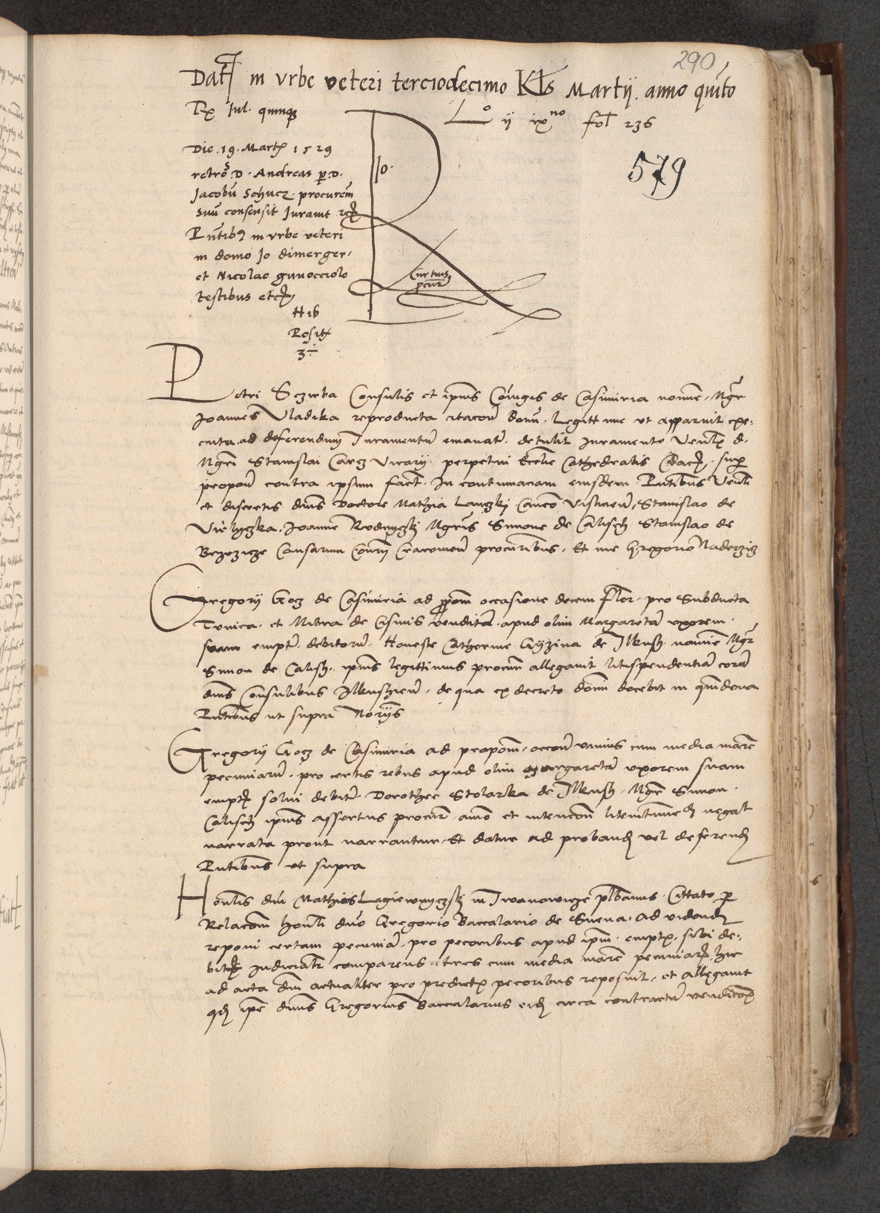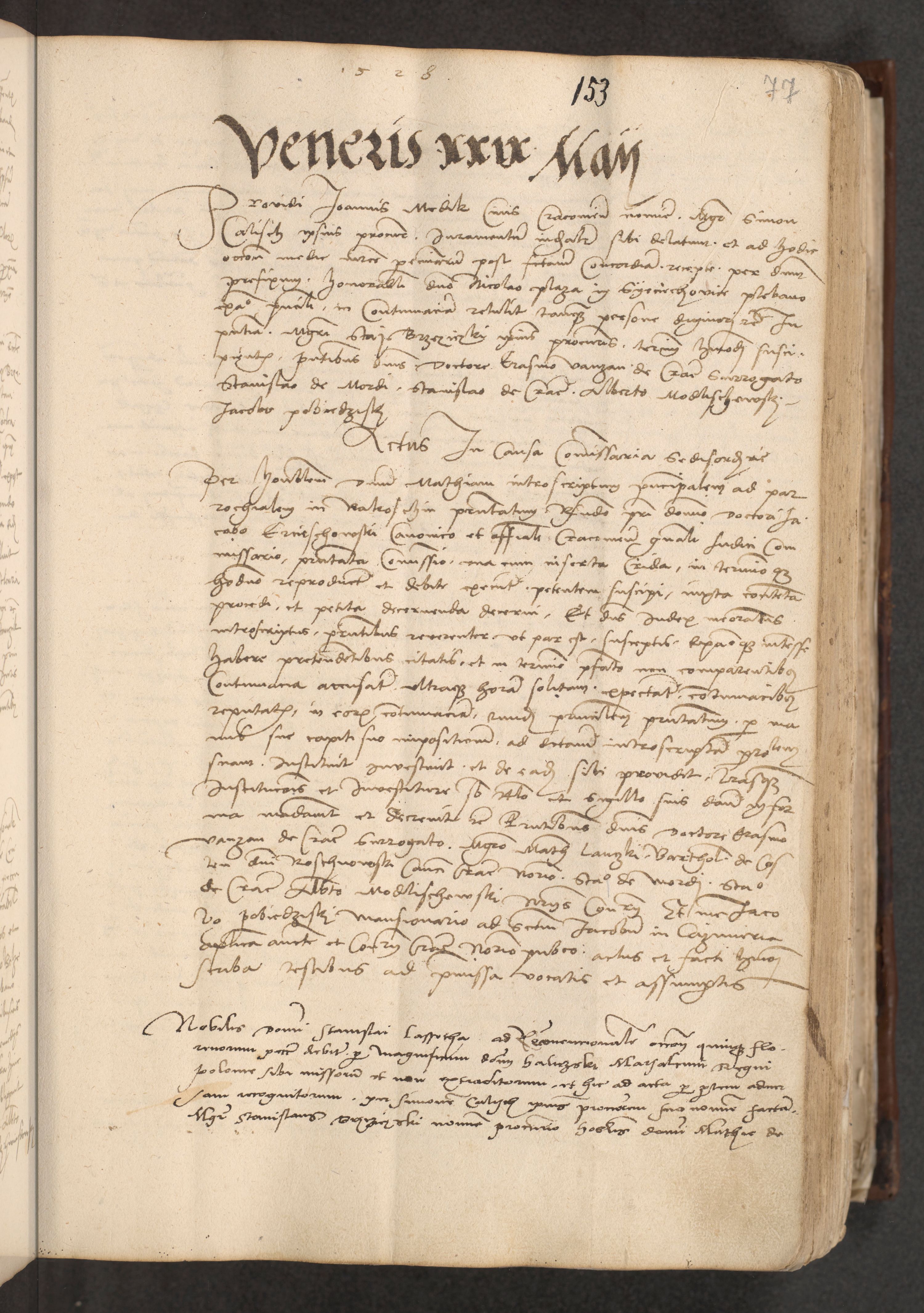 INRI. Acta actorum, obligacionum et sentenciarum tam interlocutoriarum quam diffinitivarum coram reverendo patre ac egregio viro domino Jacobo Erciss[o]wski decretorum doctorem, canonico et officiali generali Cracoviensi ad annum Domini 1528, indicionem primam, pontificatus sanctissimi in Christo patris et domini domini Clementis divina probidendcia pape seprtimi, annum quintum, per Stanislaum de Mordi legalem consistorii notarium omine felici inchoantur
