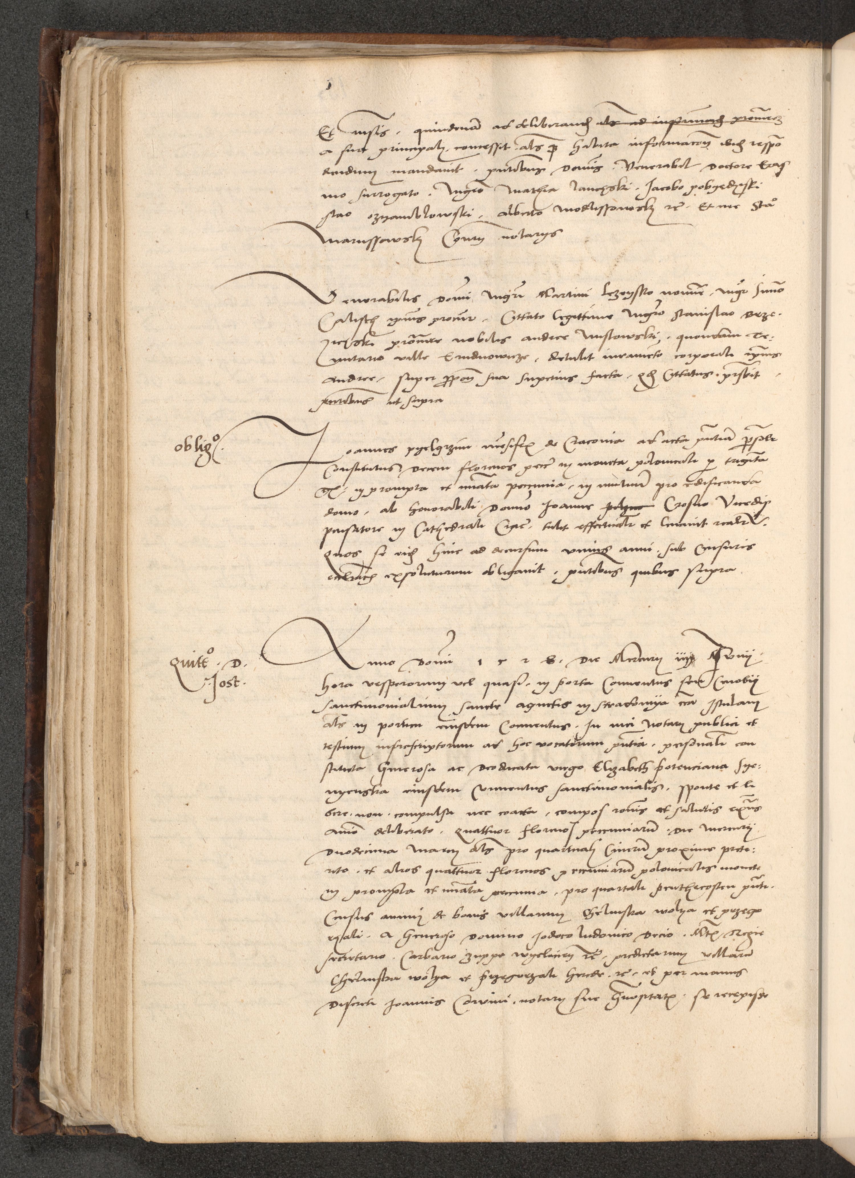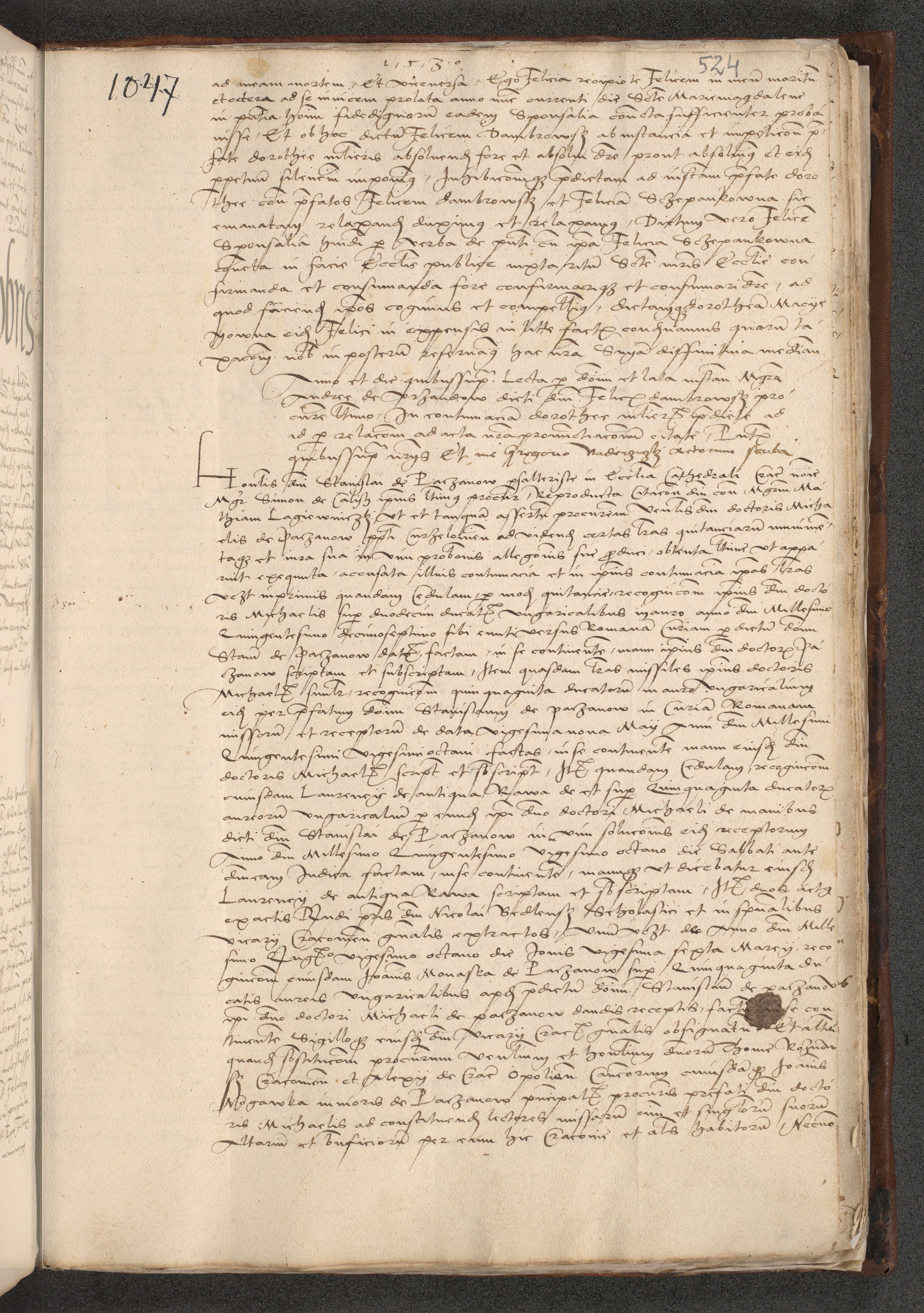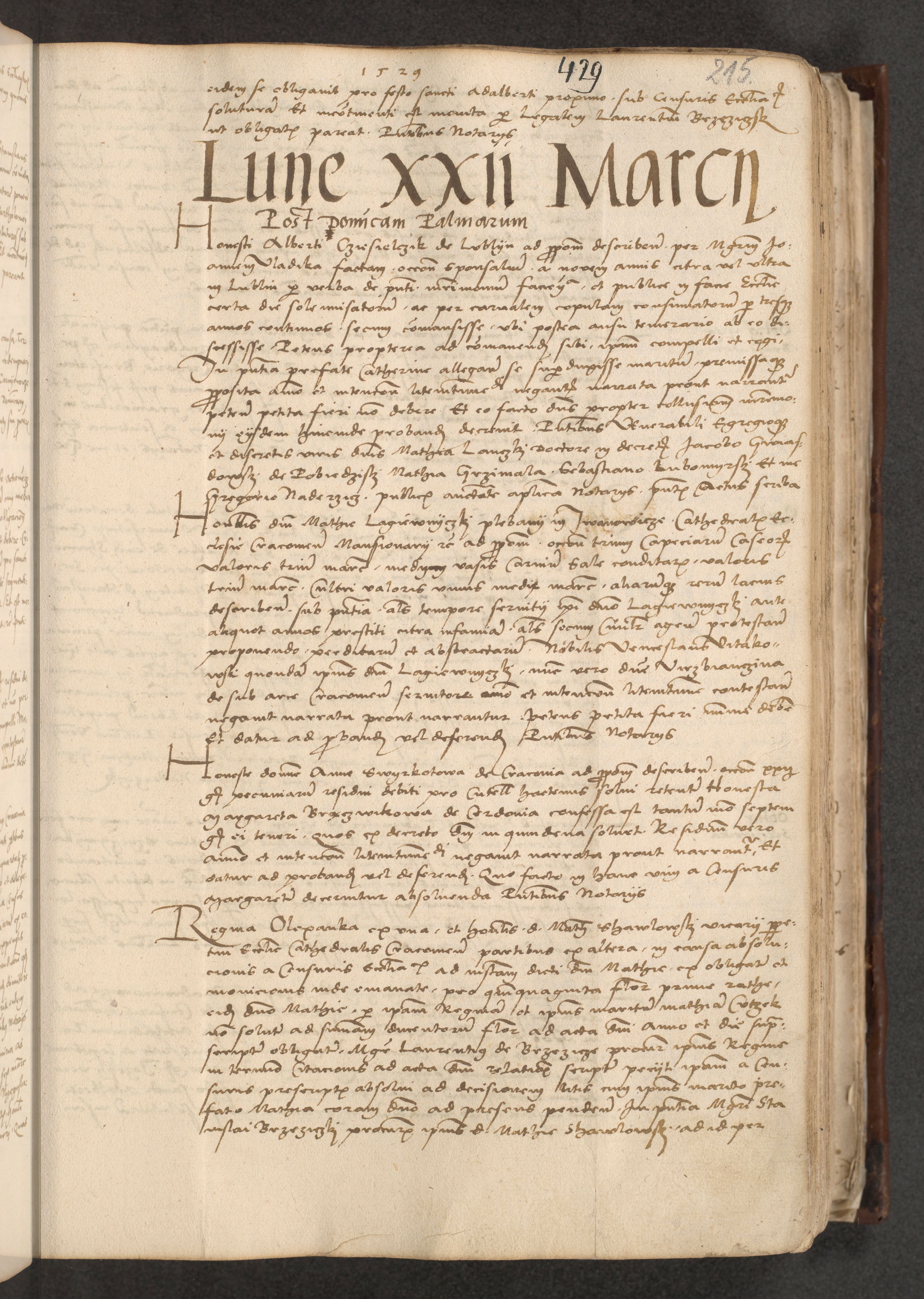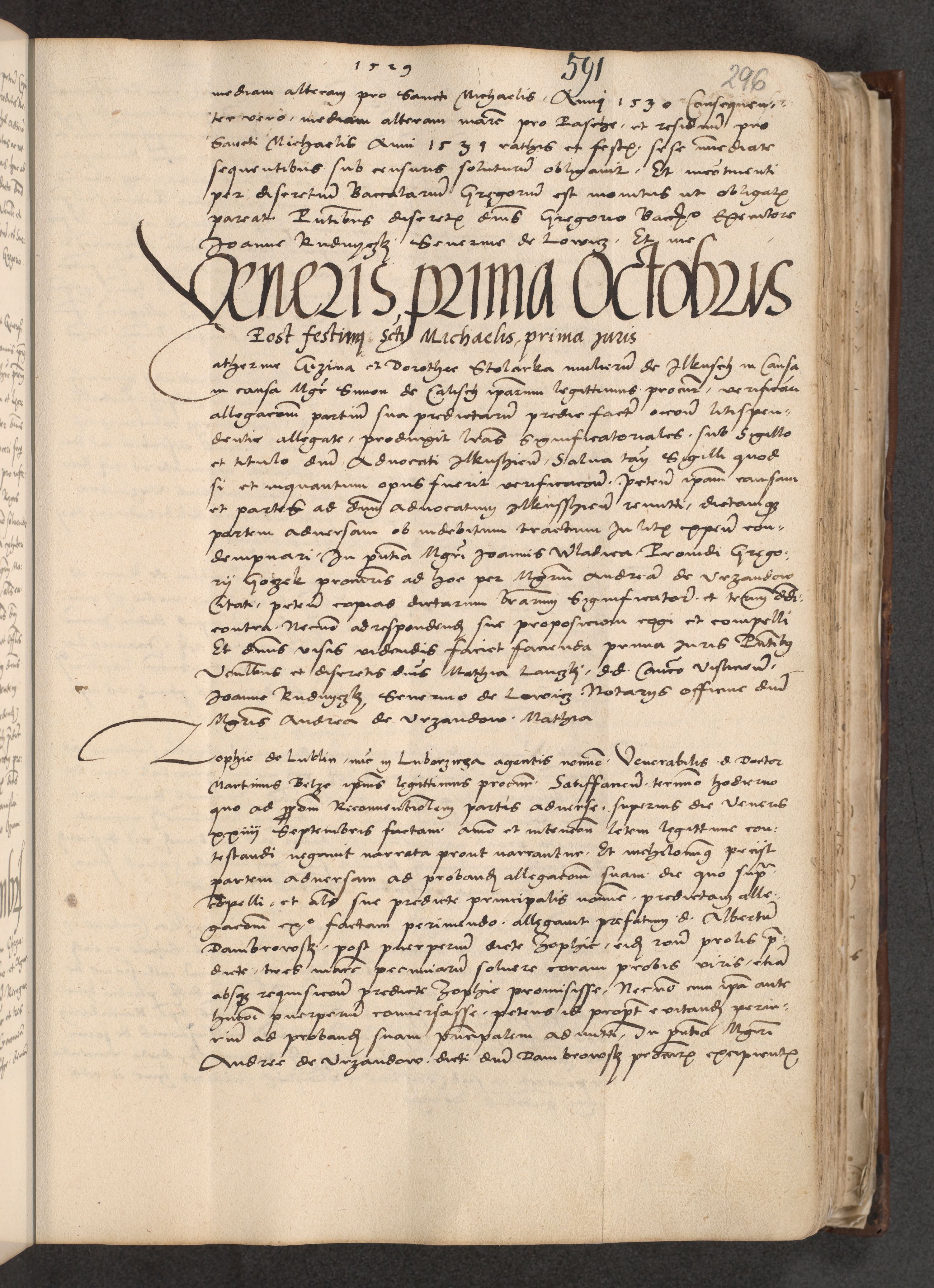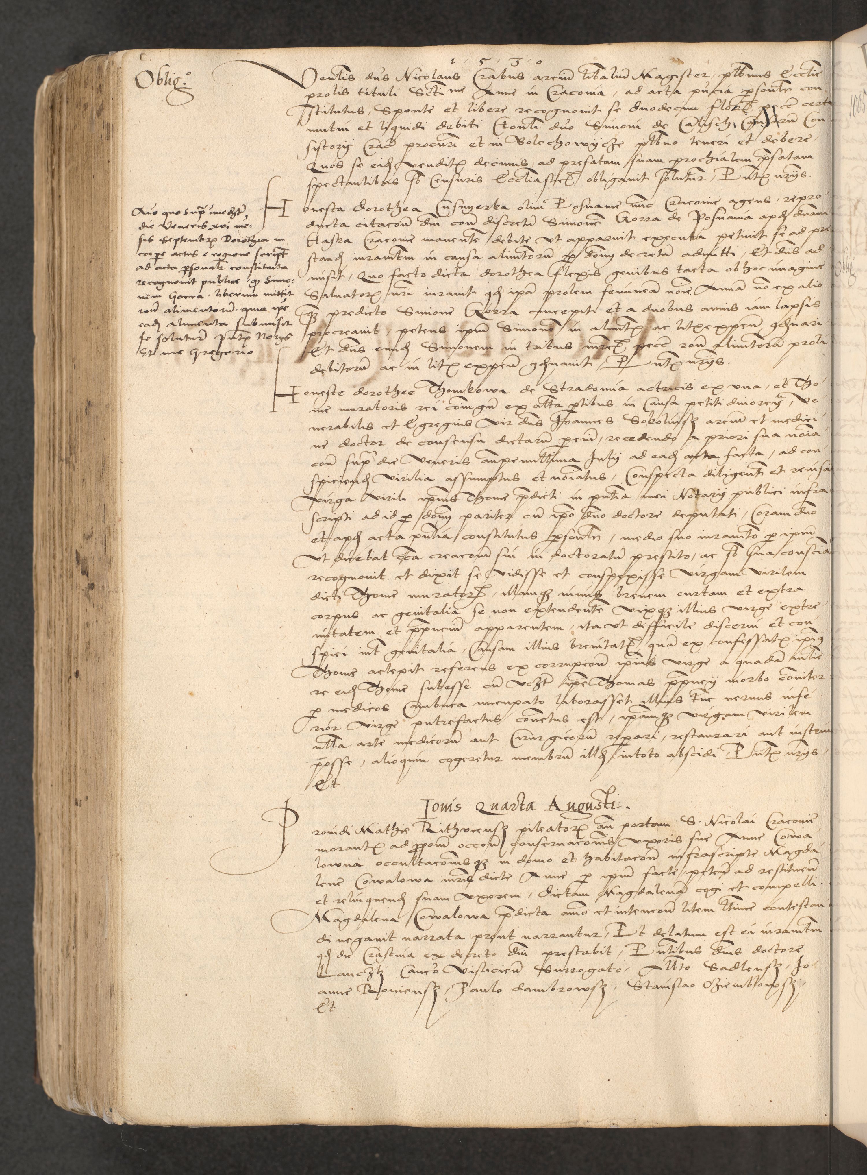 INRI. Acta actorum, obligacionum et sentenciarum tam interlocutoriarum quam diffinitivarum coram reverendo patre ac egregio viro domino Jacobo Erciss[o]wski decretorum doctorem, canonico et officiali generali Cracoviensi ad annum Domini 1528, indicionem primam, pontificatus sanctissimi in Christo patris et domini domini Clementis divina probidendcia pape seprtimi, annum quintum, per Stanislaum de Mordi legalem consistorii notarium omine felici inchoantur