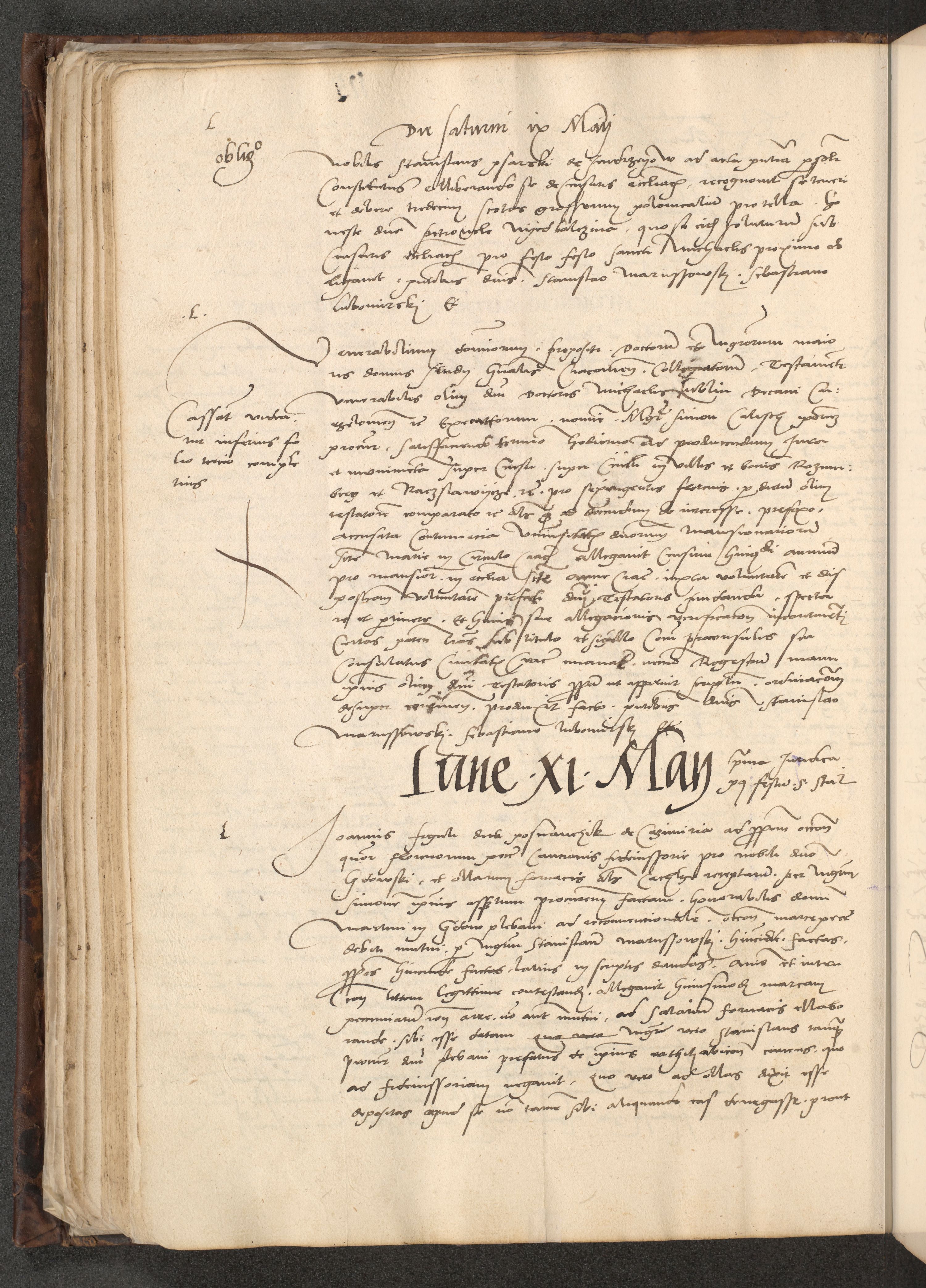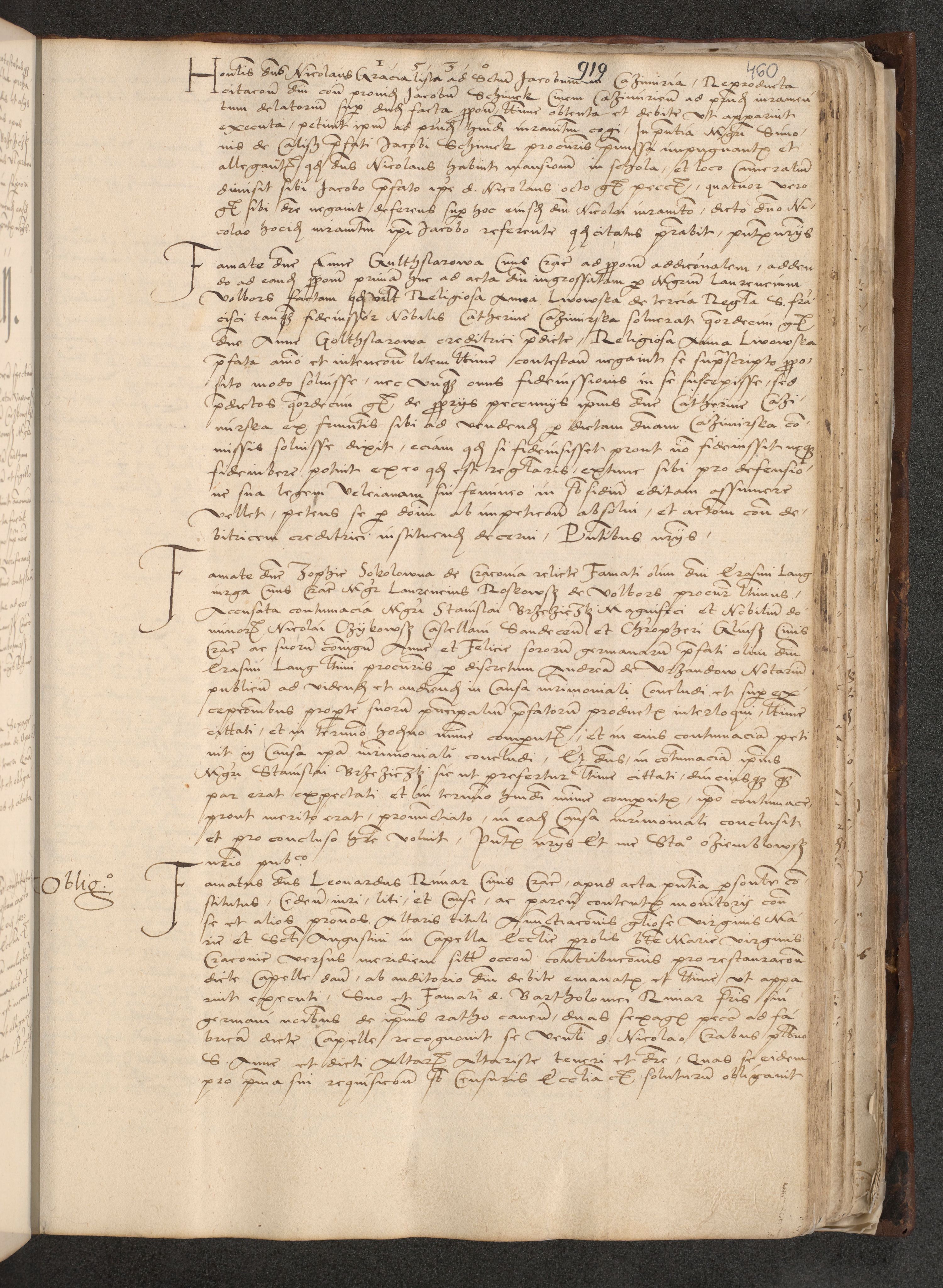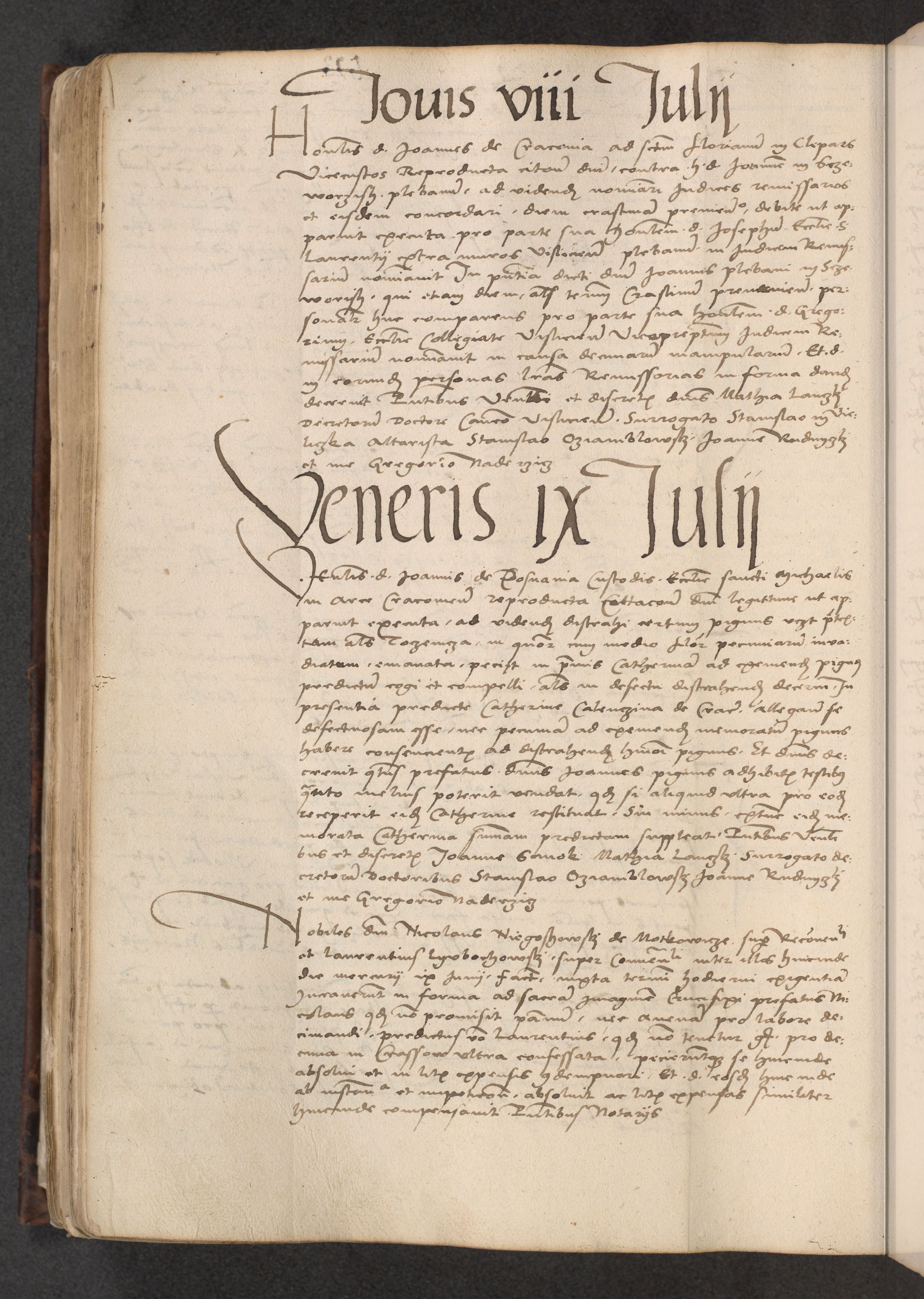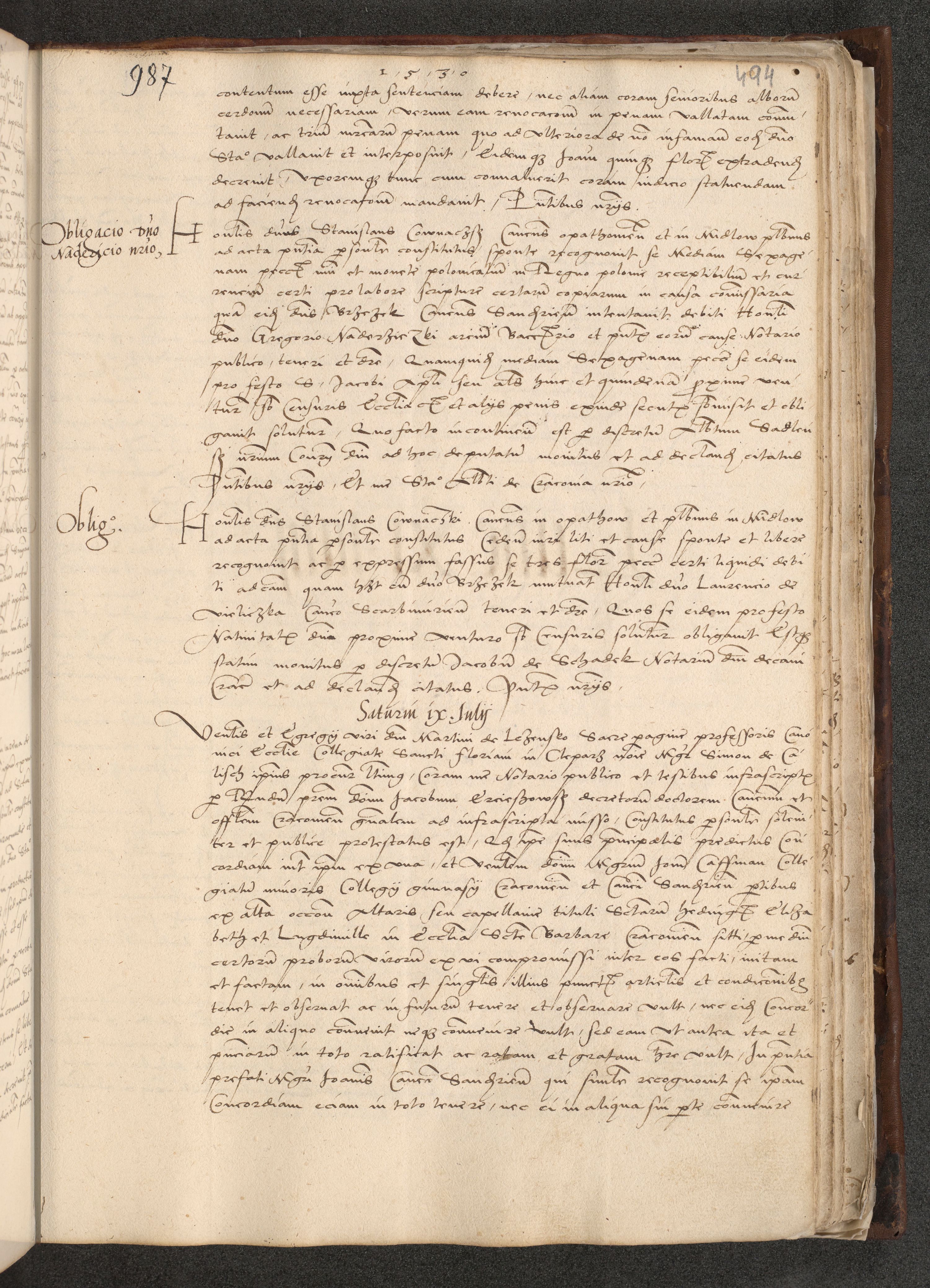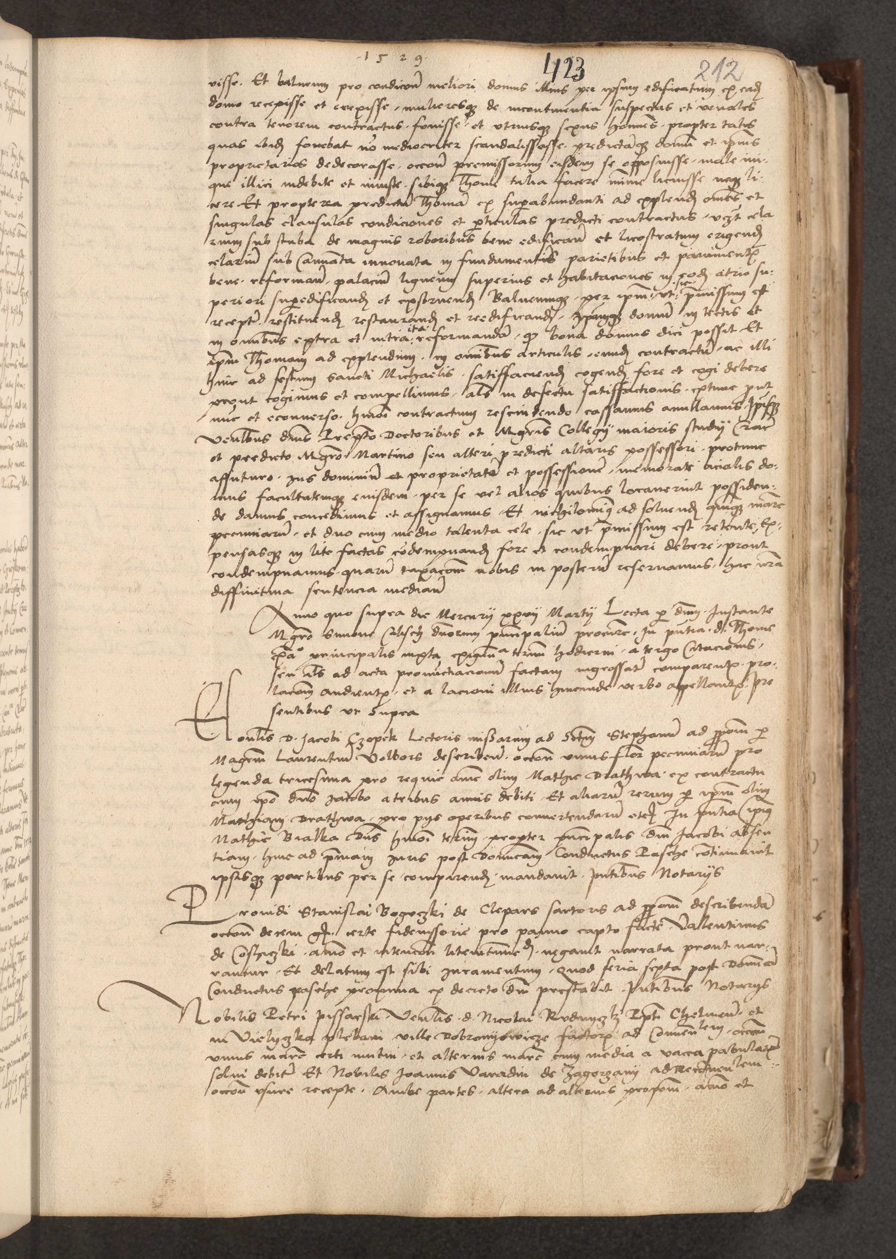 INRI. Acta actorum, obligacionum et sentenciarum tam interlocutoriarum quam diffinitivarum coram reverendo patre ac egregio viro domino Jacobo Erciss[o]wski decretorum doctorem, canonico et officiali generali Cracoviensi ad annum Domini 1528, indicionem primam, pontificatus sanctissimi in Christo patris et domini domini Clementis divina probidendcia pape seprtimi, annum quintum, per Stanislaum de Mordi legalem consistorii notarium omine felici inchoantur