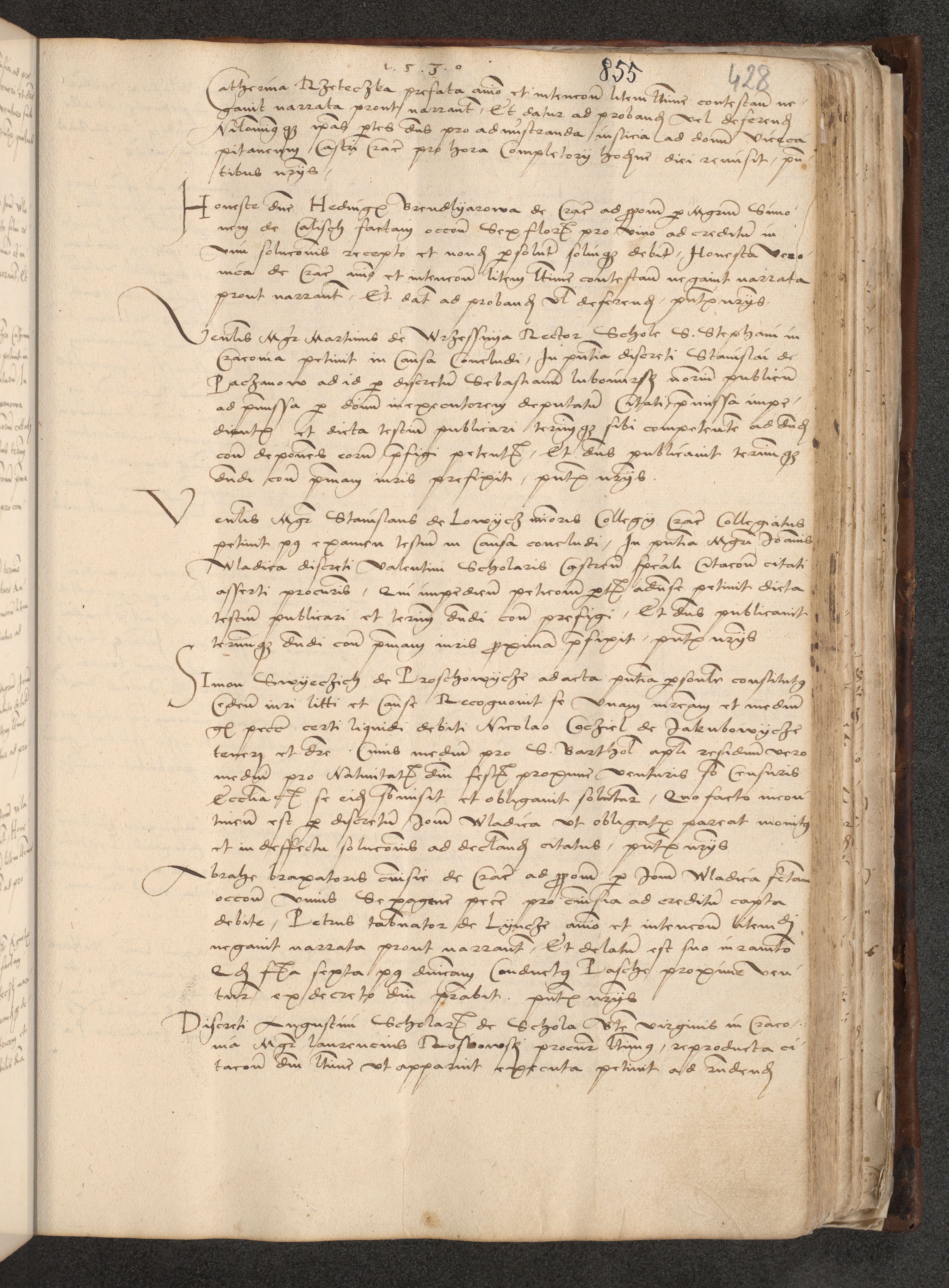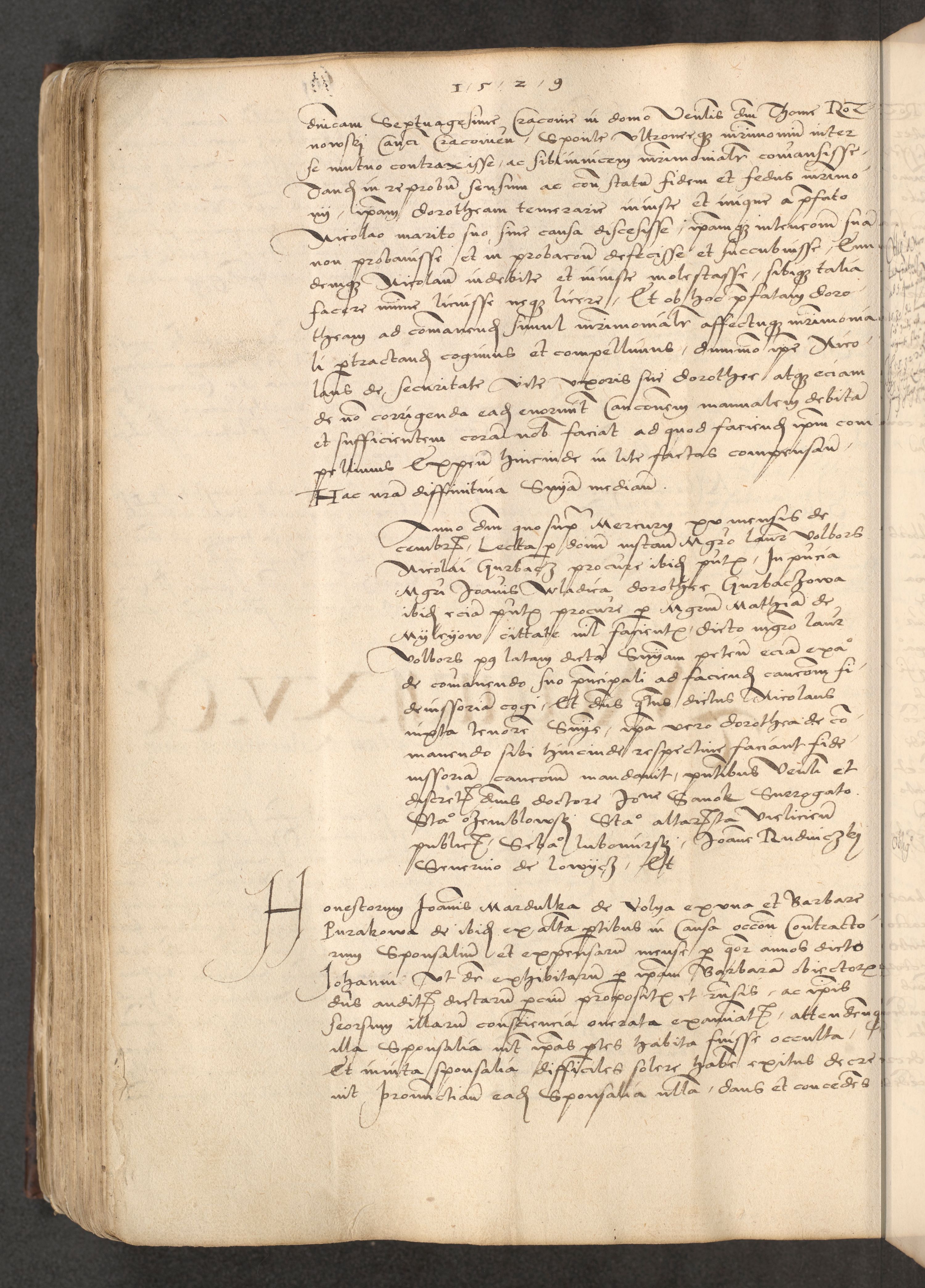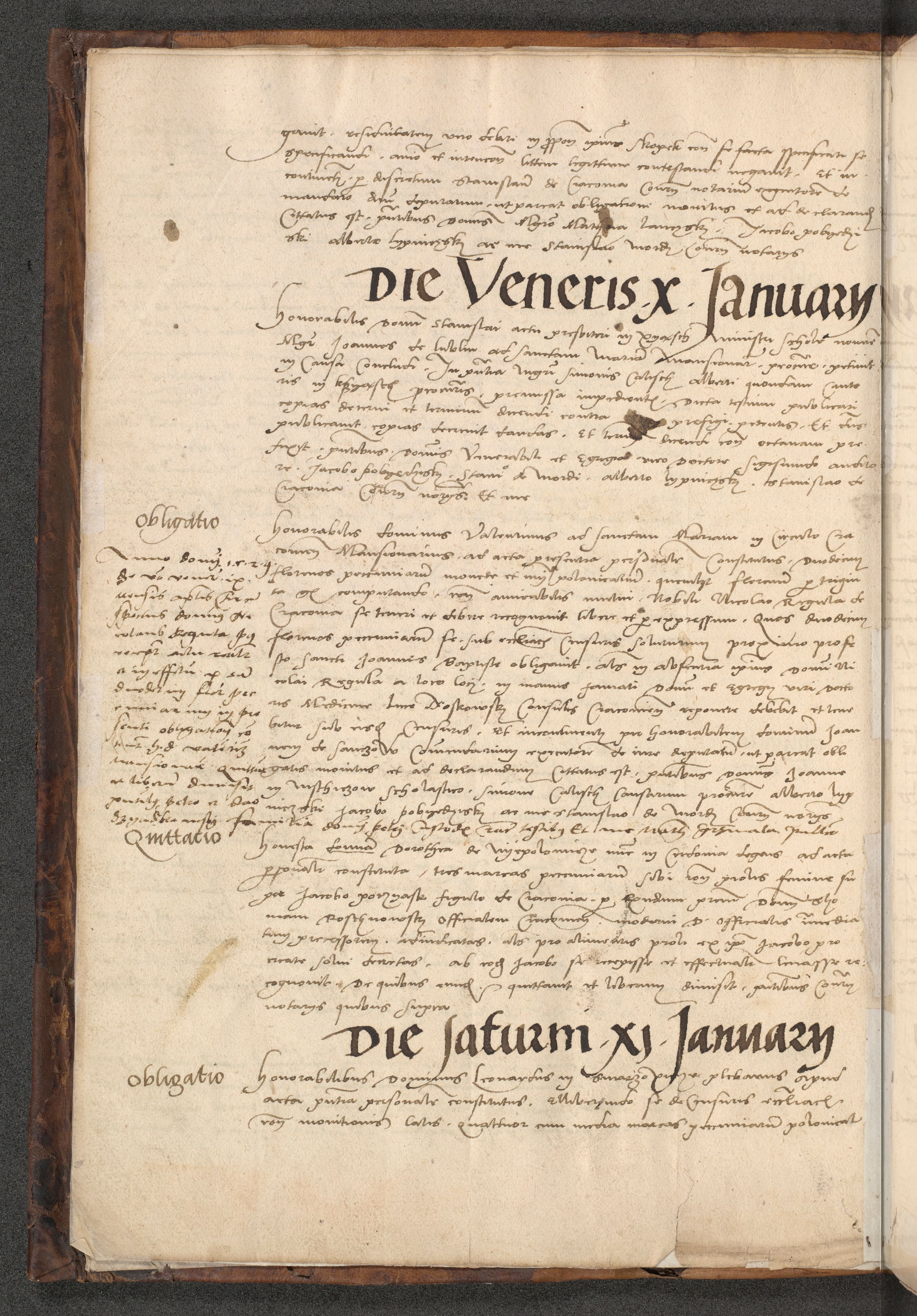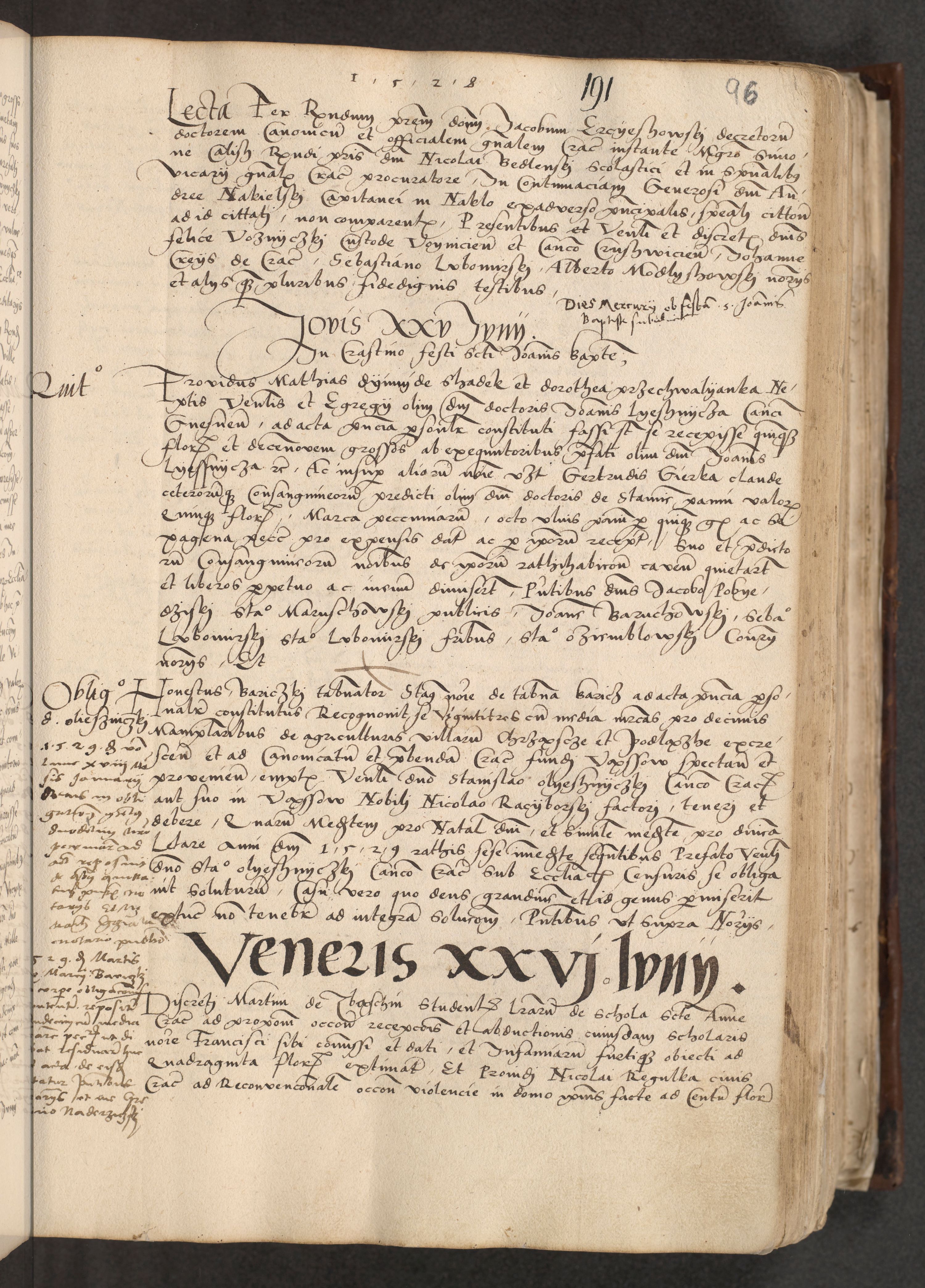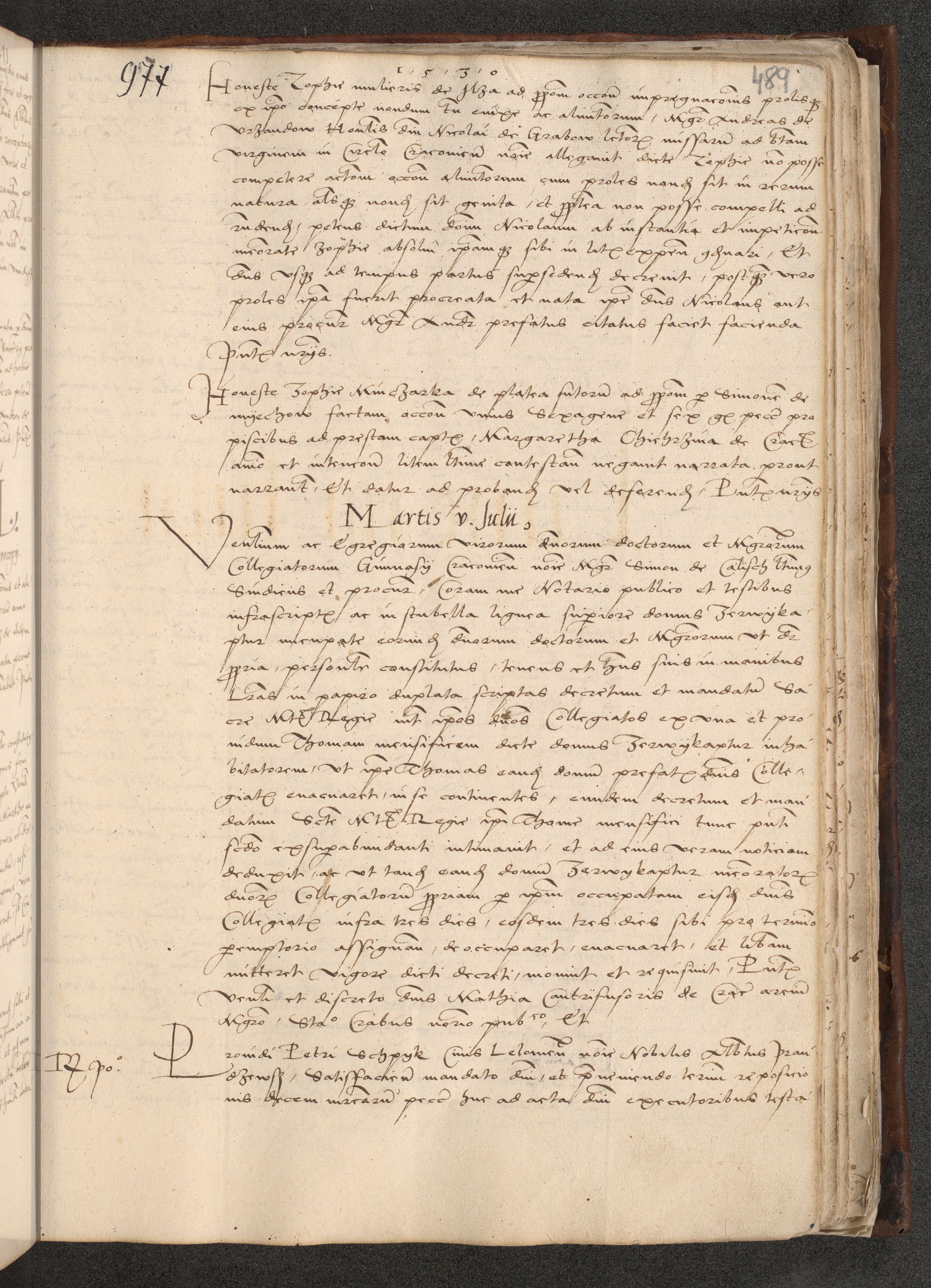 INRI. Acta actorum, obligacionum et sentenciarum tam interlocutoriarum quam diffinitivarum coram reverendo patre ac egregio viro domino Jacobo Erciss[o]wski decretorum doctorem, canonico et officiali generali Cracoviensi ad annum Domini 1528, indicionem primam, pontificatus sanctissimi in Christo patris et domini domini Clementis divina probidendcia pape seprtimi, annum quintum, per Stanislaum de Mordi legalem consistorii notarium omine felici inchoantur