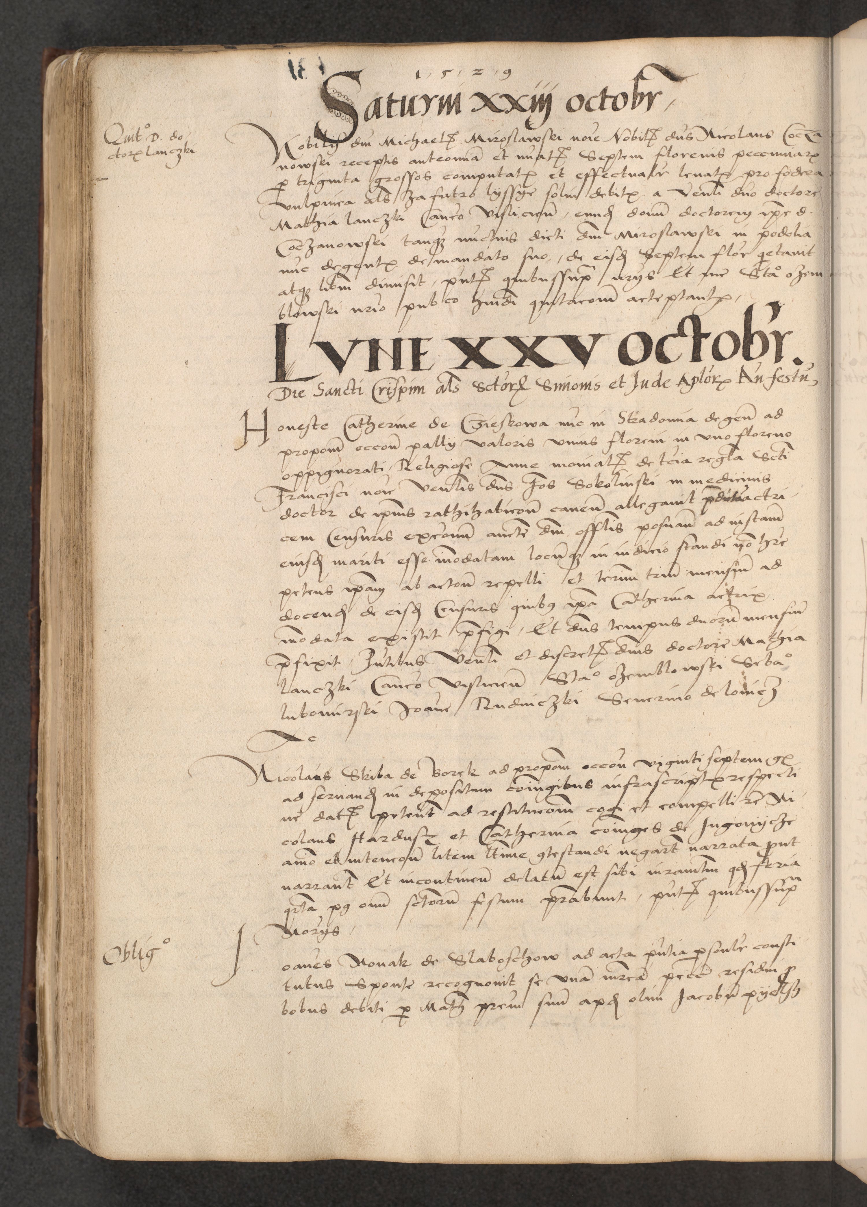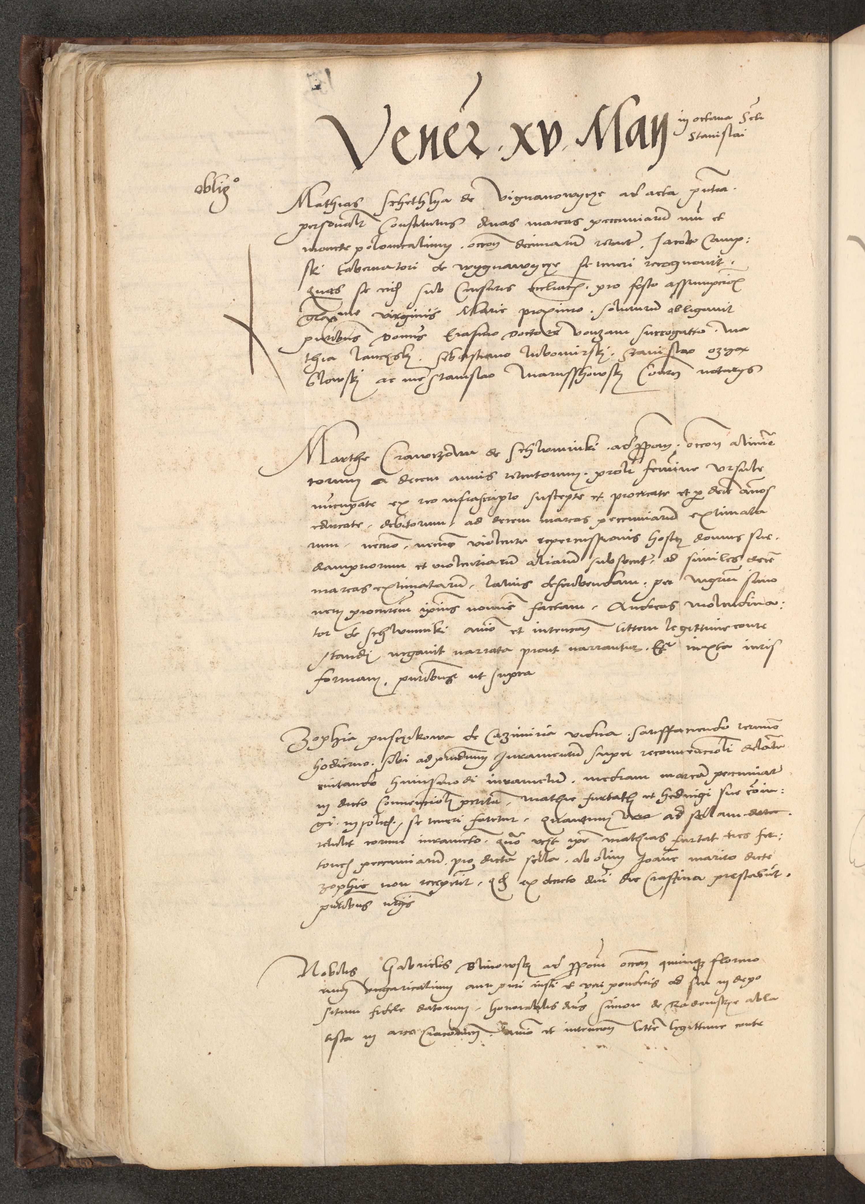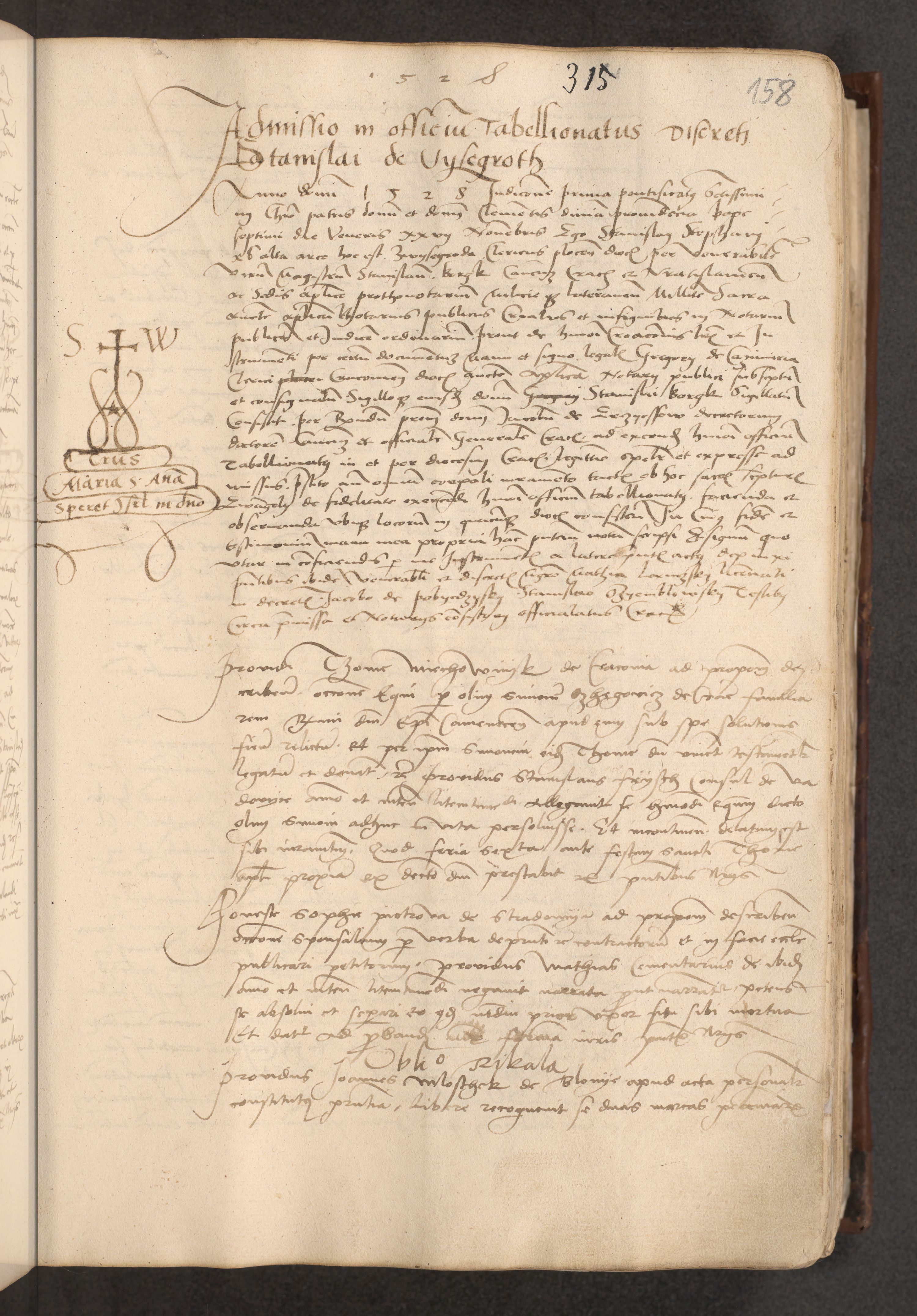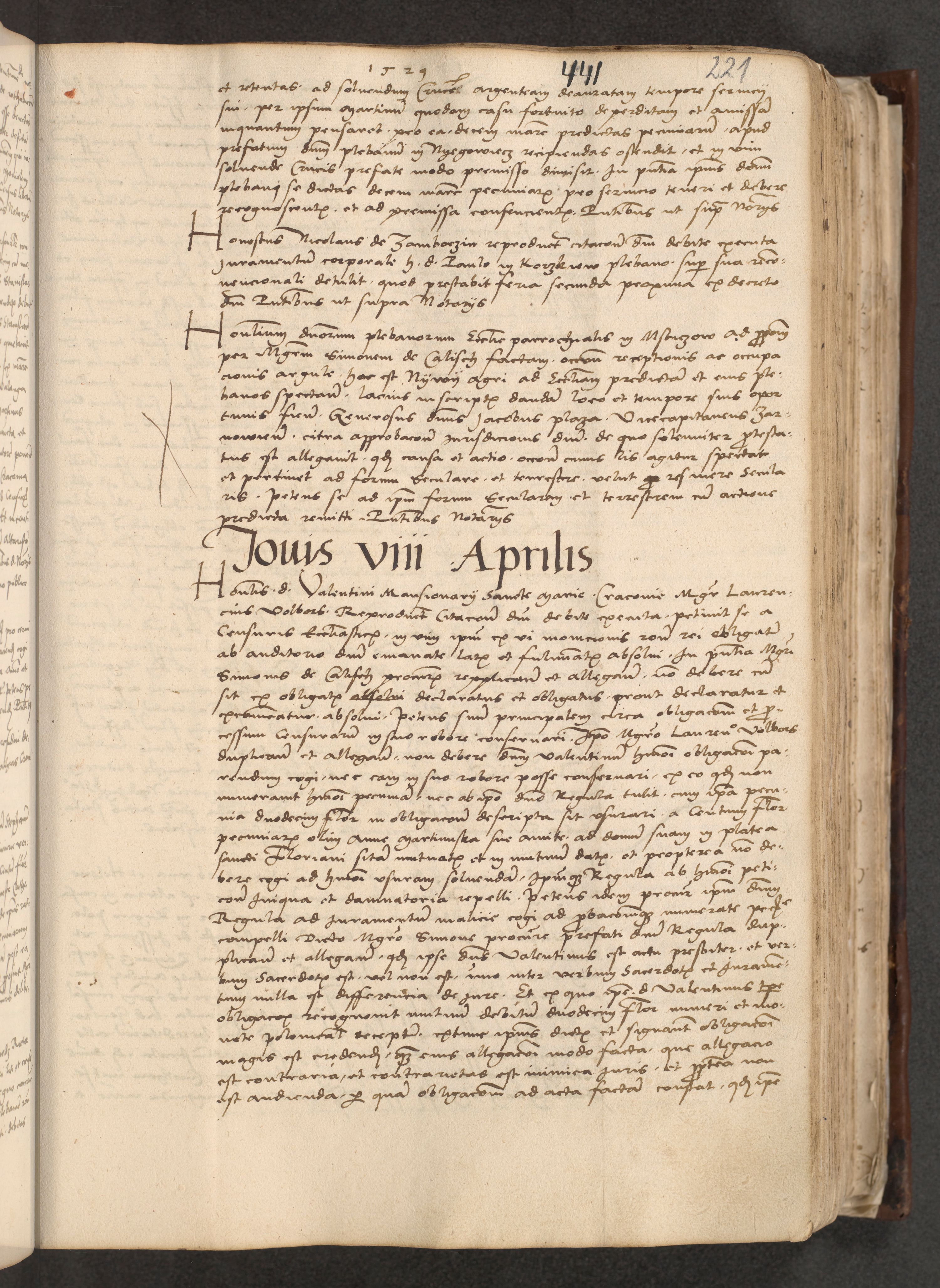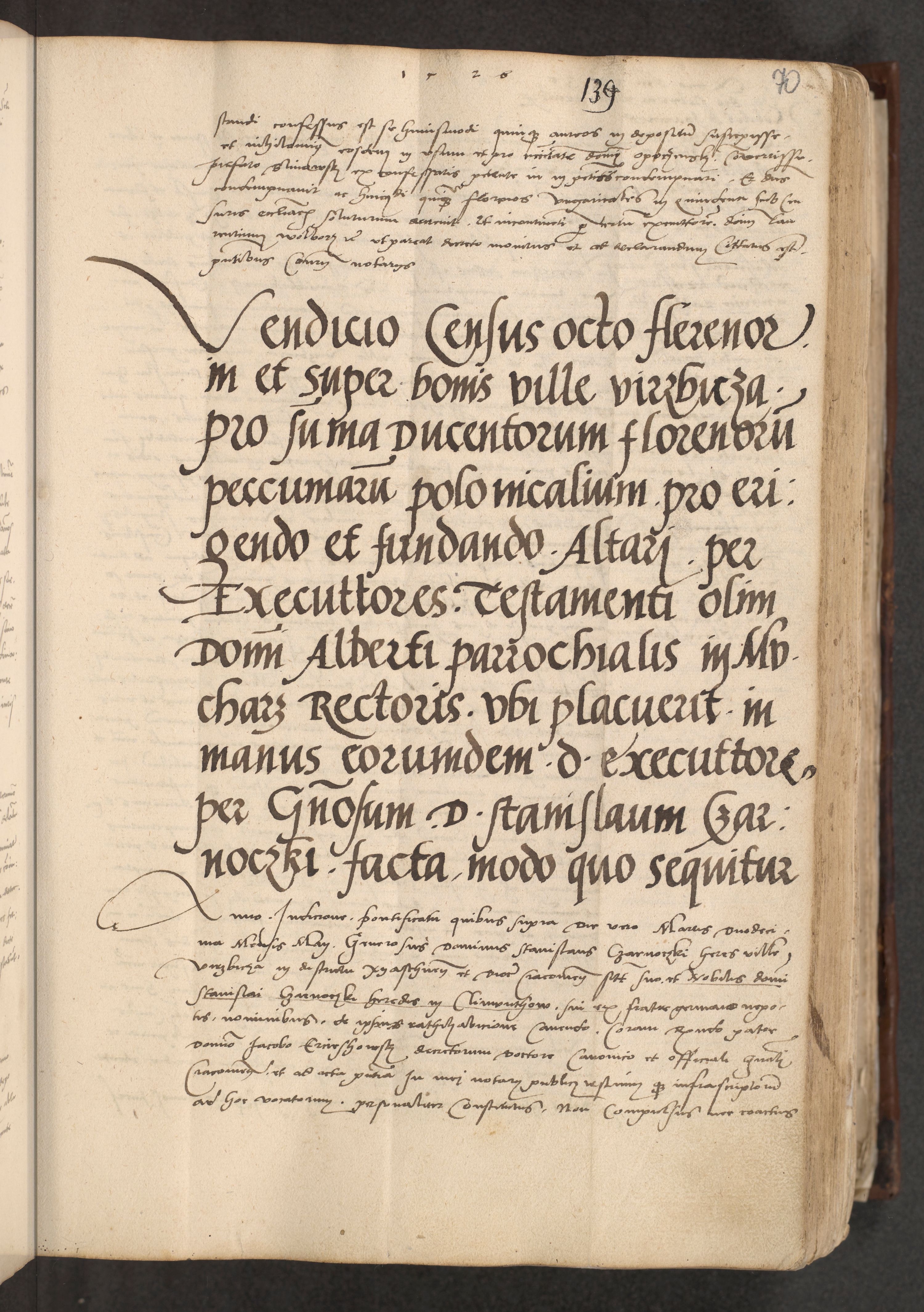INRI. Acta actorum, obligacionum et sentenciarum tam interlocutoriarum quam diffinitivarum coram reverendo patre ac egregio viro domino Jacobo Erciss[o]wski decretorum doctorem, canonico et officiali generali Cracoviensi ad annum Domini 1528, indicionem primam, pontificatus sanctissimi in Christo patris et domini domini Clementis divina probidendcia pape seprtimi, annum quintum, per Stanislaum de Mordi legalem consistorii notarium omine felici inchoantur