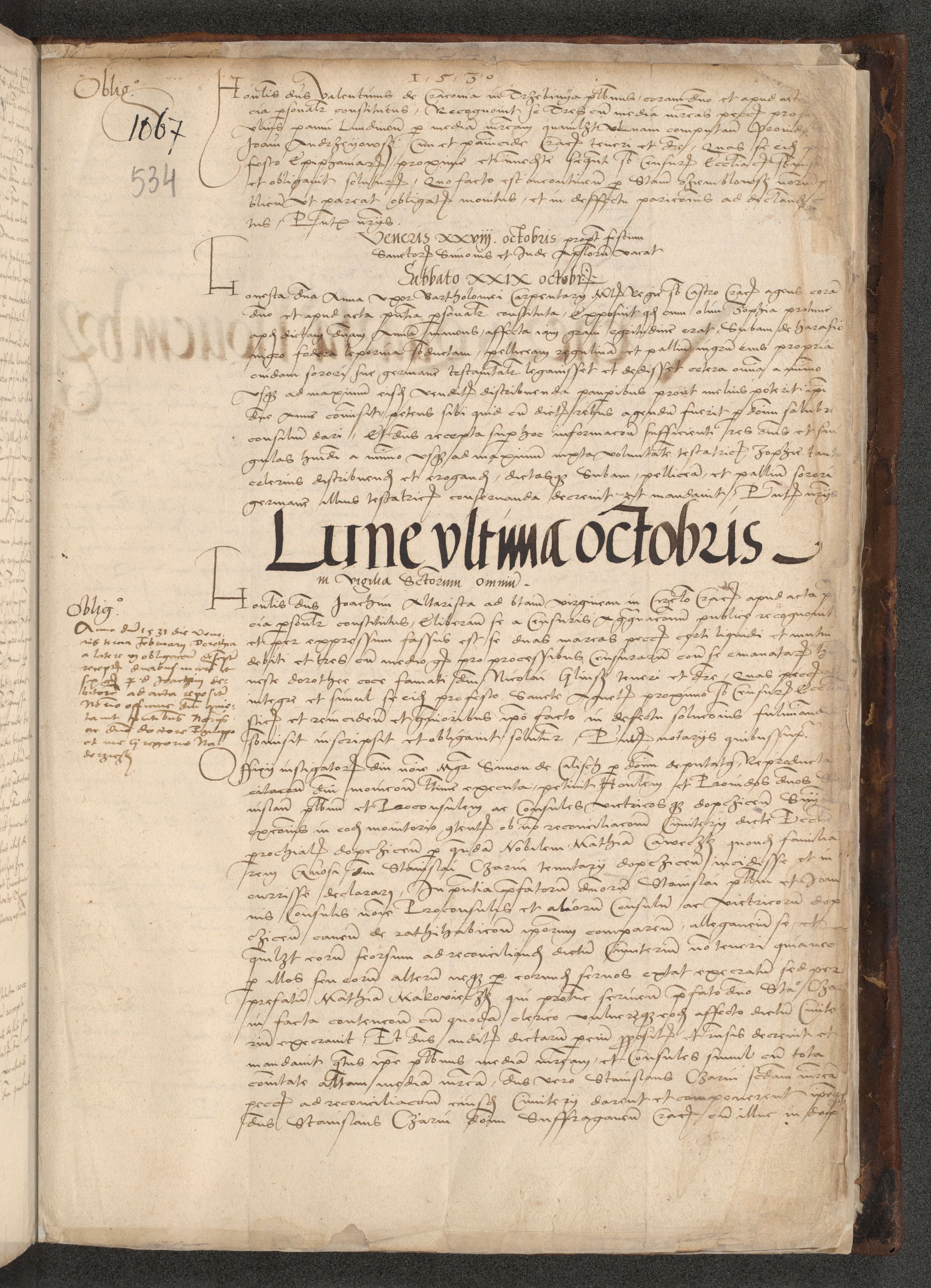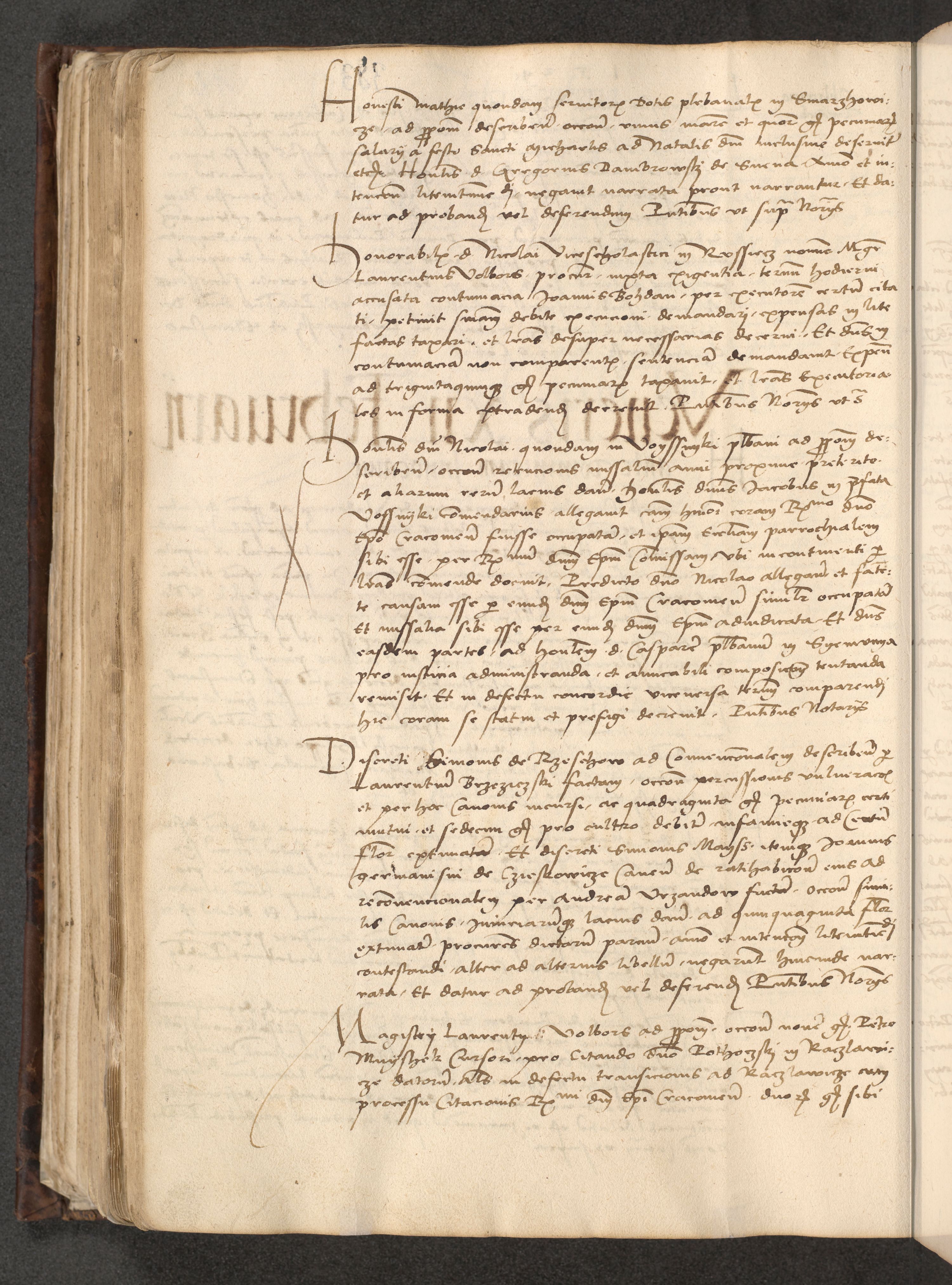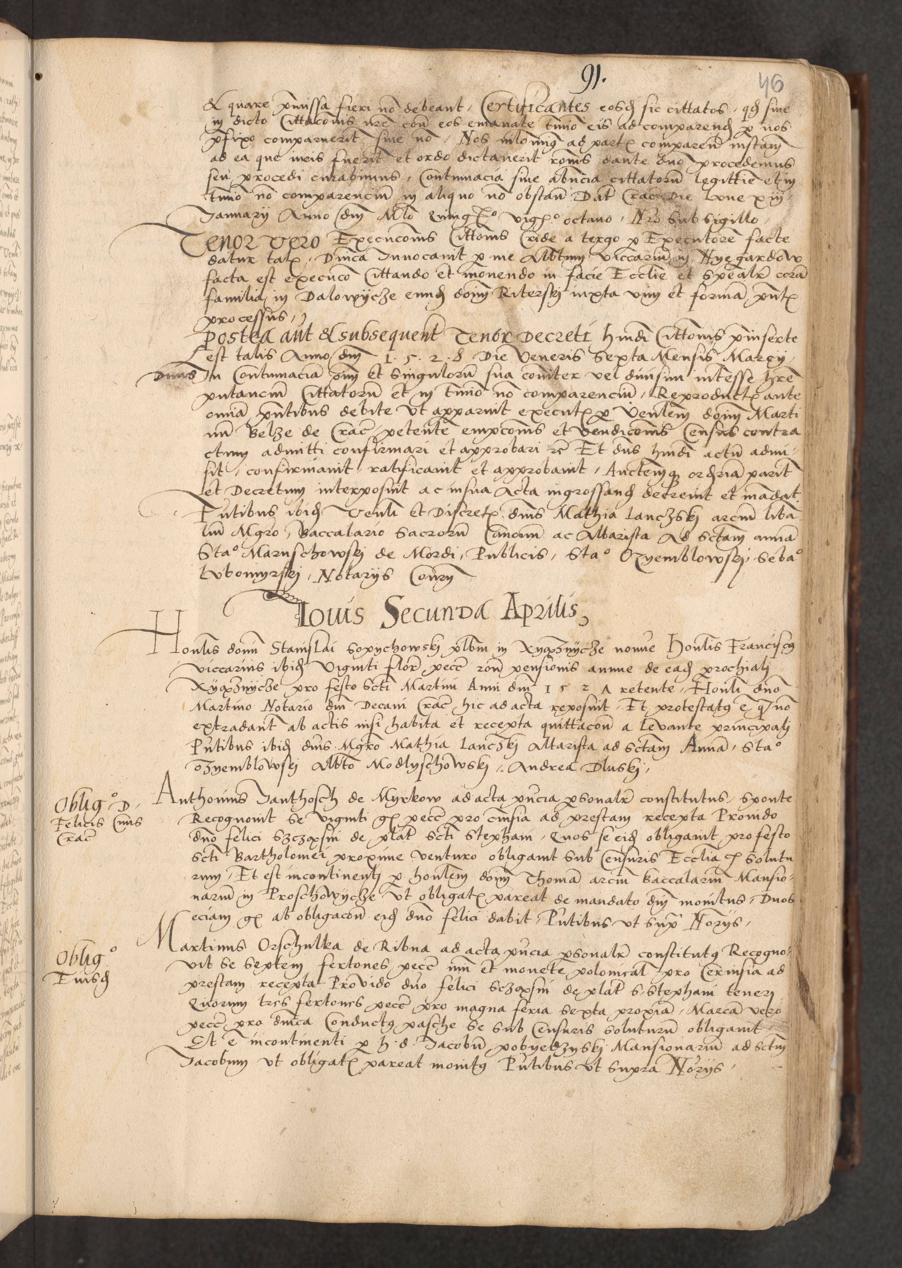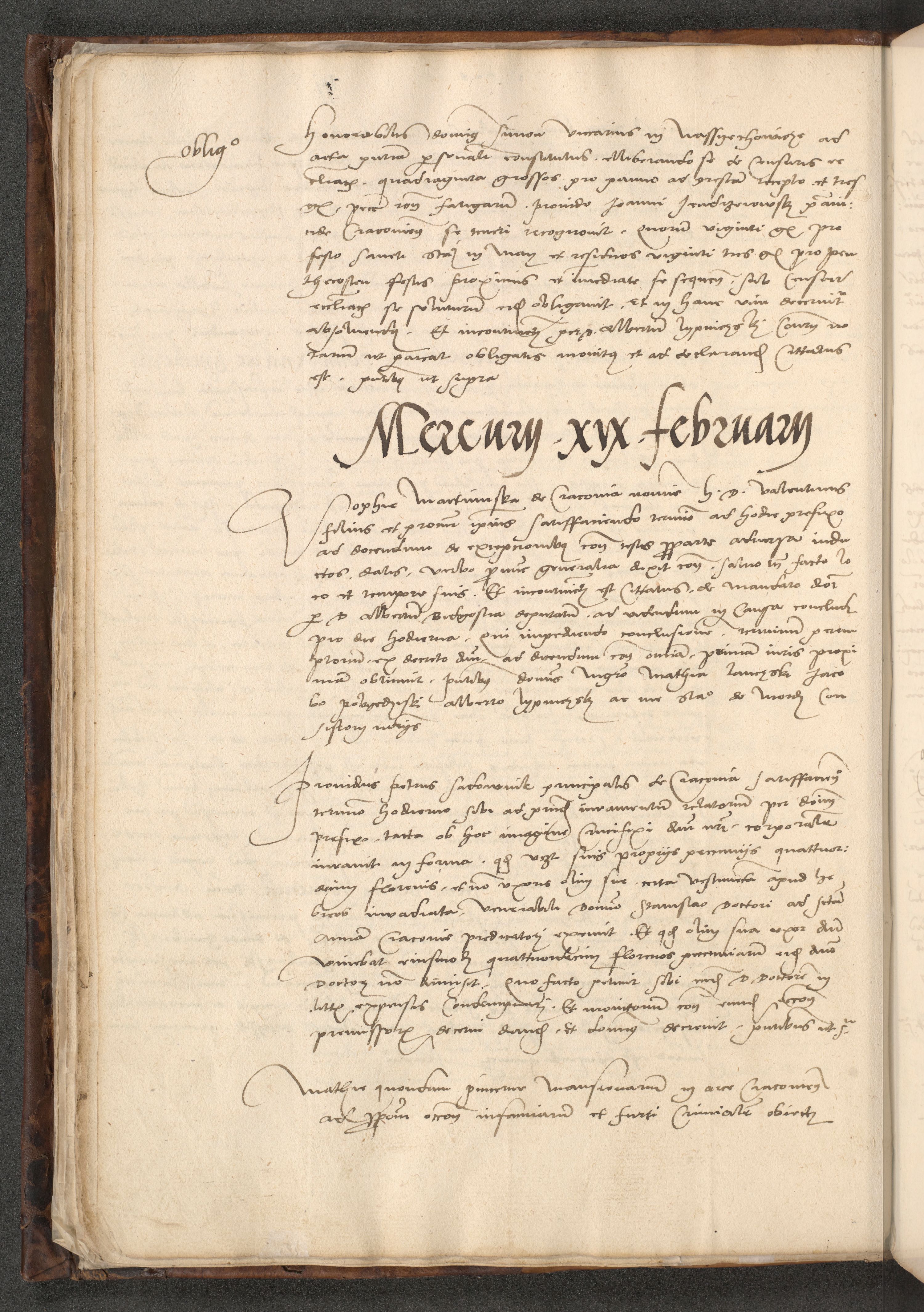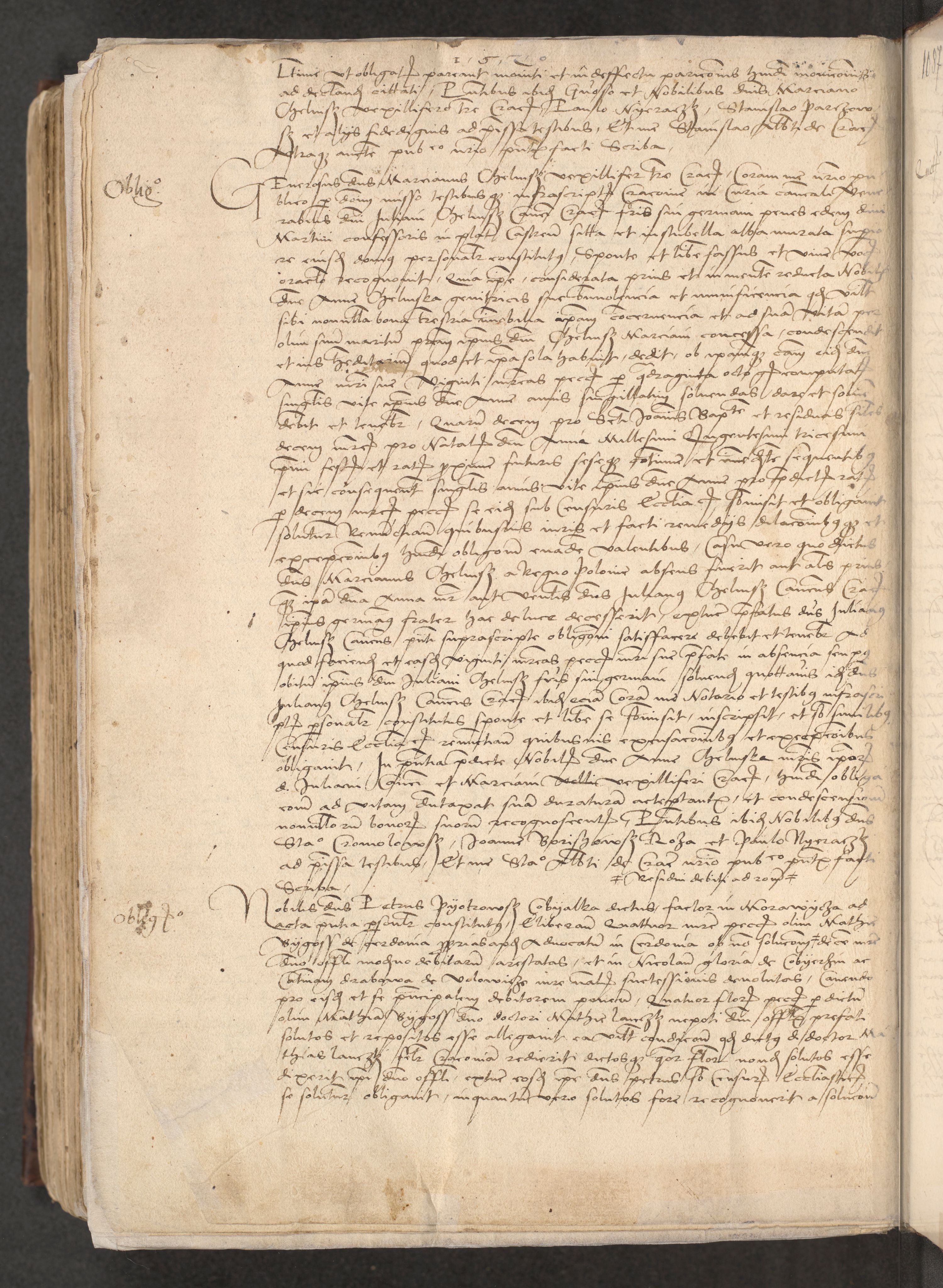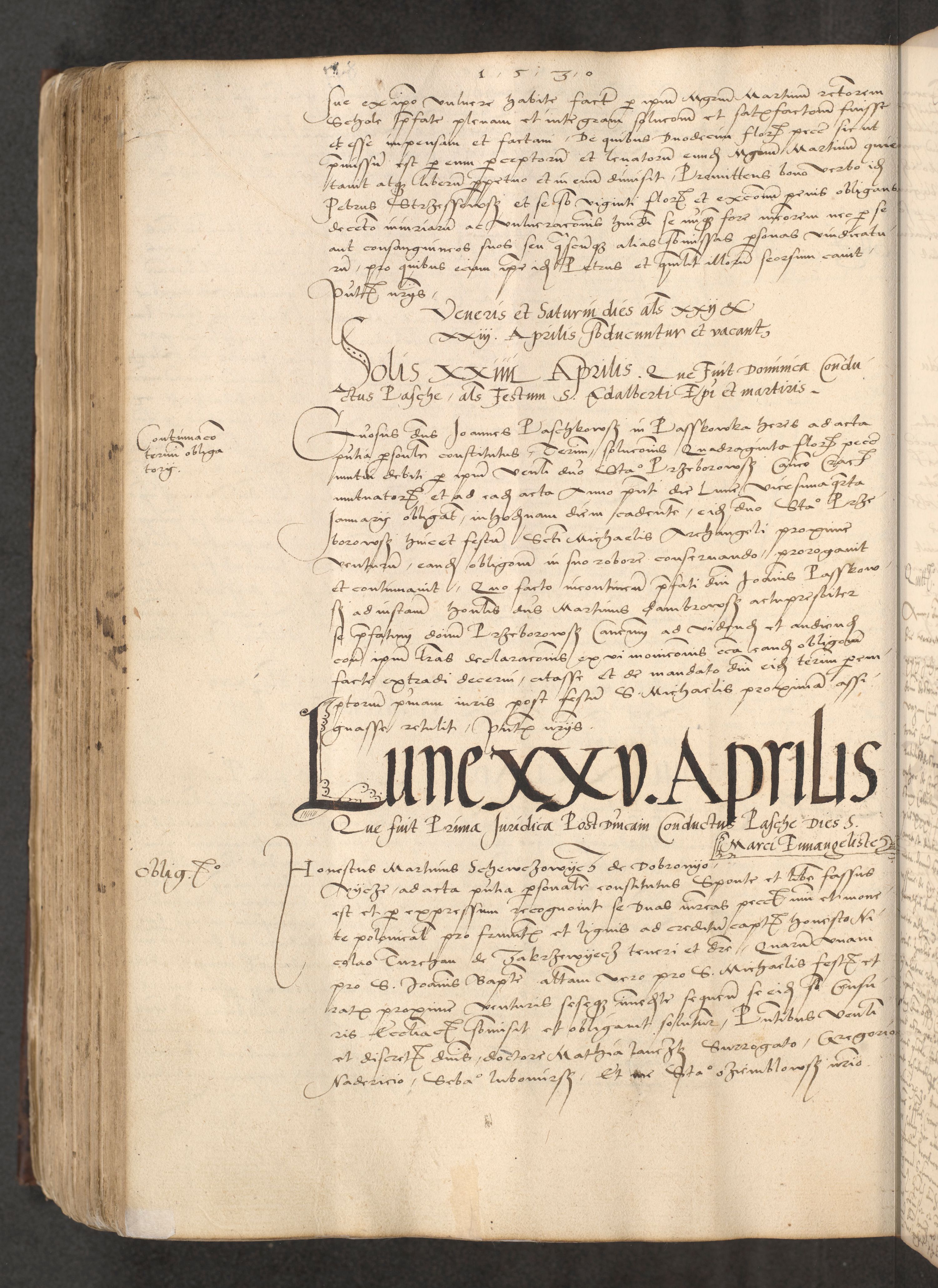 INRI. Acta actorum, obligacionum et sentenciarum tam interlocutoriarum quam diffinitivarum coram reverendo patre ac egregio viro domino Jacobo Erciss[o]wski decretorum doctorem, canonico et officiali generali Cracoviensi ad annum Domini 1528, indicionem primam, pontificatus sanctissimi in Christo patris et domini domini Clementis divina probidendcia pape seprtimi, annum quintum, per Stanislaum de Mordi legalem consistorii notarium omine felici inchoantur