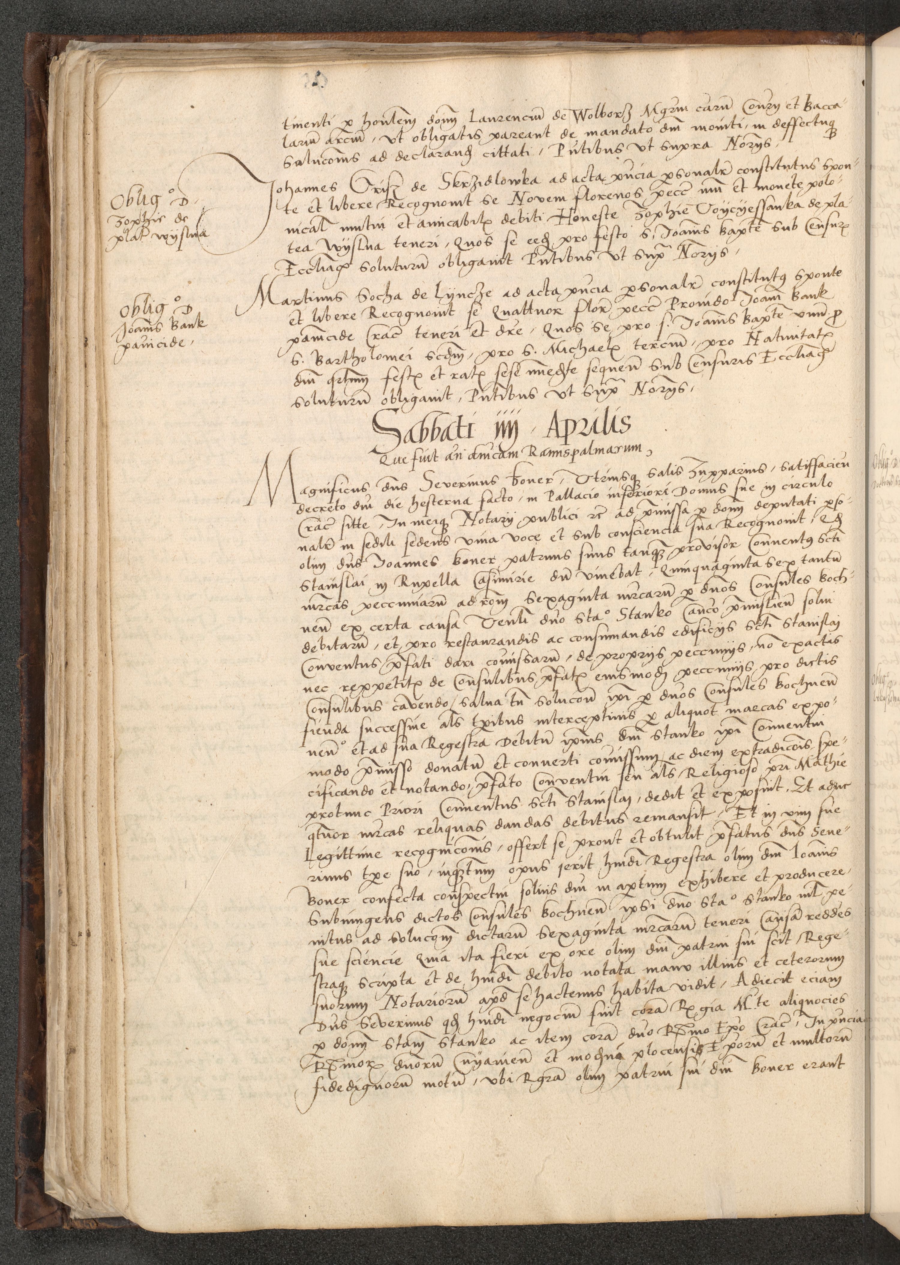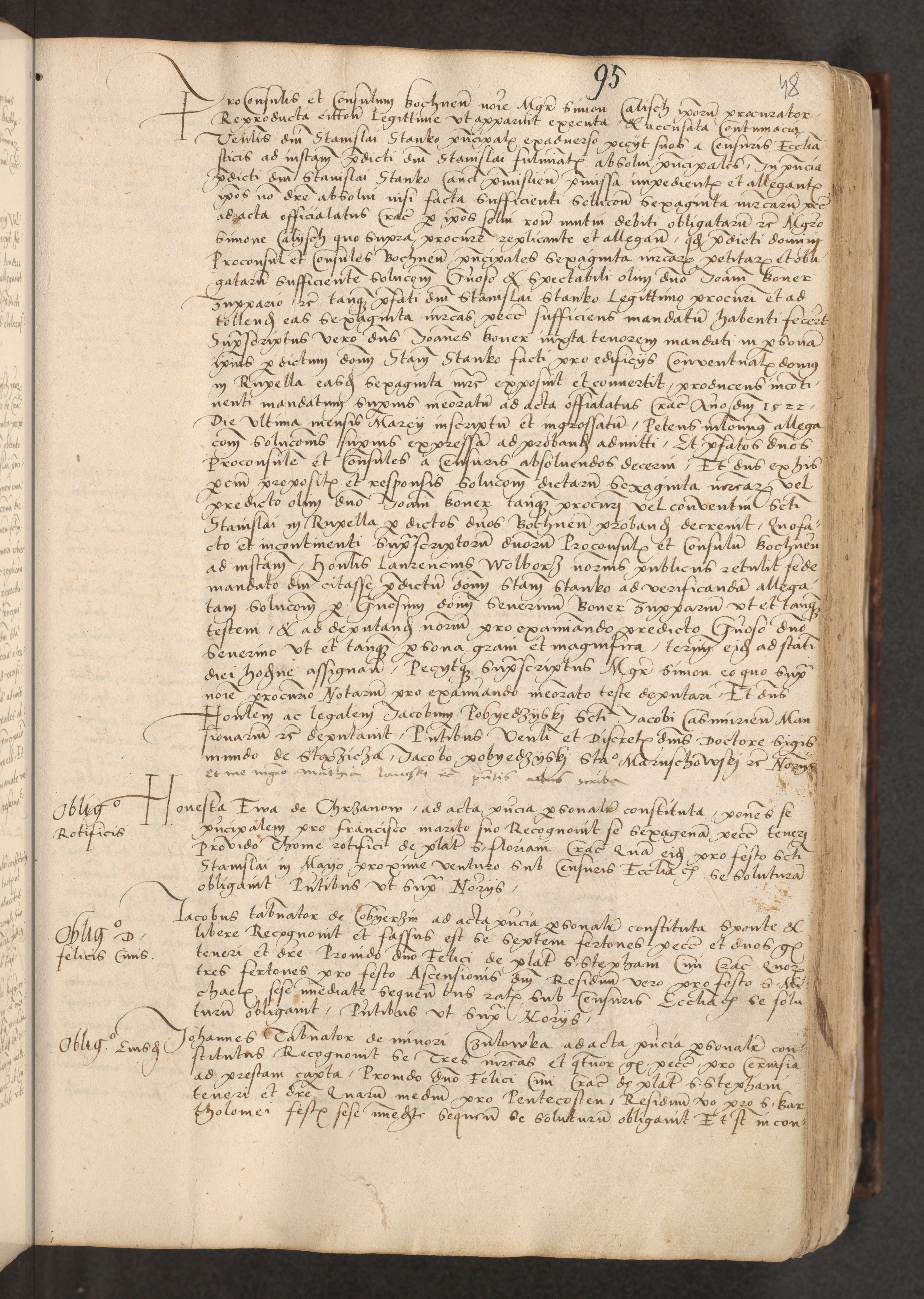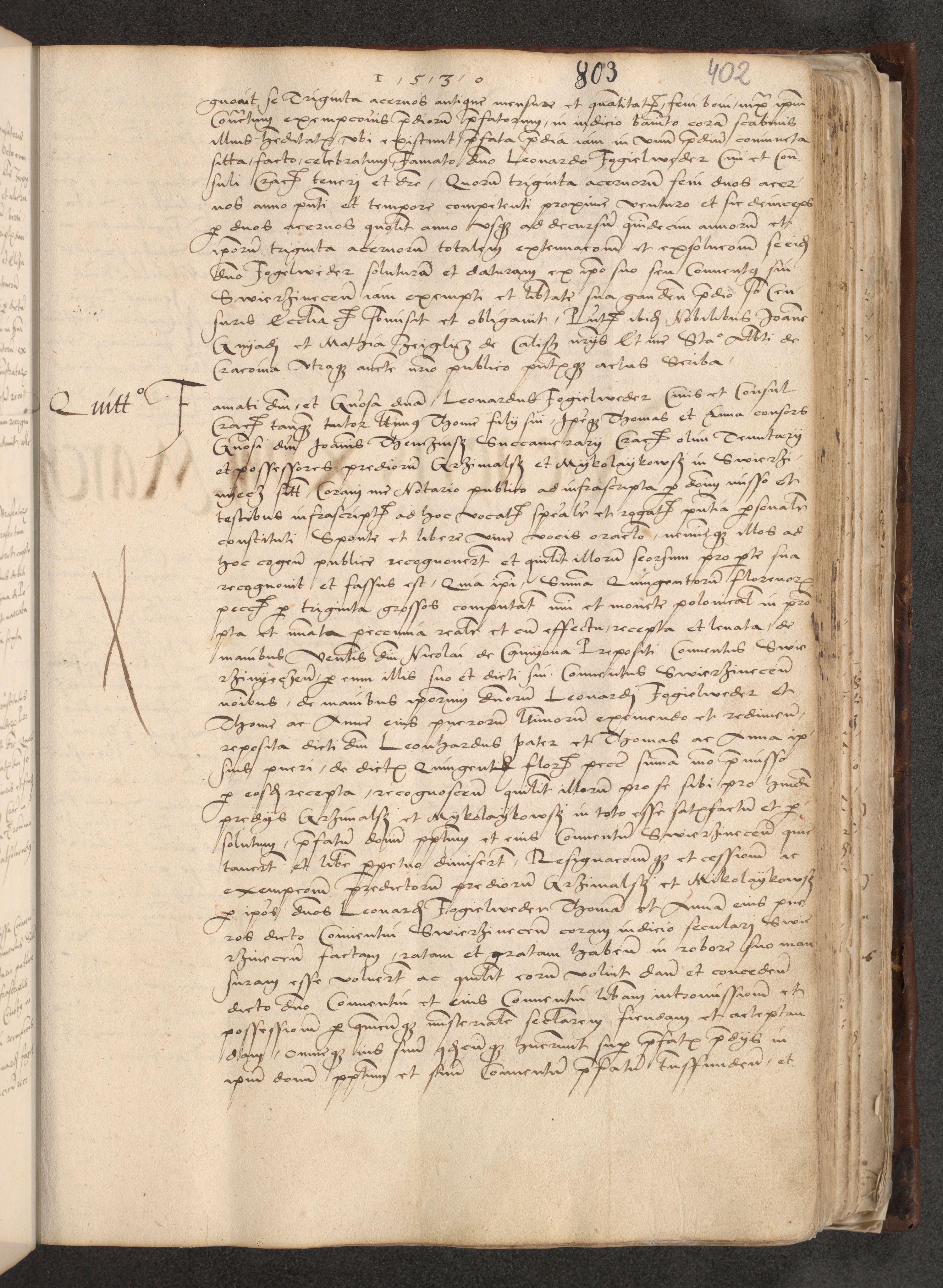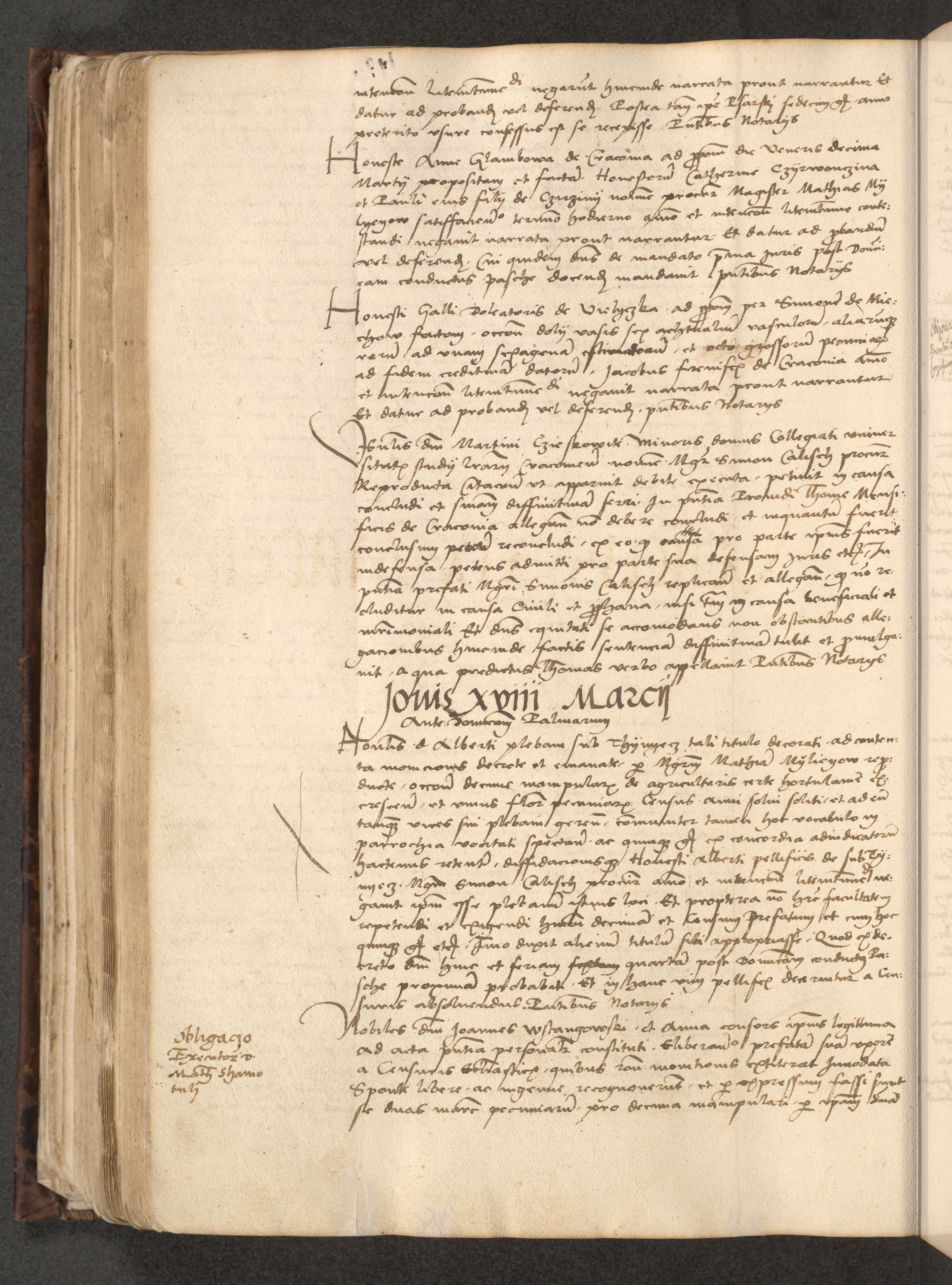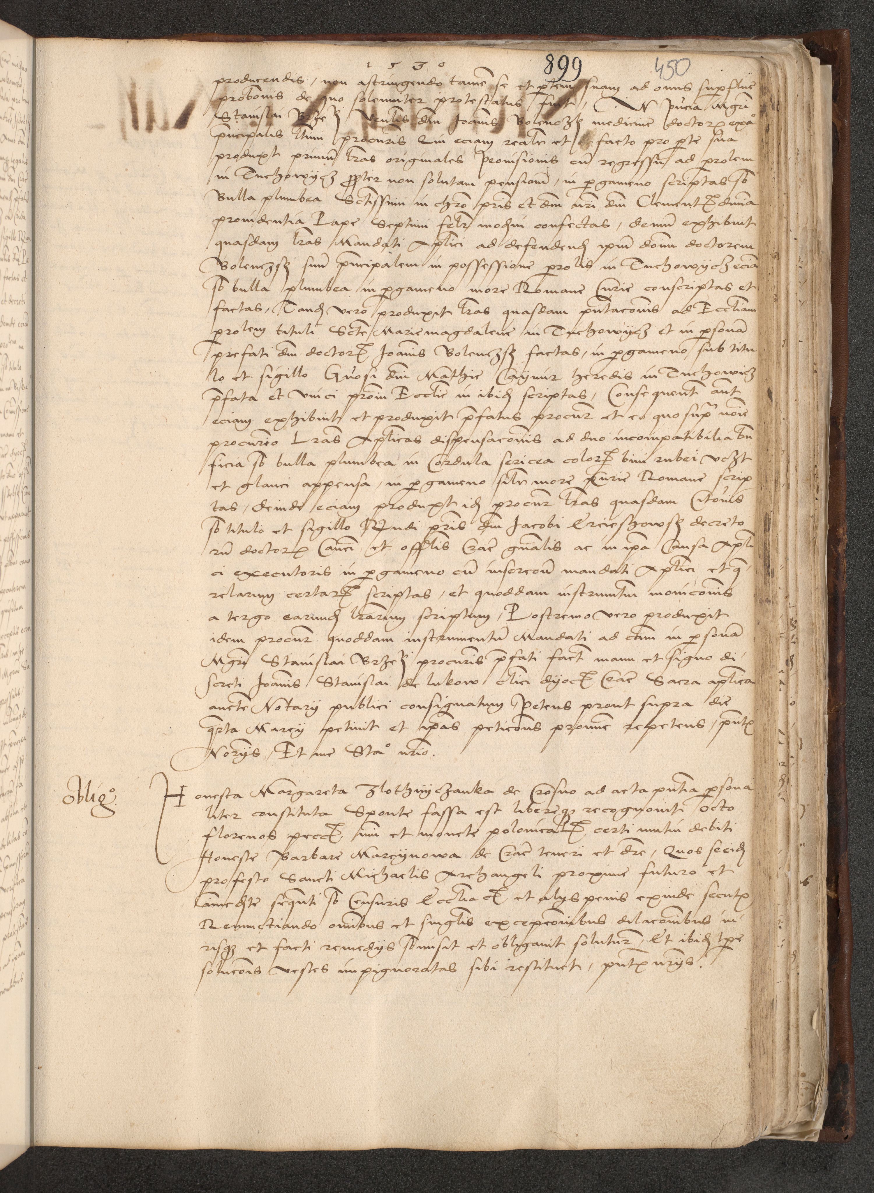 INRI. Acta actorum, obligacionum et sentenciarum tam interlocutoriarum quam diffinitivarum coram reverendo patre ac egregio viro domino Jacobo Erciss[o]wski decretorum doctorem, canonico et officiali generali Cracoviensi ad annum Domini 1528, indicionem primam, pontificatus sanctissimi in Christo patris et domini domini Clementis divina probidendcia pape seprtimi, annum quintum, per Stanislaum de Mordi legalem consistorii notarium omine felici inchoantur