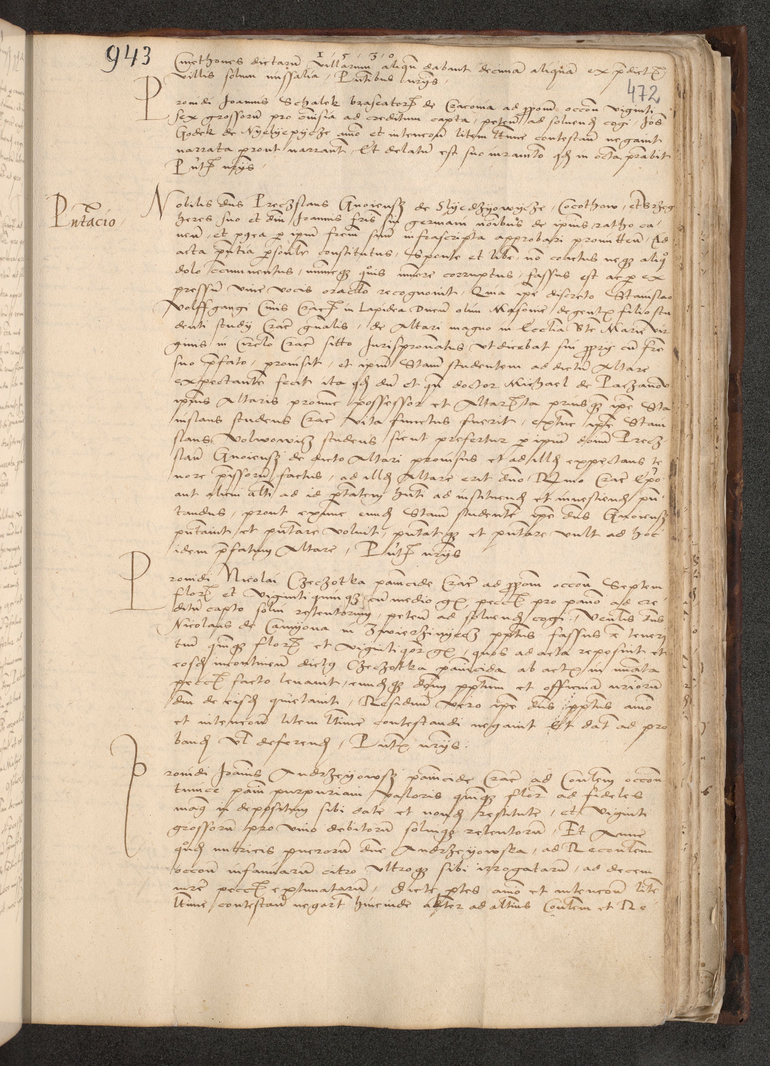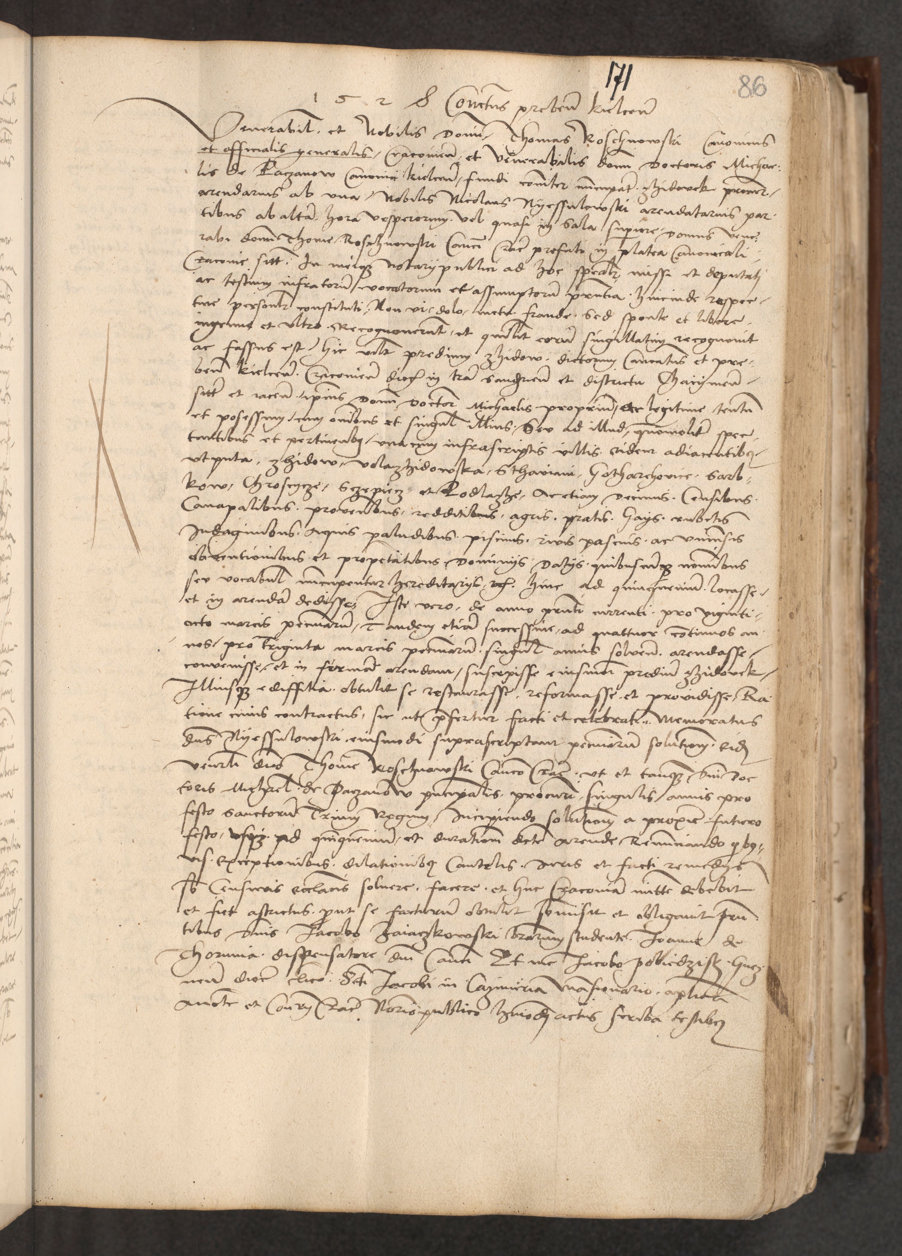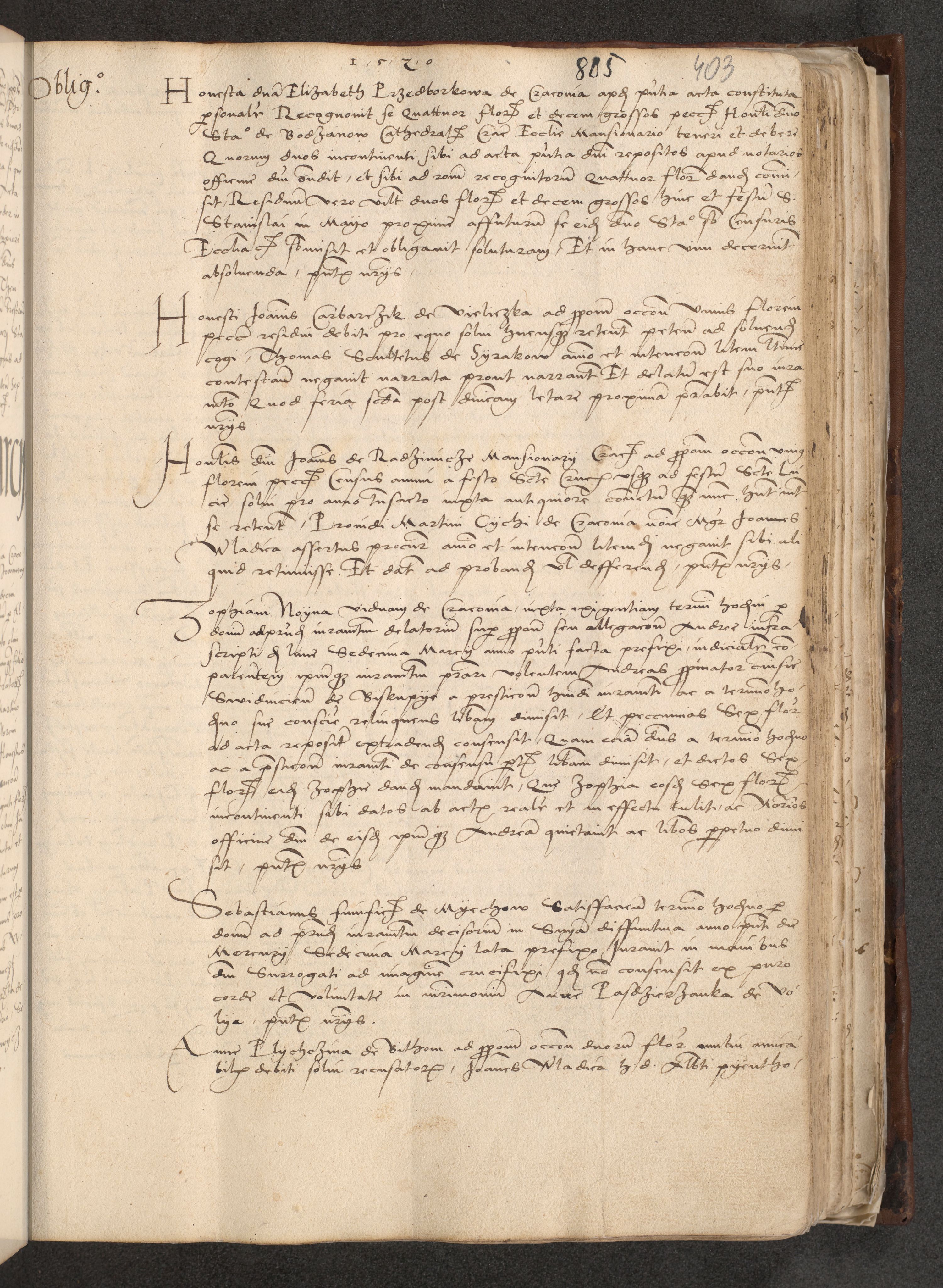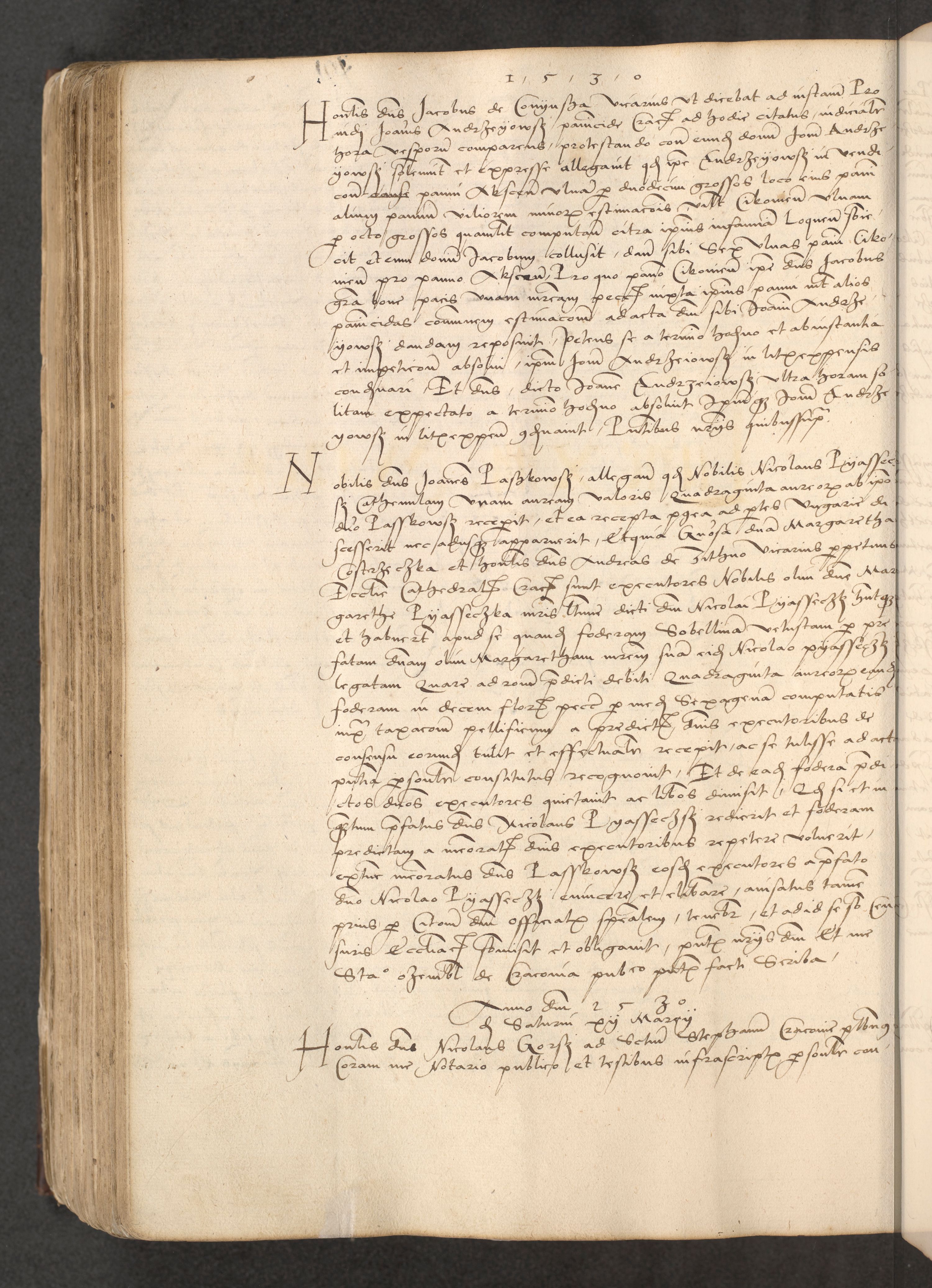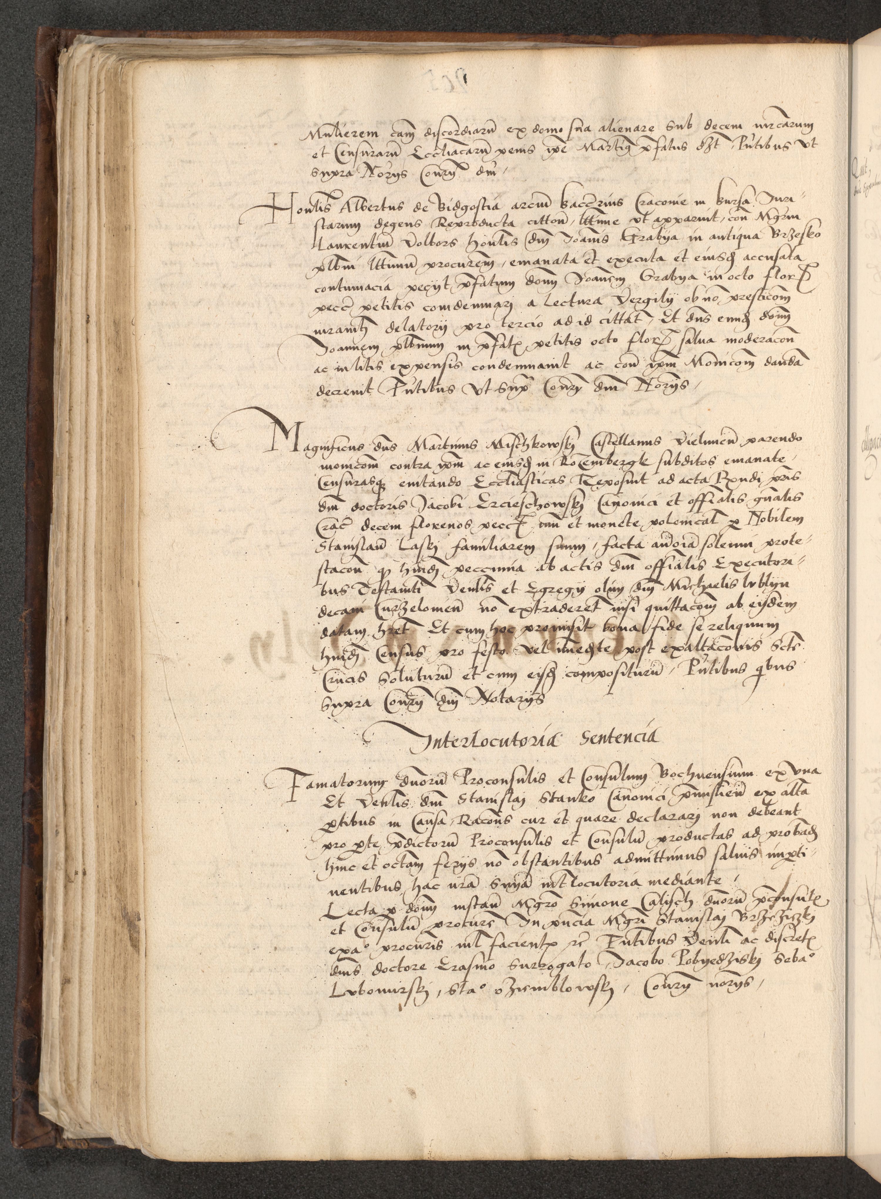 INRI. Acta actorum, obligacionum et sentenciarum tam interlocutoriarum quam diffinitivarum coram reverendo patre ac egregio viro domino Jacobo Erciss[o]wski decretorum doctorem, canonico et officiali generali Cracoviensi ad annum Domini 1528, indicionem primam, pontificatus sanctissimi in Christo patris et domini domini Clementis divina probidendcia pape seprtimi, annum quintum, per Stanislaum de Mordi legalem consistorii notarium omine felici inchoantur