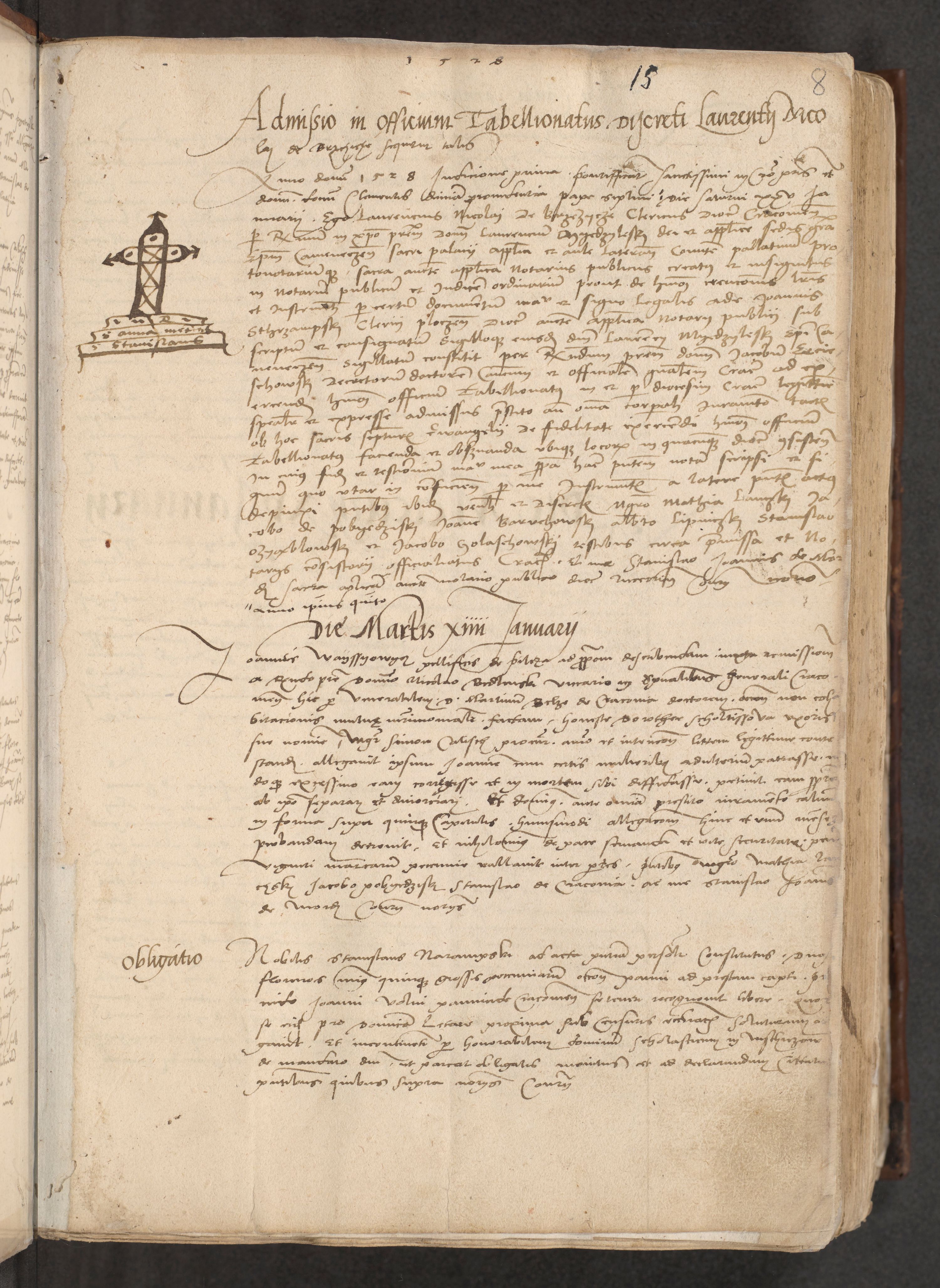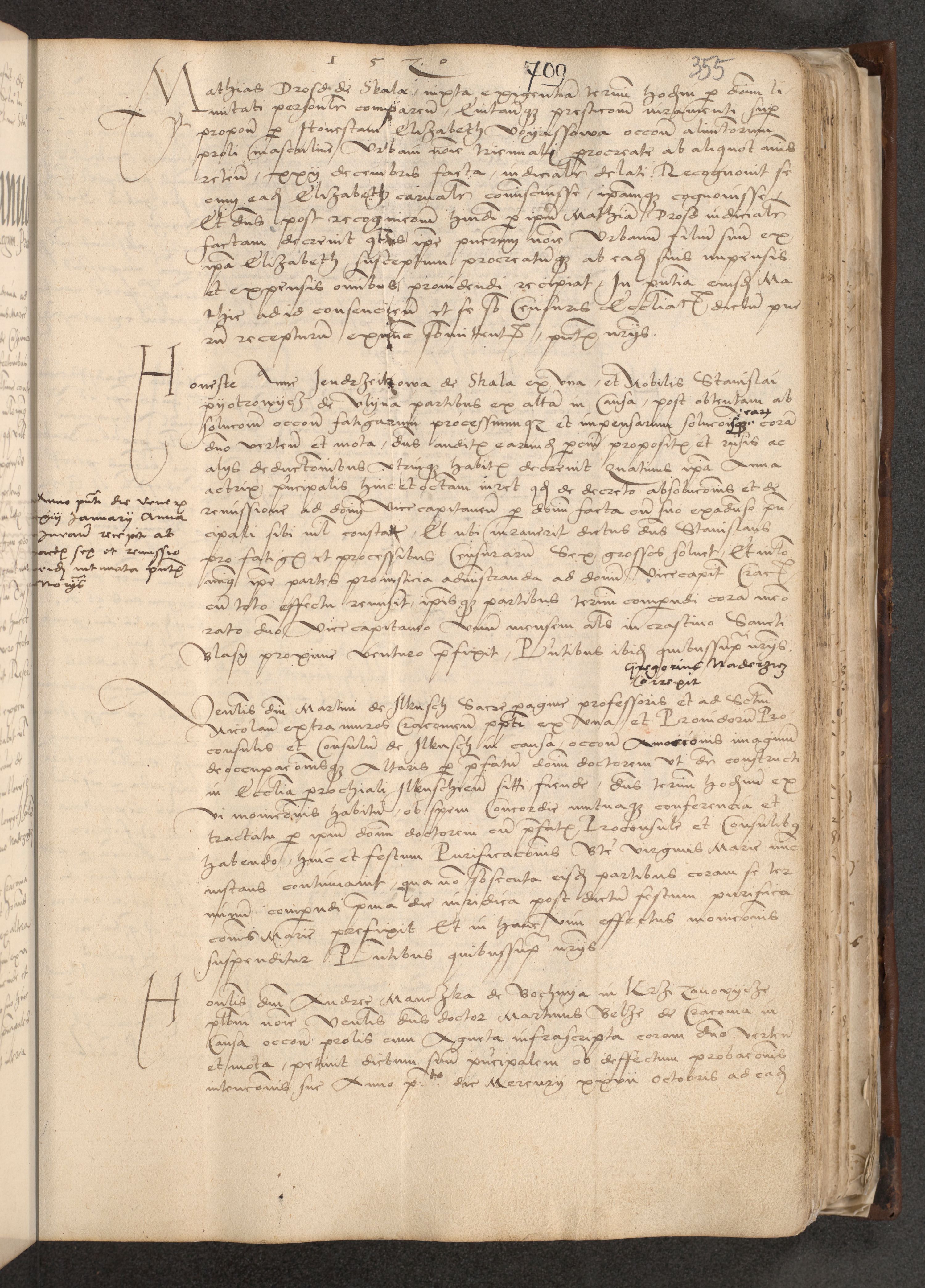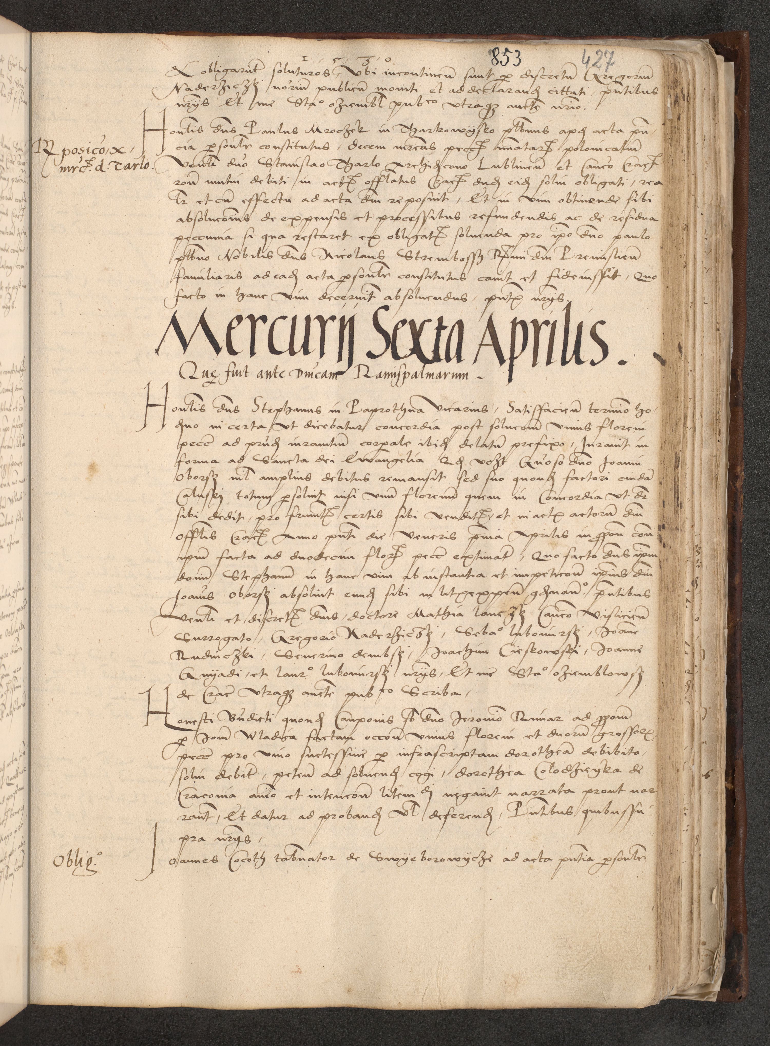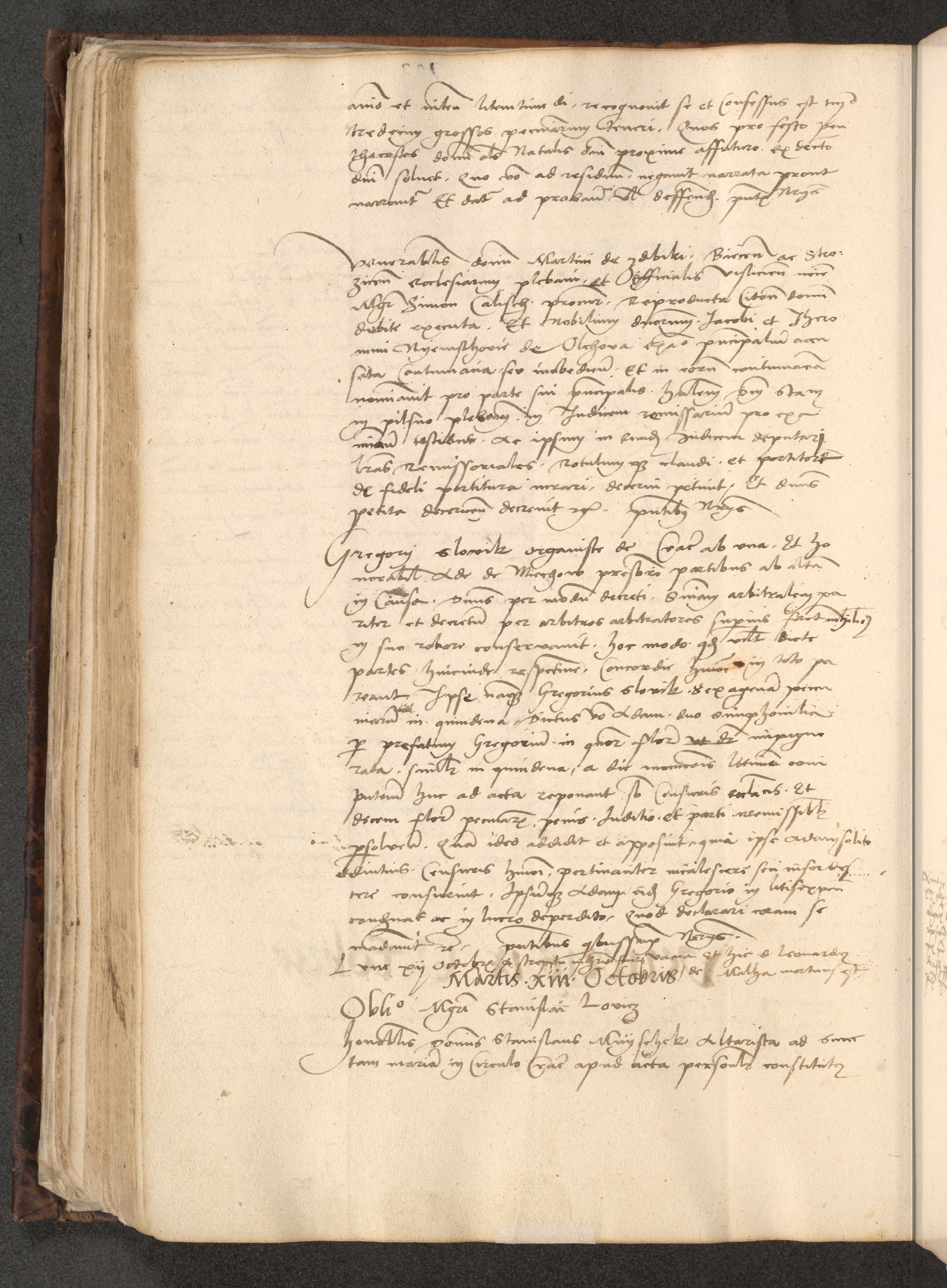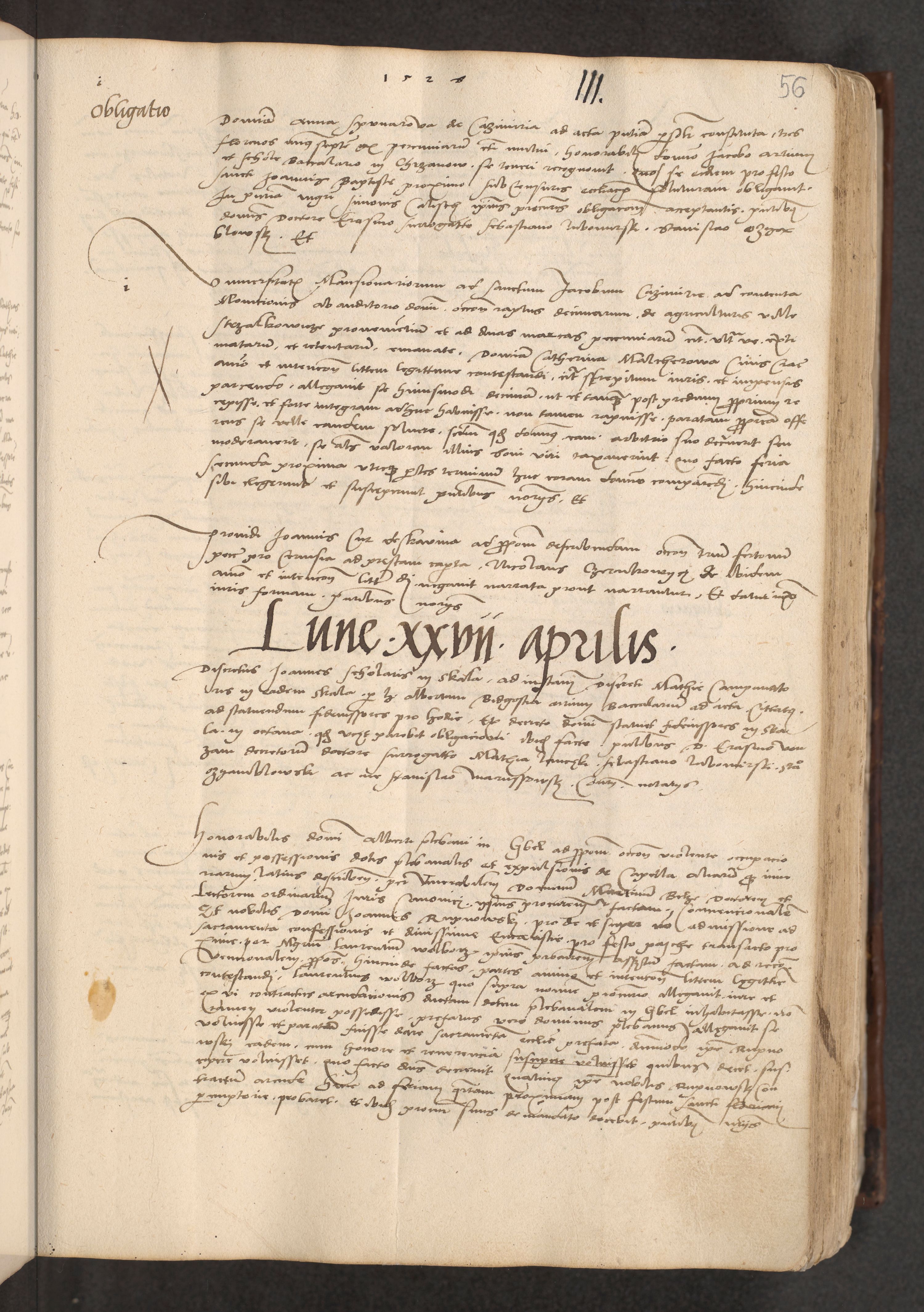 INRI. Acta actorum, obligacionum et sentenciarum tam interlocutoriarum quam diffinitivarum coram reverendo patre ac egregio viro domino Jacobo Erciss[o]wski decretorum doctorem, canonico et officiali generali Cracoviensi ad annum Domini 1528, indicionem primam, pontificatus sanctissimi in Christo patris et domini domini Clementis divina probidendcia pape seprtimi, annum quintum, per Stanislaum de Mordi legalem consistorii notarium omine felici inchoantur
