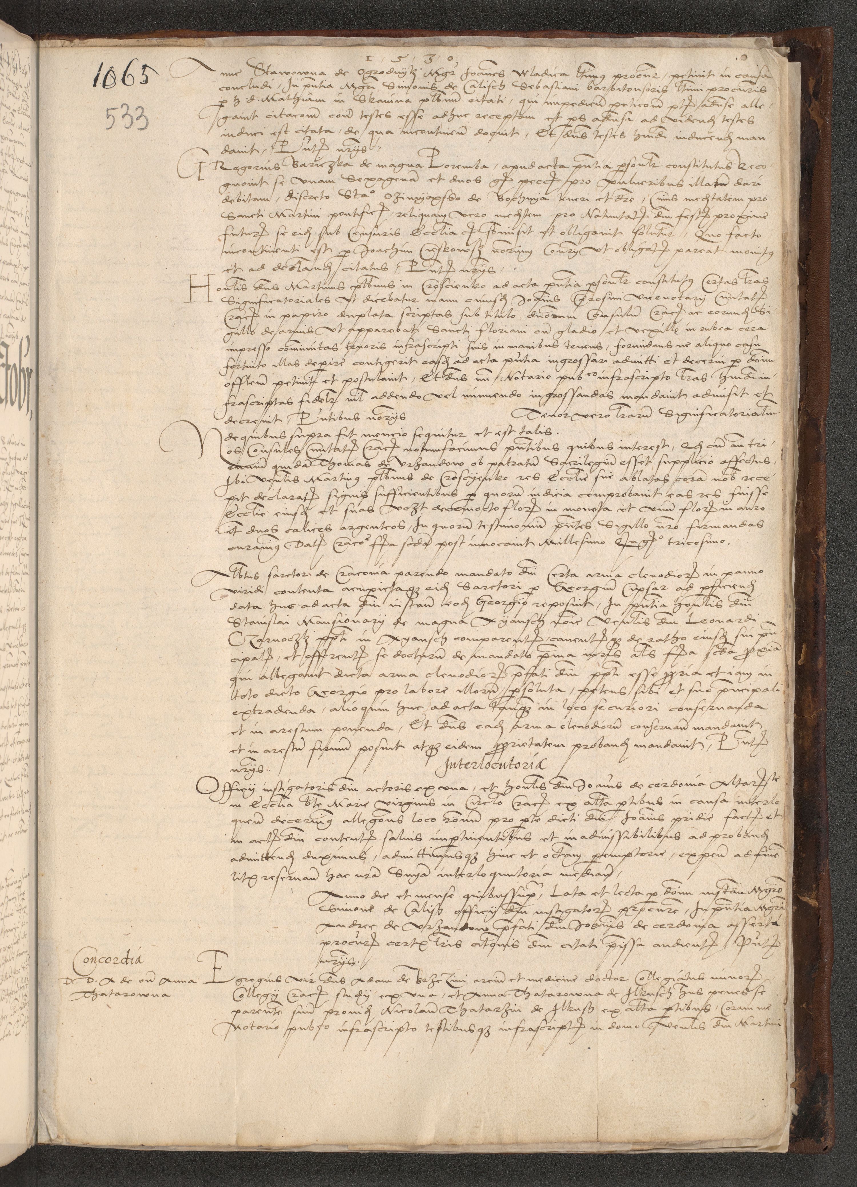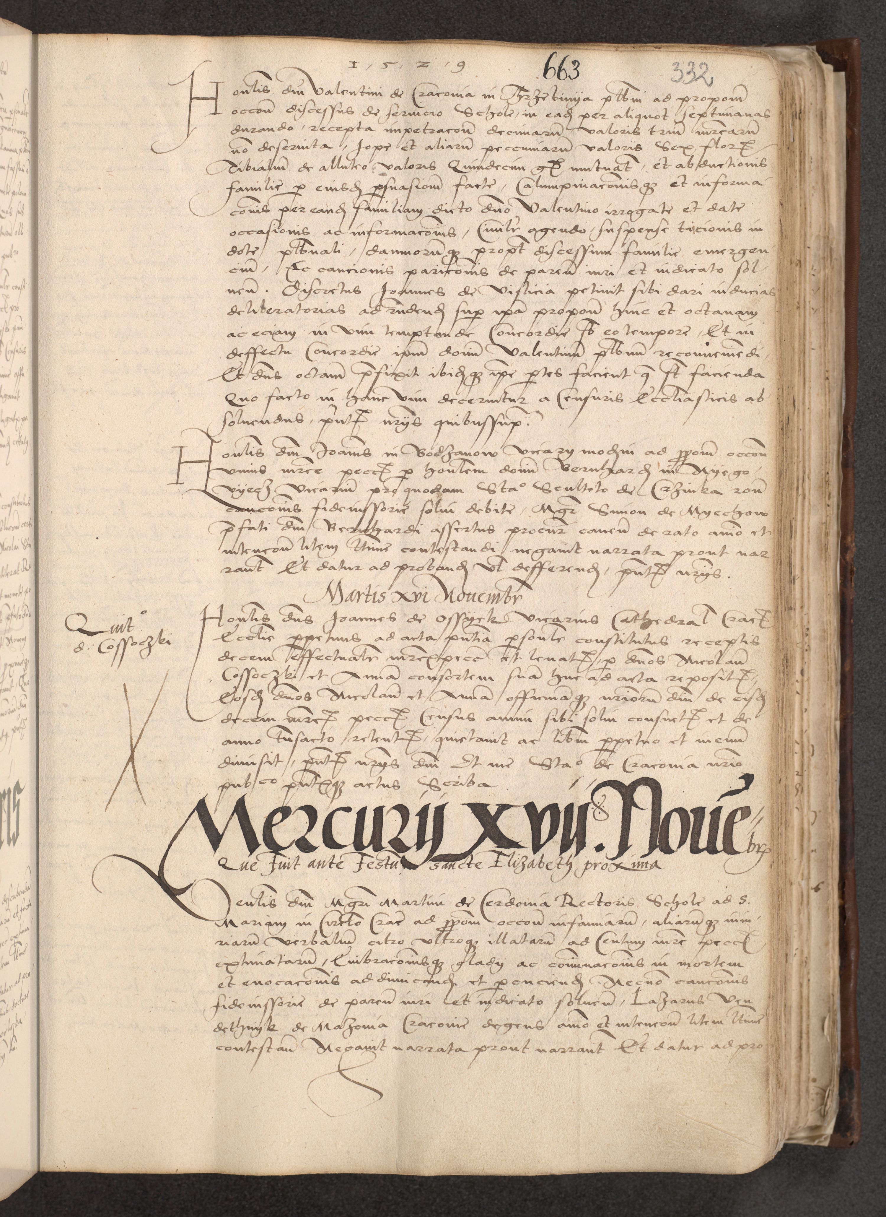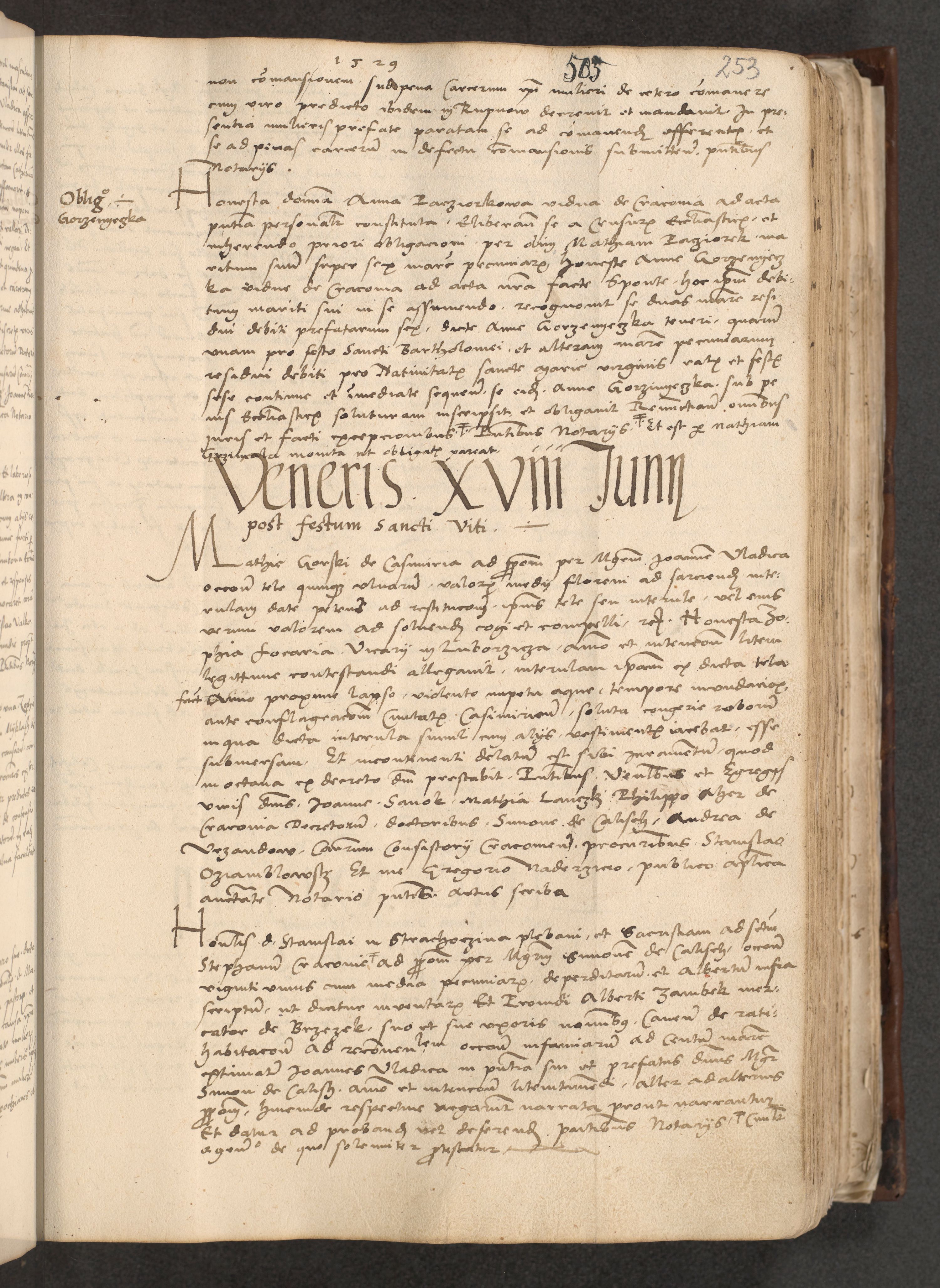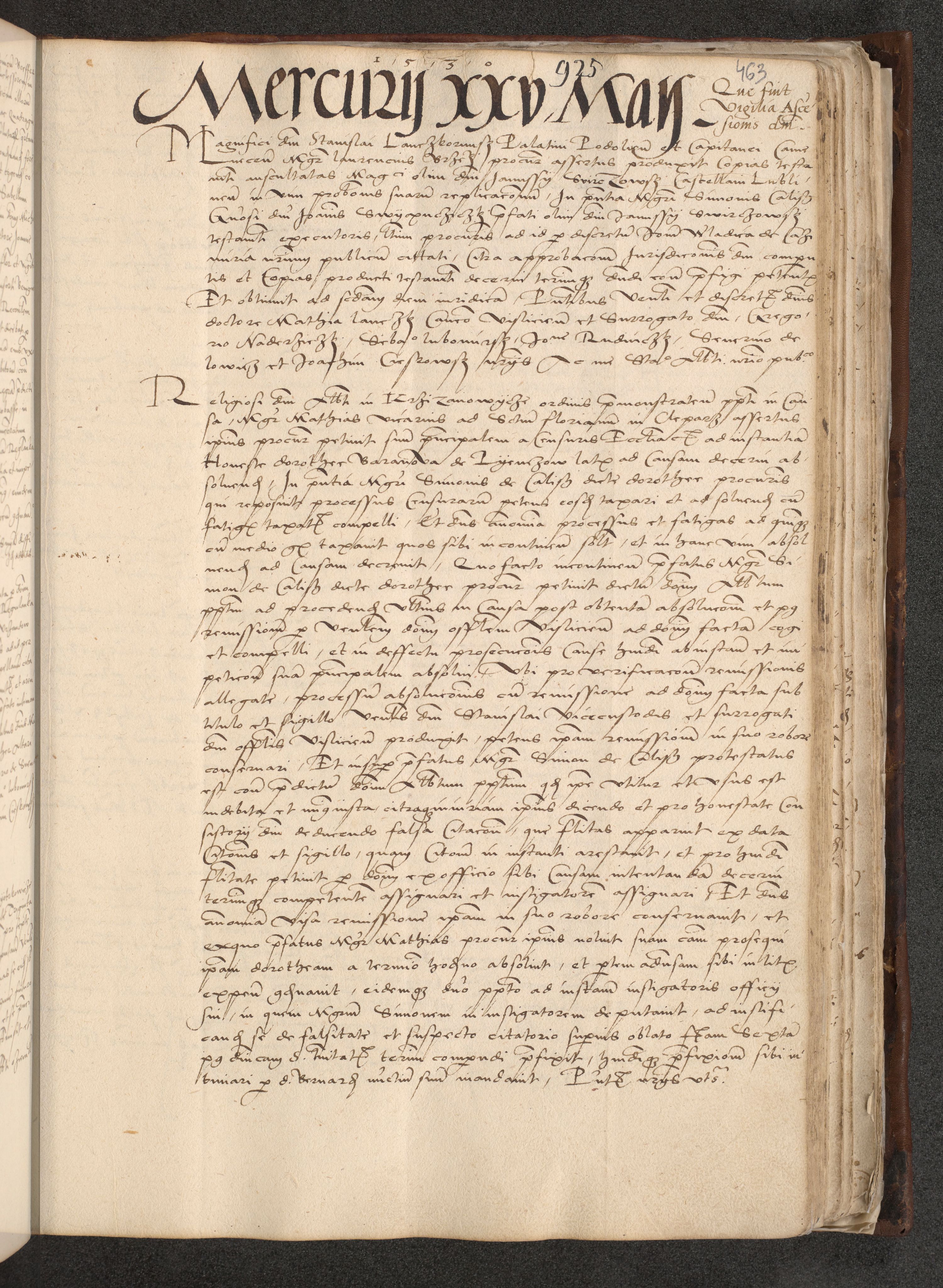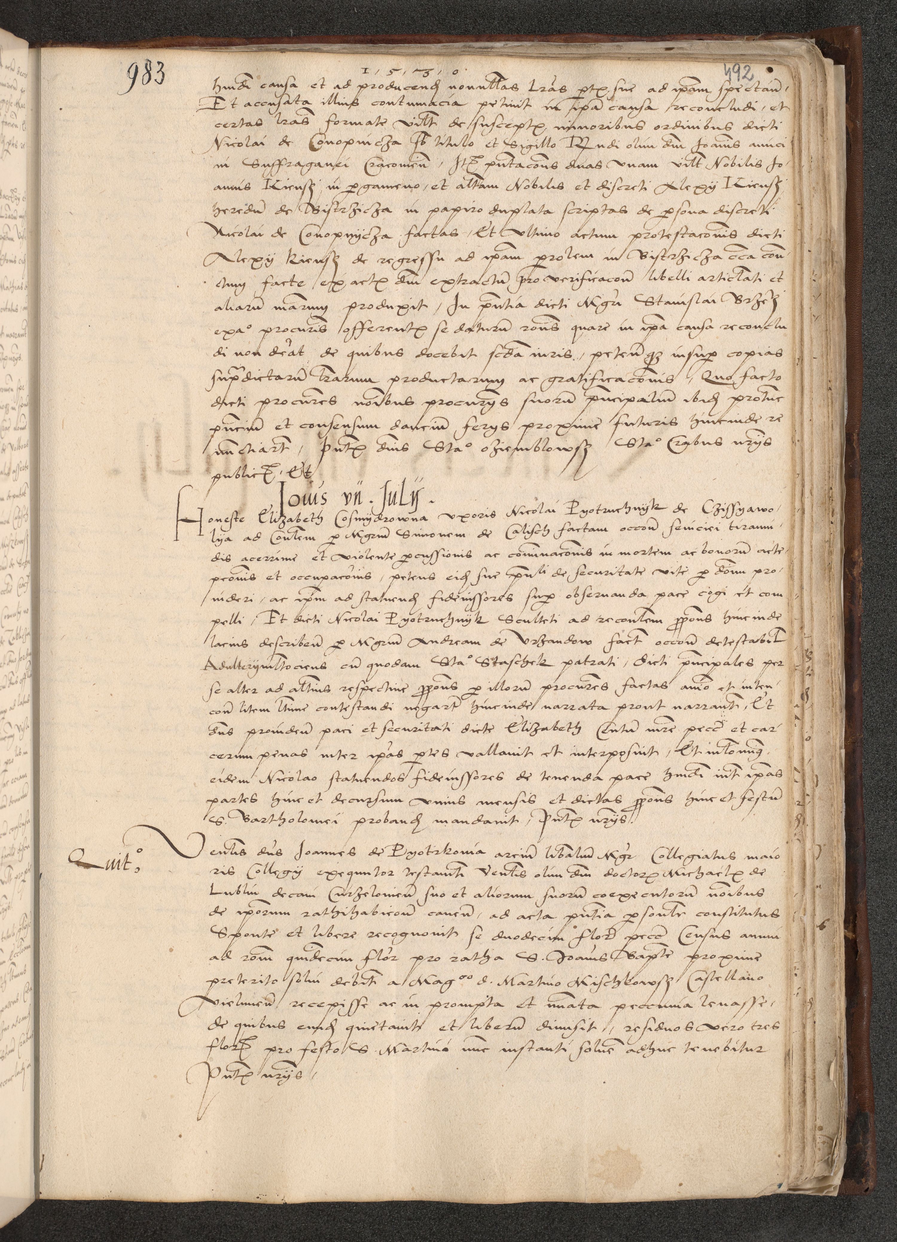 INRI. Acta actorum, obligacionum et sentenciarum tam interlocutoriarum quam diffinitivarum coram reverendo patre ac egregio viro domino Jacobo Erciss[o]wski decretorum doctorem, canonico et officiali generali Cracoviensi ad annum Domini 1528, indicionem primam, pontificatus sanctissimi in Christo patris et domini domini Clementis divina probidendcia pape seprtimi, annum quintum, per Stanislaum de Mordi legalem consistorii notarium omine felici inchoantur