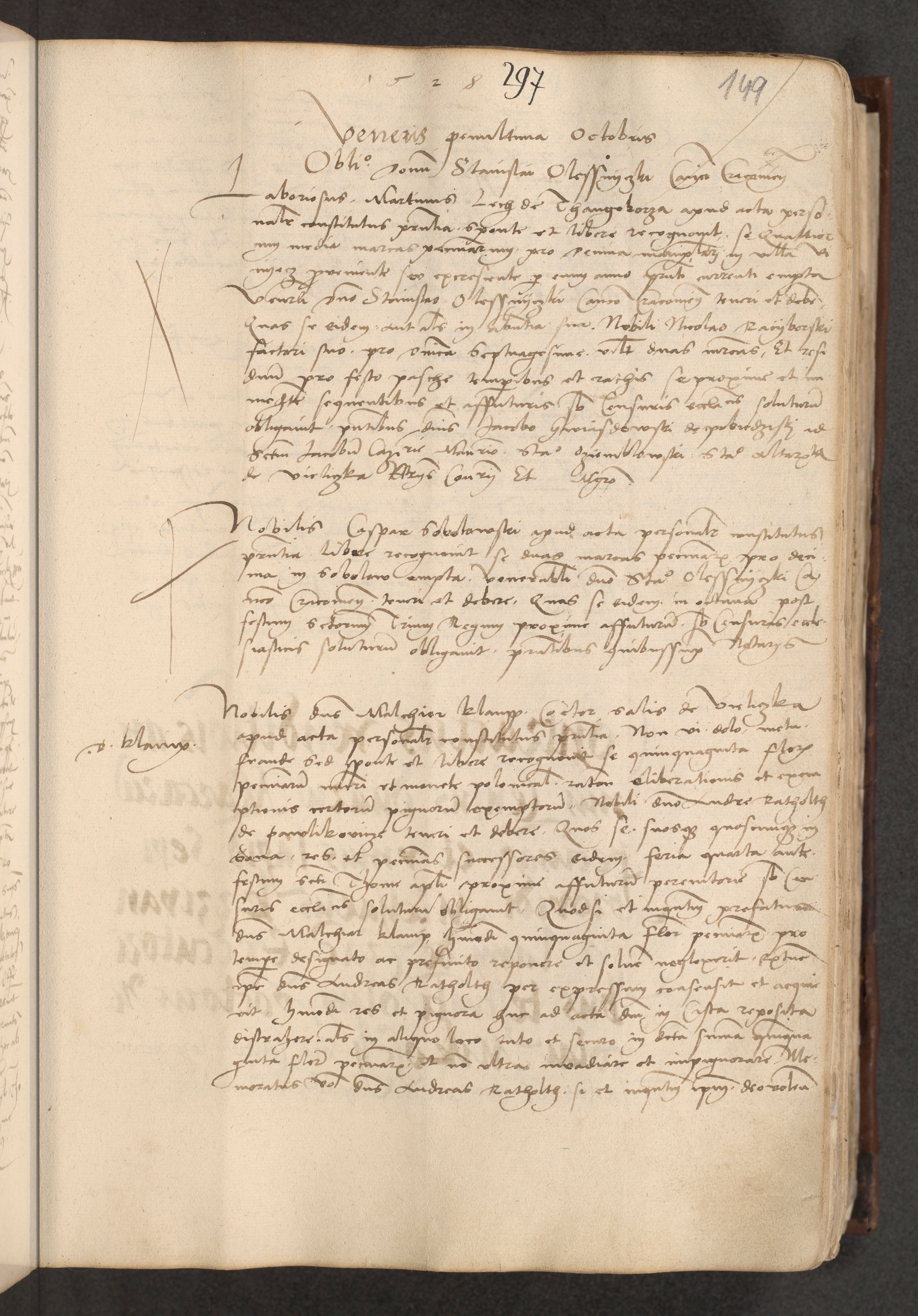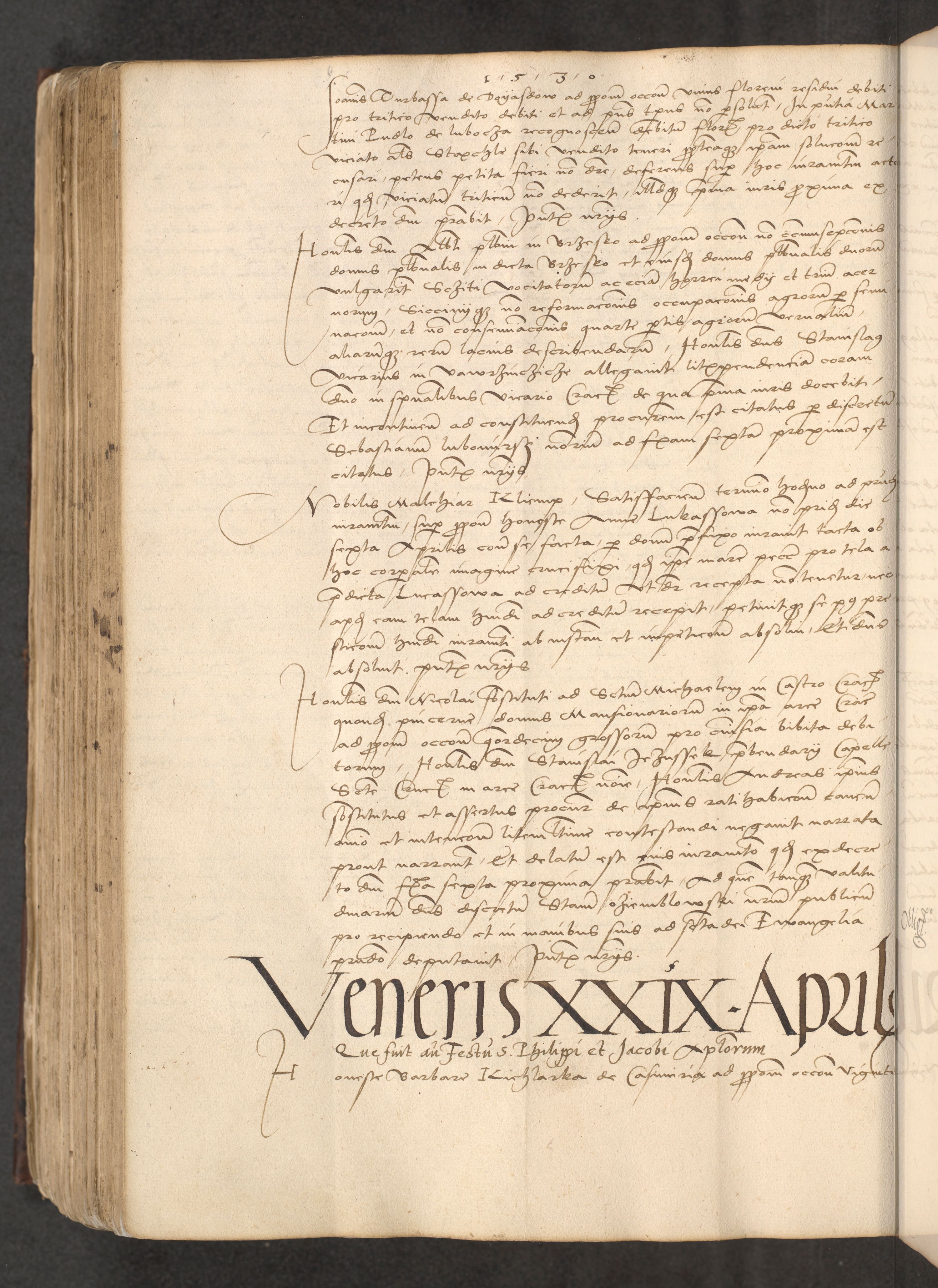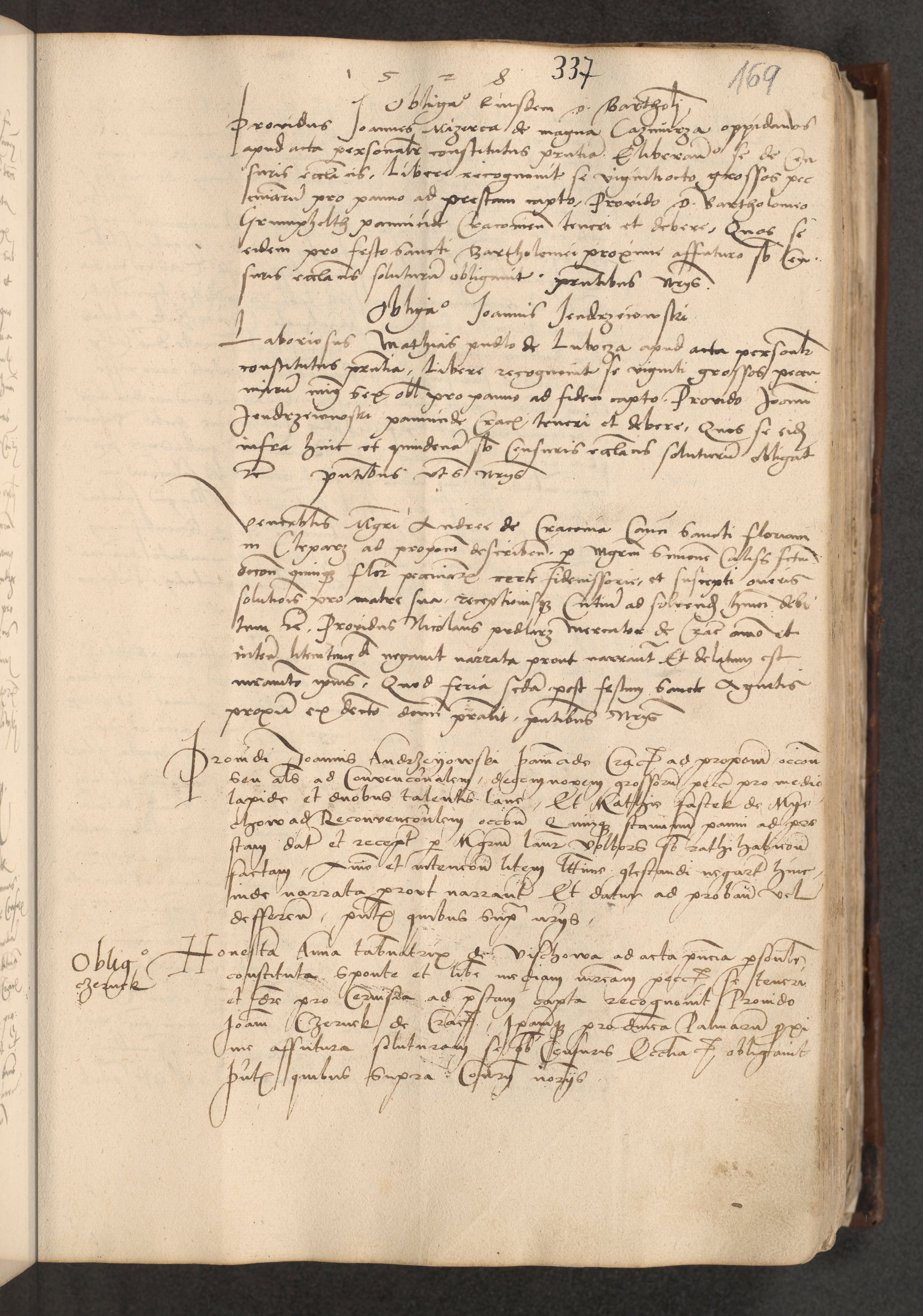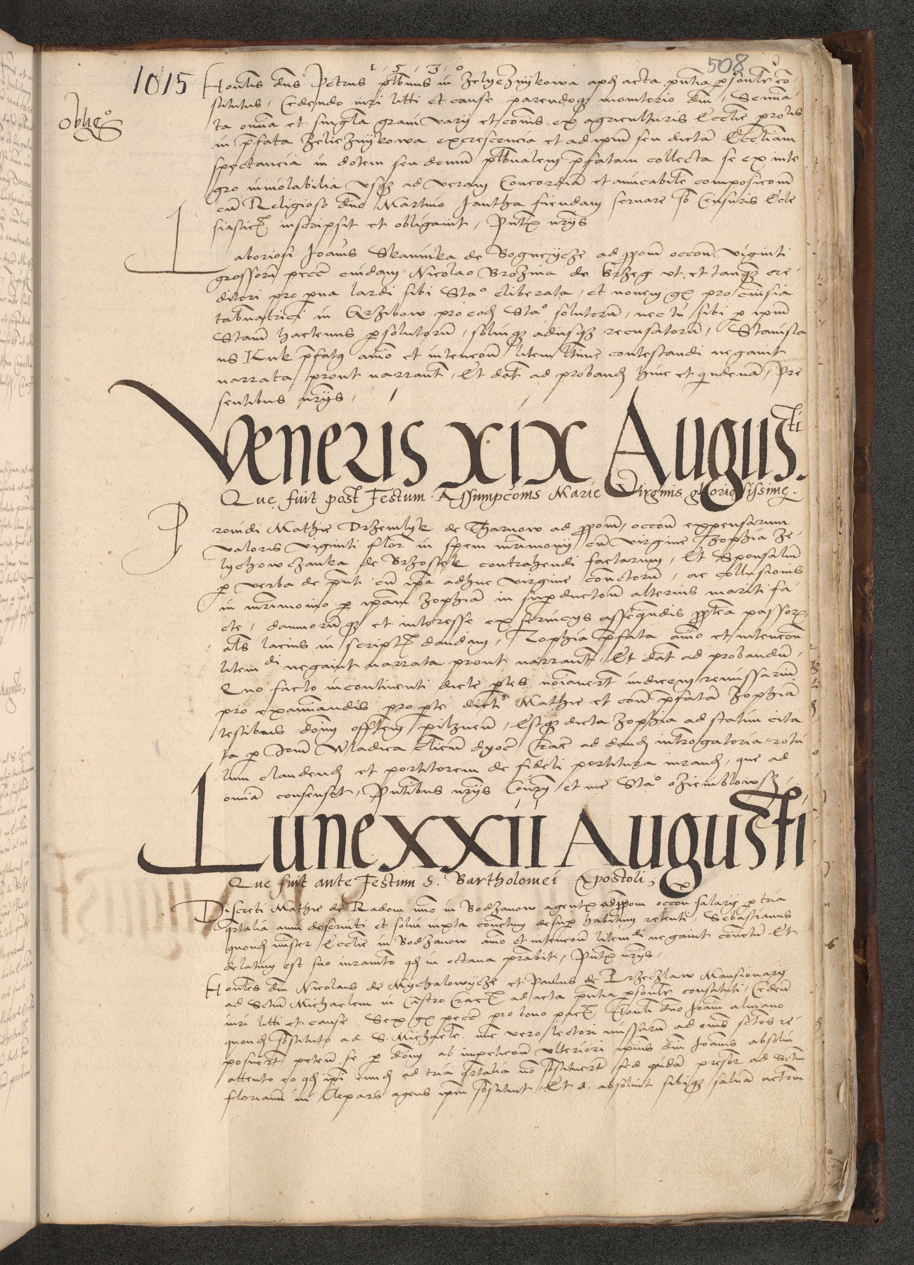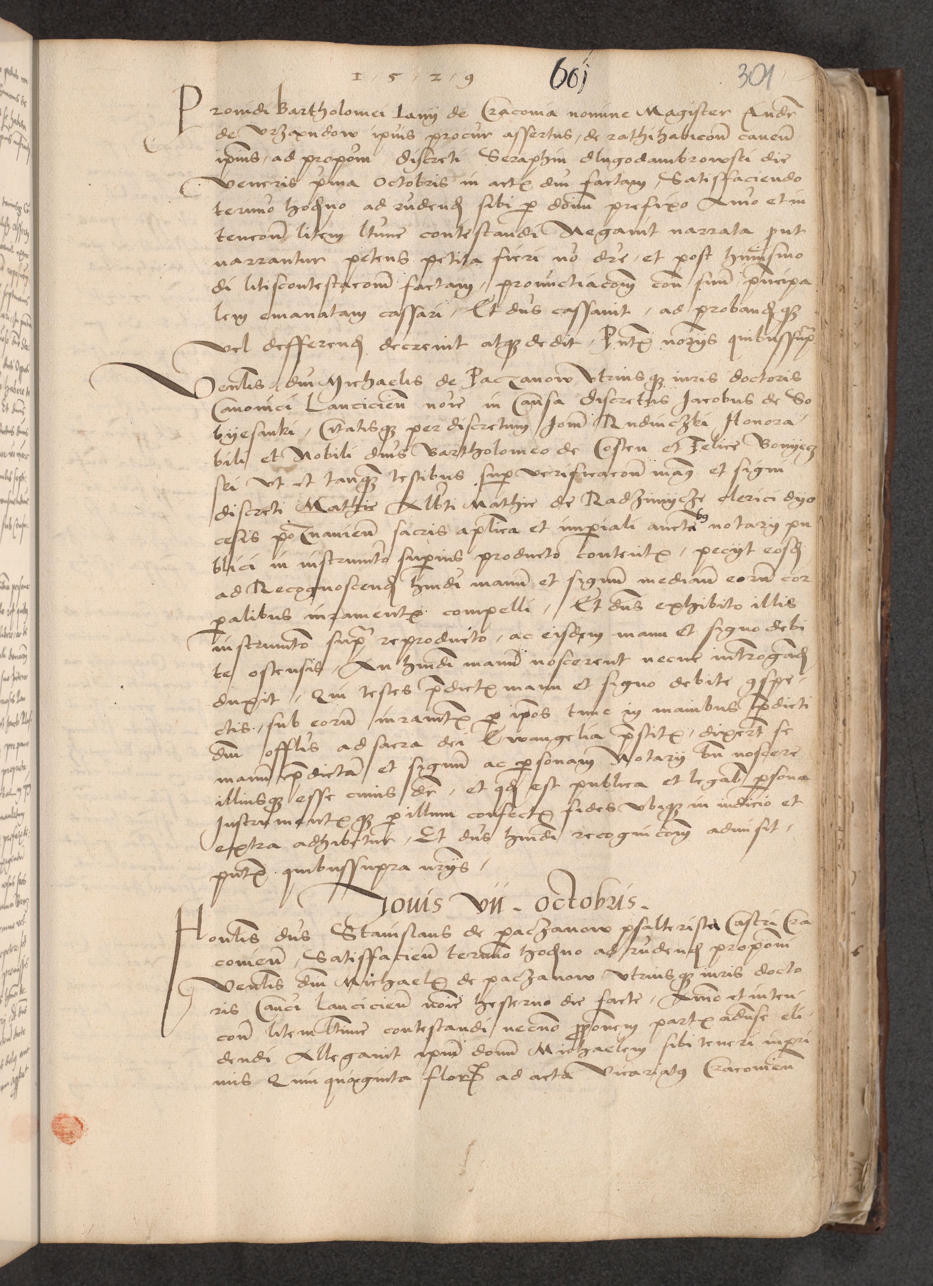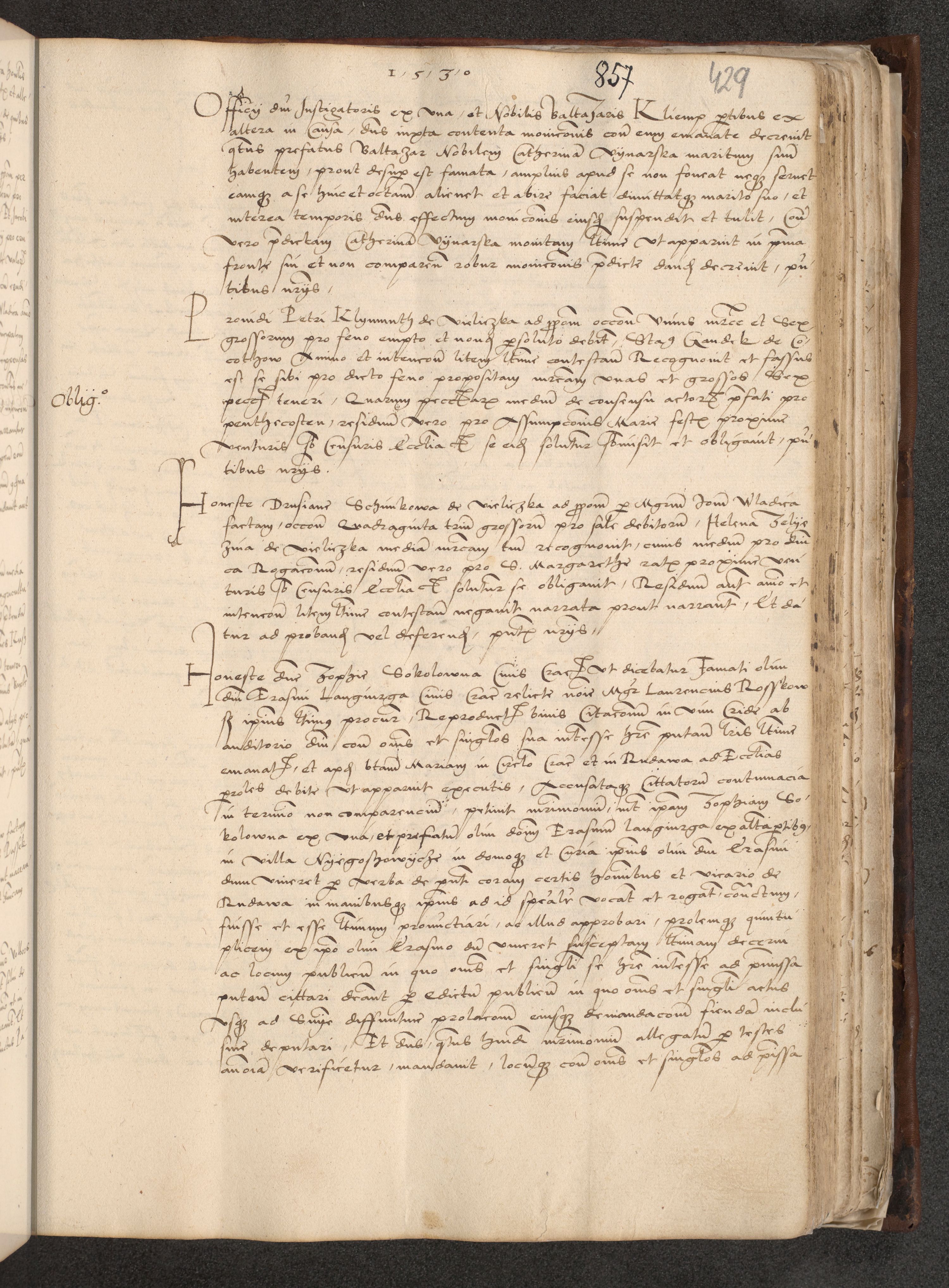 INRI. Acta actorum, obligacionum et sentenciarum tam interlocutoriarum quam diffinitivarum coram reverendo patre ac egregio viro domino Jacobo Erciss[o]wski decretorum doctorem, canonico et officiali generali Cracoviensi ad annum Domini 1528, indicionem primam, pontificatus sanctissimi in Christo patris et domini domini Clementis divina probidendcia pape seprtimi, annum quintum, per Stanislaum de Mordi legalem consistorii notarium omine felici inchoantur