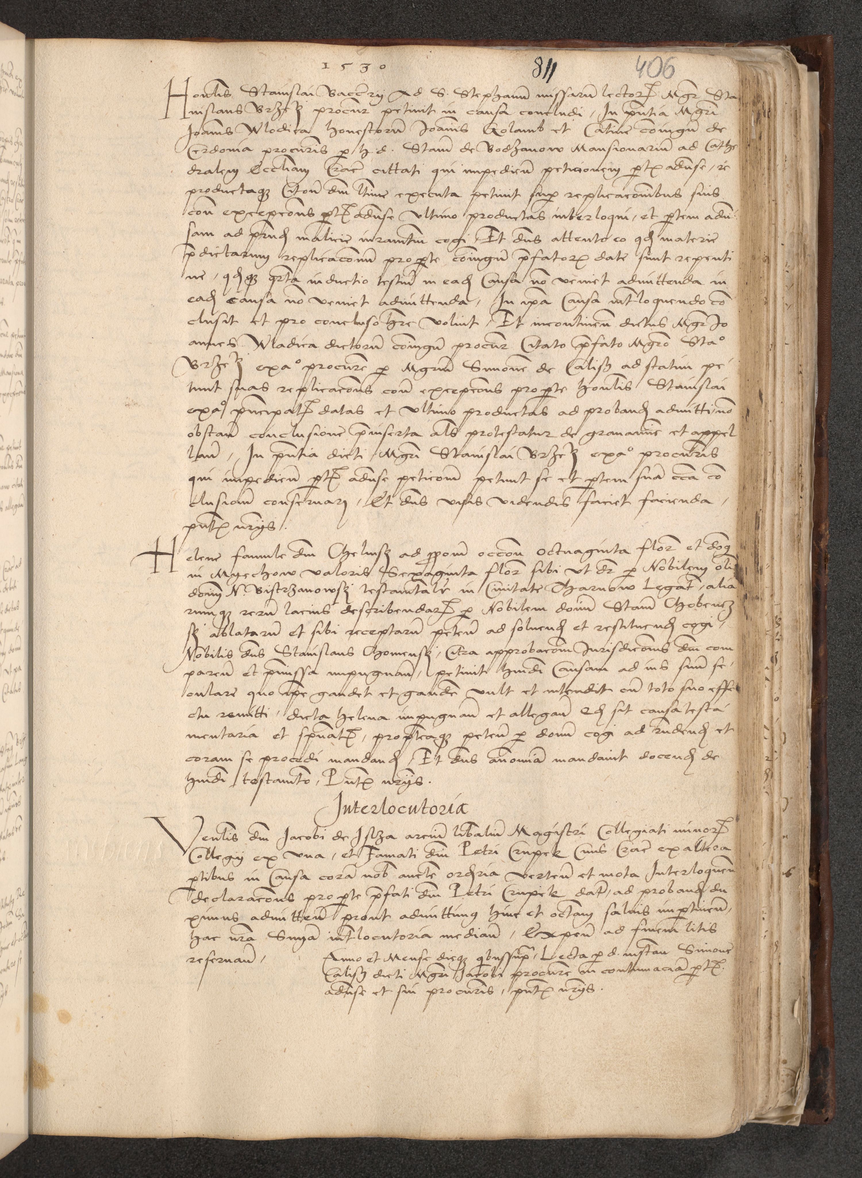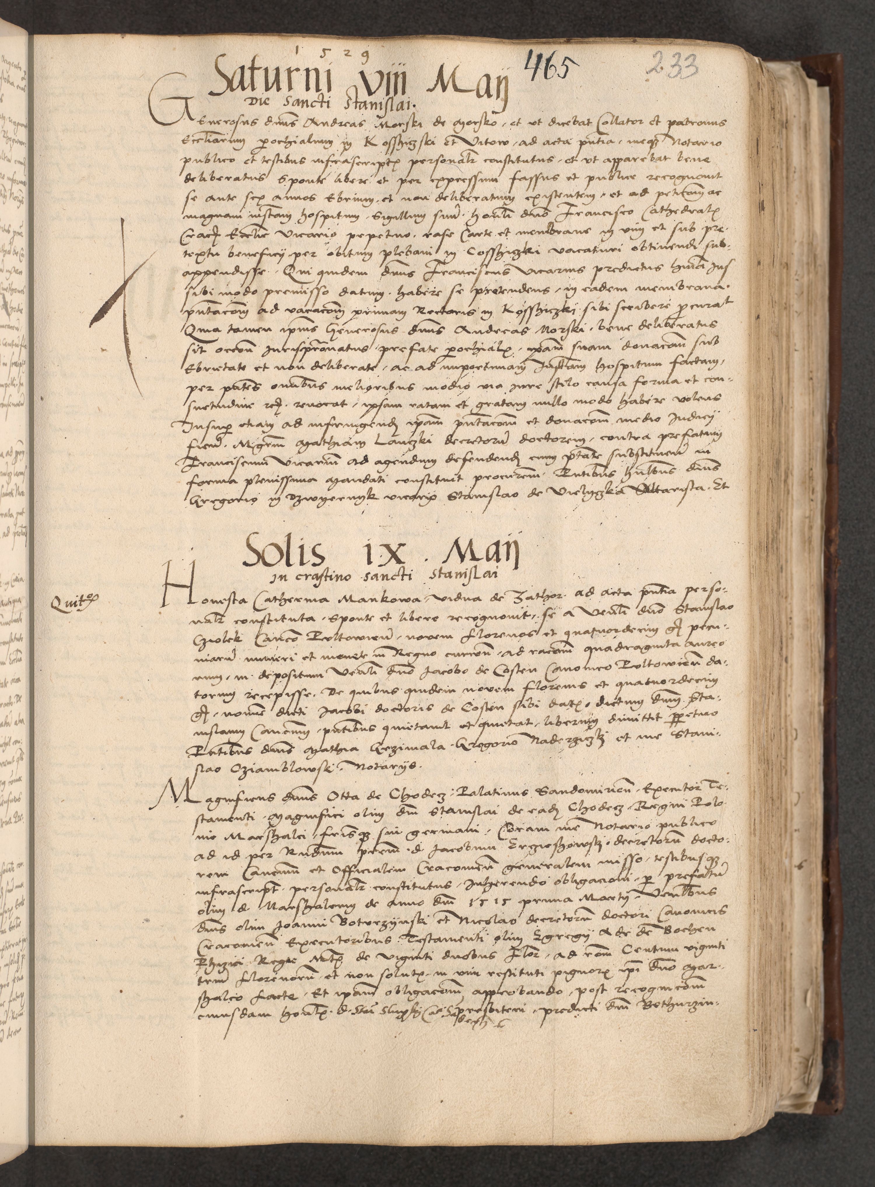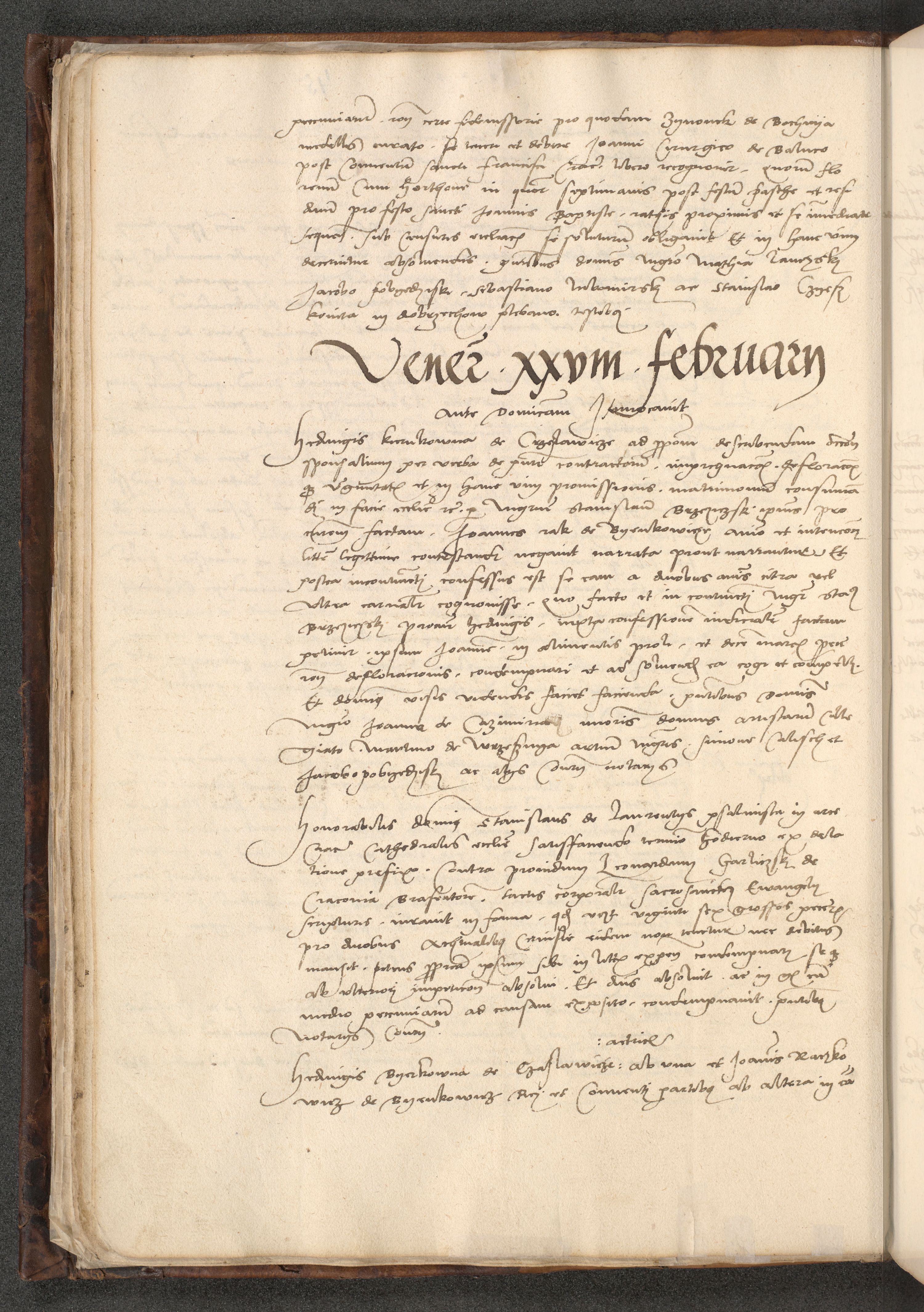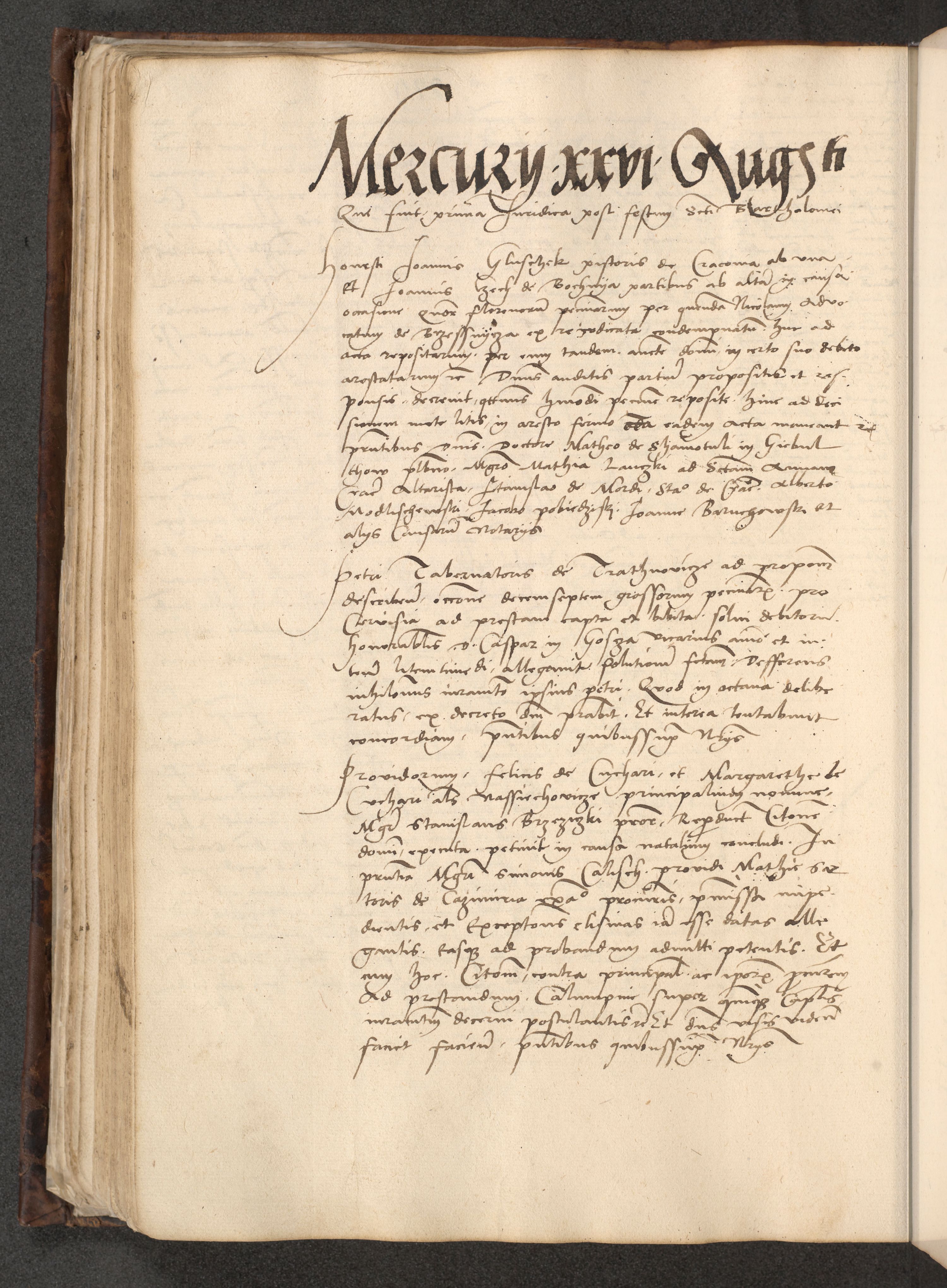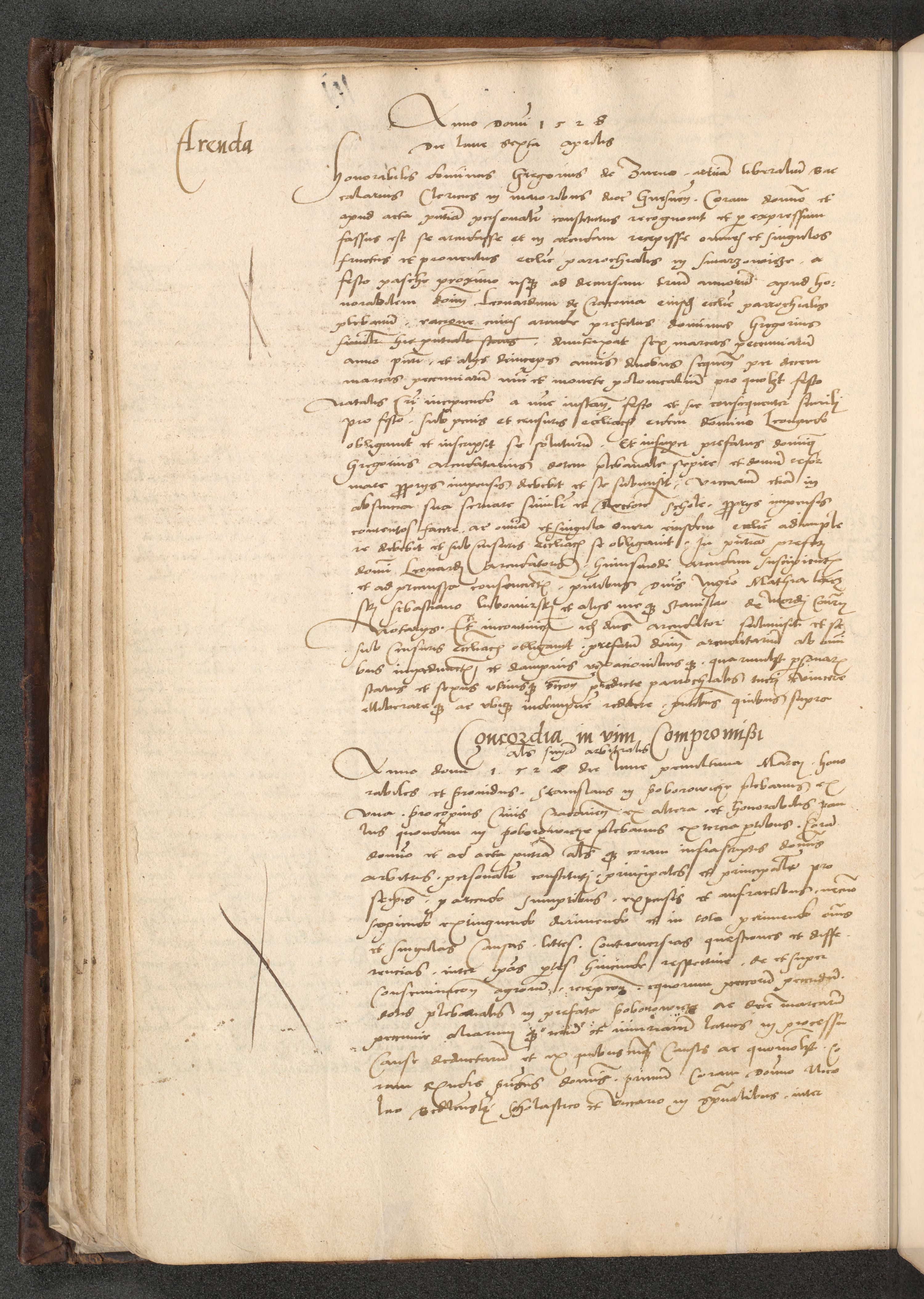 INRI. Acta actorum, obligacionum et sentenciarum tam interlocutoriarum quam diffinitivarum coram reverendo patre ac egregio viro domino Jacobo Erciss[o]wski decretorum doctorem, canonico et officiali generali Cracoviensi ad annum Domini 1528, indicionem primam, pontificatus sanctissimi in Christo patris et domini domini Clementis divina probidendcia pape seprtimi, annum quintum, per Stanislaum de Mordi legalem consistorii notarium omine felici inchoantur