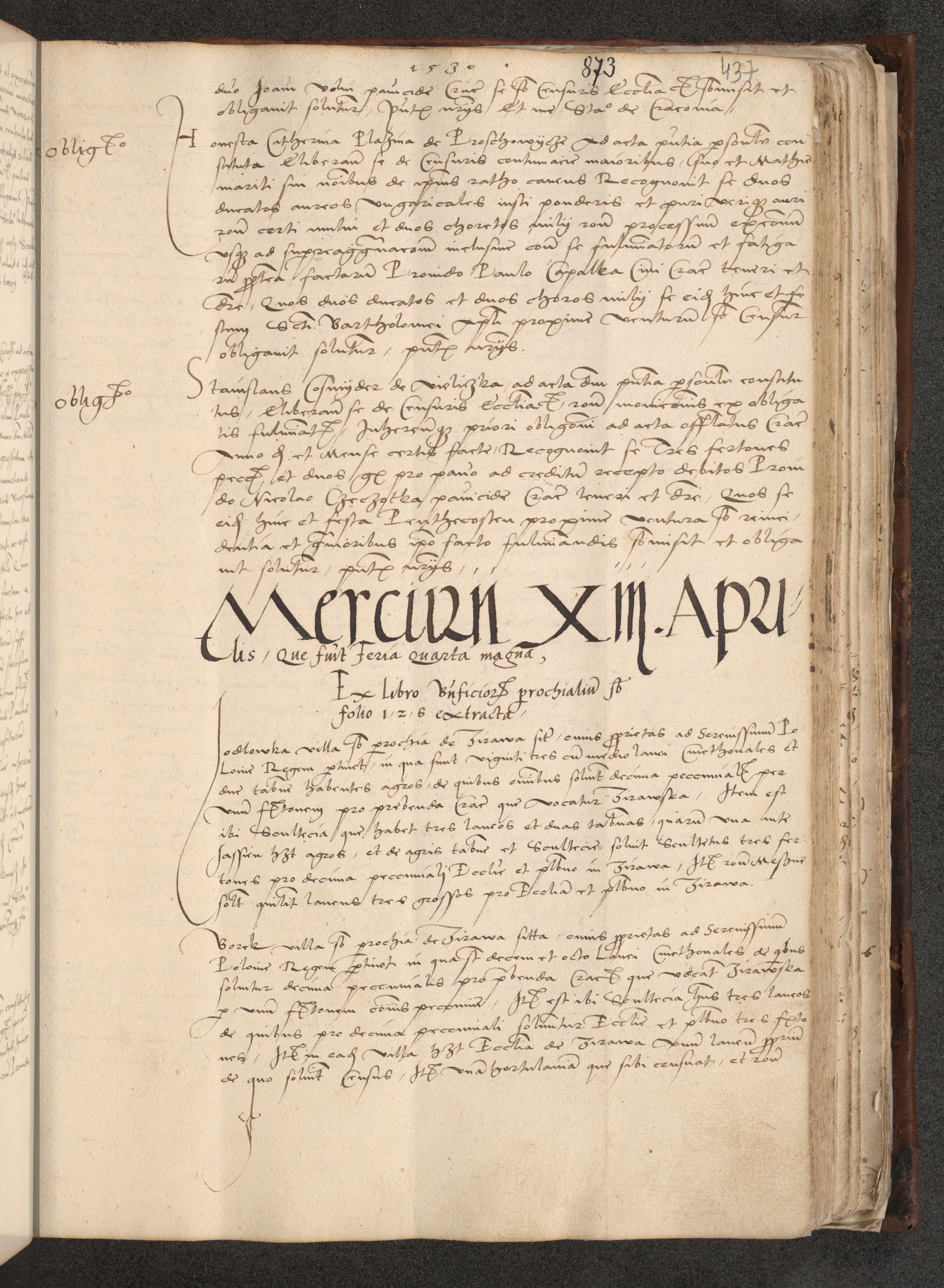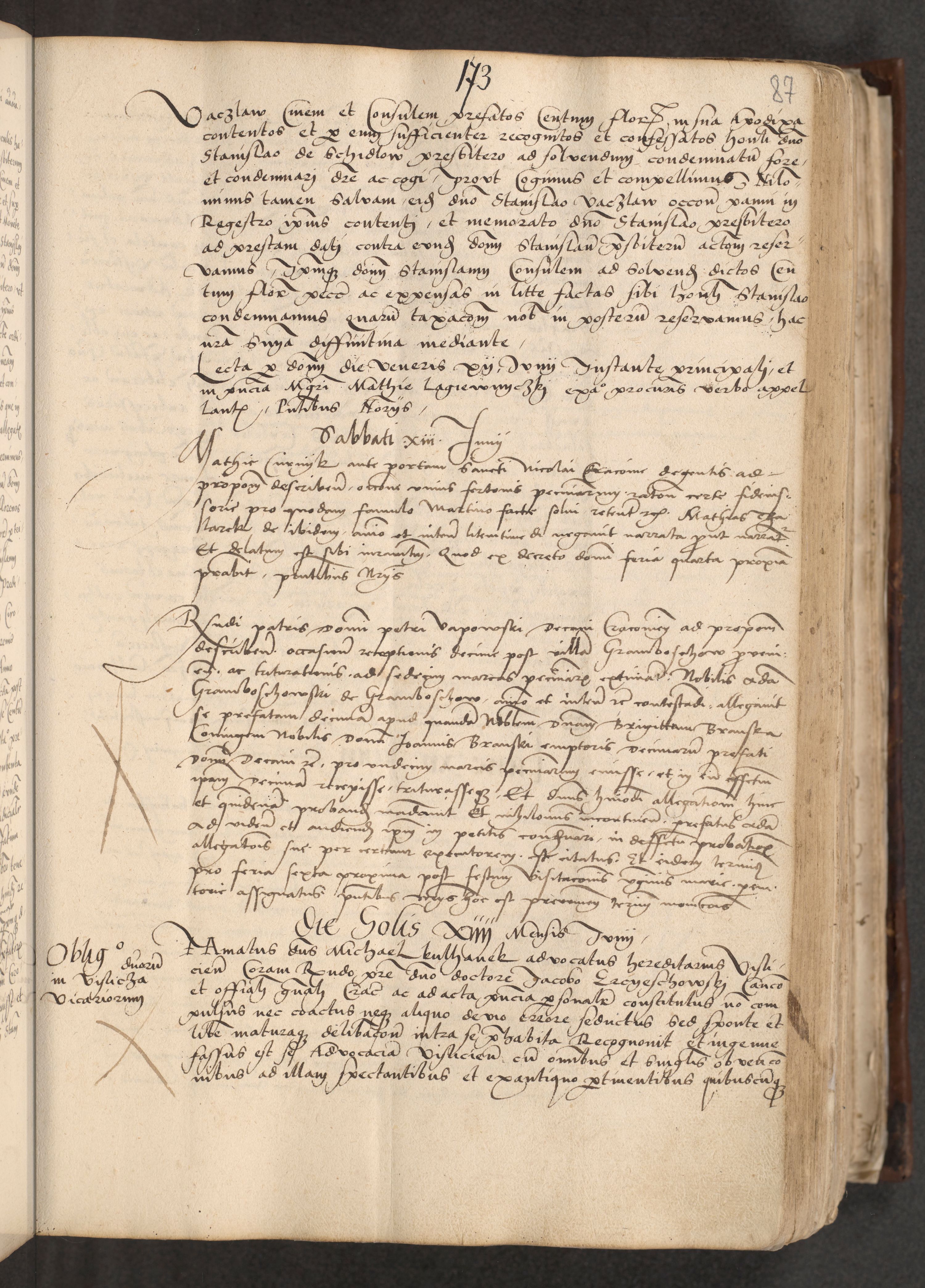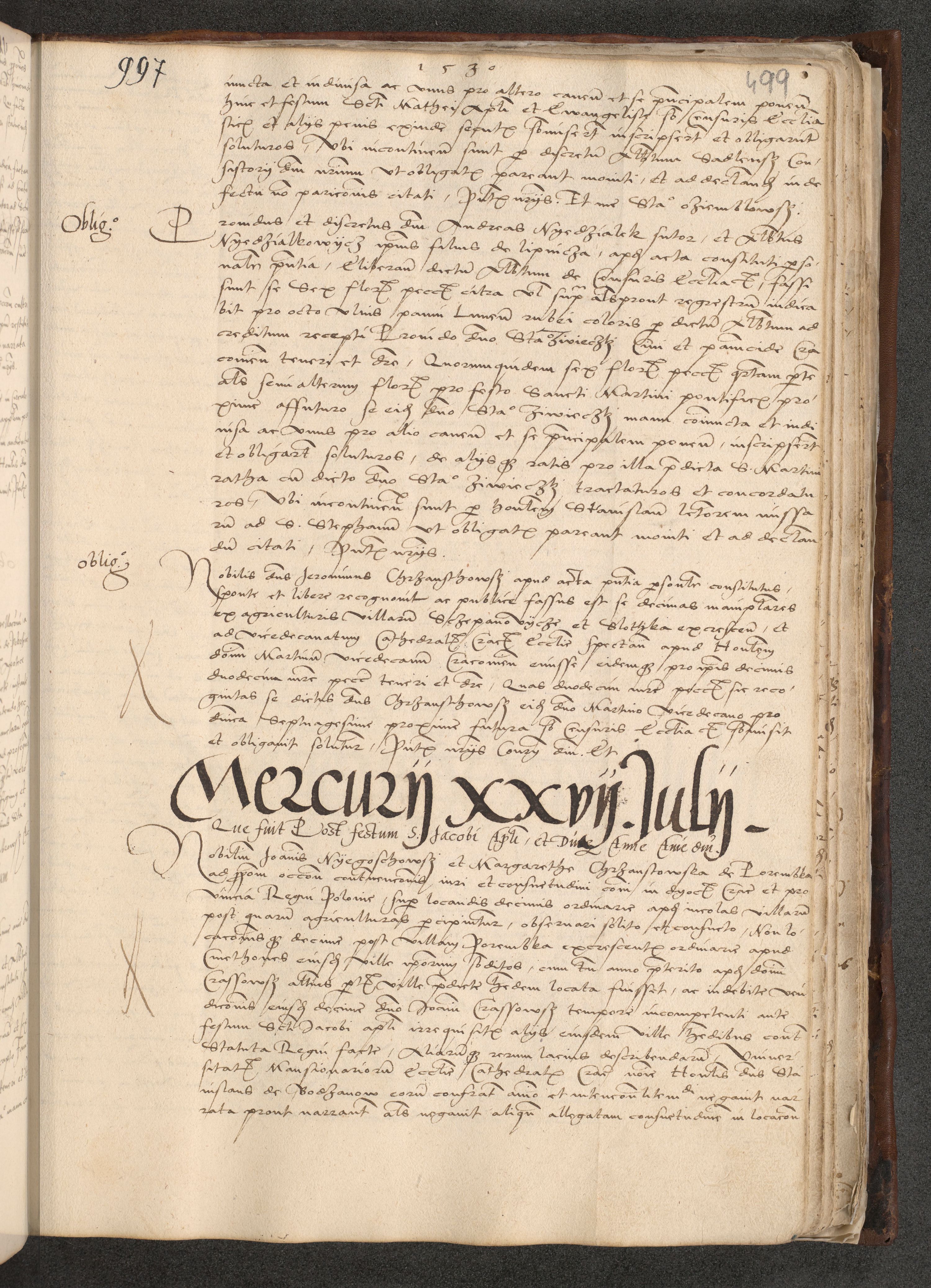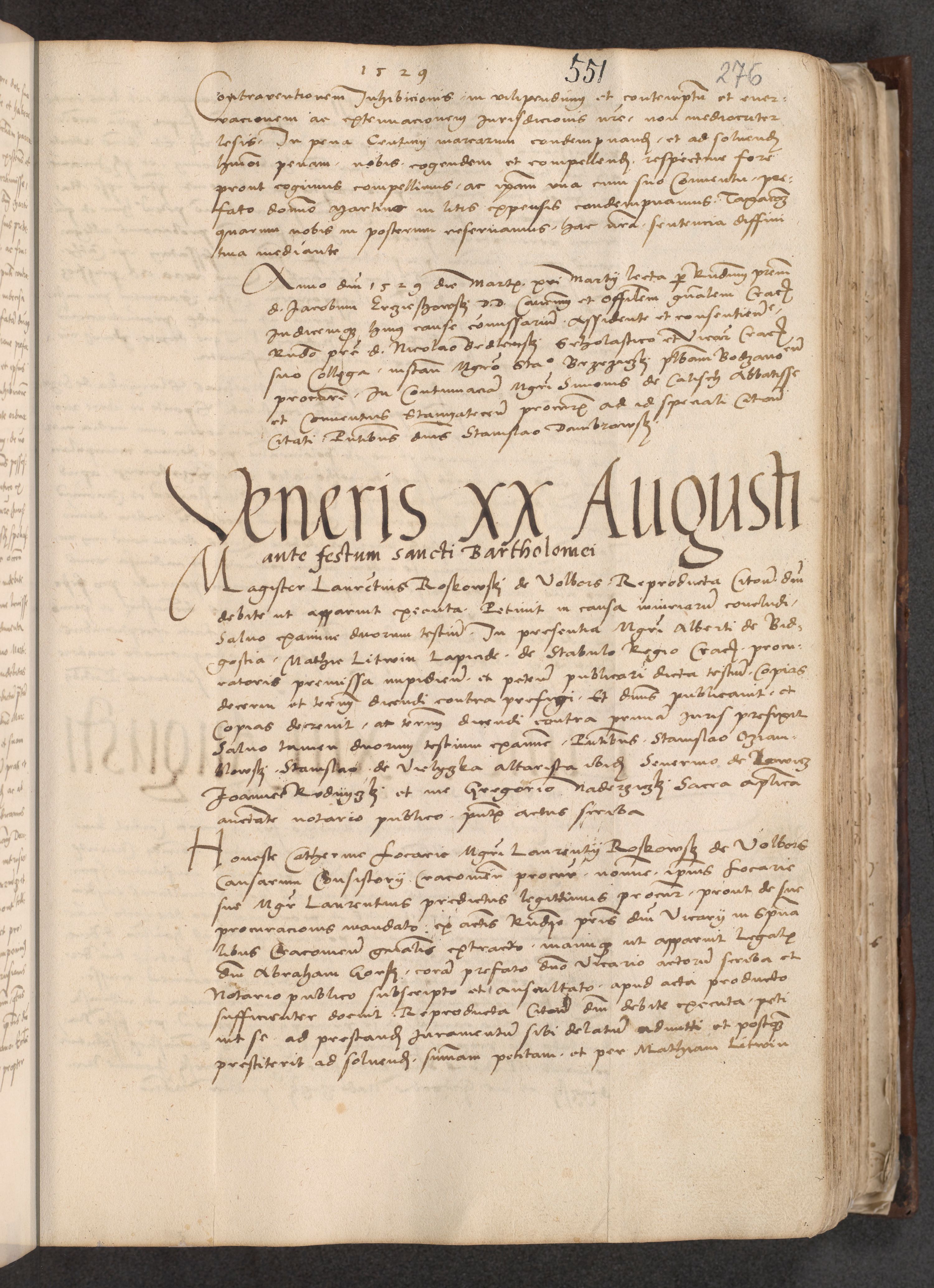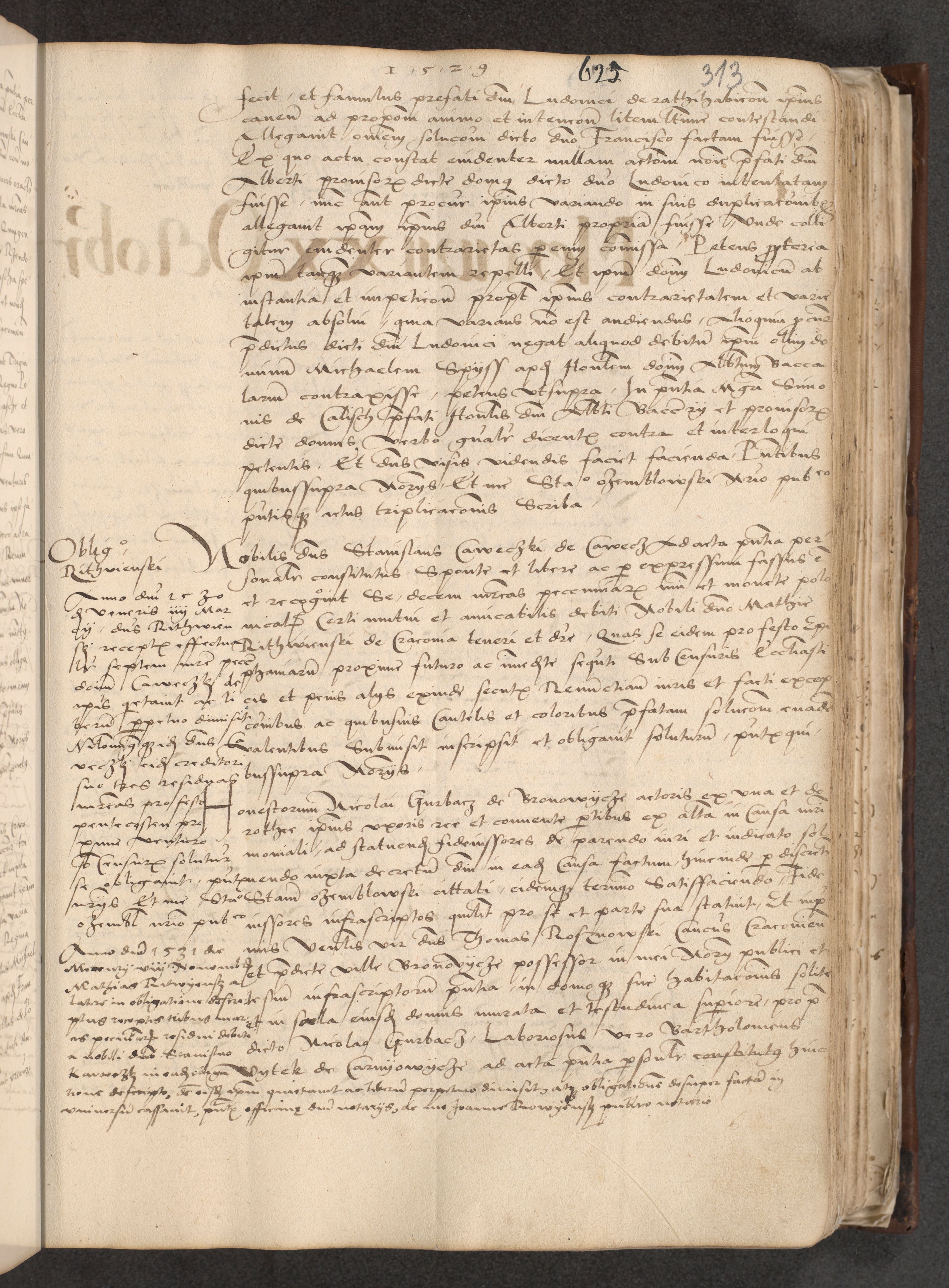 INRI. Acta actorum, obligacionum et sentenciarum tam interlocutoriarum quam diffinitivarum coram reverendo patre ac egregio viro domino Jacobo Erciss[o]wski decretorum doctorem, canonico et officiali generali Cracoviensi ad annum Domini 1528, indicionem primam, pontificatus sanctissimi in Christo patris et domini domini Clementis divina probidendcia pape seprtimi, annum quintum, per Stanislaum de Mordi legalem consistorii notarium omine felici inchoantur