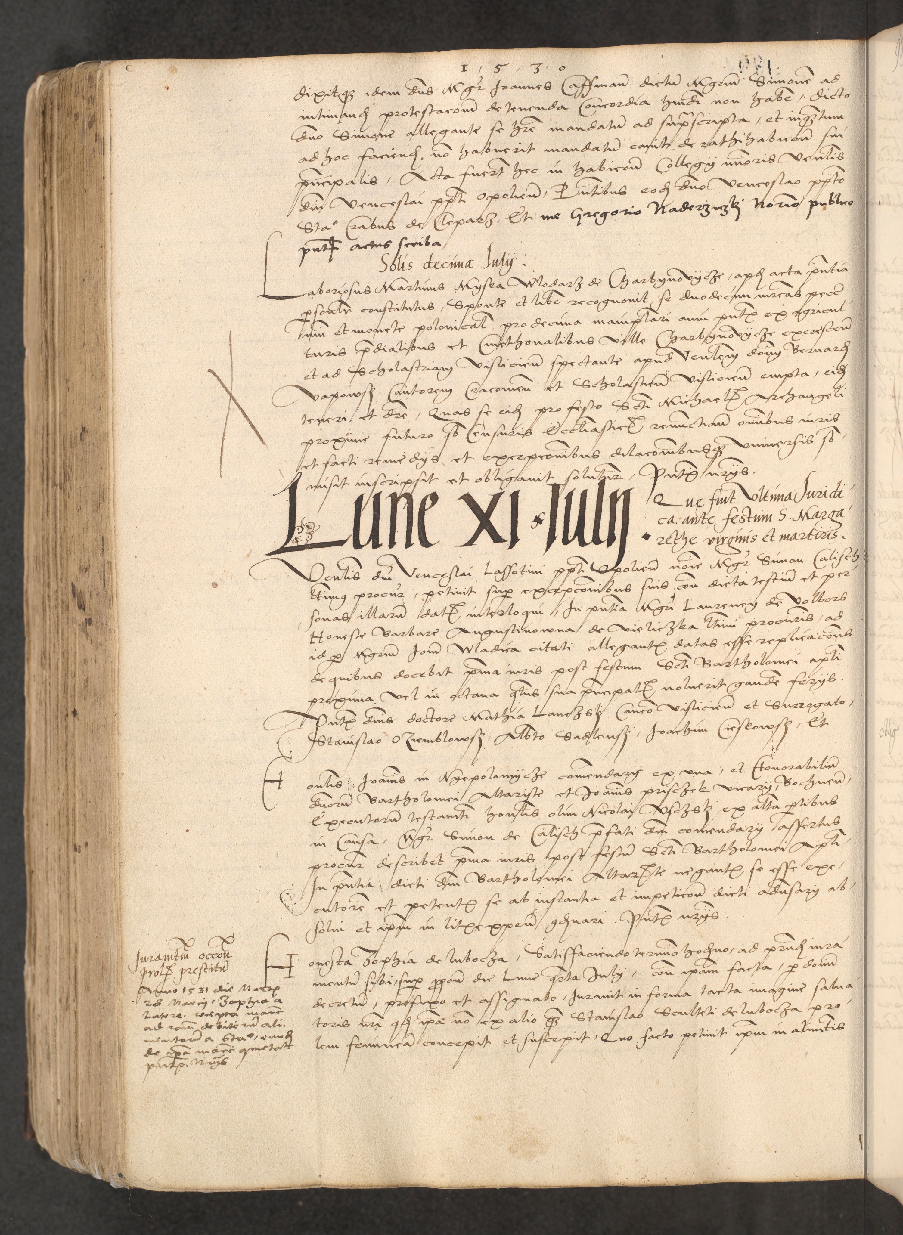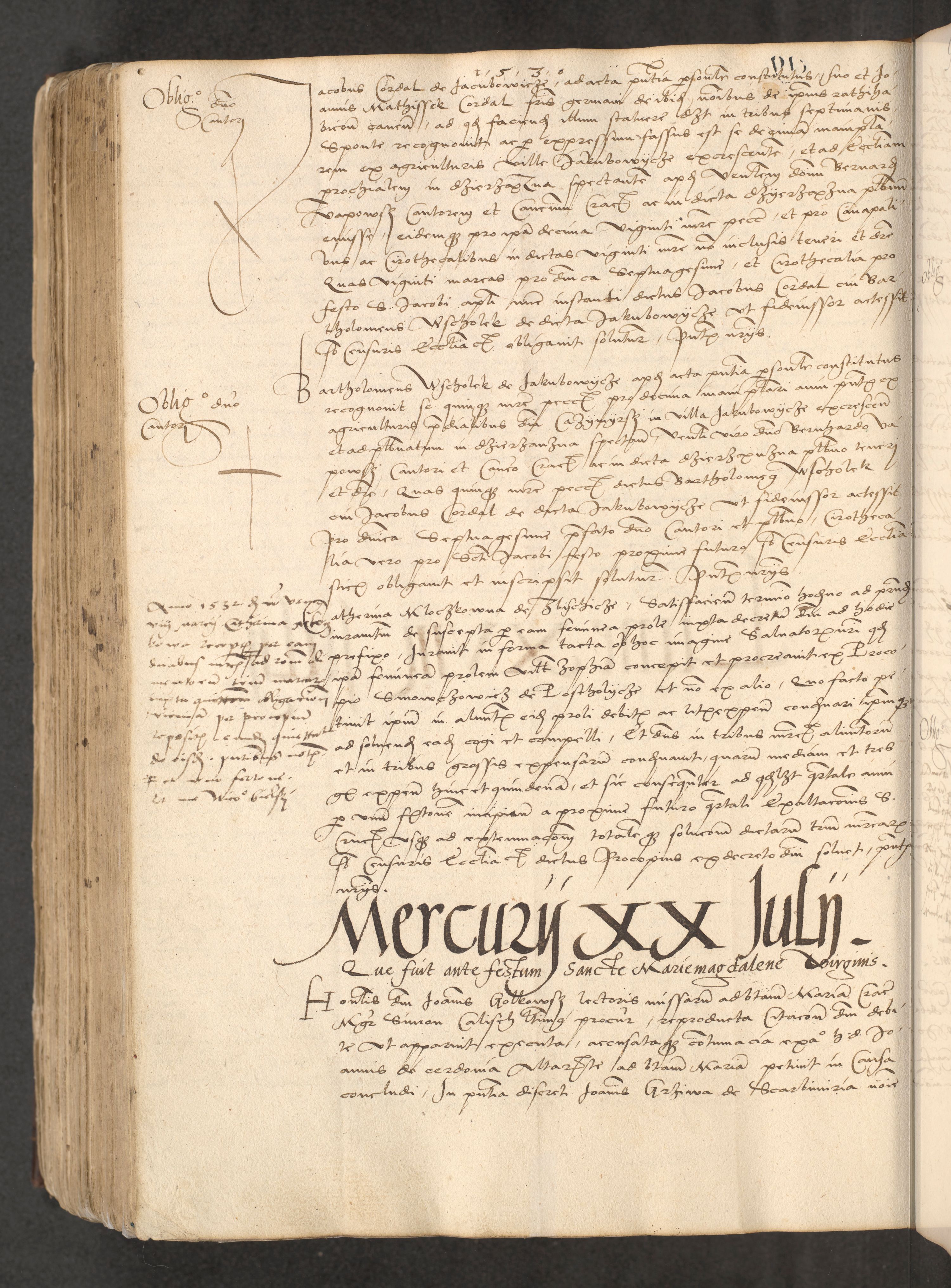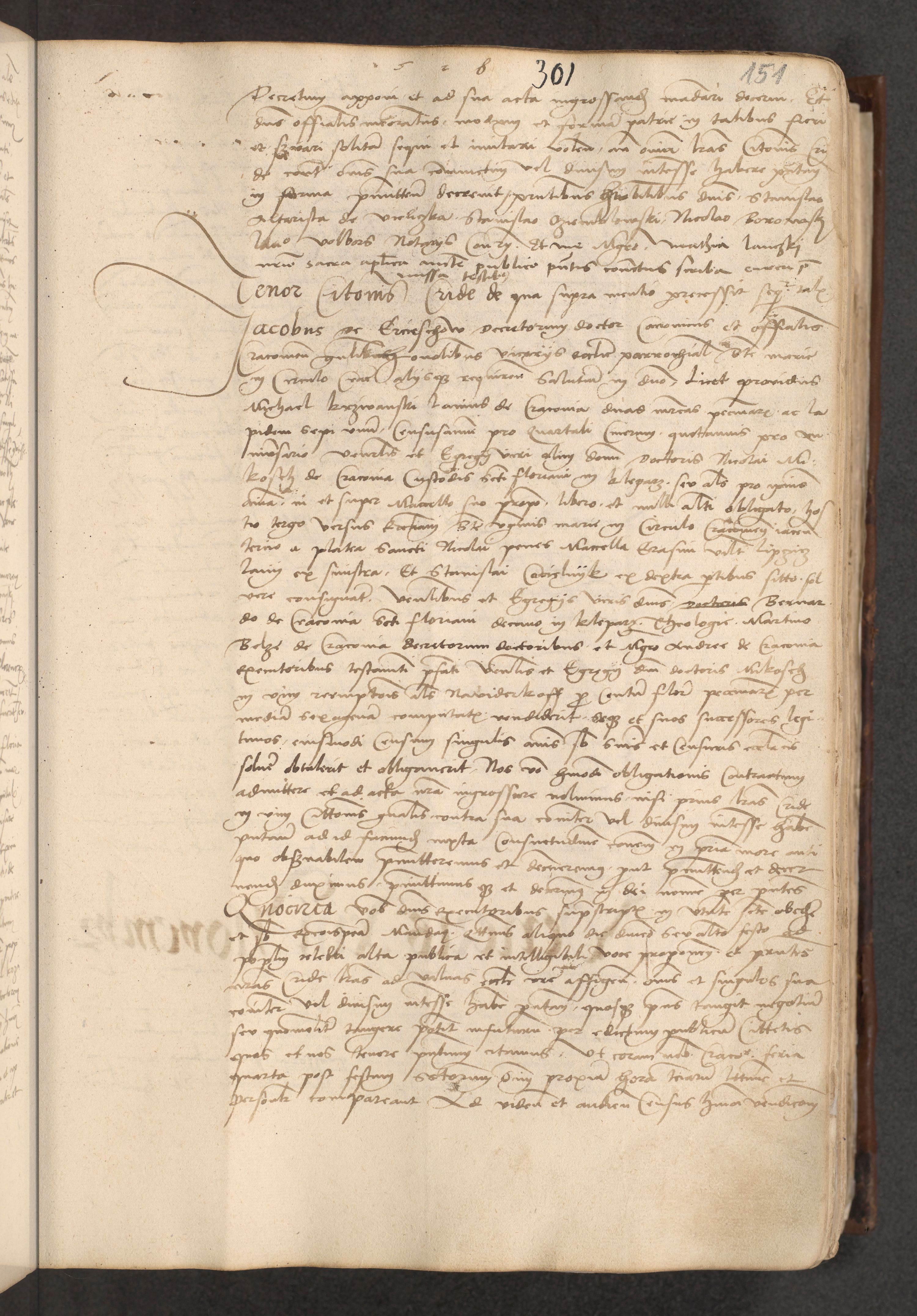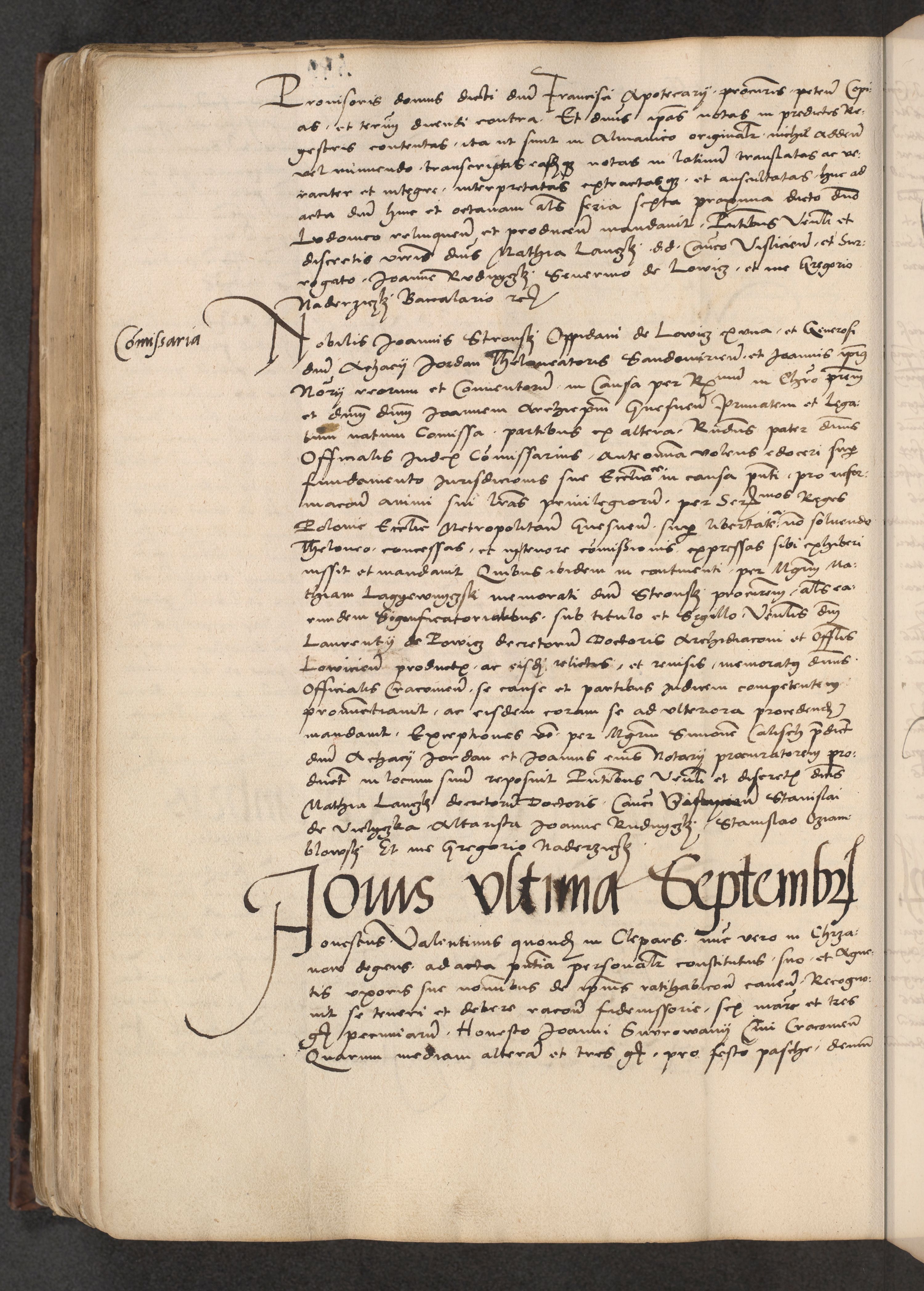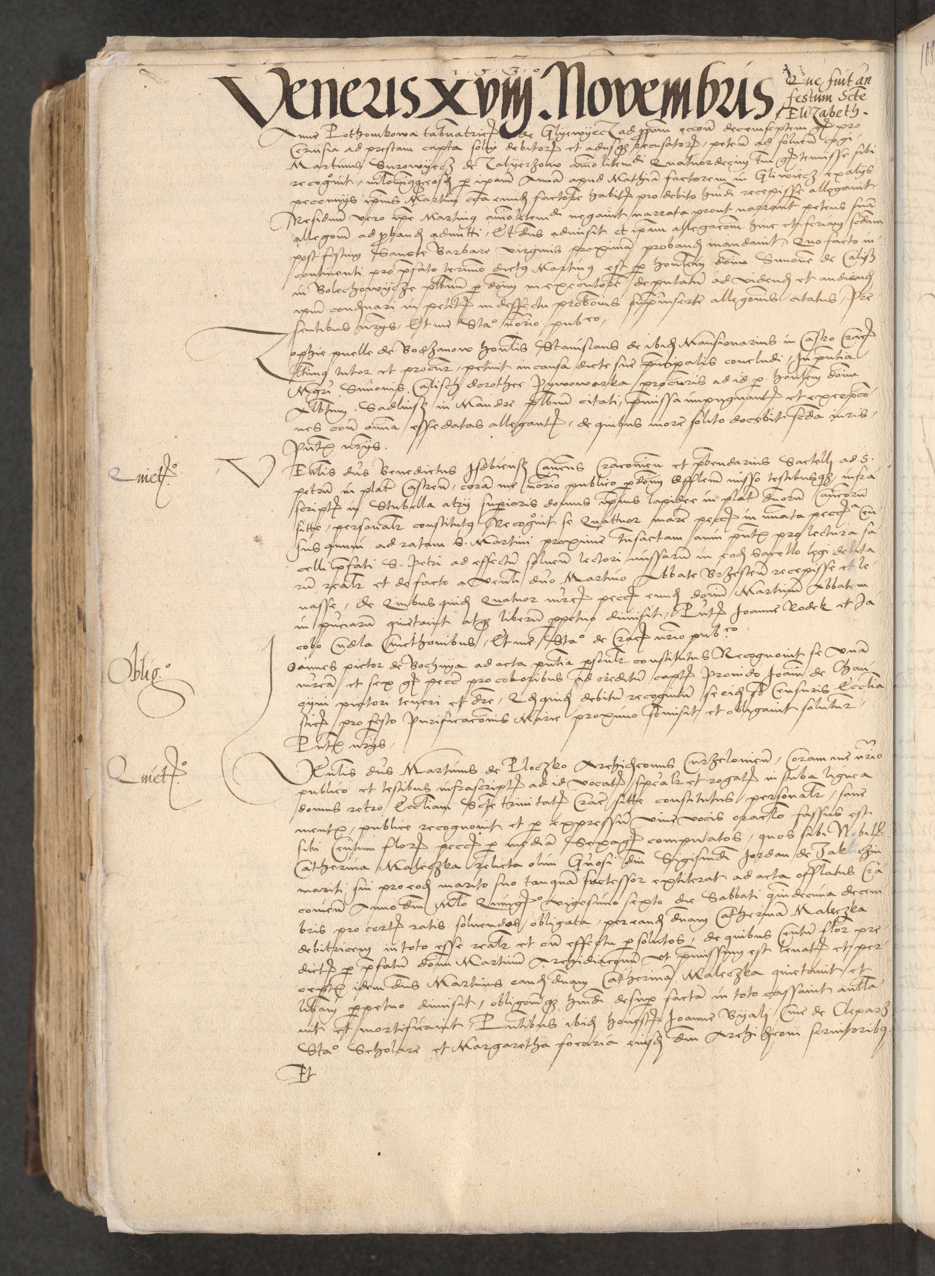 INRI. Acta actorum, obligacionum et sentenciarum tam interlocutoriarum quam diffinitivarum coram reverendo patre ac egregio viro domino Jacobo Erciss[o]wski decretorum doctorem, canonico et officiali generali Cracoviensi ad annum Domini 1528, indicionem primam, pontificatus sanctissimi in Christo patris et domini domini Clementis divina probidendcia pape seprtimi, annum quintum, per Stanislaum de Mordi legalem consistorii notarium omine felici inchoantur