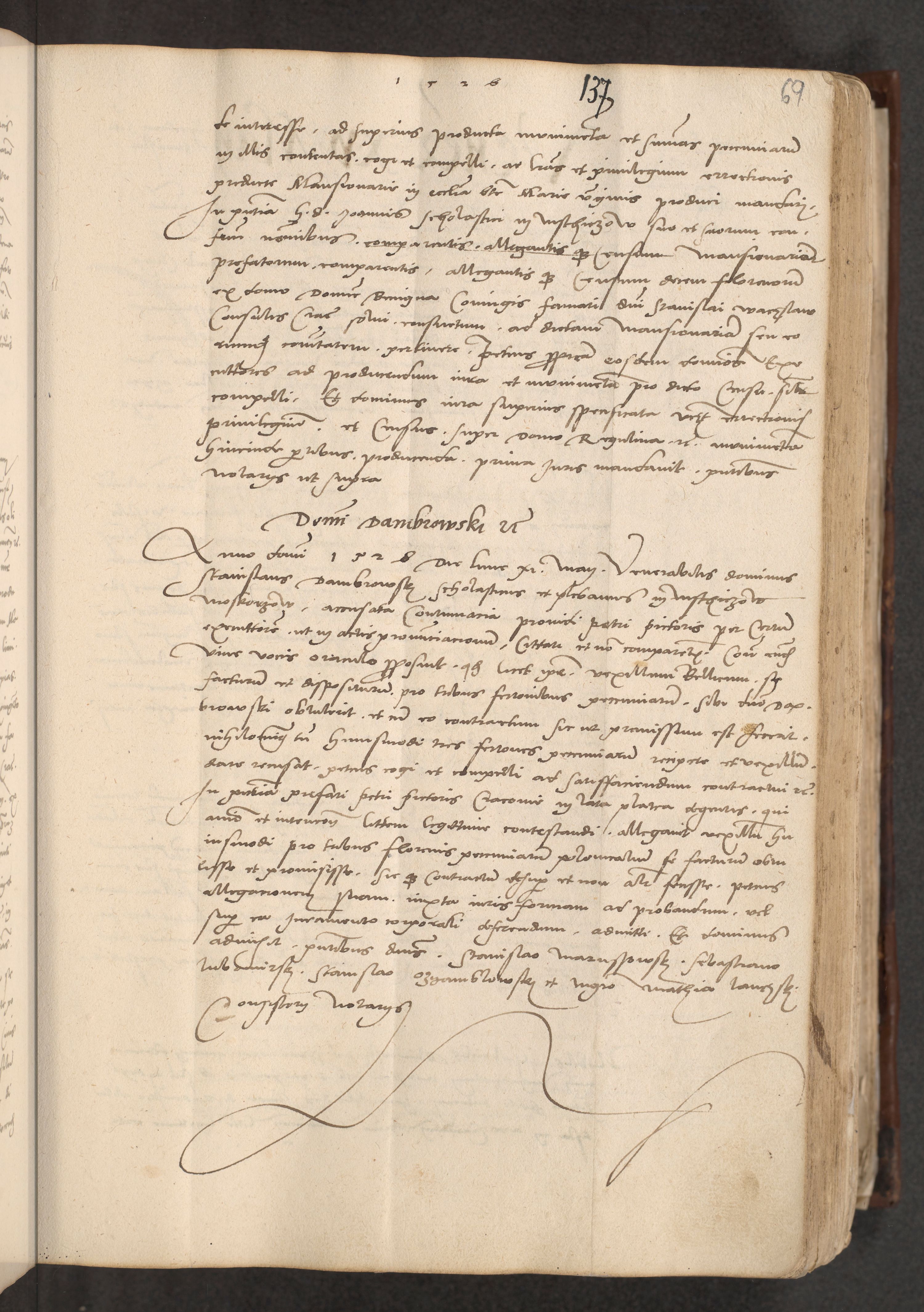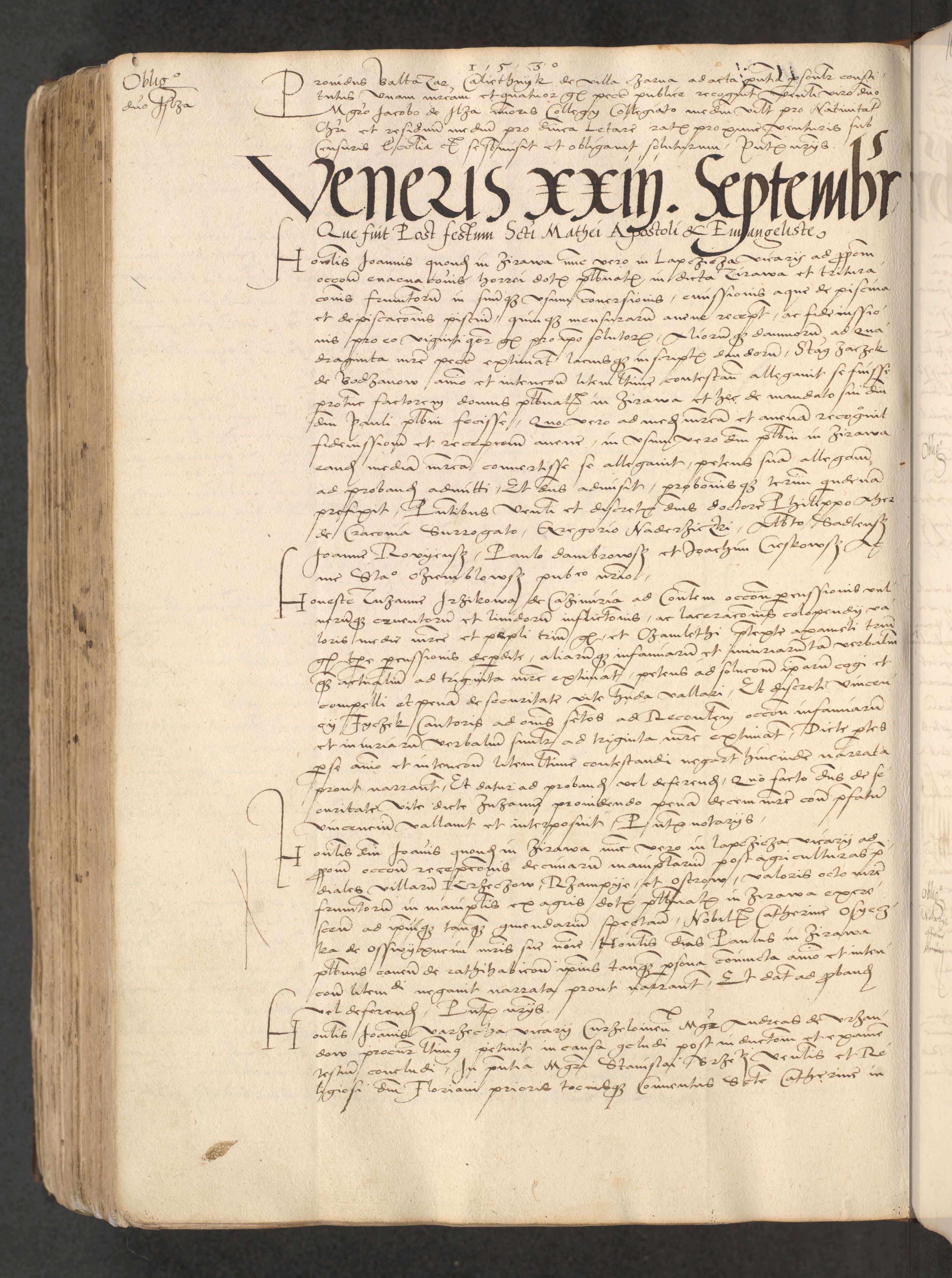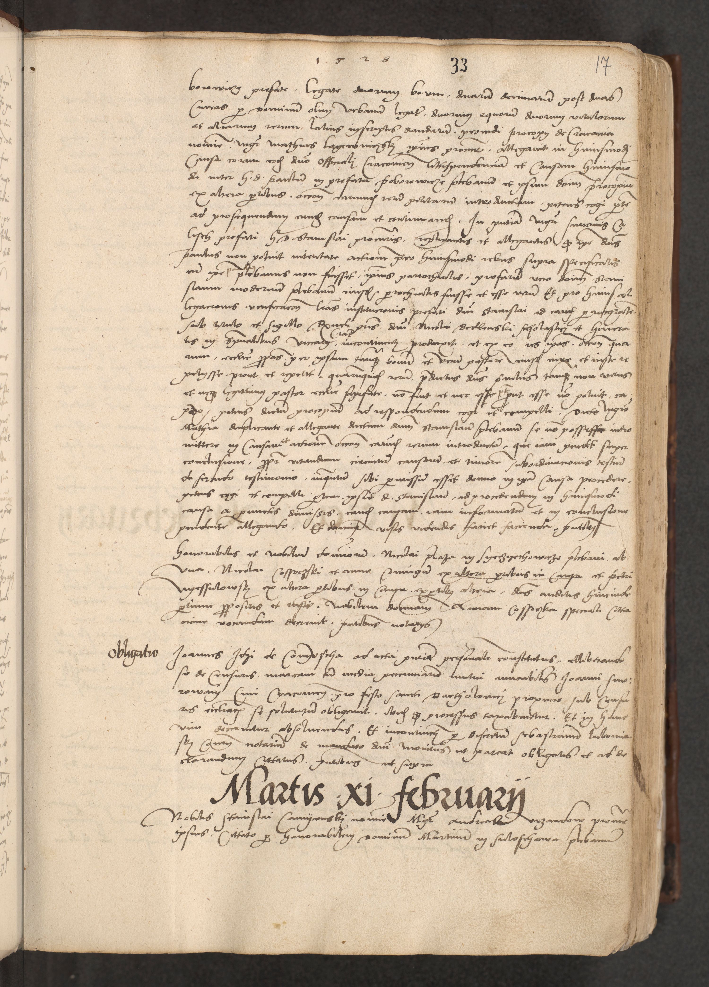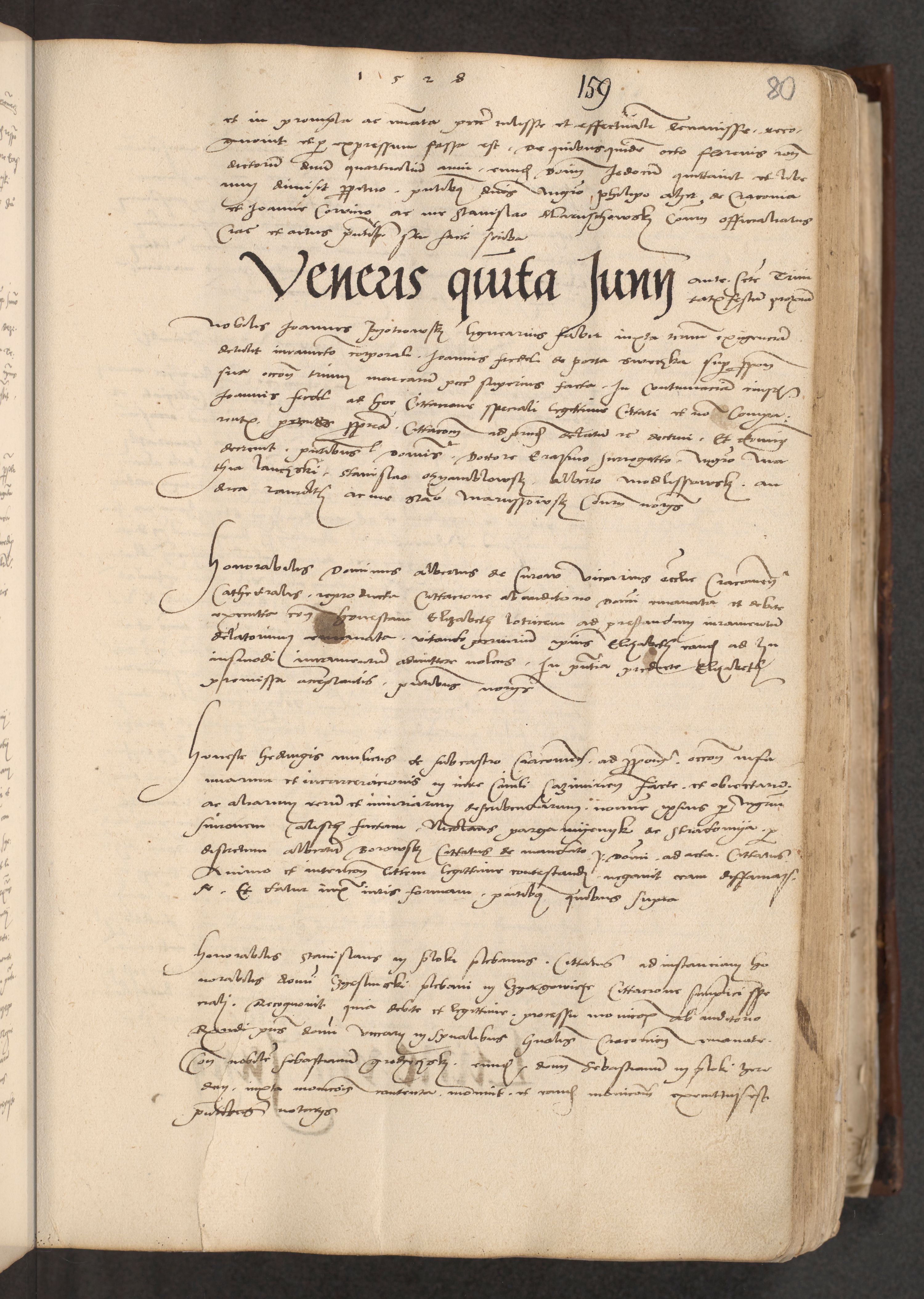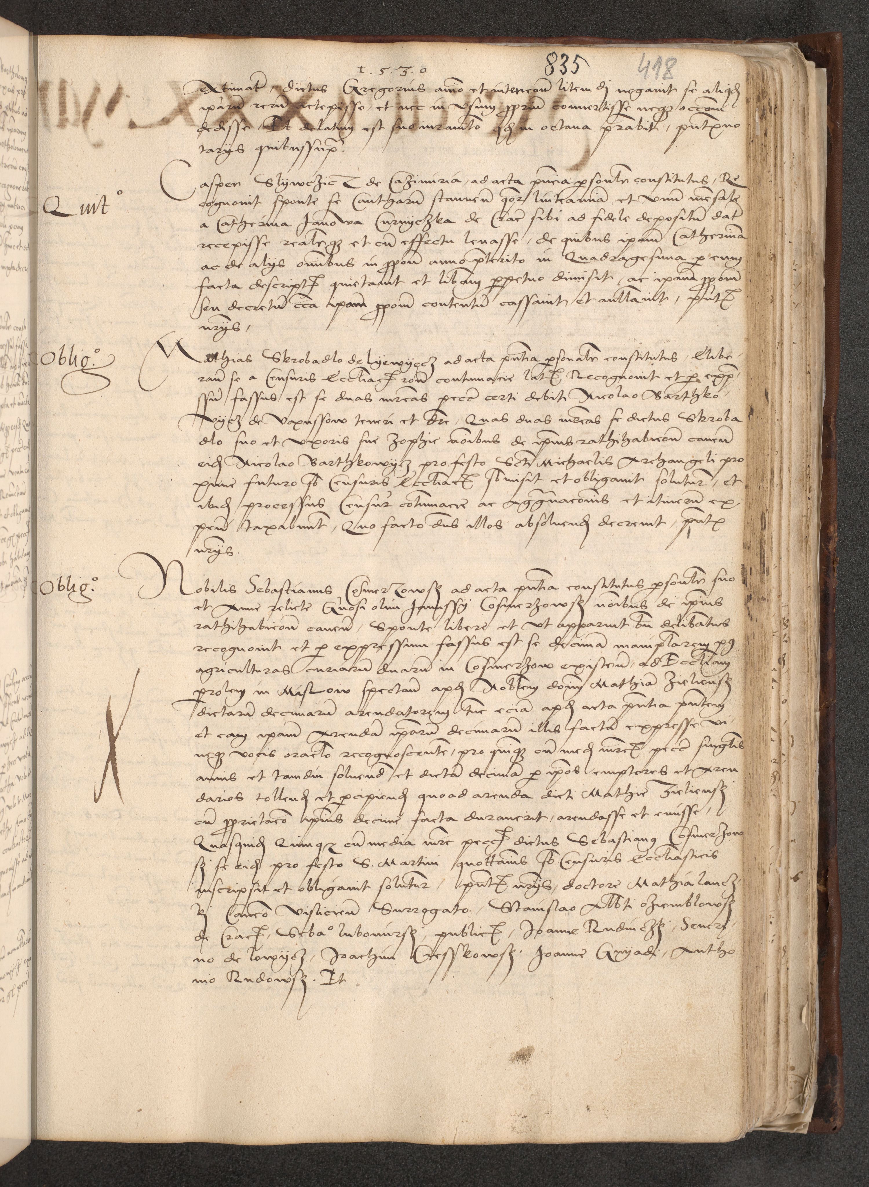 INRI. Acta actorum, obligacionum et sentenciarum tam interlocutoriarum quam diffinitivarum coram reverendo patre ac egregio viro domino Jacobo Erciss[o]wski decretorum doctorem, canonico et officiali generali Cracoviensi ad annum Domini 1528, indicionem primam, pontificatus sanctissimi in Christo patris et domini domini Clementis divina probidendcia pape seprtimi, annum quintum, per Stanislaum de Mordi legalem consistorii notarium omine felici inchoantur
