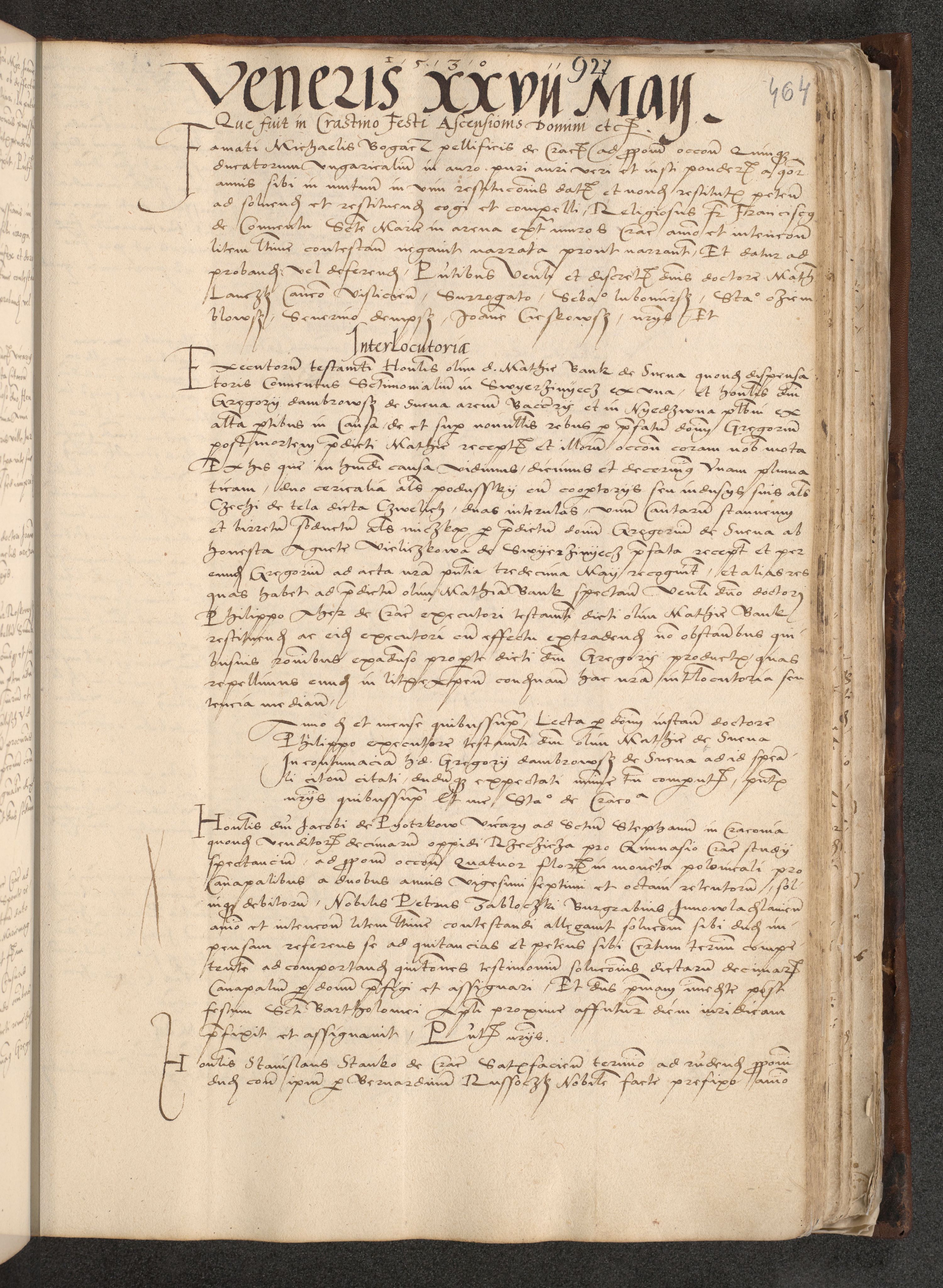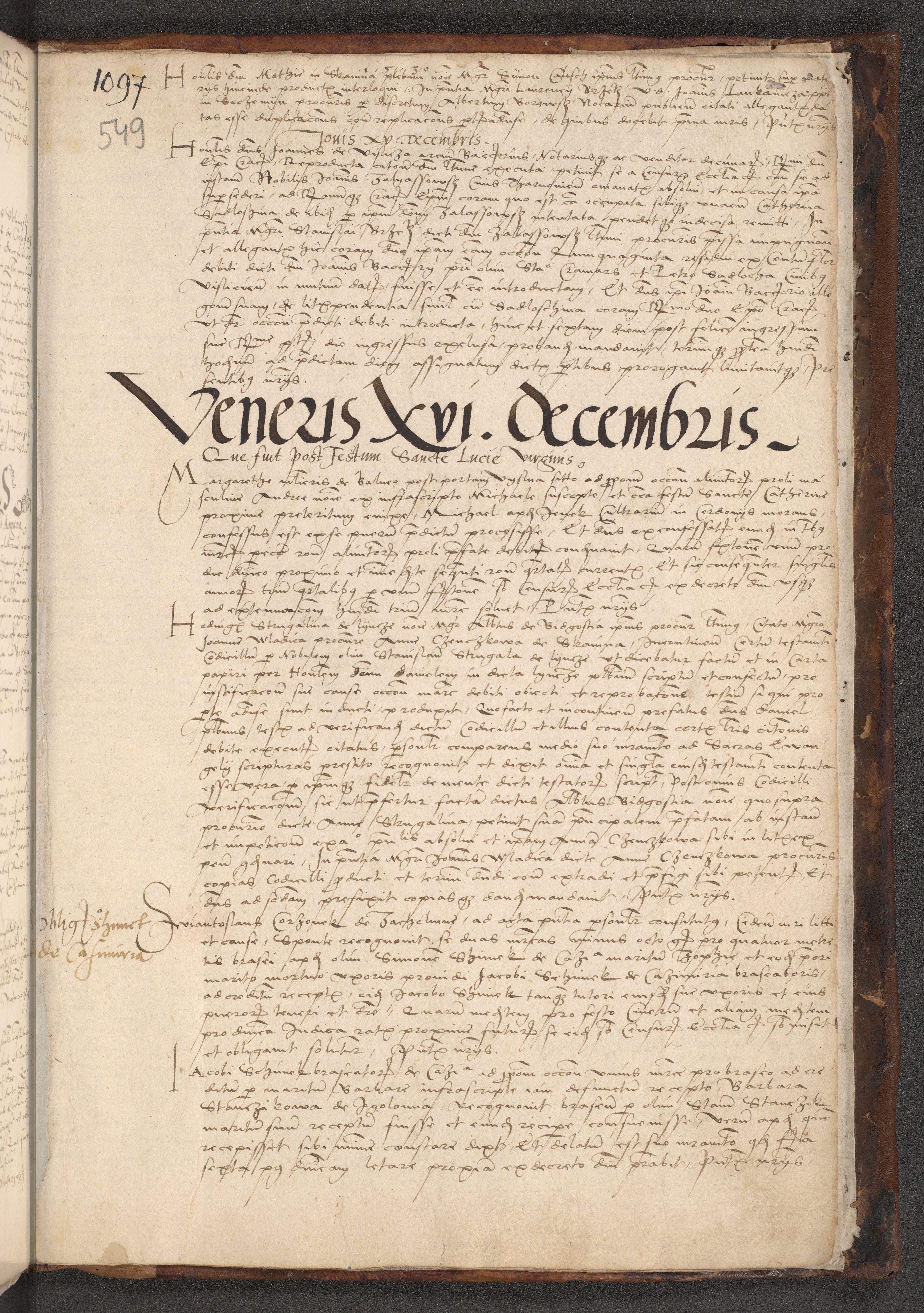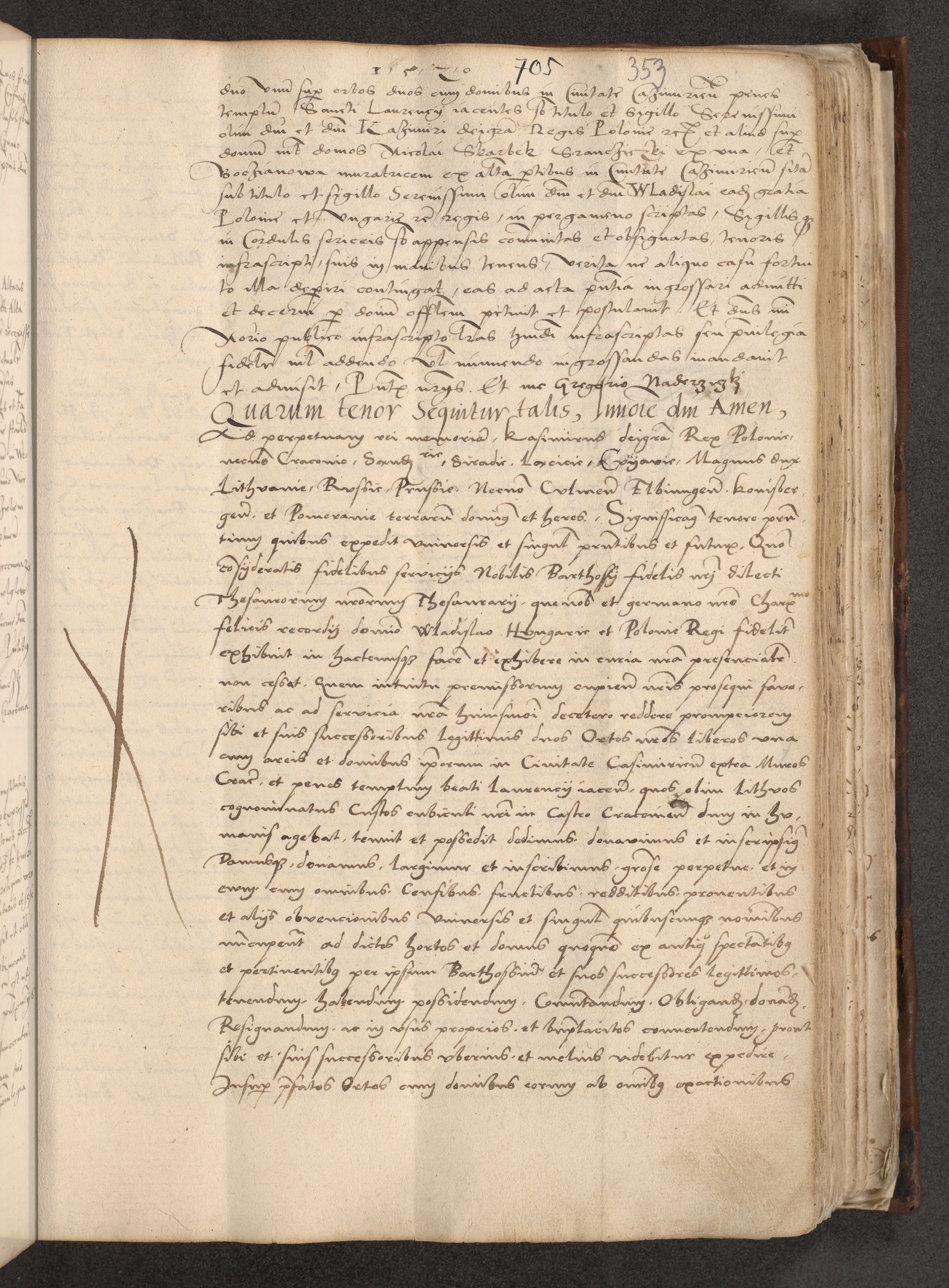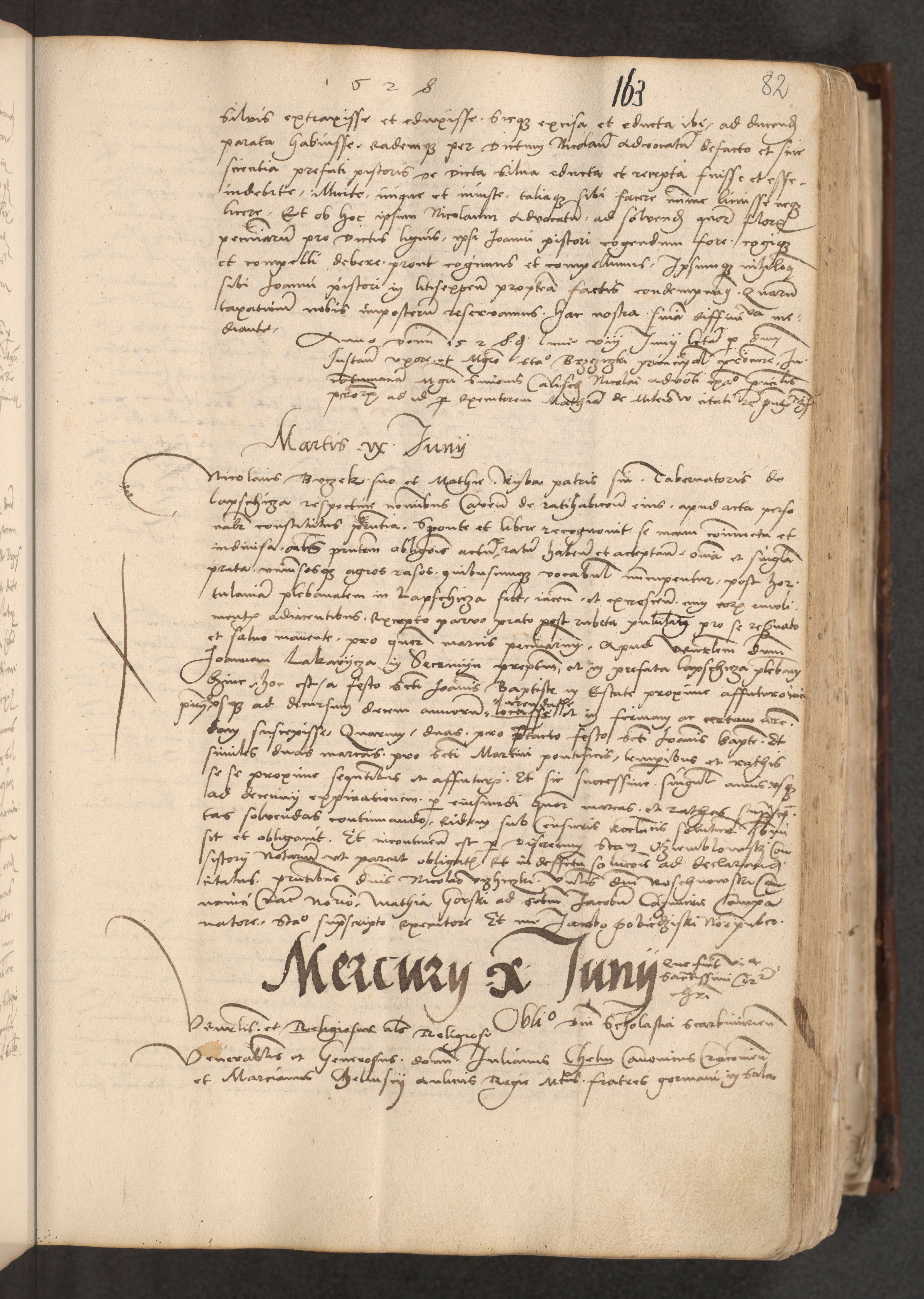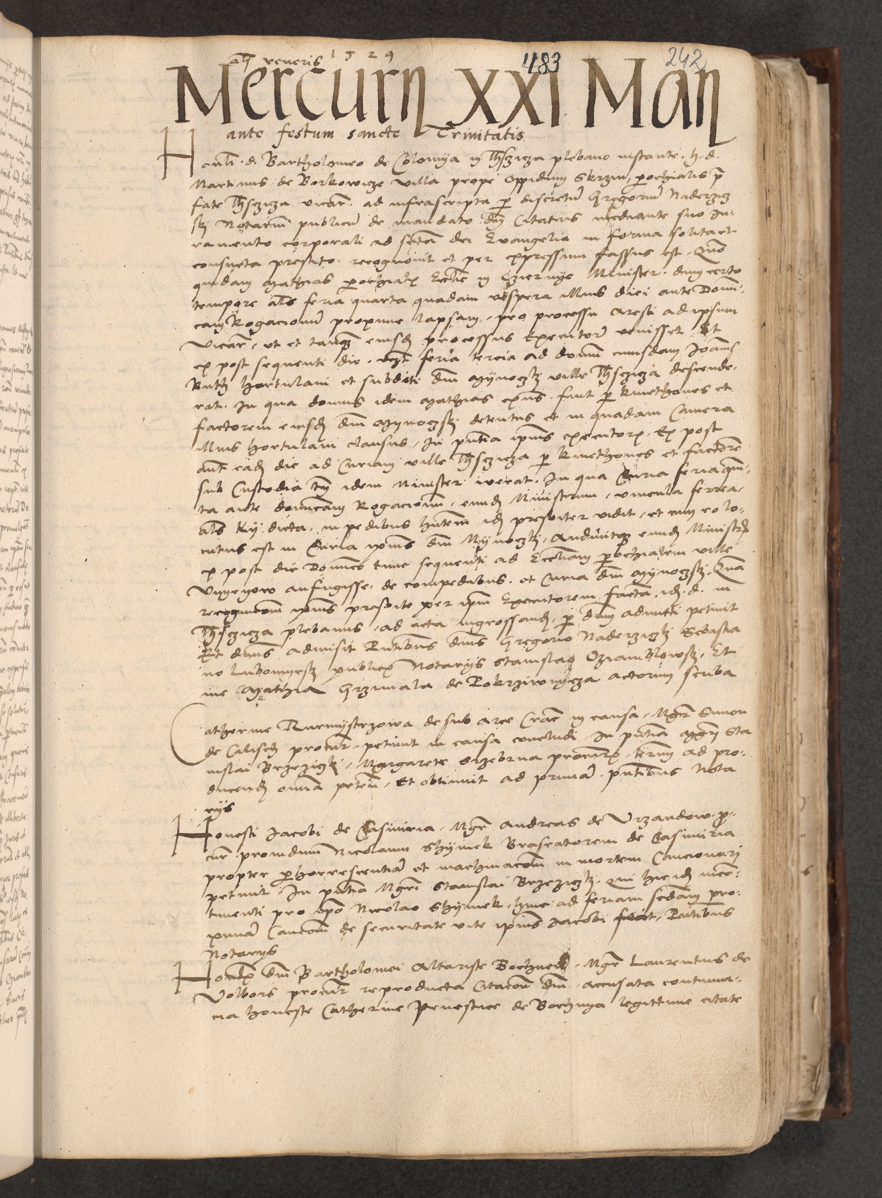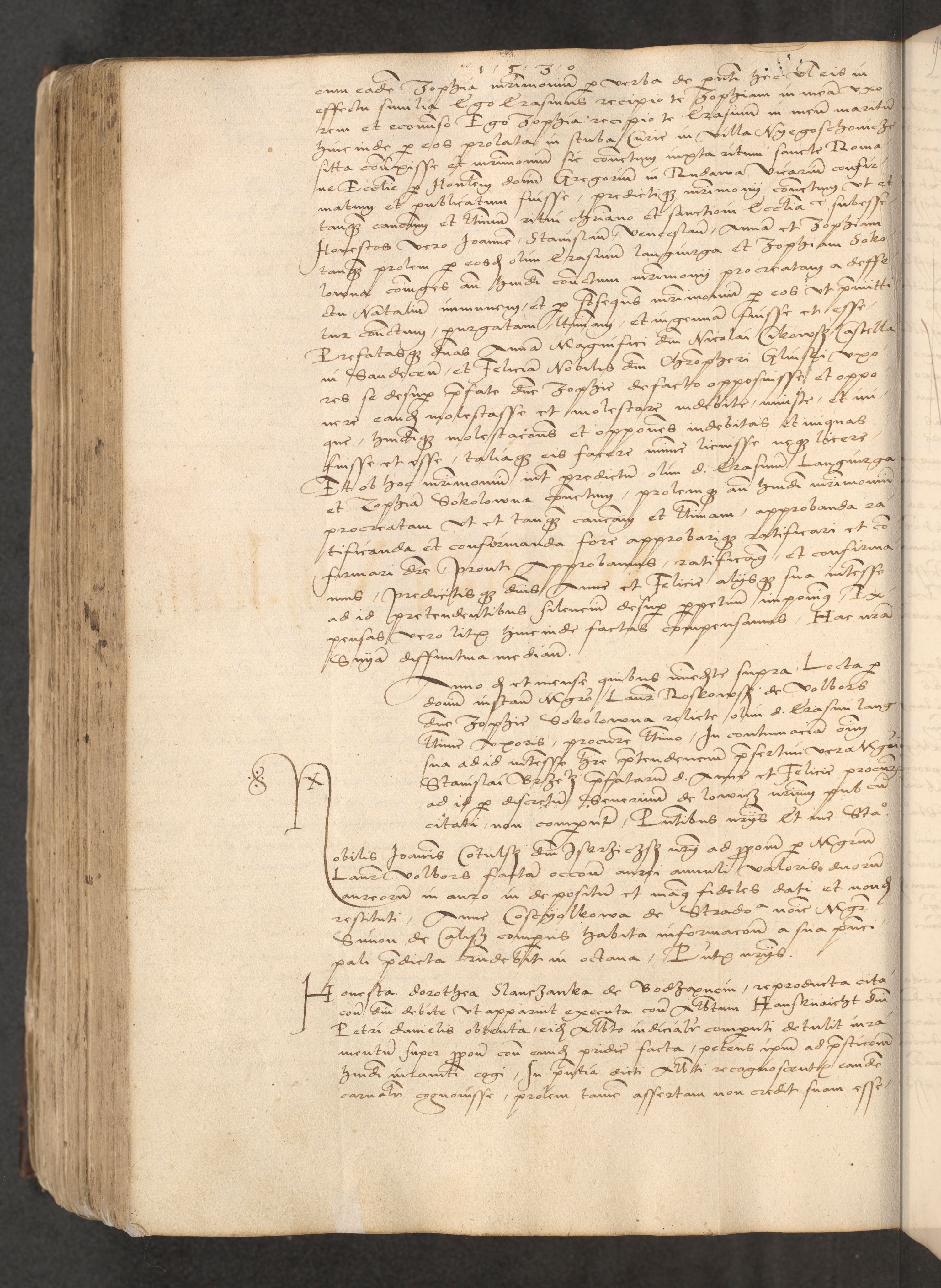 INRI. Acta actorum, obligacionum et sentenciarum tam interlocutoriarum quam diffinitivarum coram reverendo patre ac egregio viro domino Jacobo Erciss[o]wski decretorum doctorem, canonico et officiali generali Cracoviensi ad annum Domini 1528, indicionem primam, pontificatus sanctissimi in Christo patris et domini domini Clementis divina probidendcia pape seprtimi, annum quintum, per Stanislaum de Mordi legalem consistorii notarium omine felici inchoantur