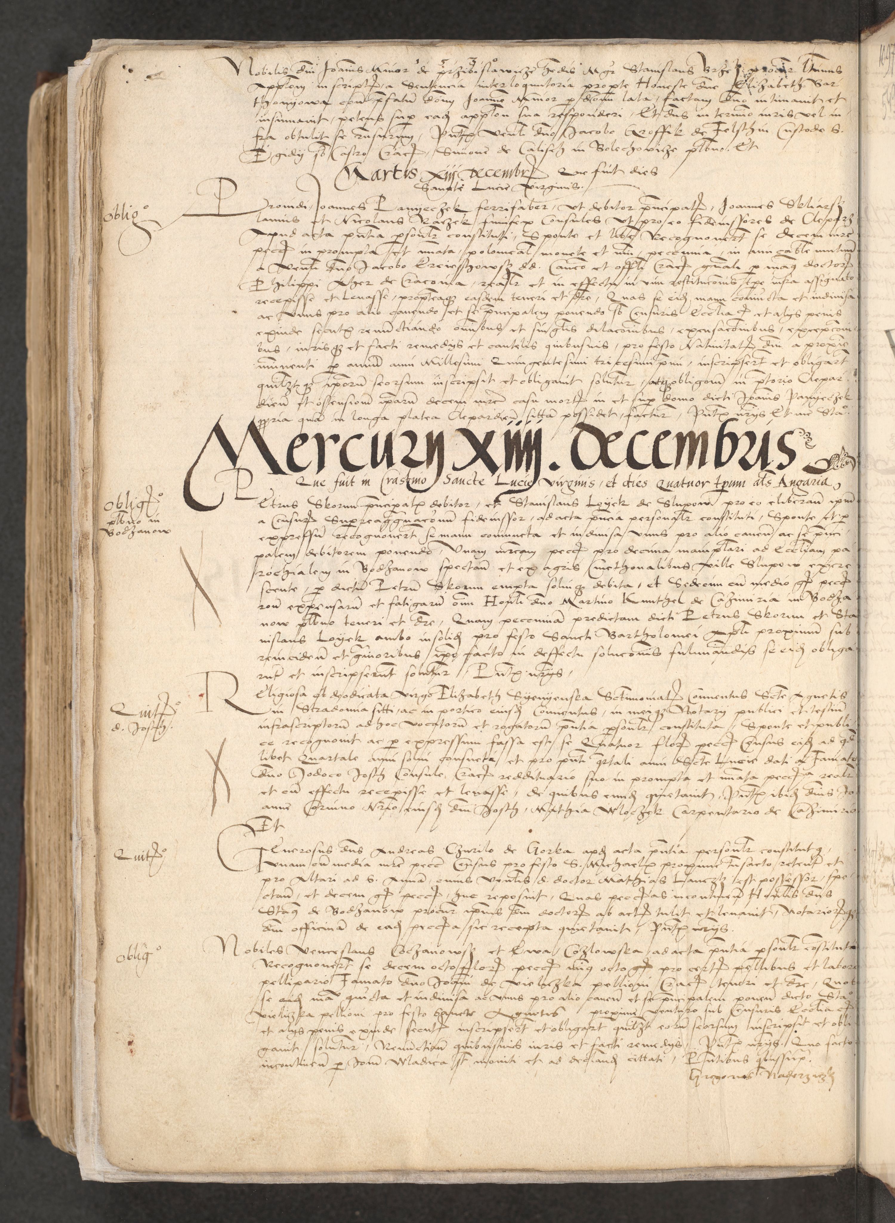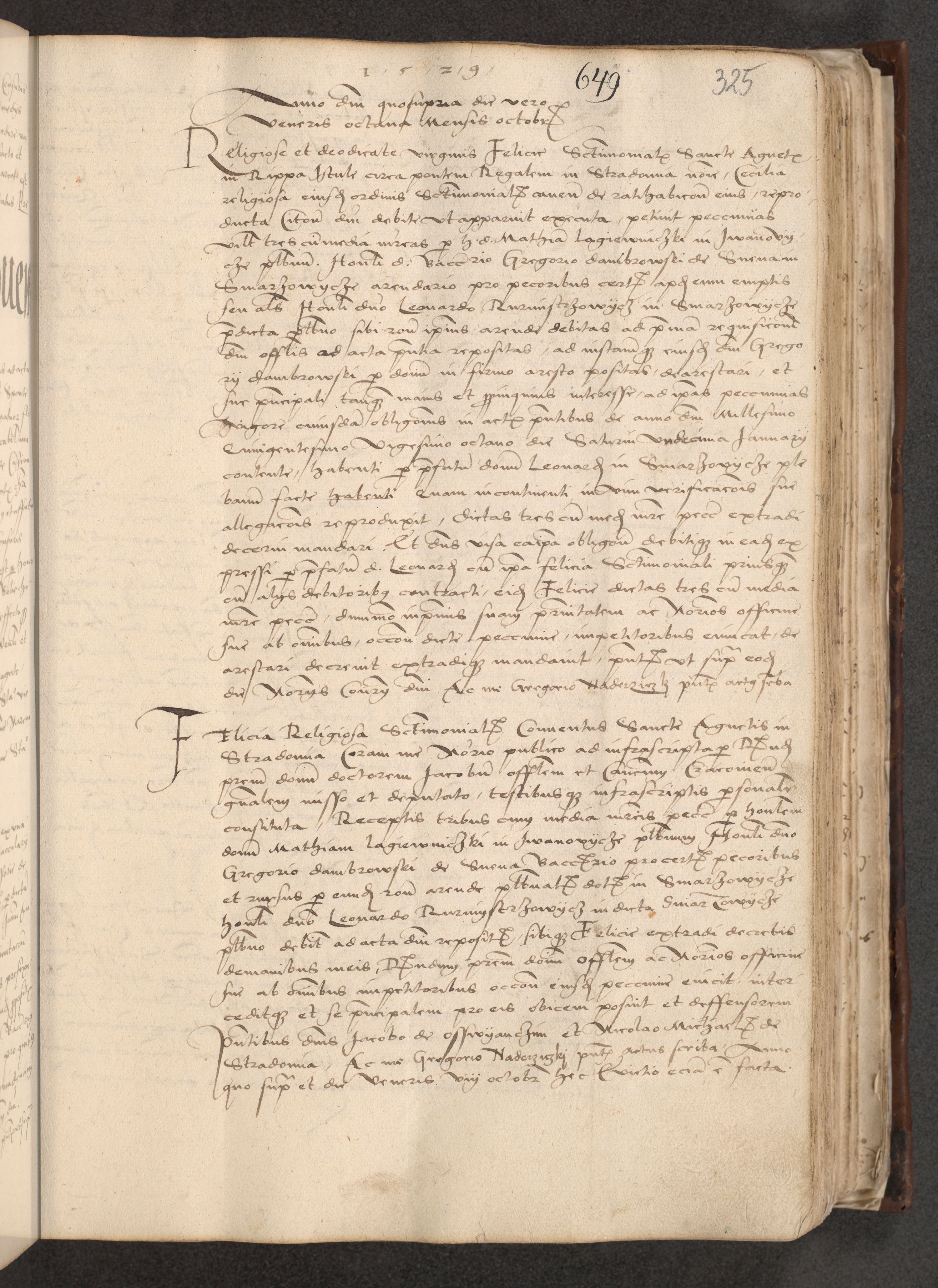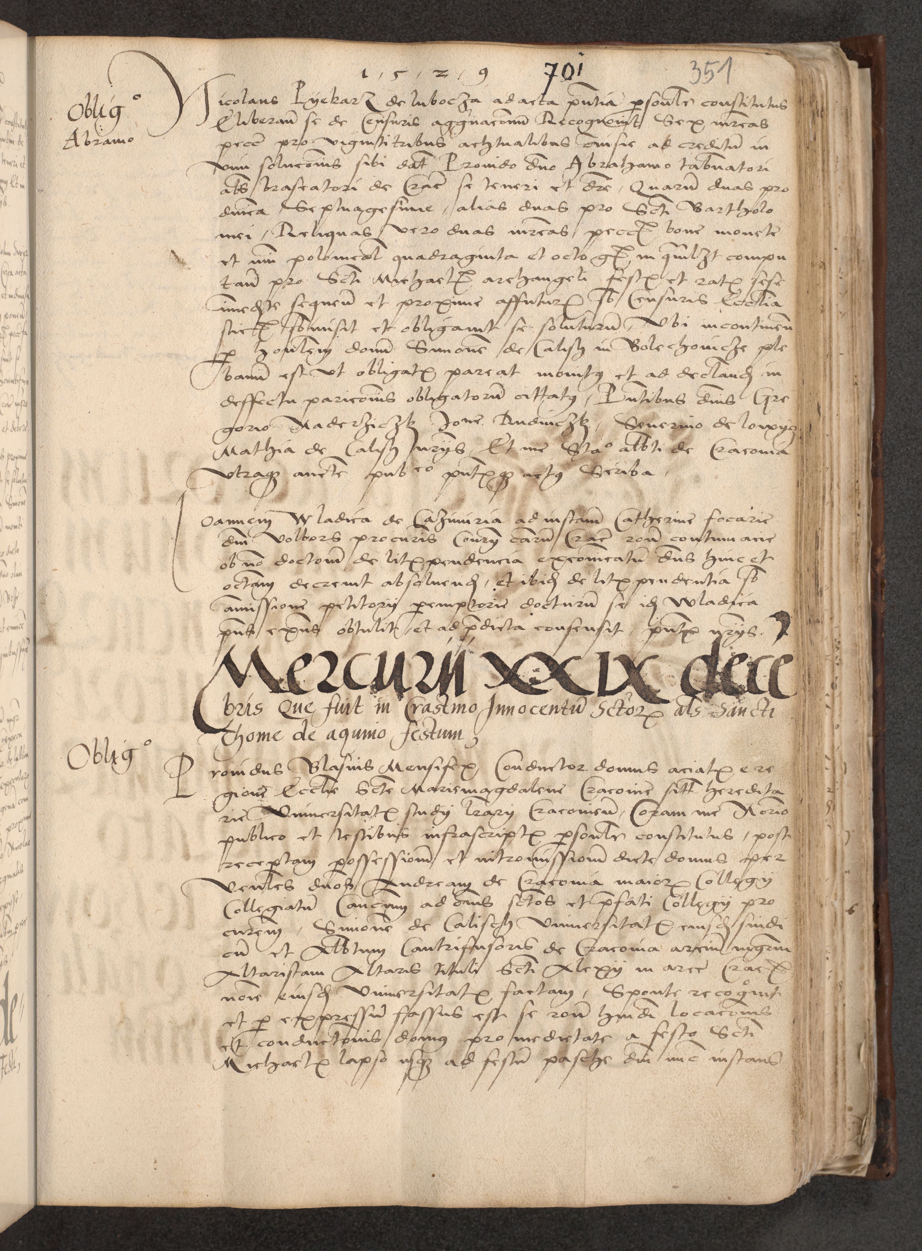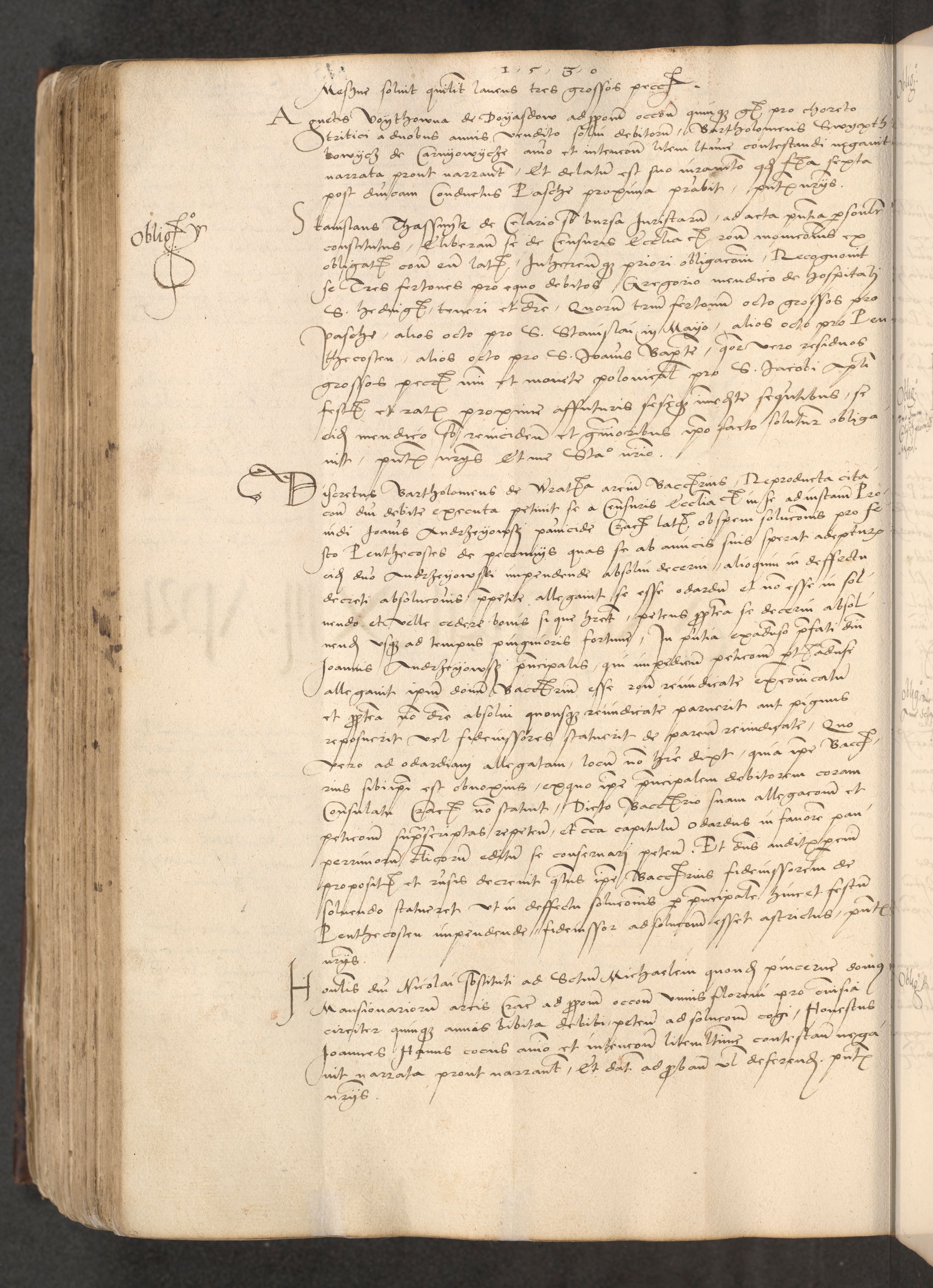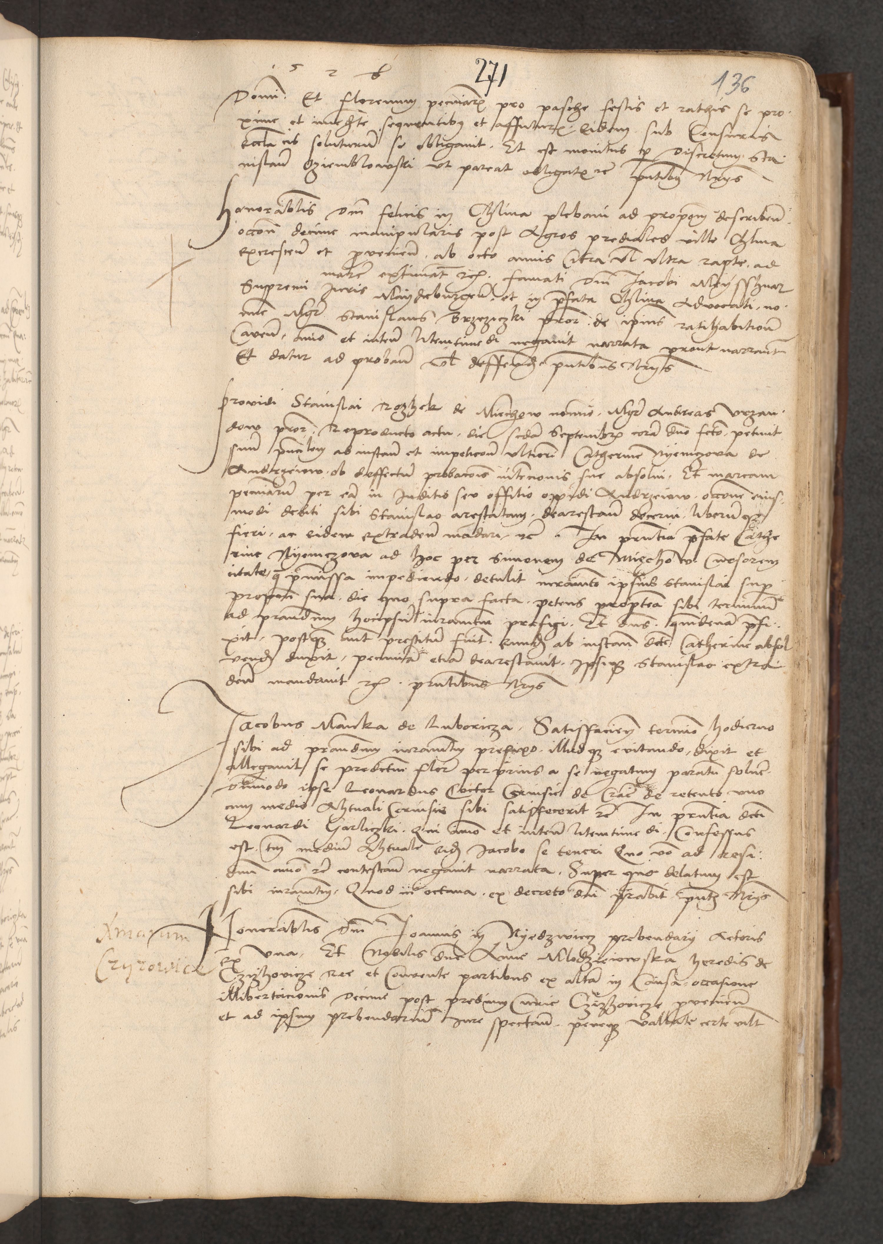 INRI. Acta actorum, obligacionum et sentenciarum tam interlocutoriarum quam diffinitivarum coram reverendo patre ac egregio viro domino Jacobo Erciss[o]wski decretorum doctorem, canonico et officiali generali Cracoviensi ad annum Domini 1528, indicionem primam, pontificatus sanctissimi in Christo patris et domini domini Clementis divina probidendcia pape seprtimi, annum quintum, per Stanislaum de Mordi legalem consistorii notarium omine felici inchoantur