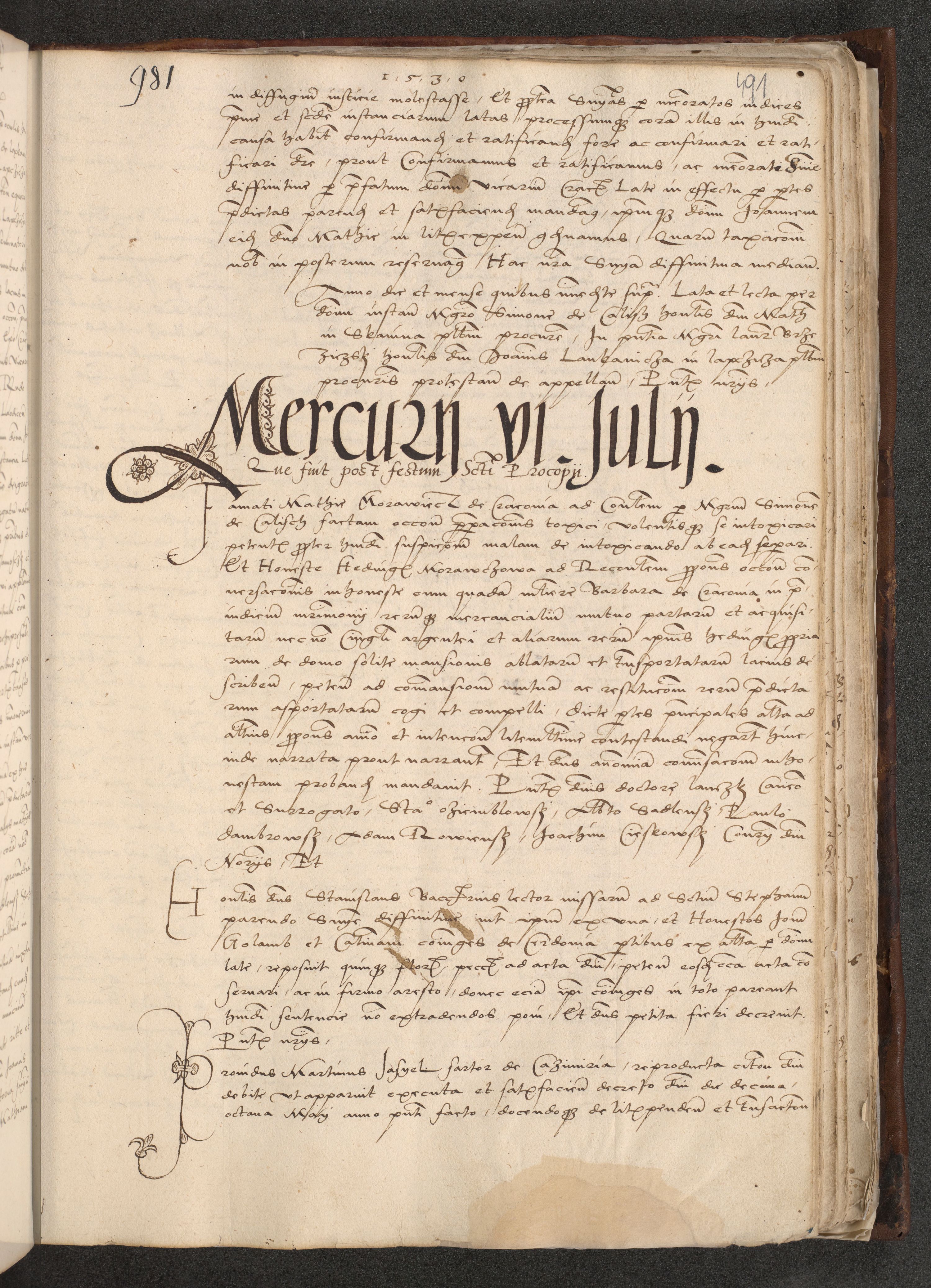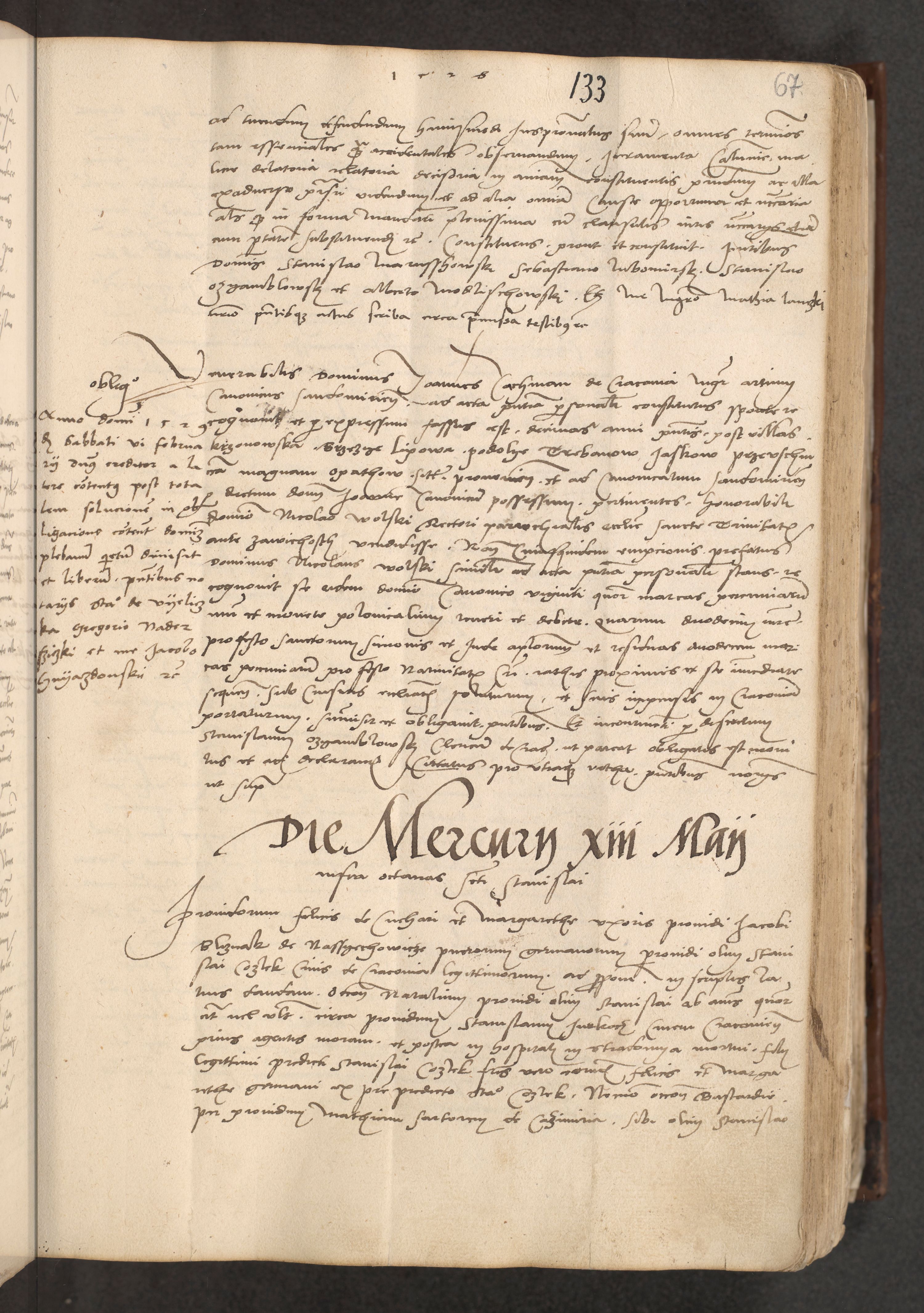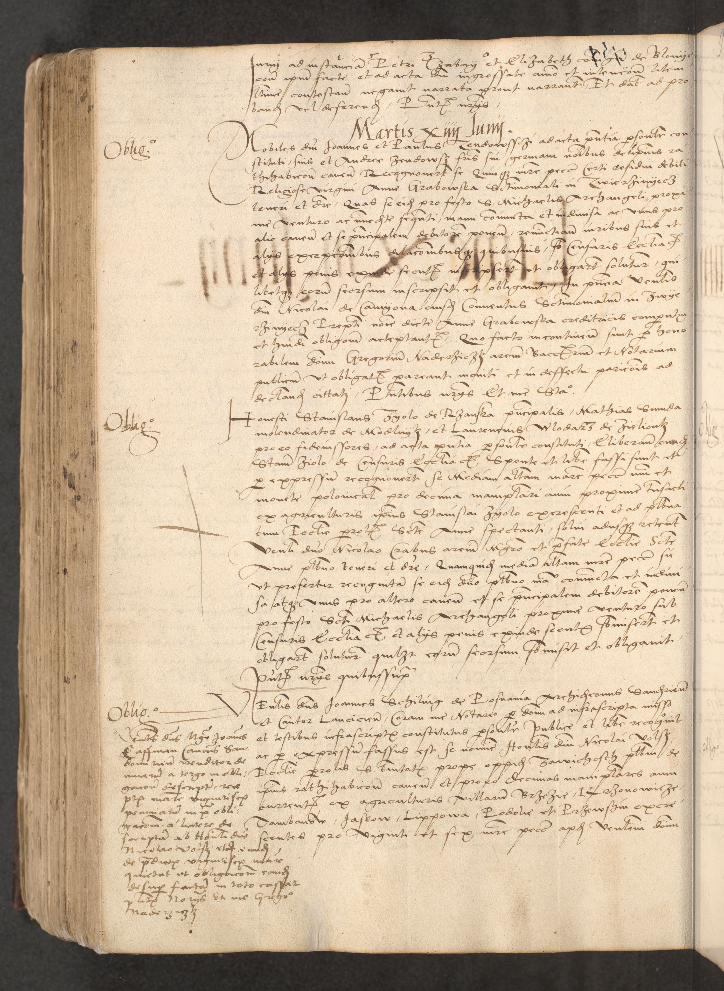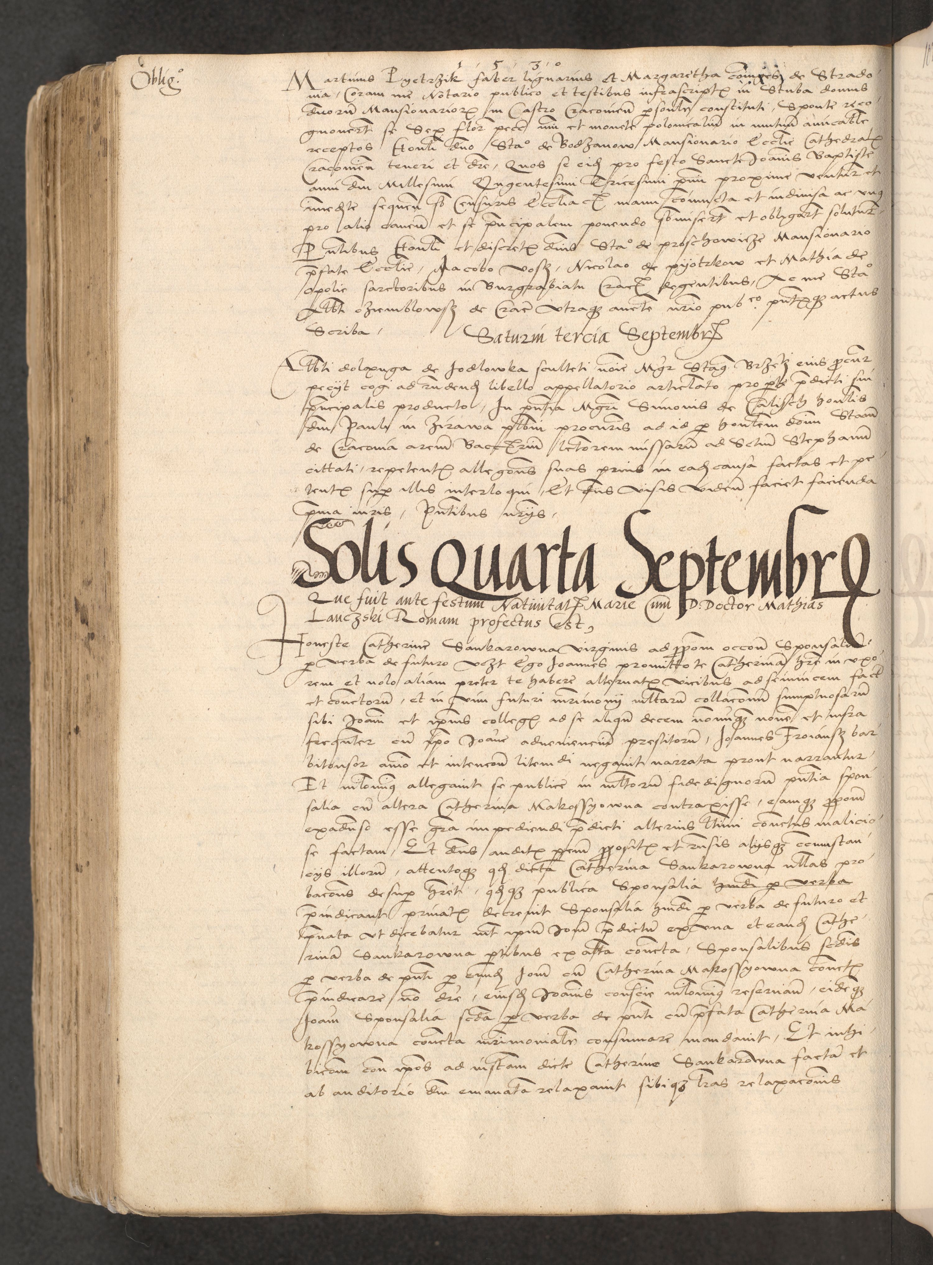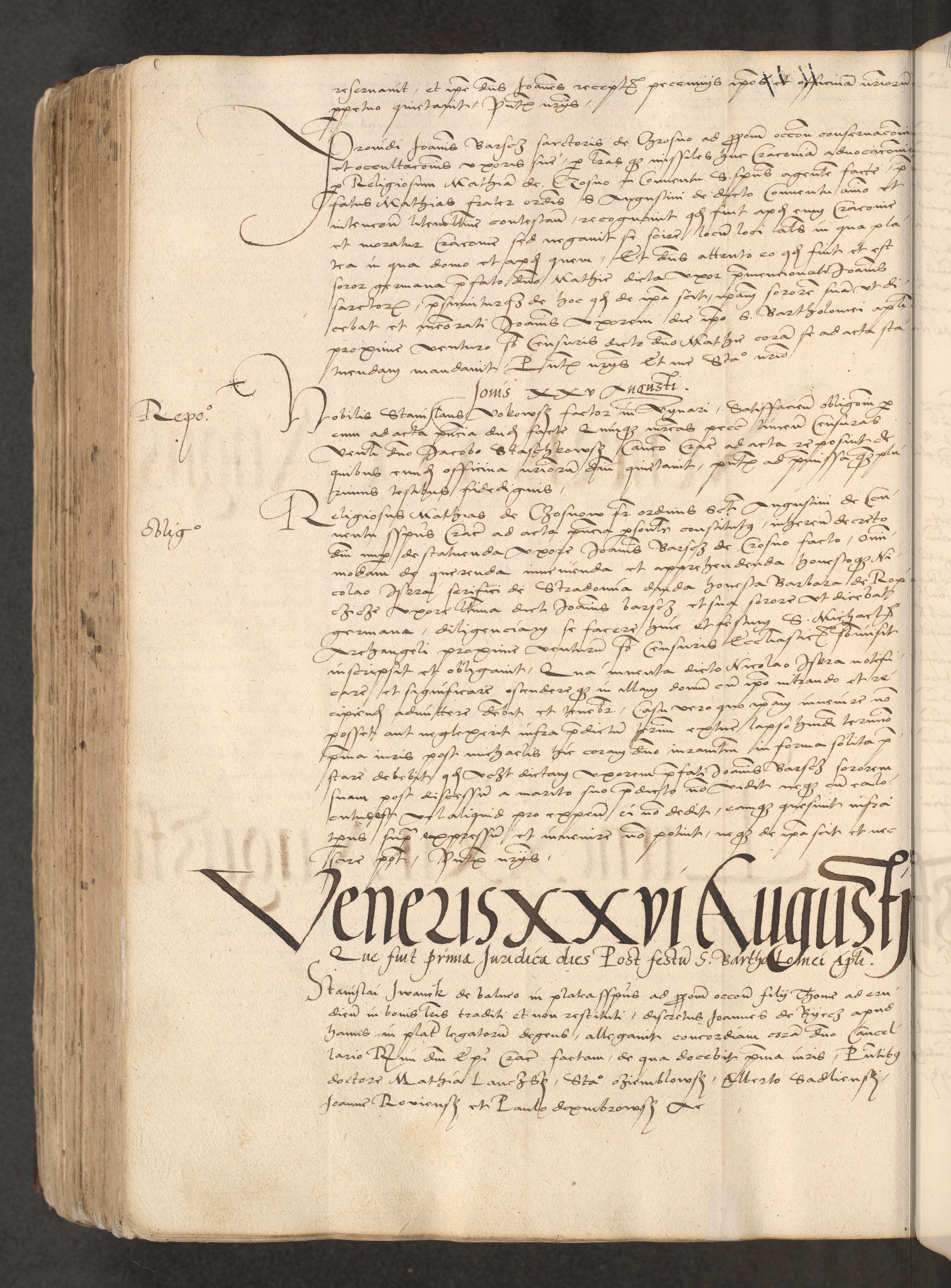 INRI. Acta actorum, obligacionum et sentenciarum tam interlocutoriarum quam diffinitivarum coram reverendo patre ac egregio viro domino Jacobo Erciss[o]wski decretorum doctorem, canonico et officiali generali Cracoviensi ad annum Domini 1528, indicionem primam, pontificatus sanctissimi in Christo patris et domini domini Clementis divina probidendcia pape seprtimi, annum quintum, per Stanislaum de Mordi legalem consistorii notarium omine felici inchoantur