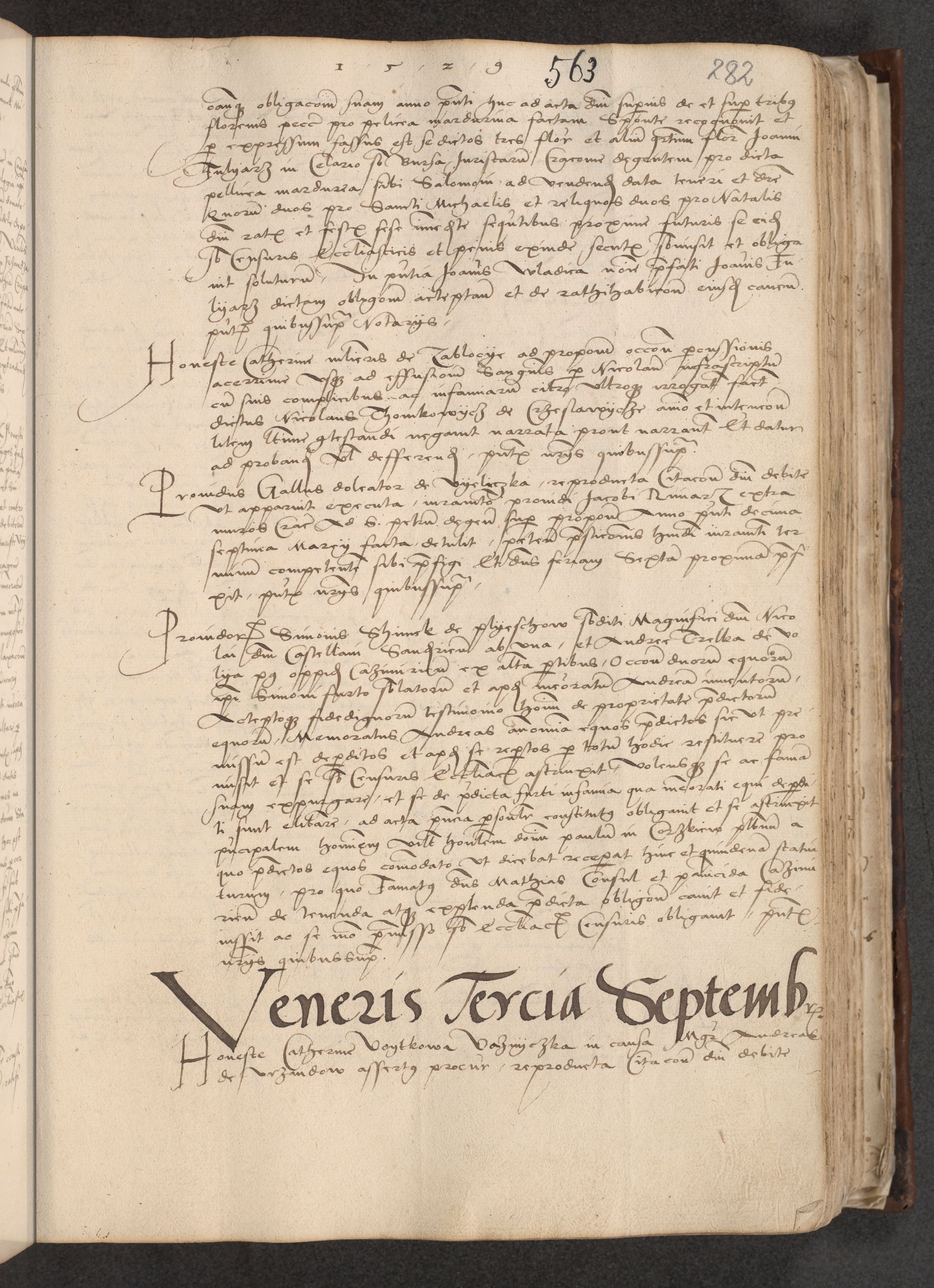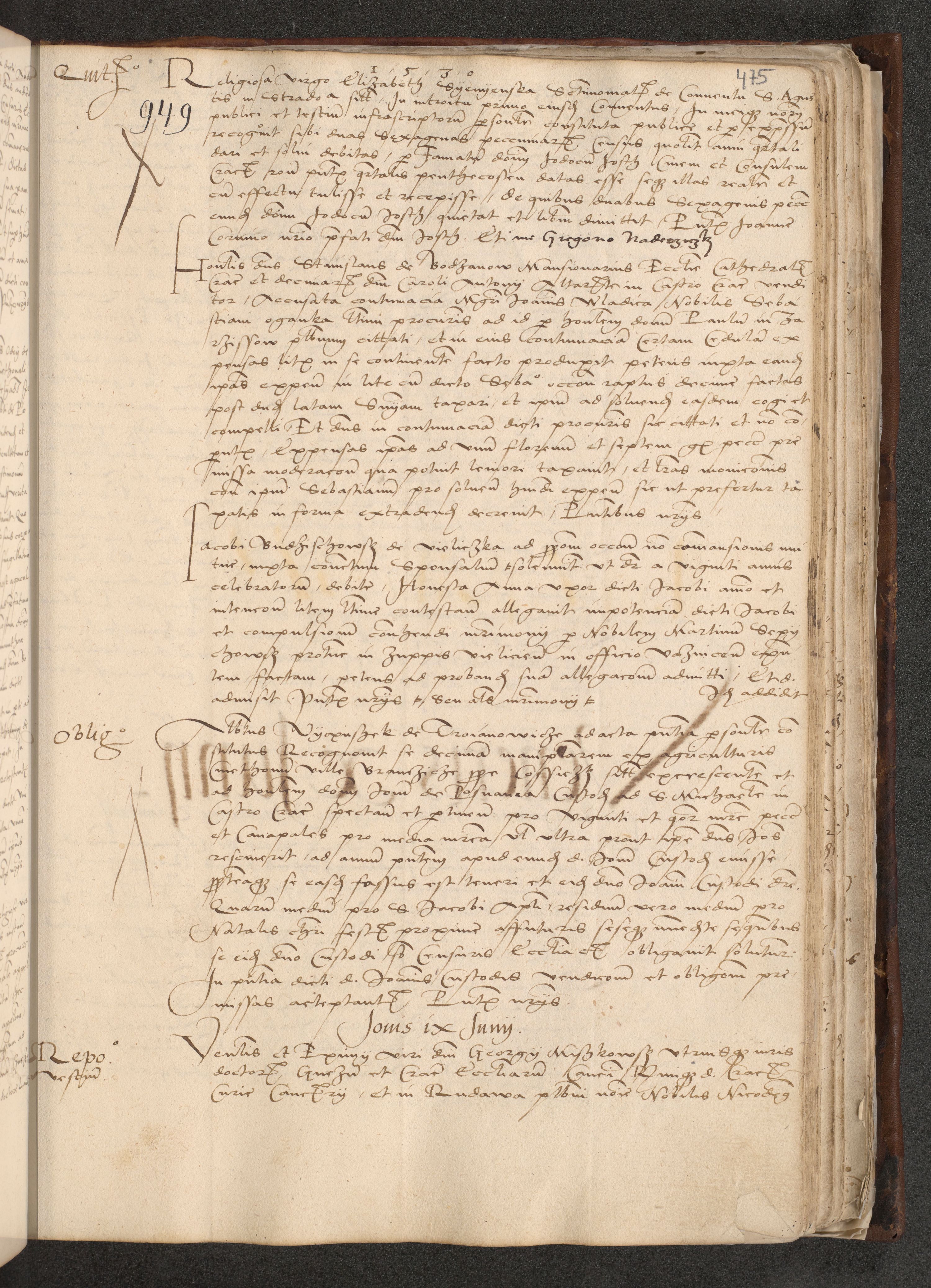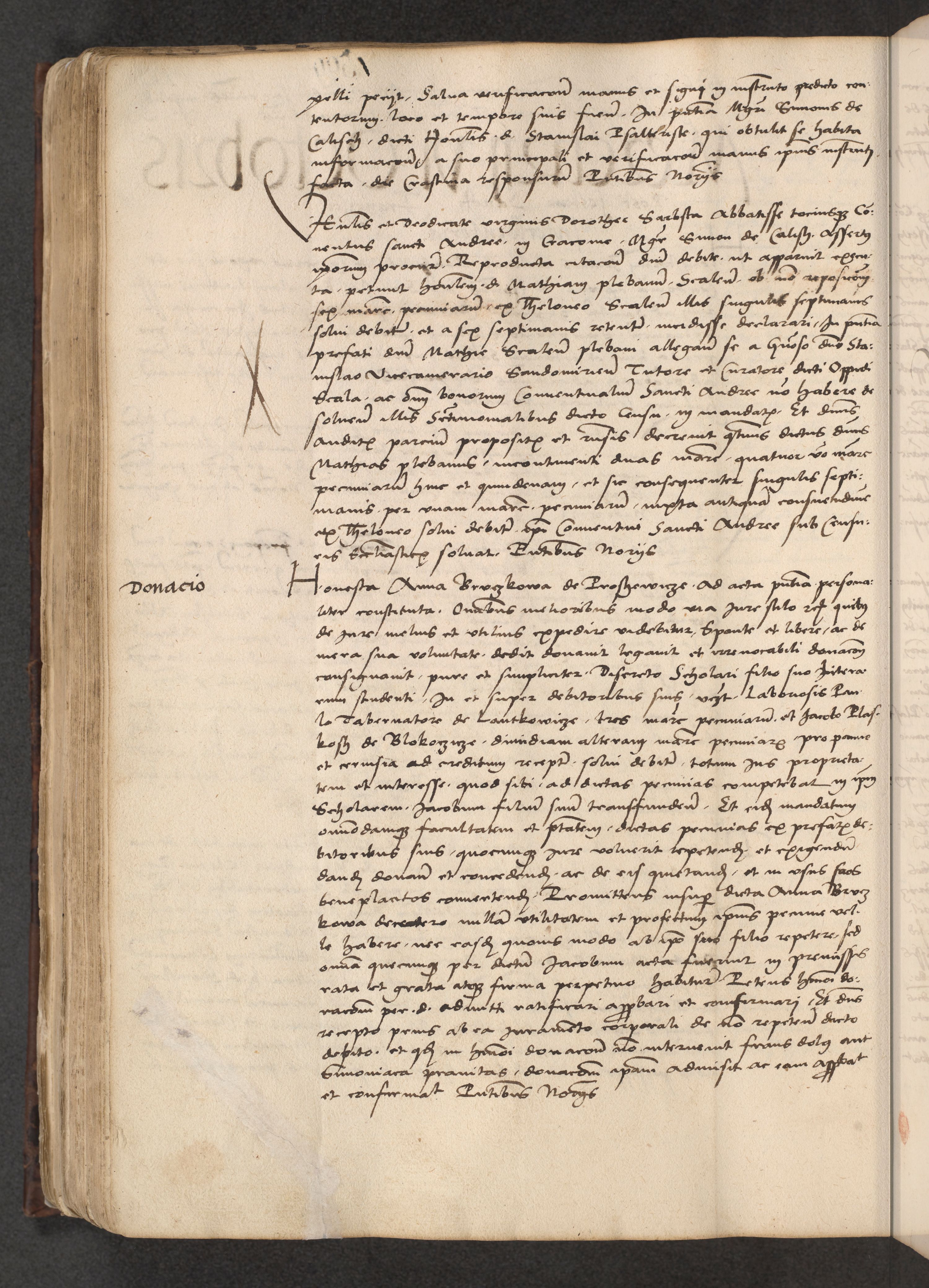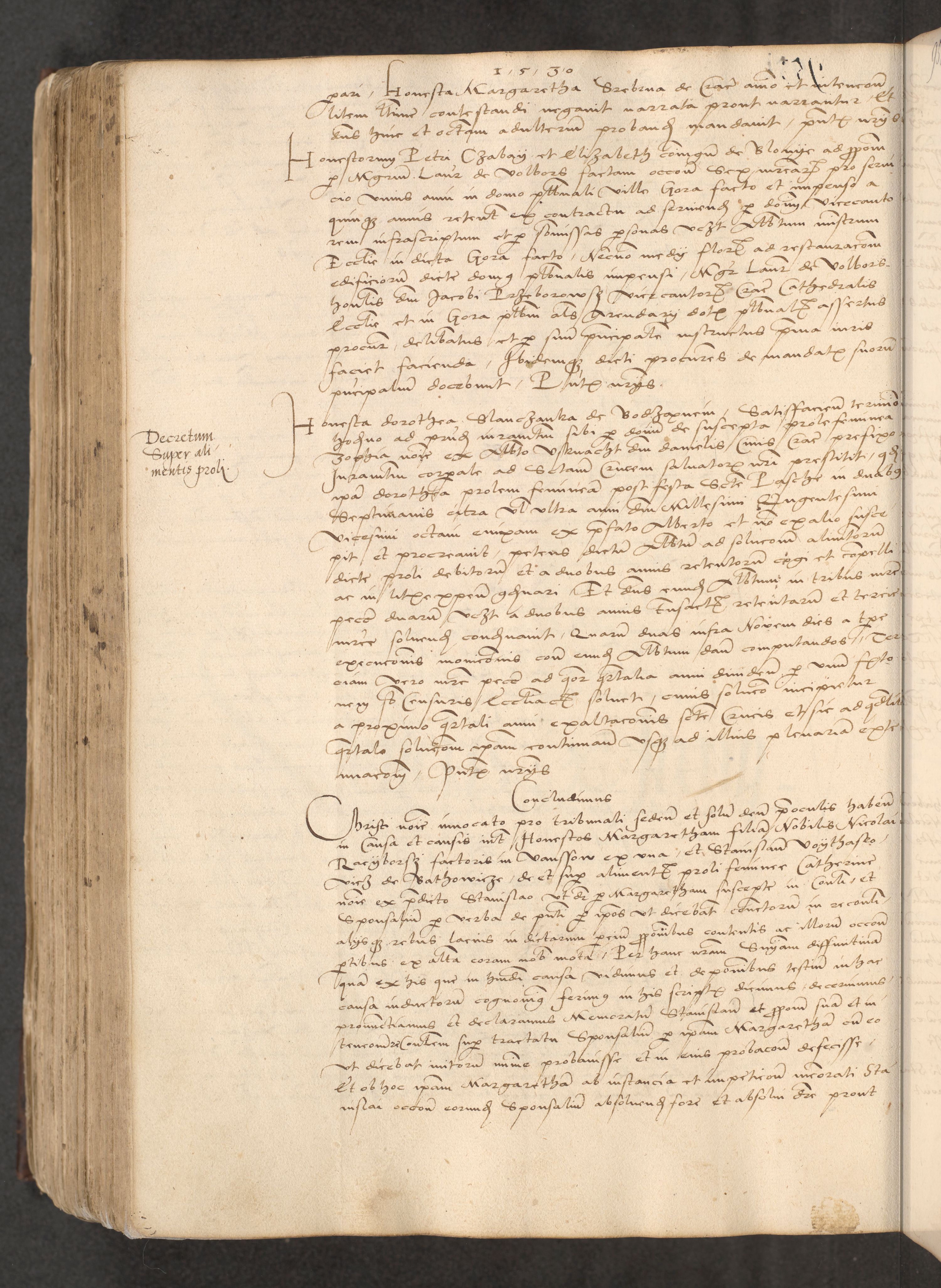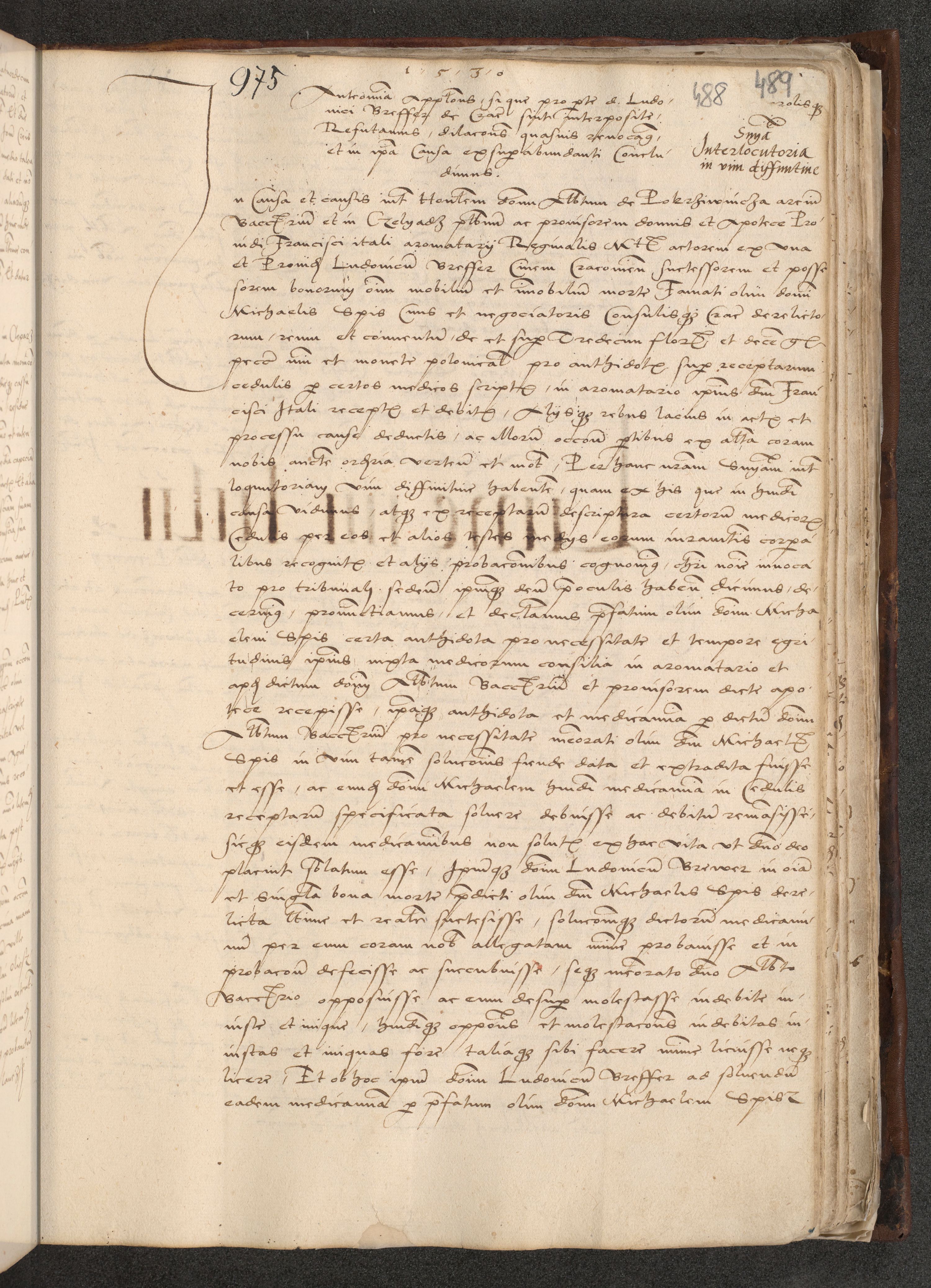 INRI. Acta actorum, obligacionum et sentenciarum tam interlocutoriarum quam diffinitivarum coram reverendo patre ac egregio viro domino Jacobo Erciss[o]wski decretorum doctorem, canonico et officiali generali Cracoviensi ad annum Domini 1528, indicionem primam, pontificatus sanctissimi in Christo patris et domini domini Clementis divina probidendcia pape seprtimi, annum quintum, per Stanislaum de Mordi legalem consistorii notarium omine felici inchoantur