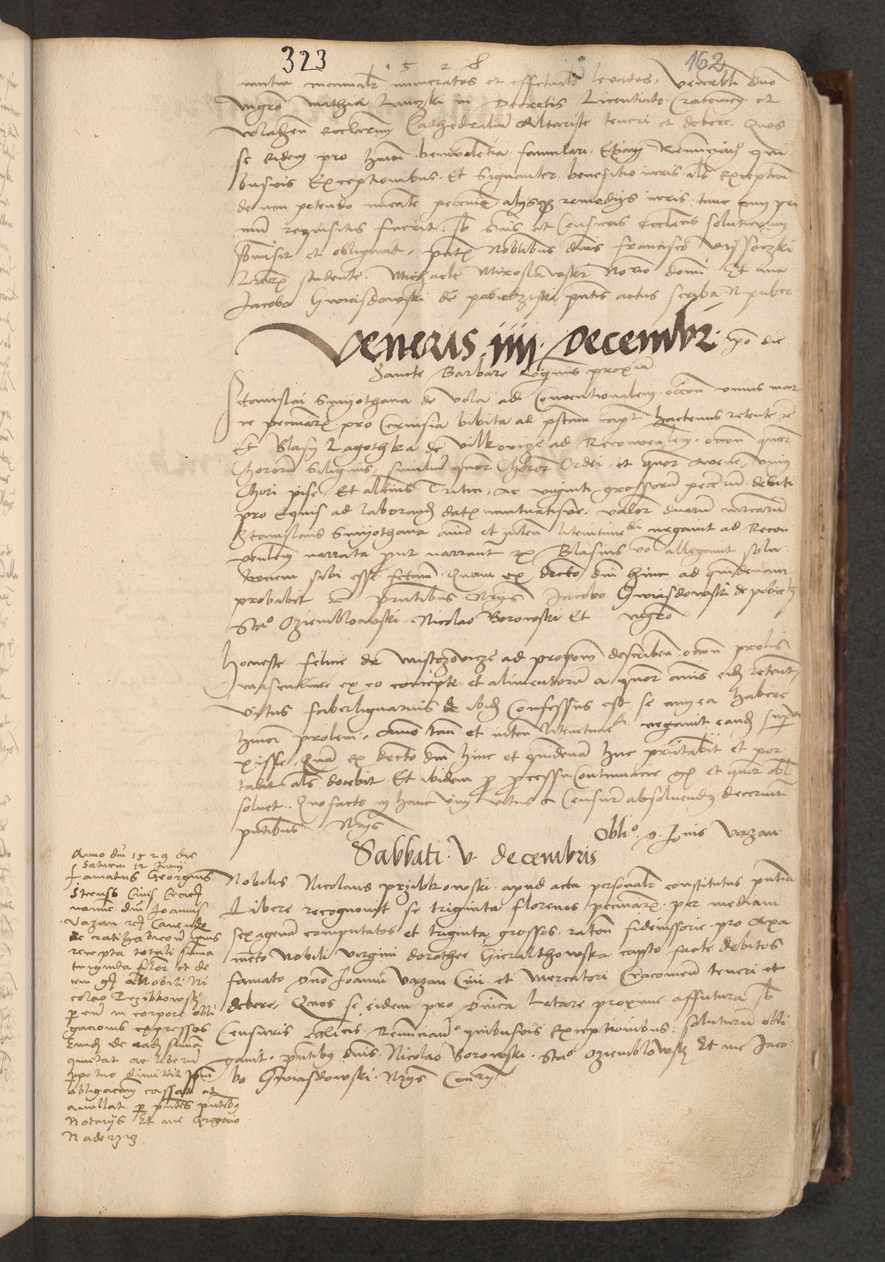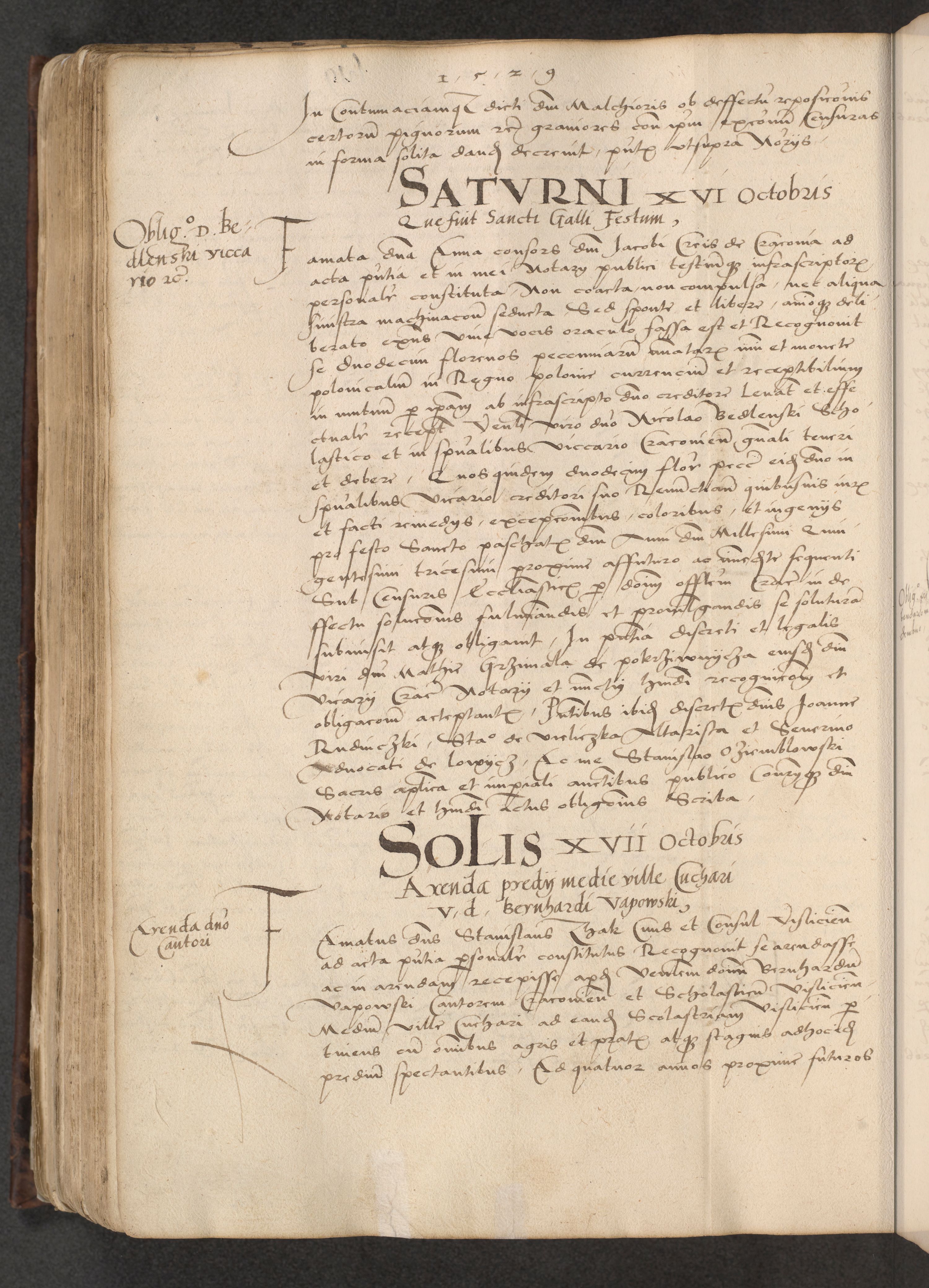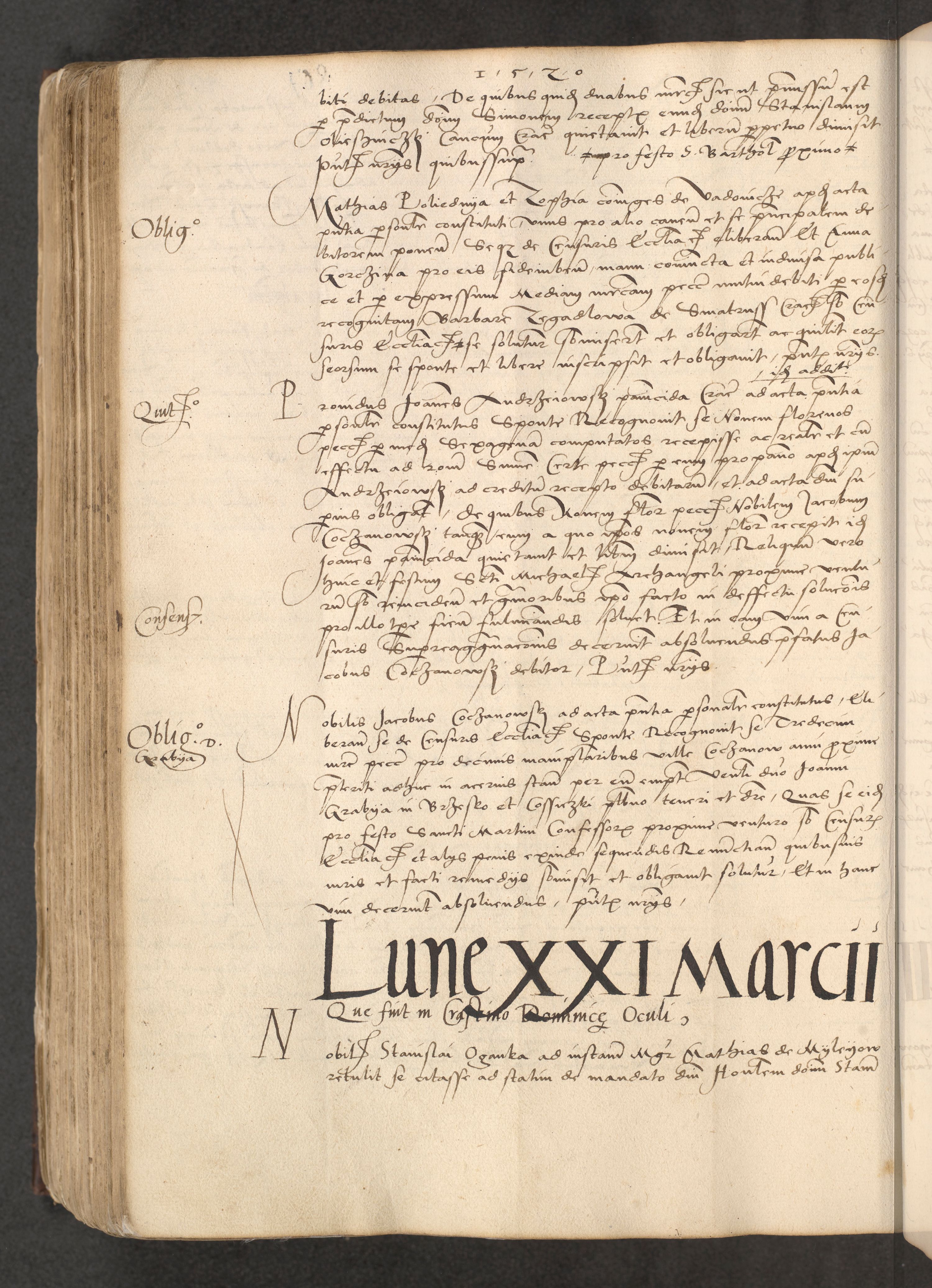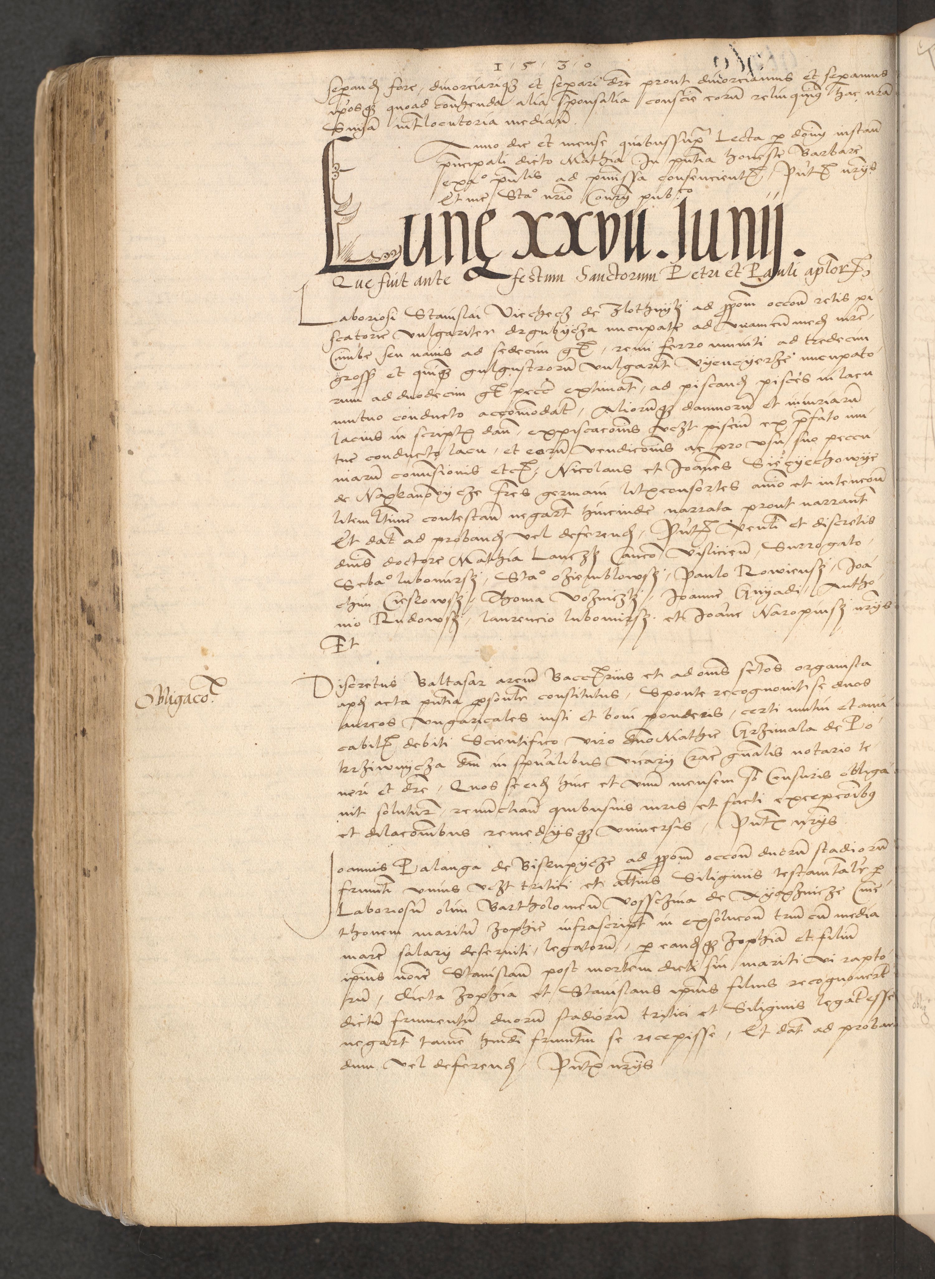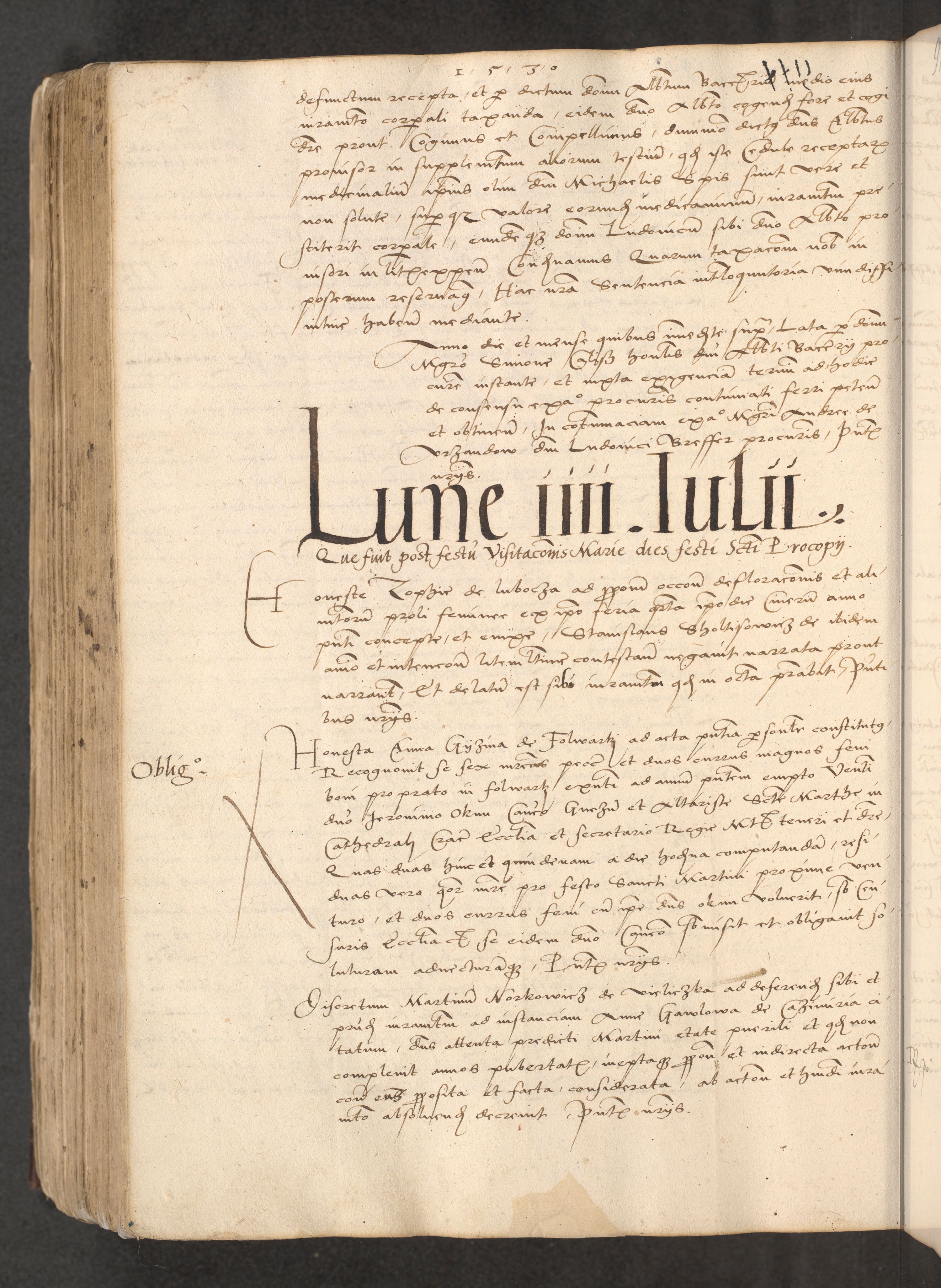 INRI. Acta actorum, obligacionum et sentenciarum tam interlocutoriarum quam diffinitivarum coram reverendo patre ac egregio viro domino Jacobo Erciss[o]wski decretorum doctorem, canonico et officiali generali Cracoviensi ad annum Domini 1528, indicionem primam, pontificatus sanctissimi in Christo patris et domini domini Clementis divina probidendcia pape seprtimi, annum quintum, per Stanislaum de Mordi legalem consistorii notarium omine felici inchoantur