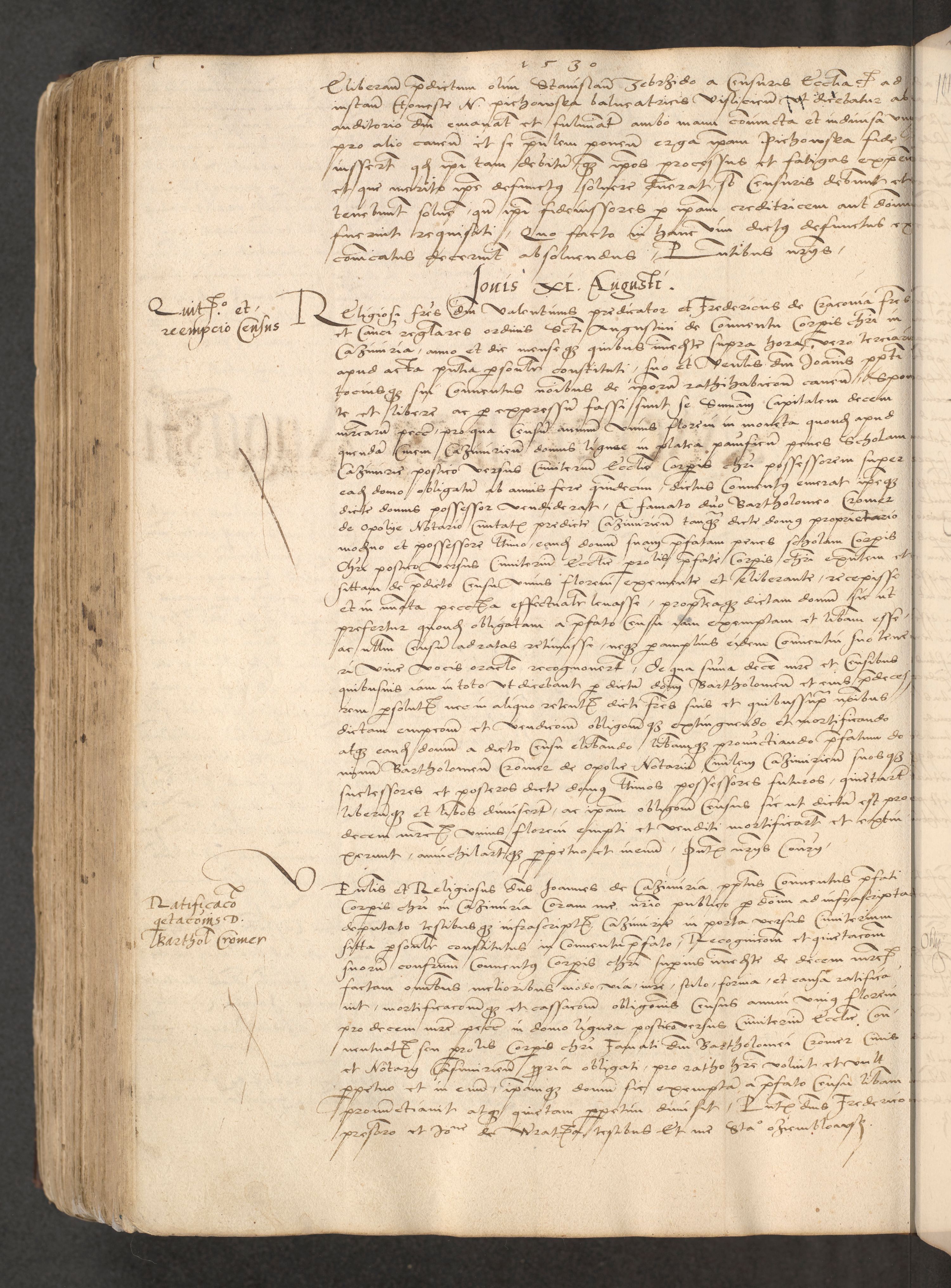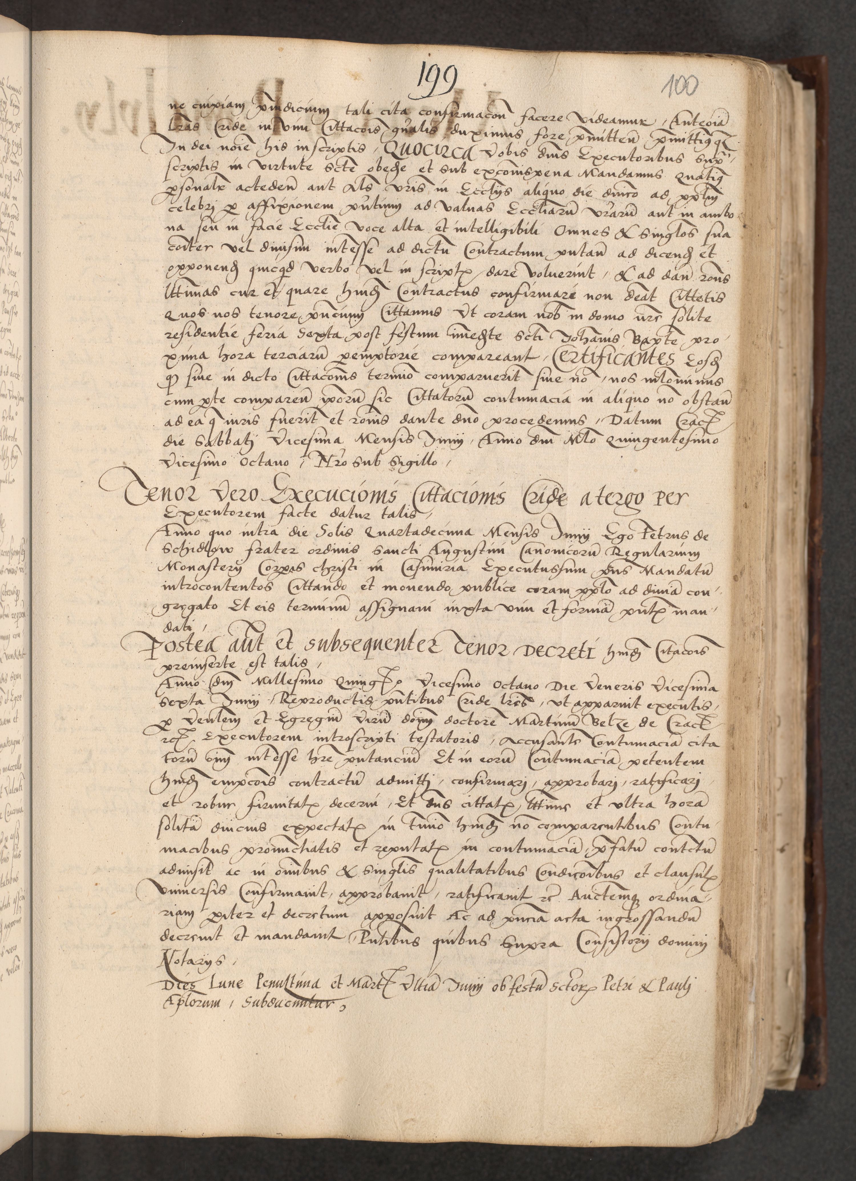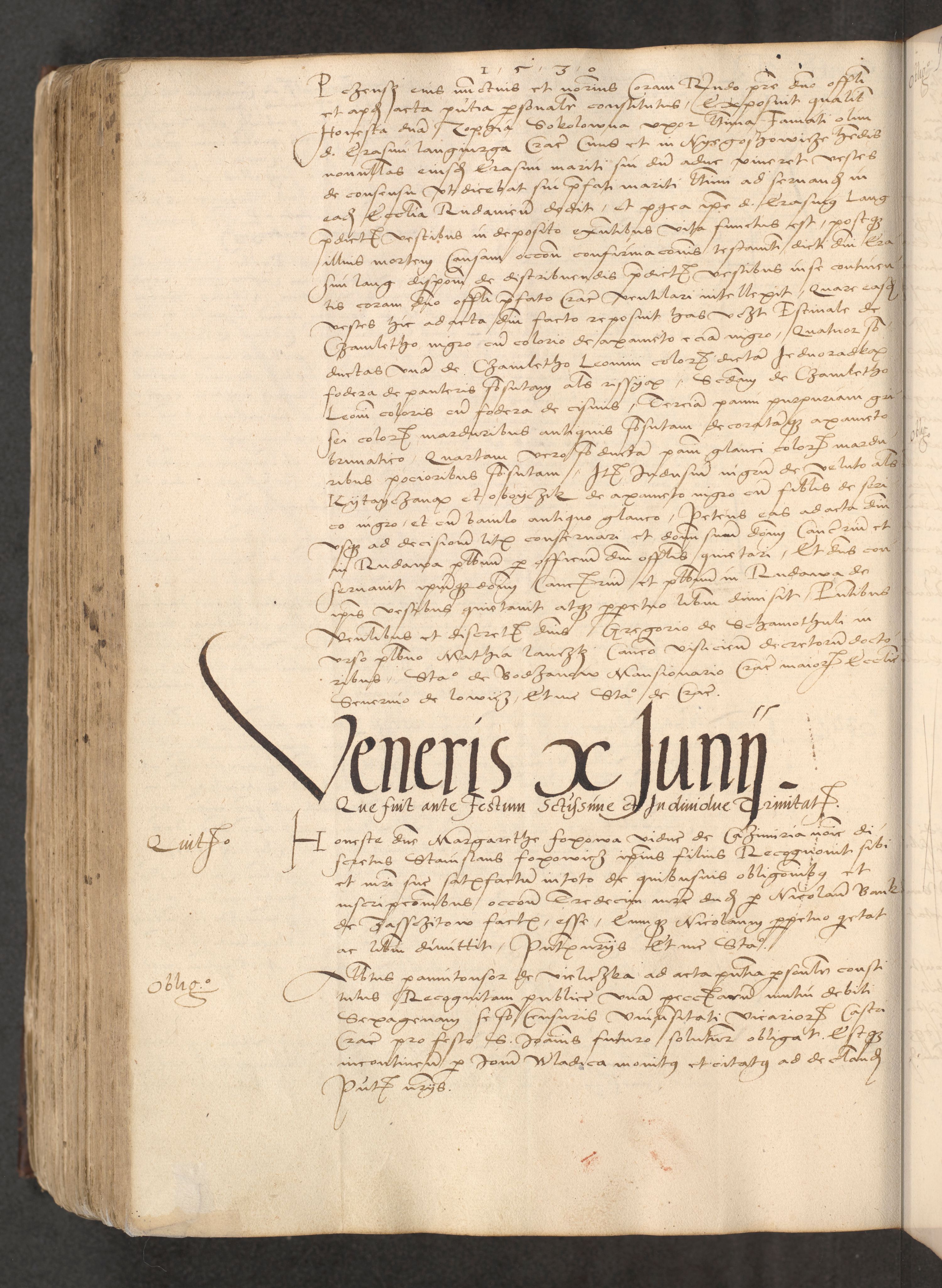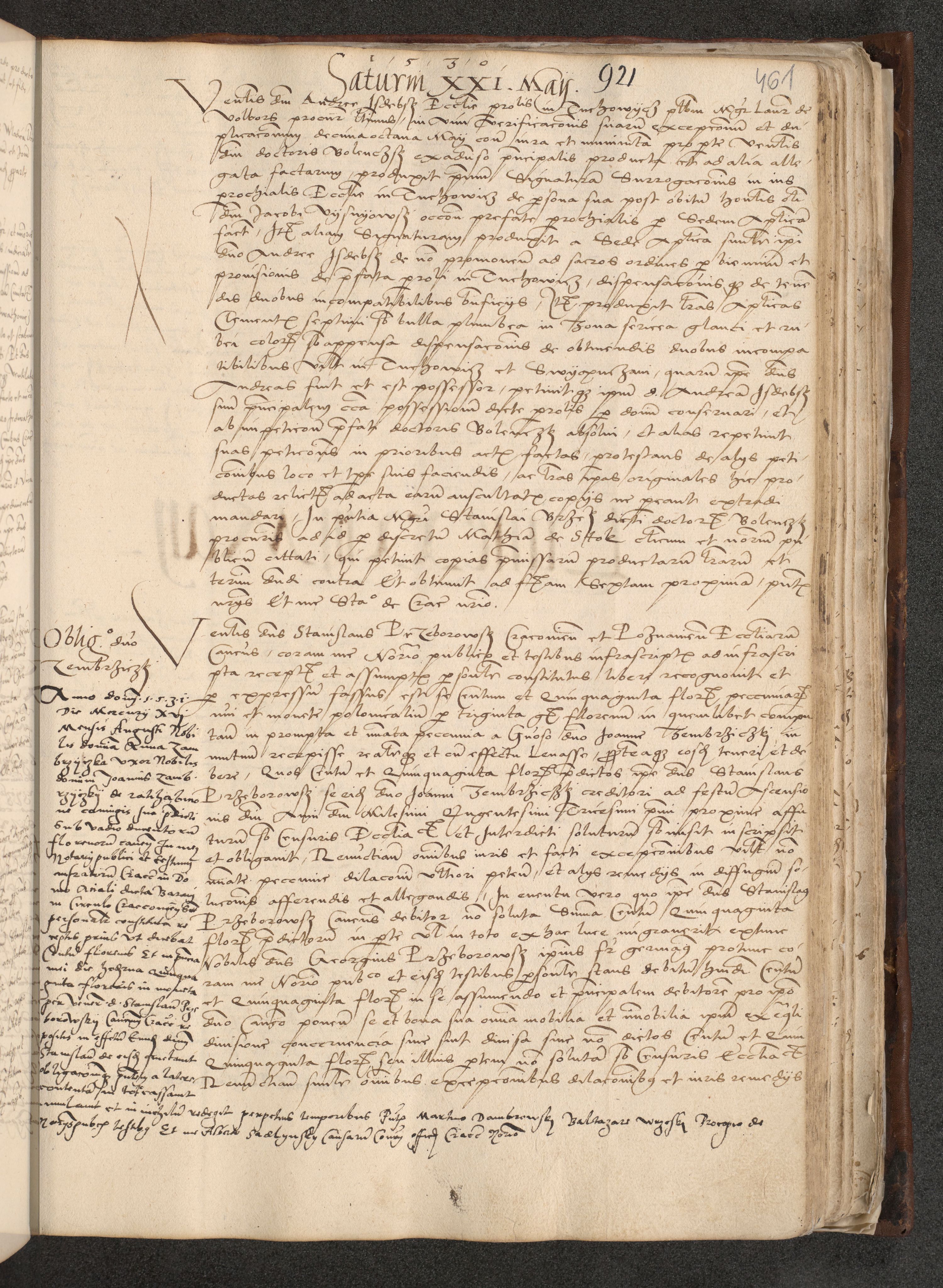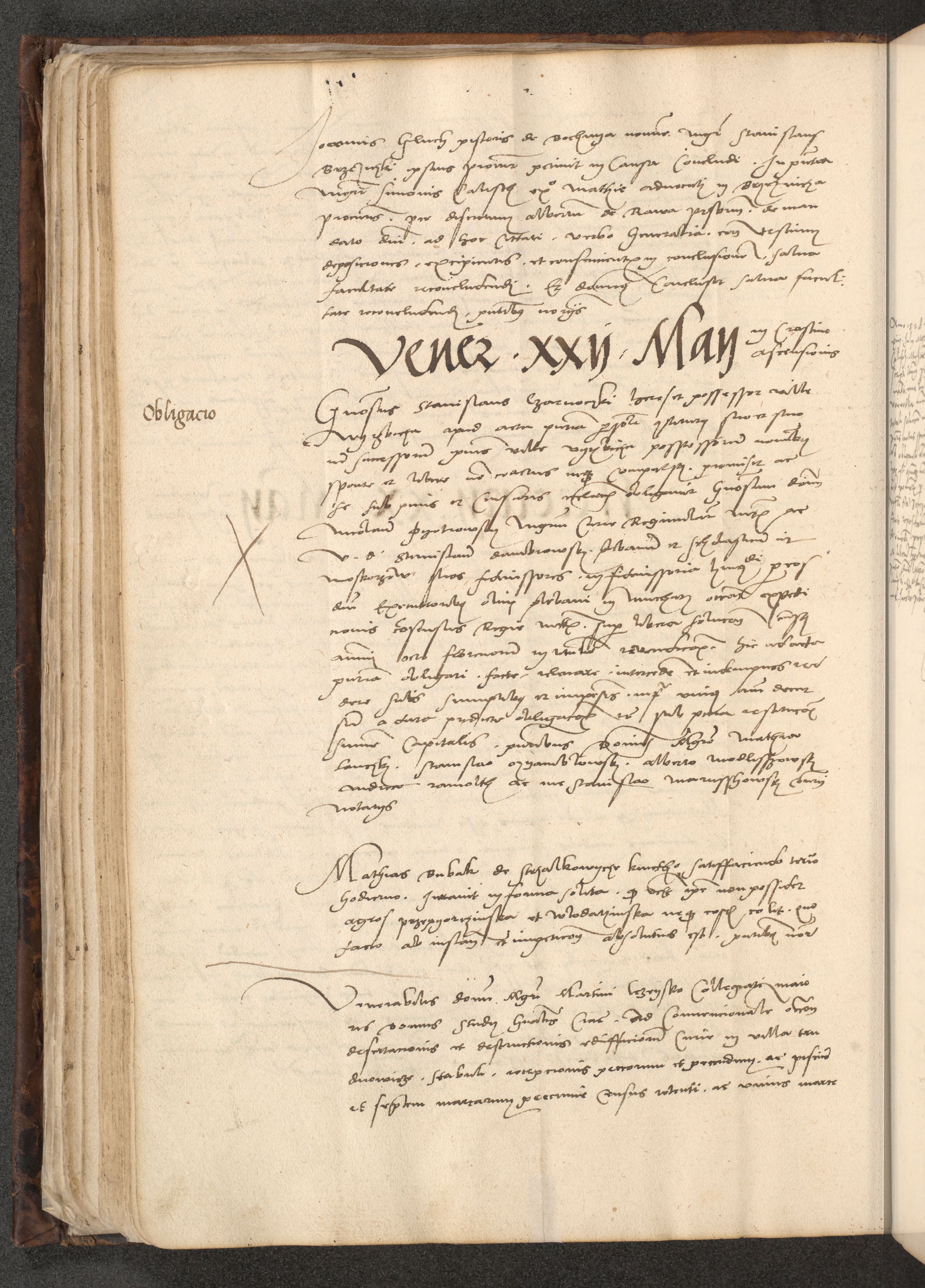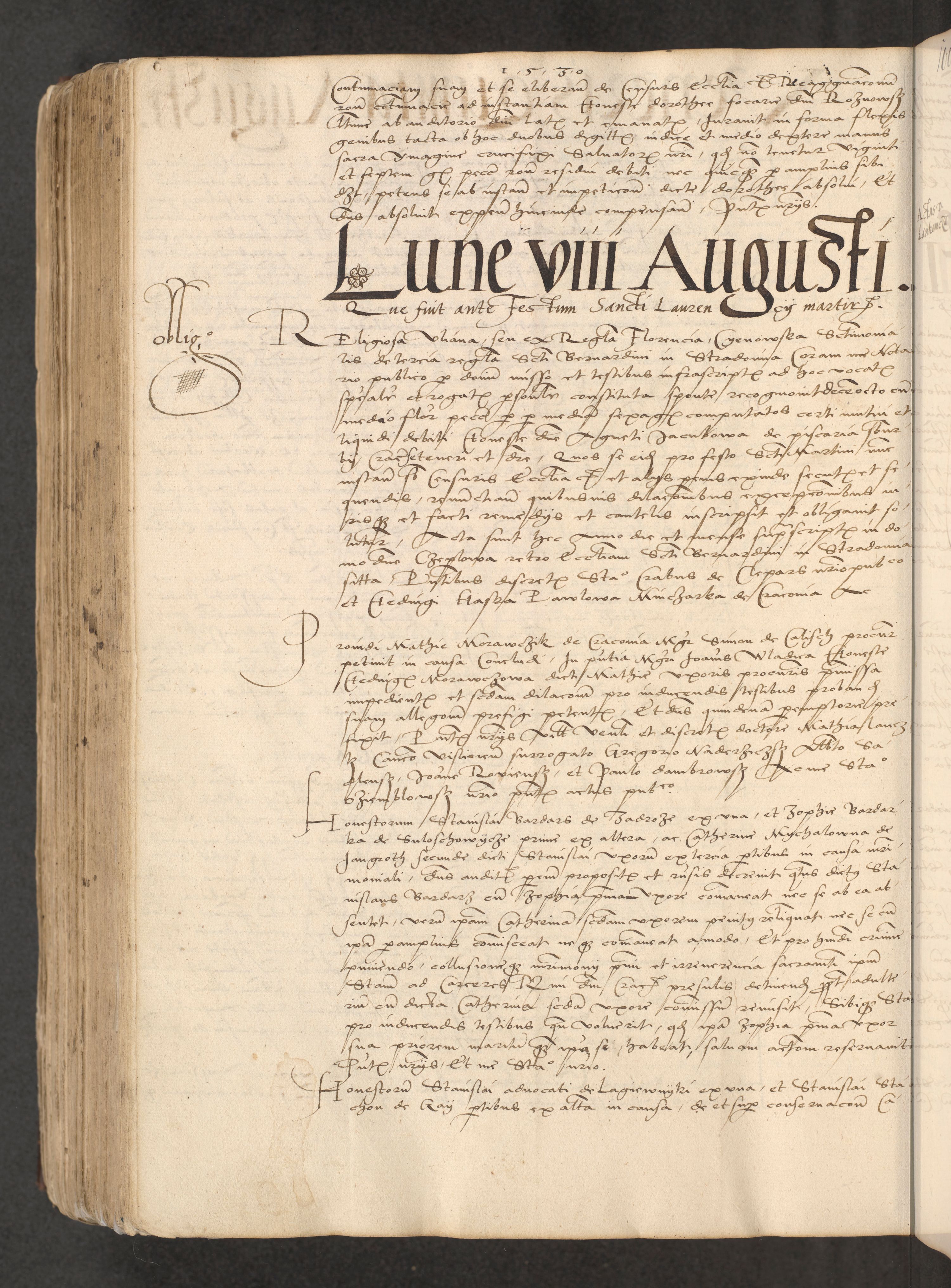 INRI. Acta actorum, obligacionum et sentenciarum tam interlocutoriarum quam diffinitivarum coram reverendo patre ac egregio viro domino Jacobo Erciss[o]wski decretorum doctorem, canonico et officiali generali Cracoviensi ad annum Domini 1528, indicionem primam, pontificatus sanctissimi in Christo patris et domini domini Clementis divina probidendcia pape seprtimi, annum quintum, per Stanislaum de Mordi legalem consistorii notarium omine felici inchoantur
