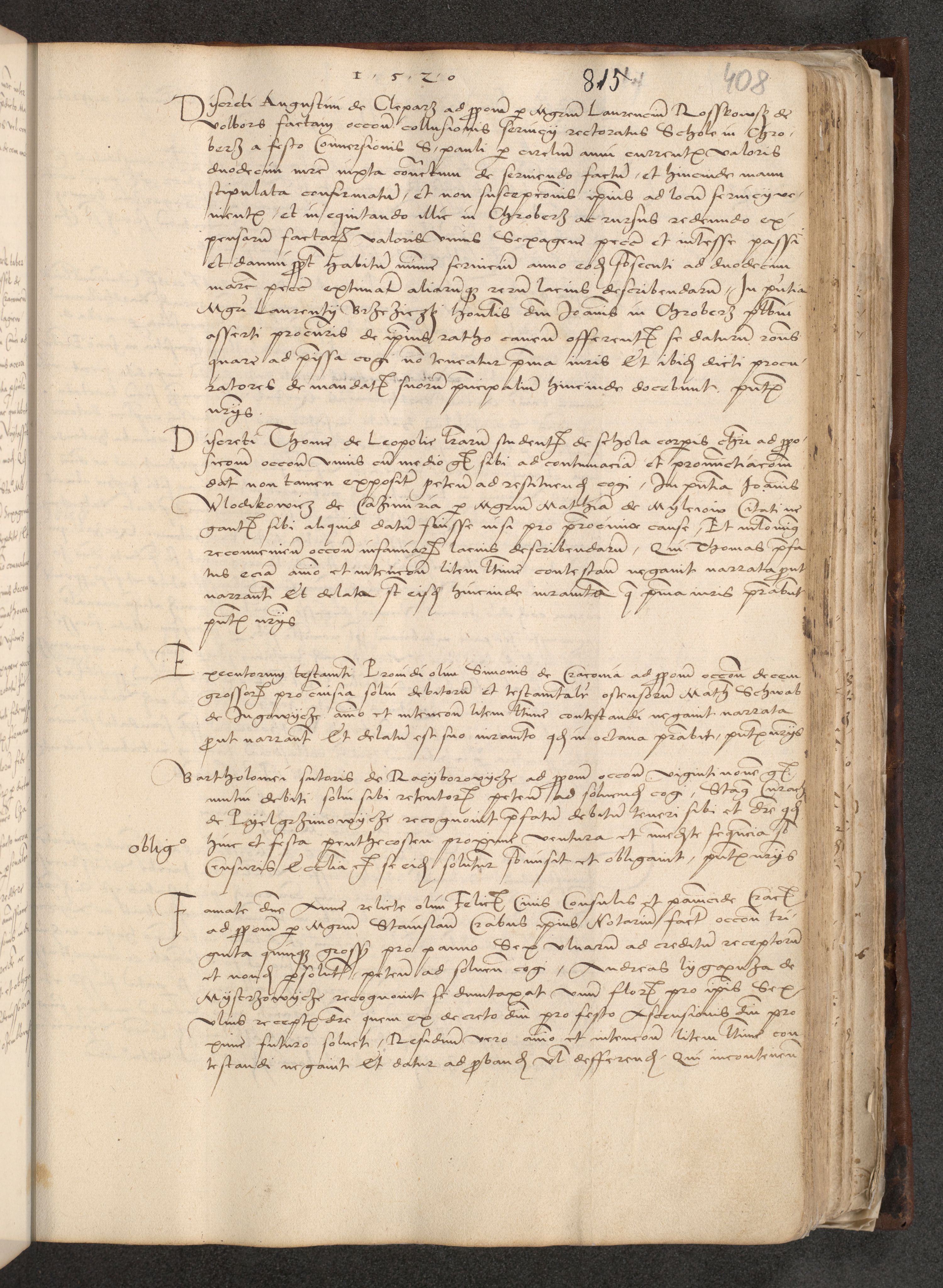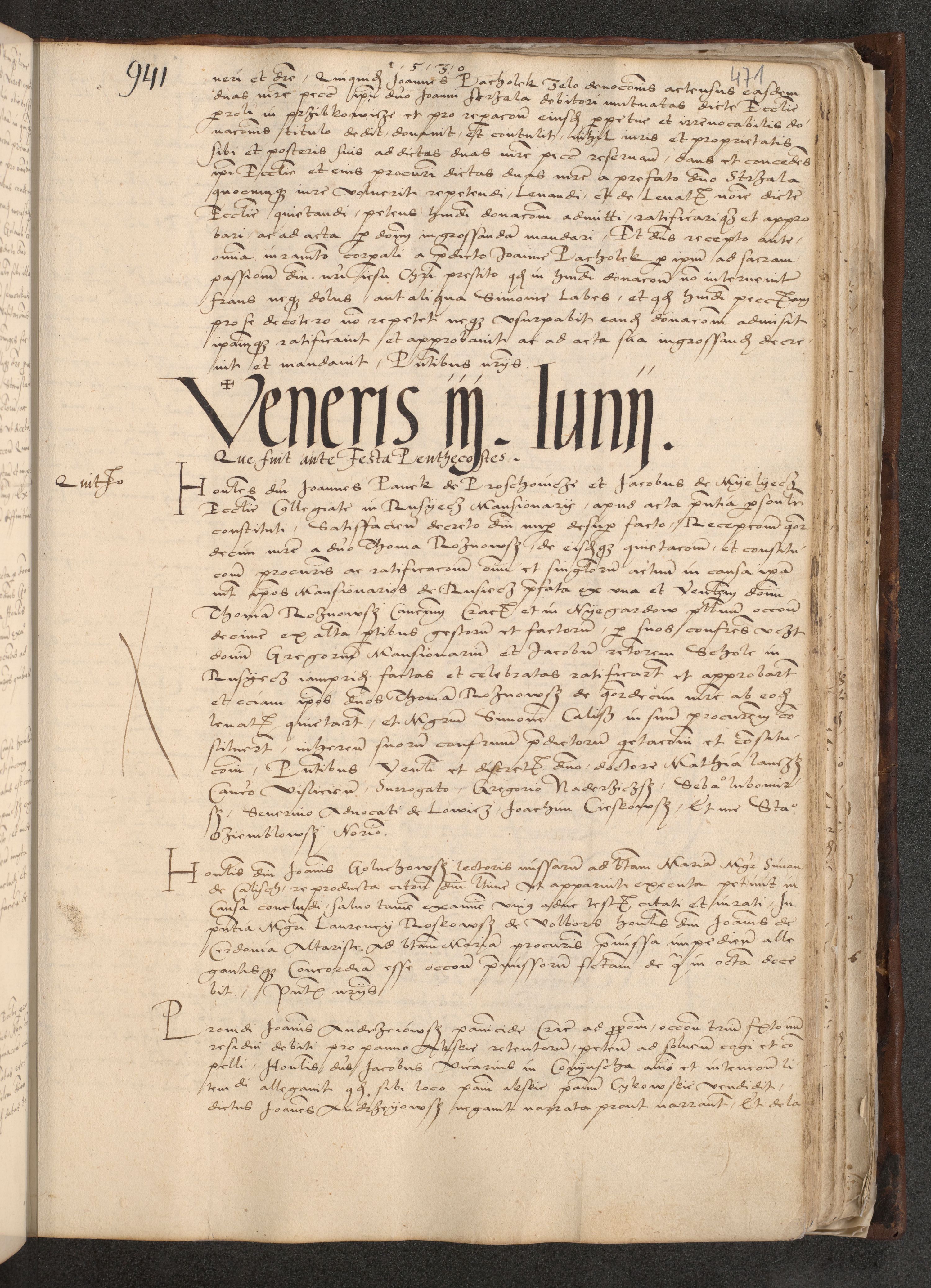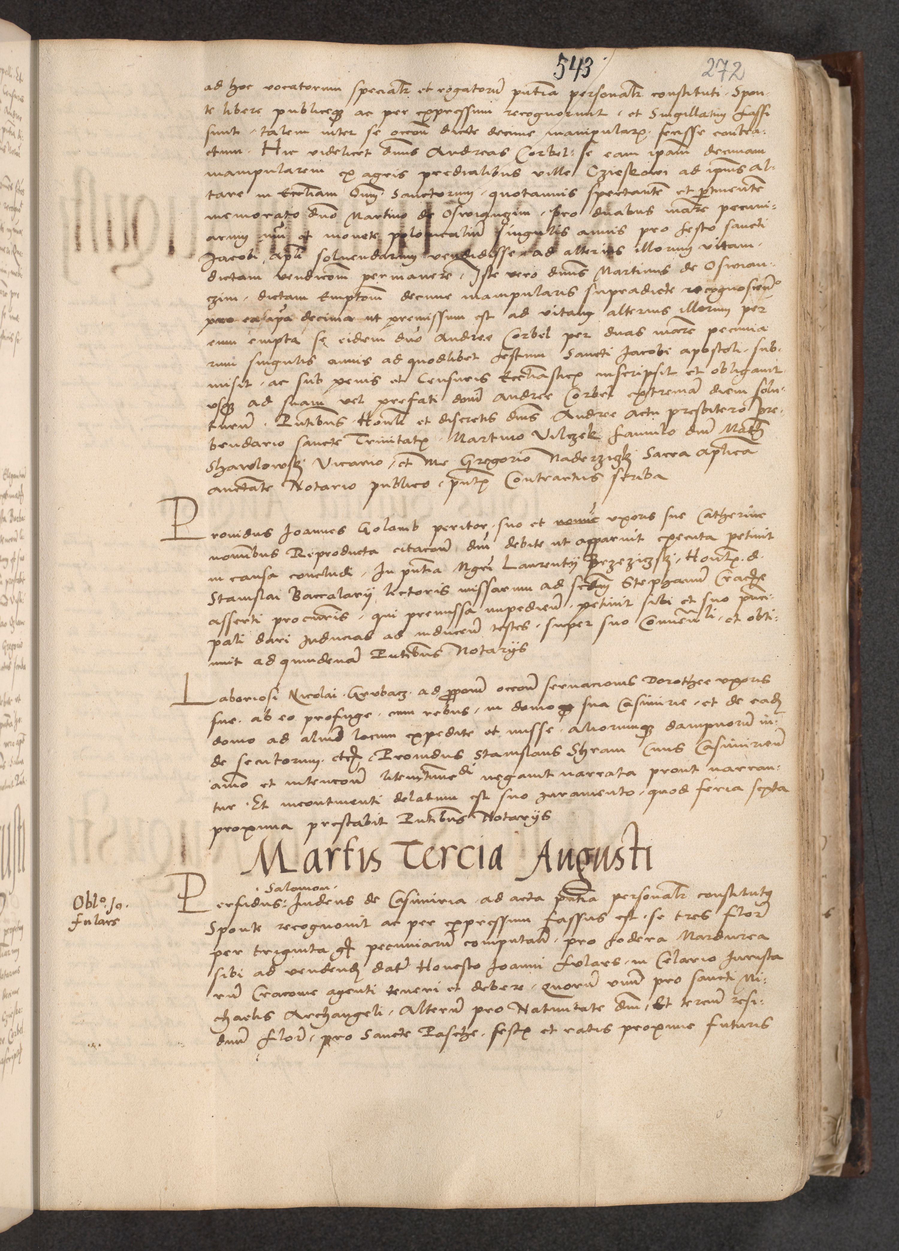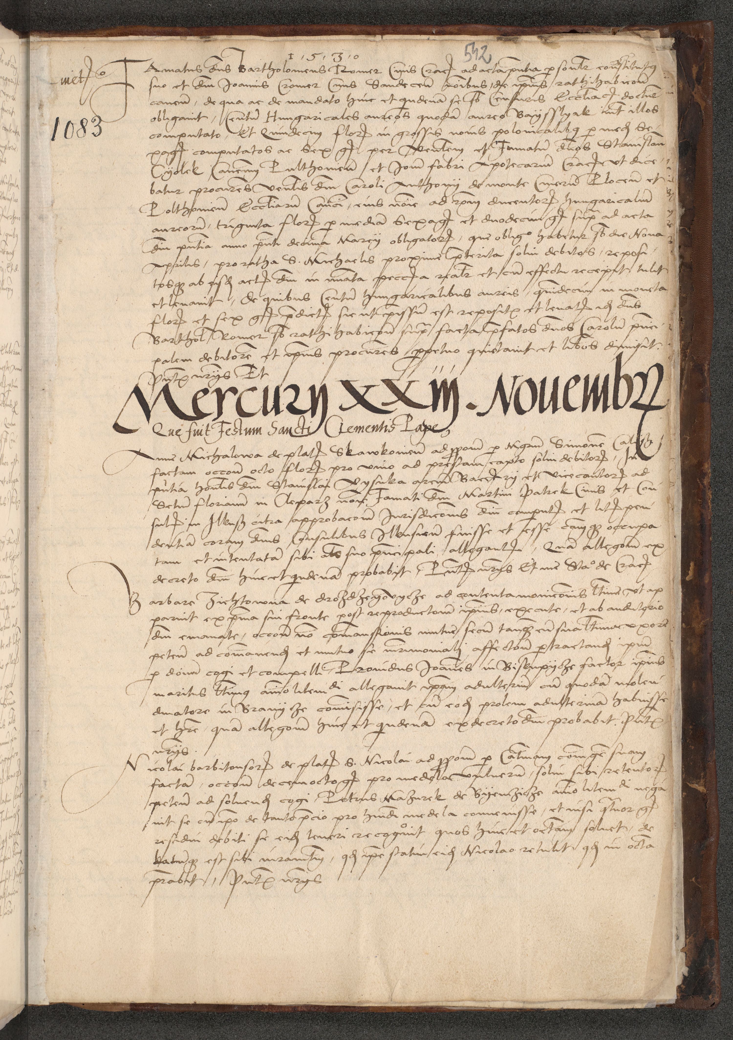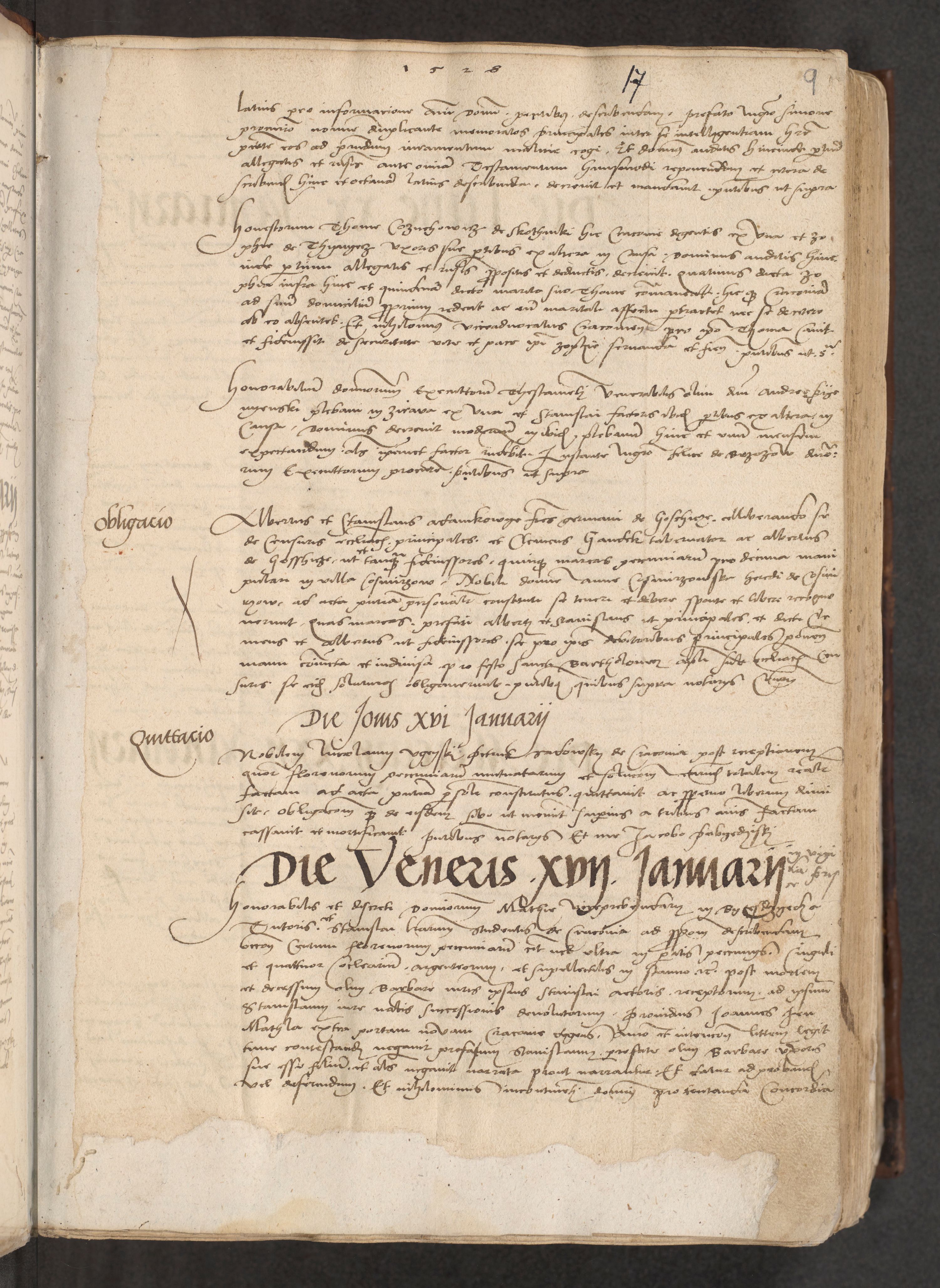 INRI. Acta actorum, obligacionum et sentenciarum tam interlocutoriarum quam diffinitivarum coram reverendo patre ac egregio viro domino Jacobo Erciss[o]wski decretorum doctorem, canonico et officiali generali Cracoviensi ad annum Domini 1528, indicionem primam, pontificatus sanctissimi in Christo patris et domini domini Clementis divina probidendcia pape seprtimi, annum quintum, per Stanislaum de Mordi legalem consistorii notarium omine felici inchoantur