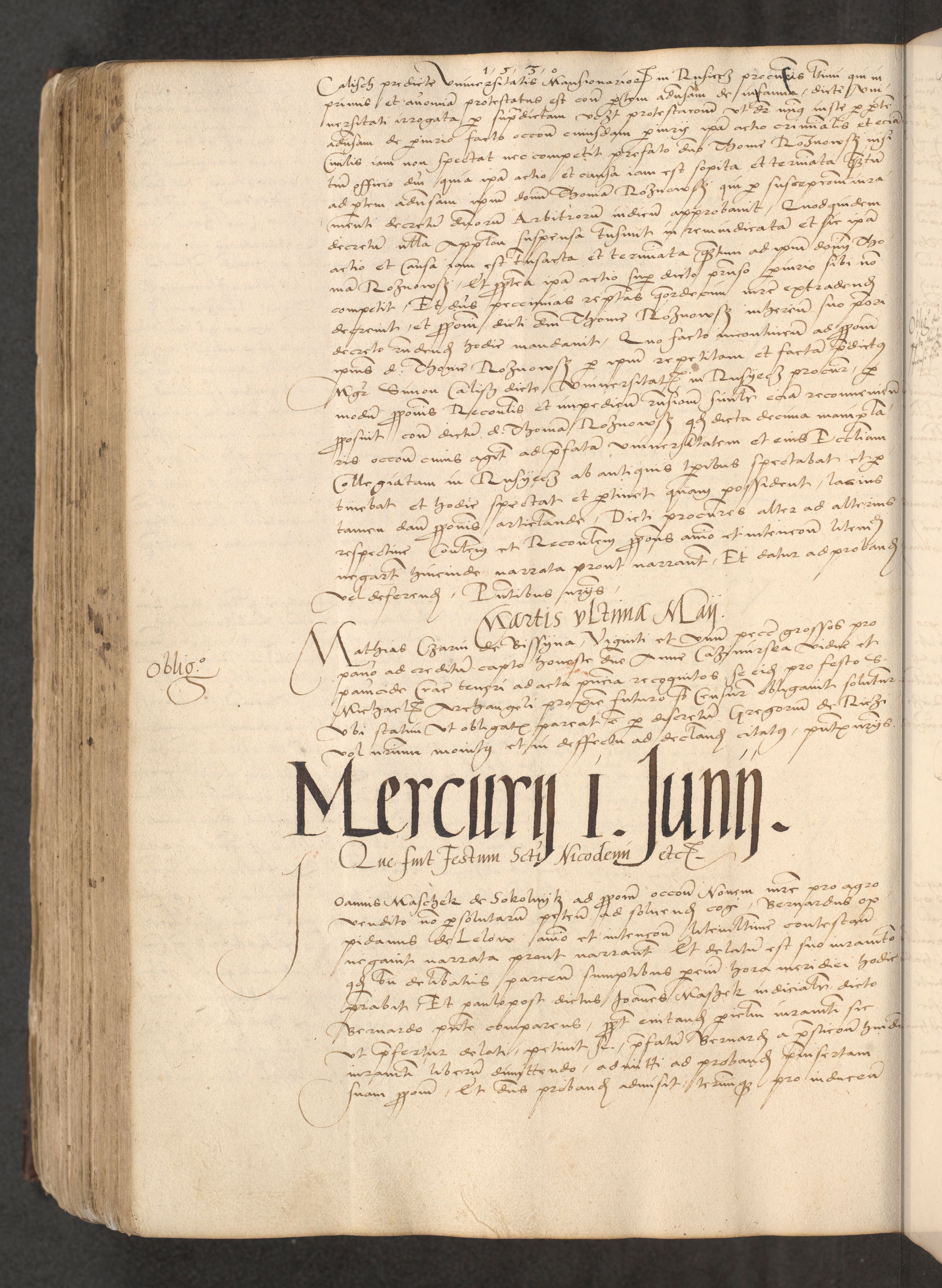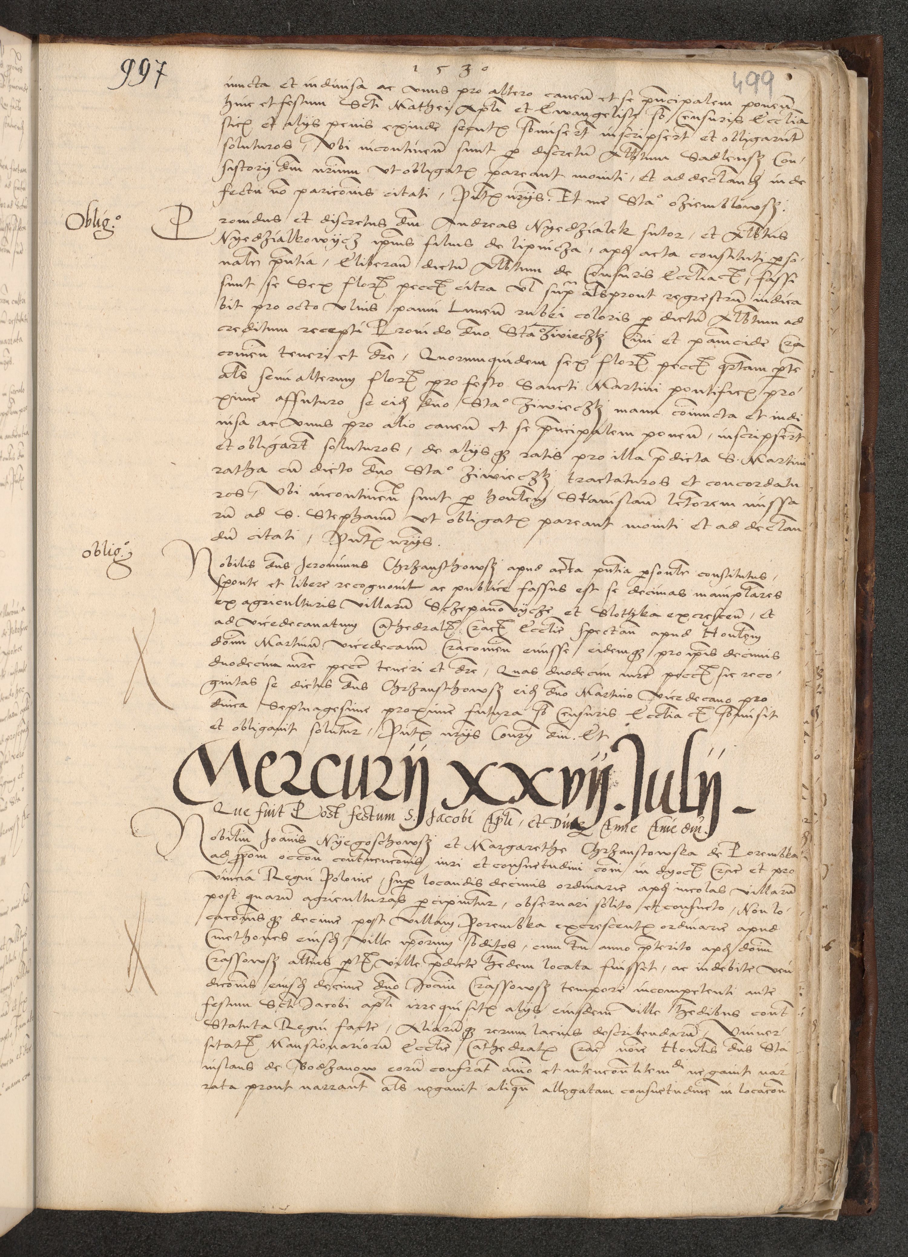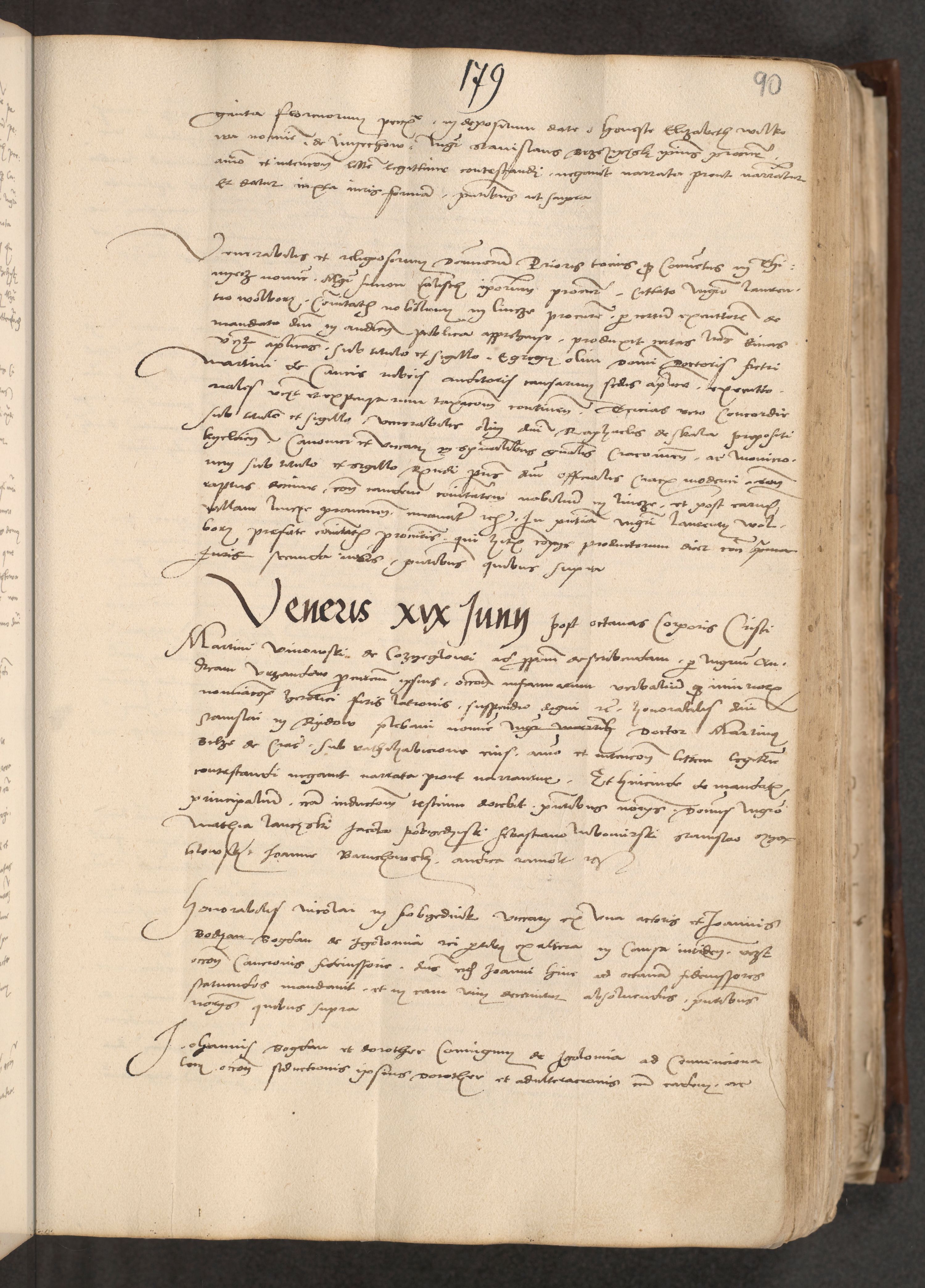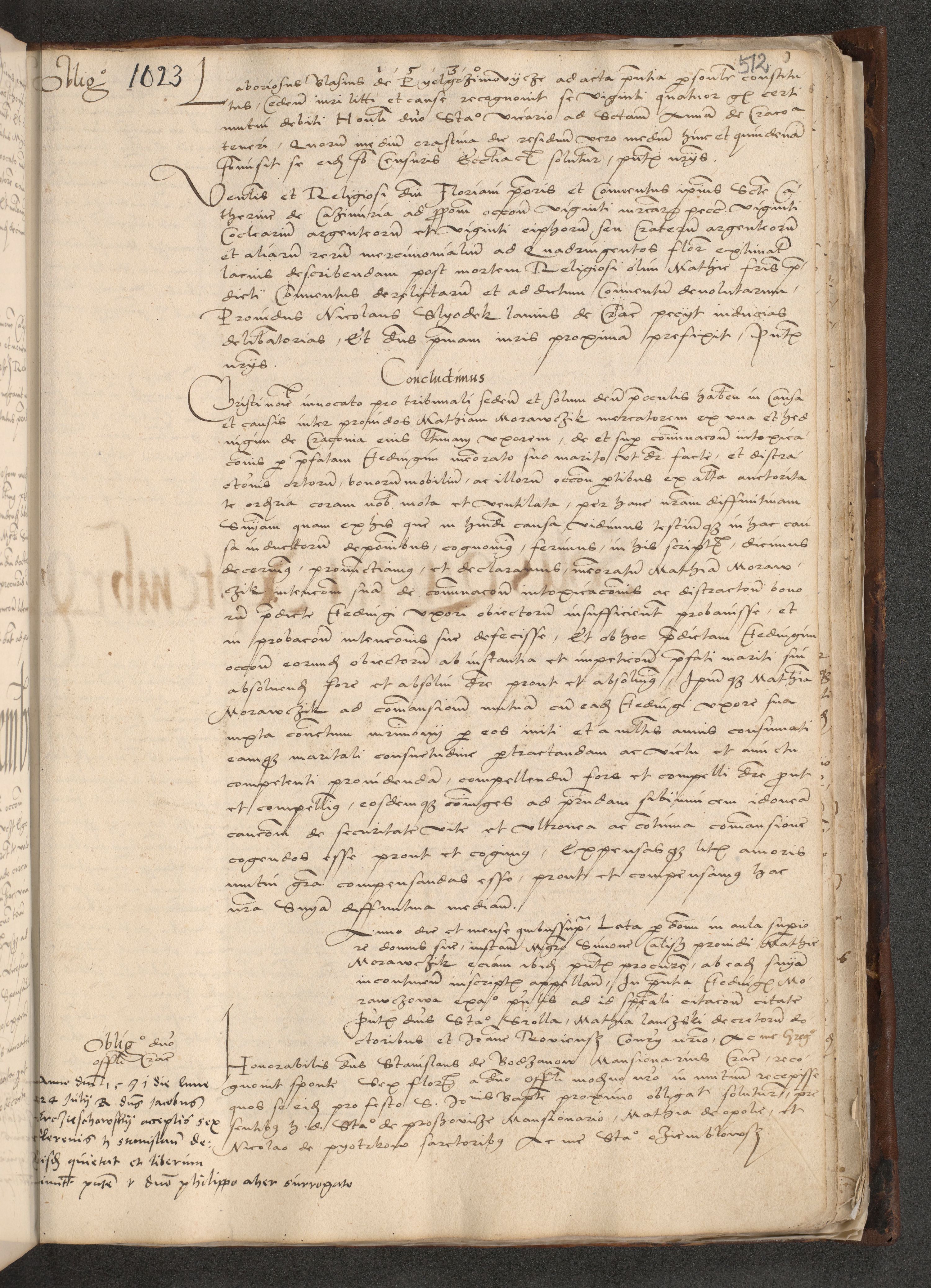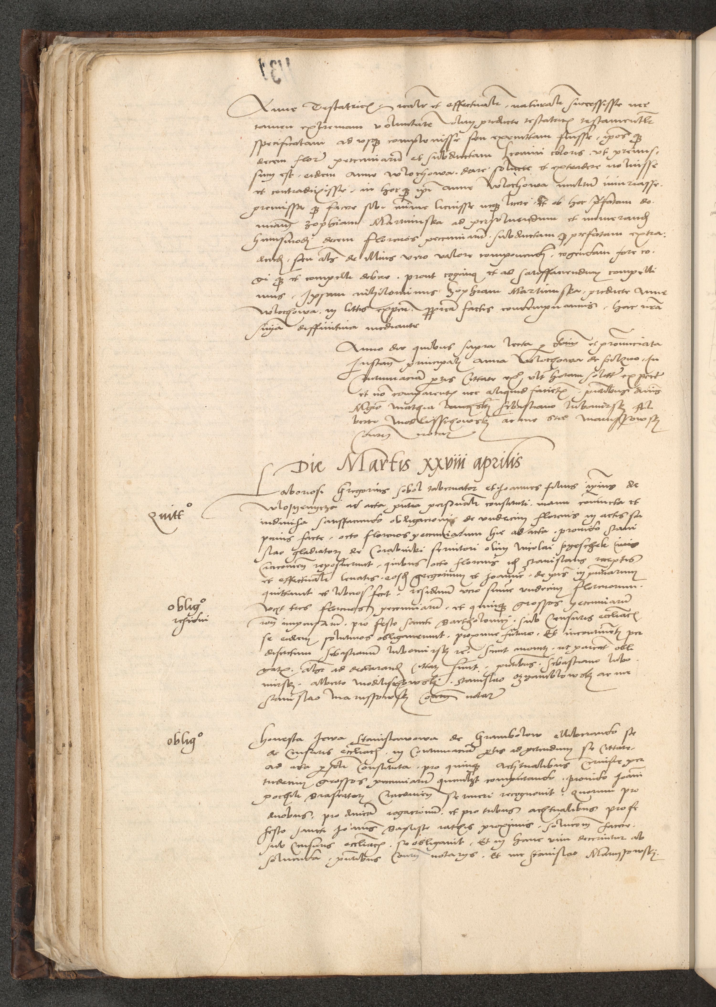 INRI. Acta actorum, obligacionum et sentenciarum tam interlocutoriarum quam diffinitivarum coram reverendo patre ac egregio viro domino Jacobo Erciss[o]wski decretorum doctorem, canonico et officiali generali Cracoviensi ad annum Domini 1528, indicionem primam, pontificatus sanctissimi in Christo patris et domini domini Clementis divina probidendcia pape seprtimi, annum quintum, per Stanislaum de Mordi legalem consistorii notarium omine felici inchoantur