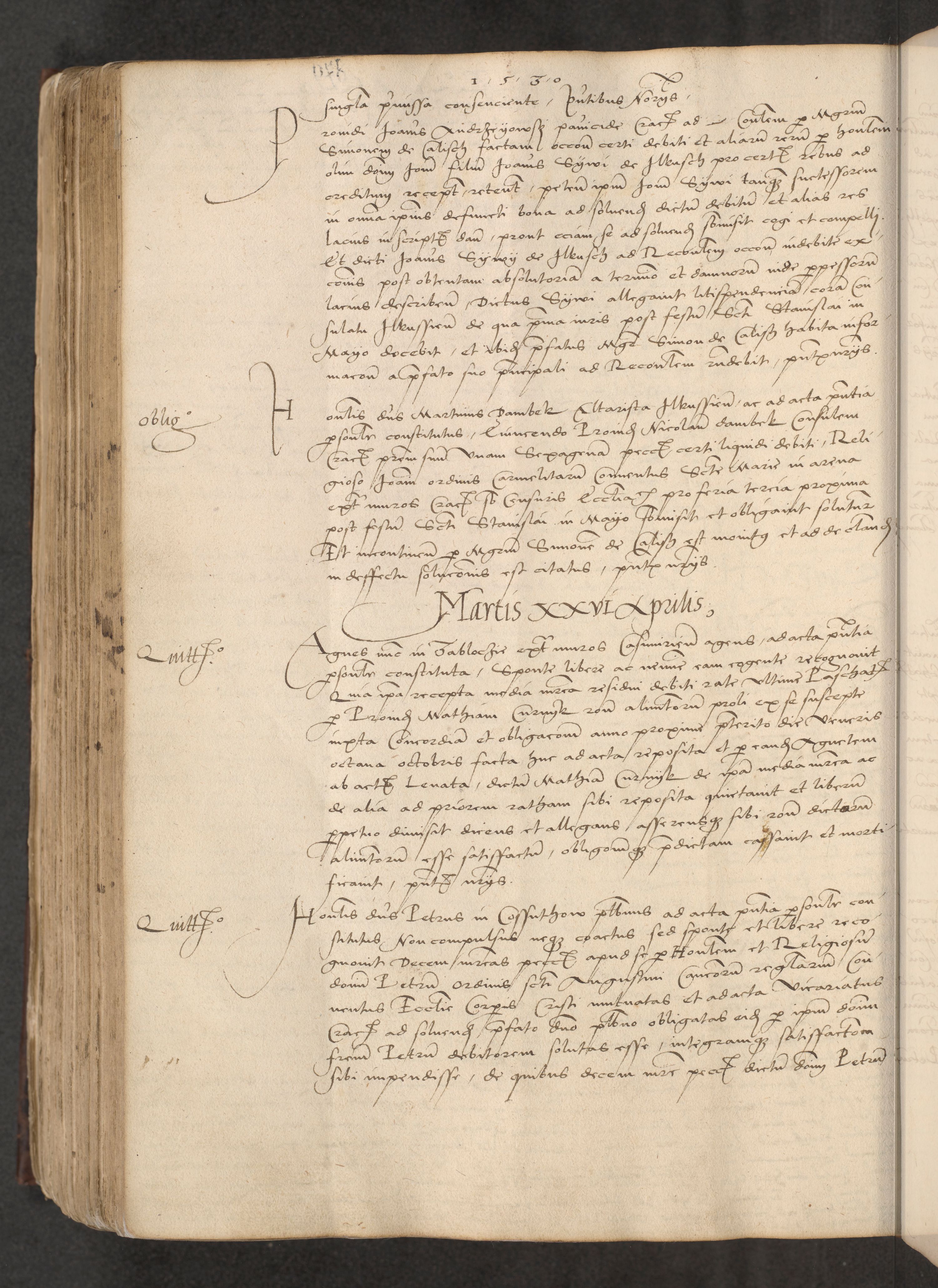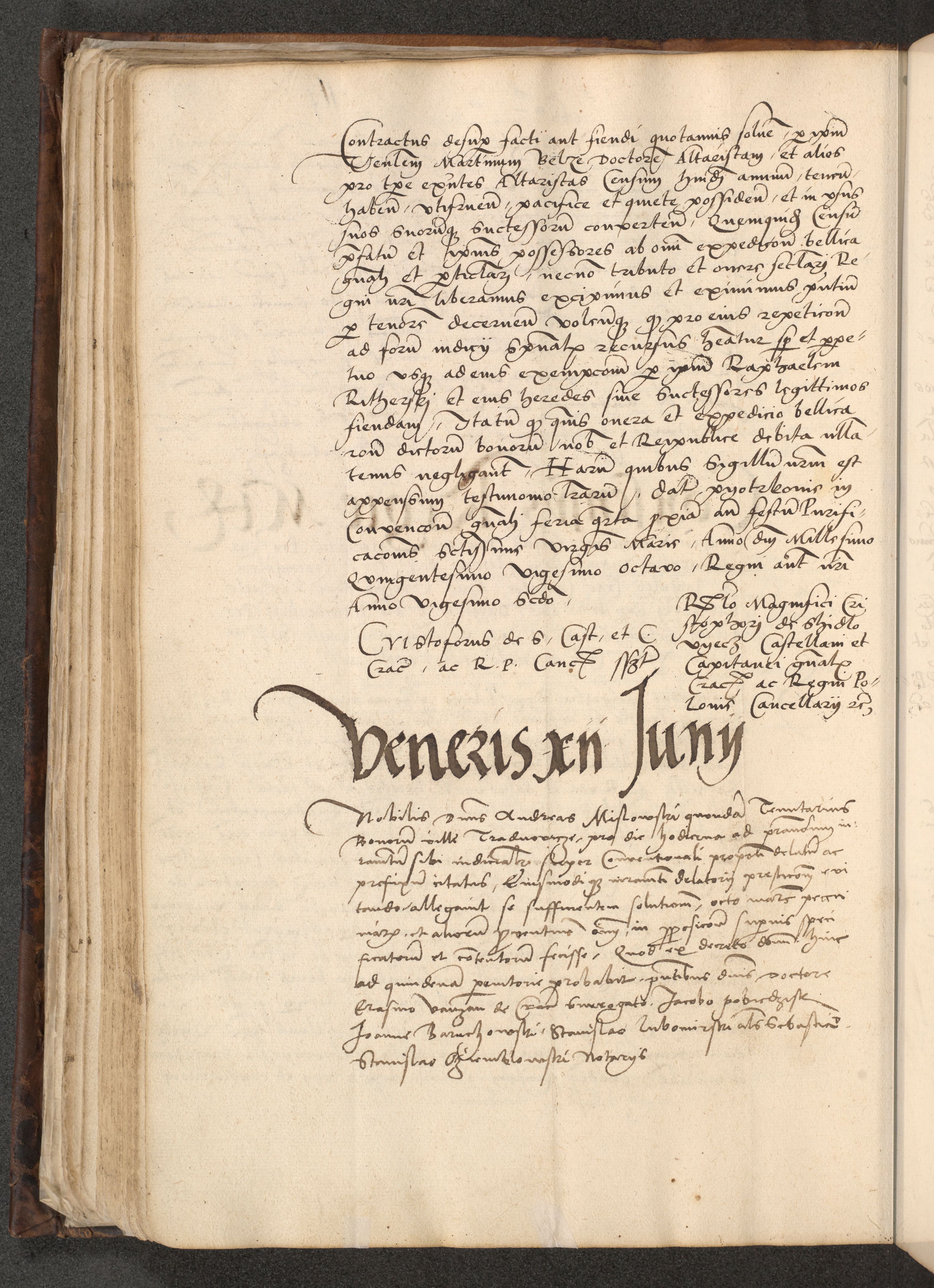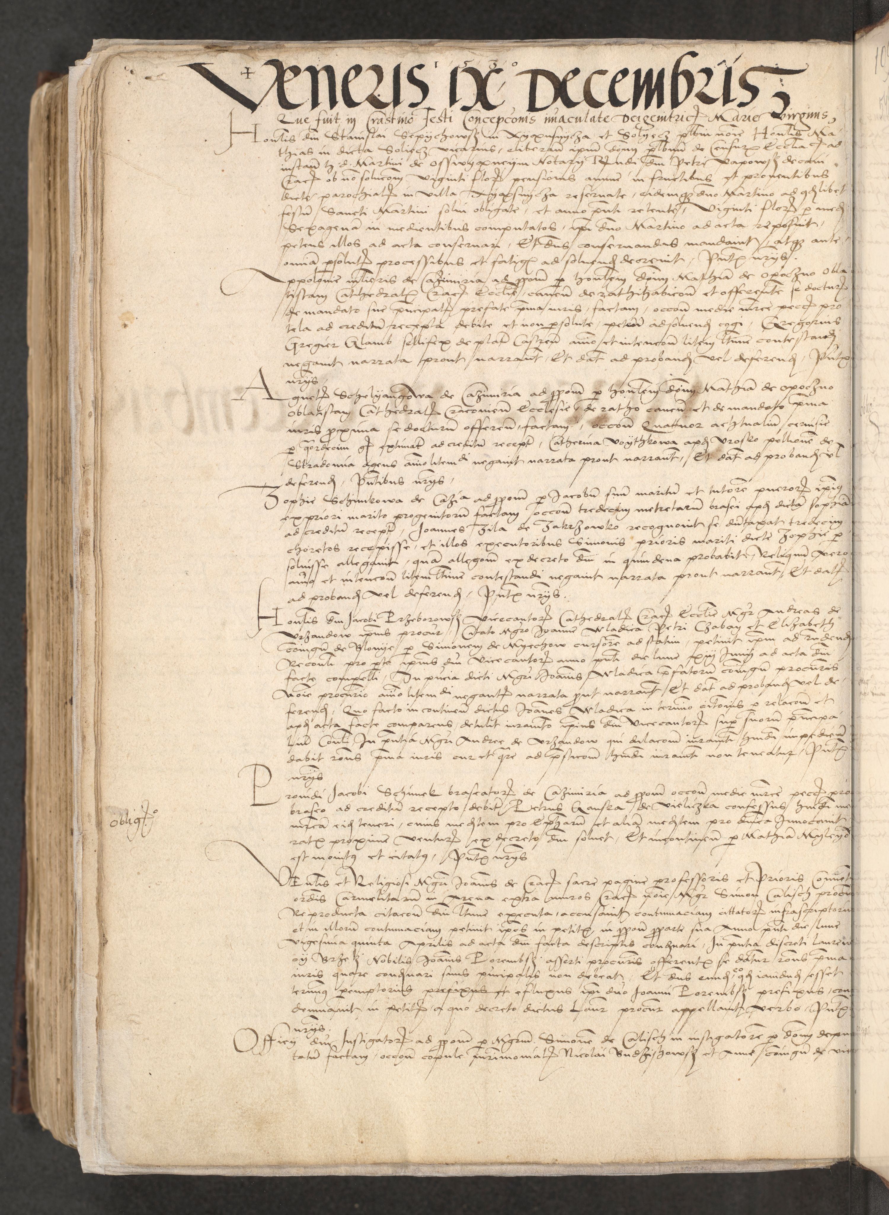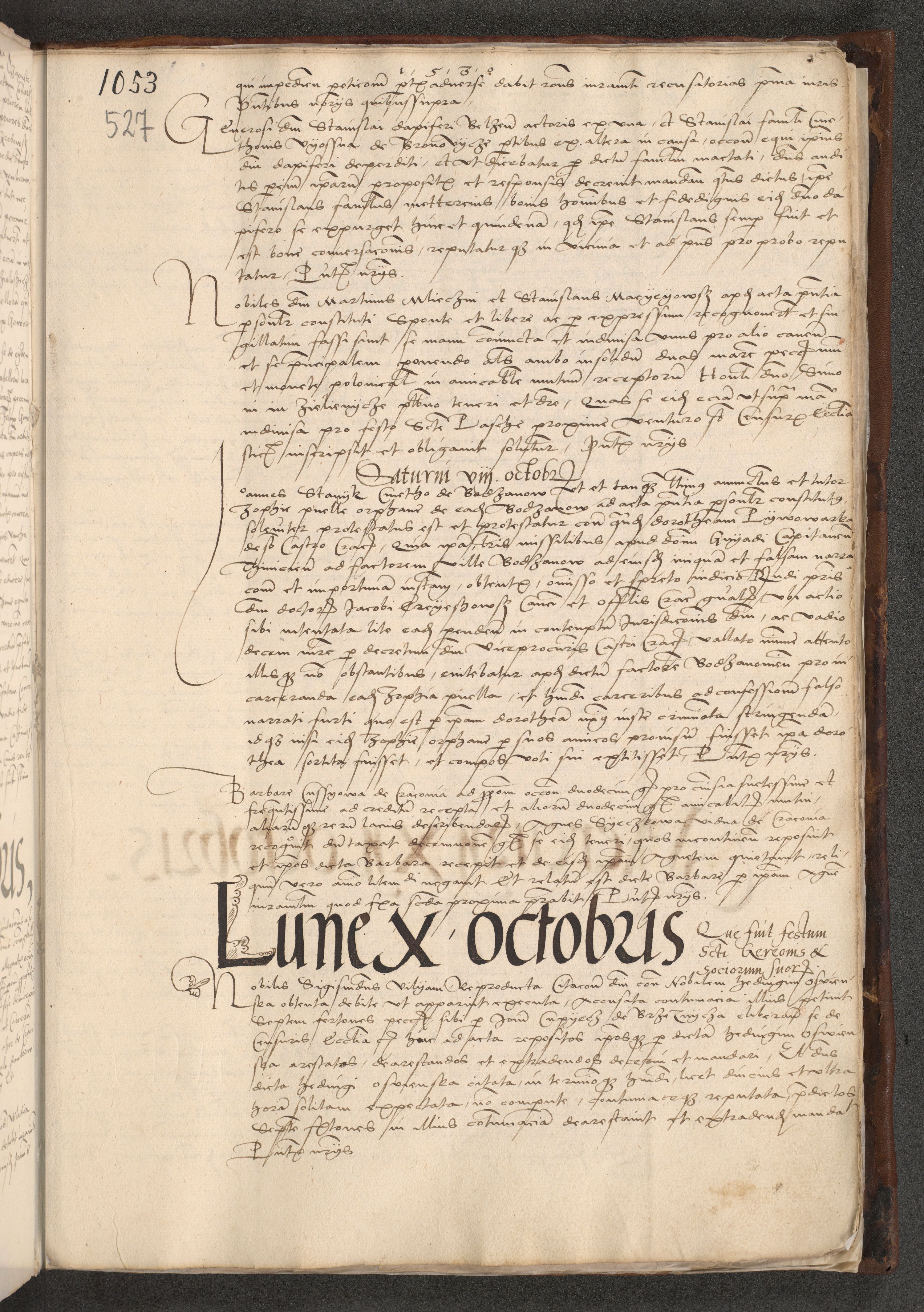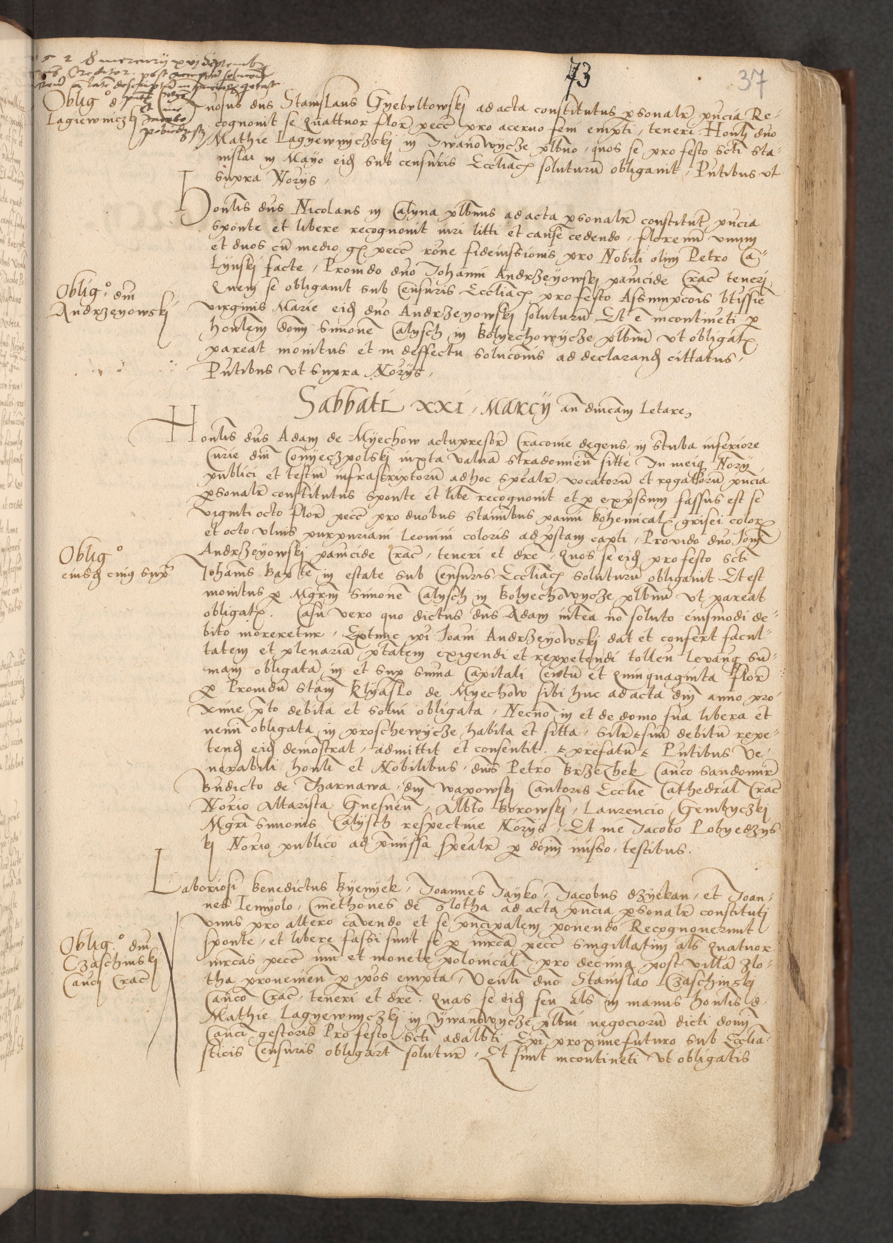 INRI. Acta actorum, obligacionum et sentenciarum tam interlocutoriarum quam diffinitivarum coram reverendo patre ac egregio viro domino Jacobo Erciss[o]wski decretorum doctorem, canonico et officiali generali Cracoviensi ad annum Domini 1528, indicionem primam, pontificatus sanctissimi in Christo patris et domini domini Clementis divina probidendcia pape seprtimi, annum quintum, per Stanislaum de Mordi legalem consistorii notarium omine felici inchoantur
