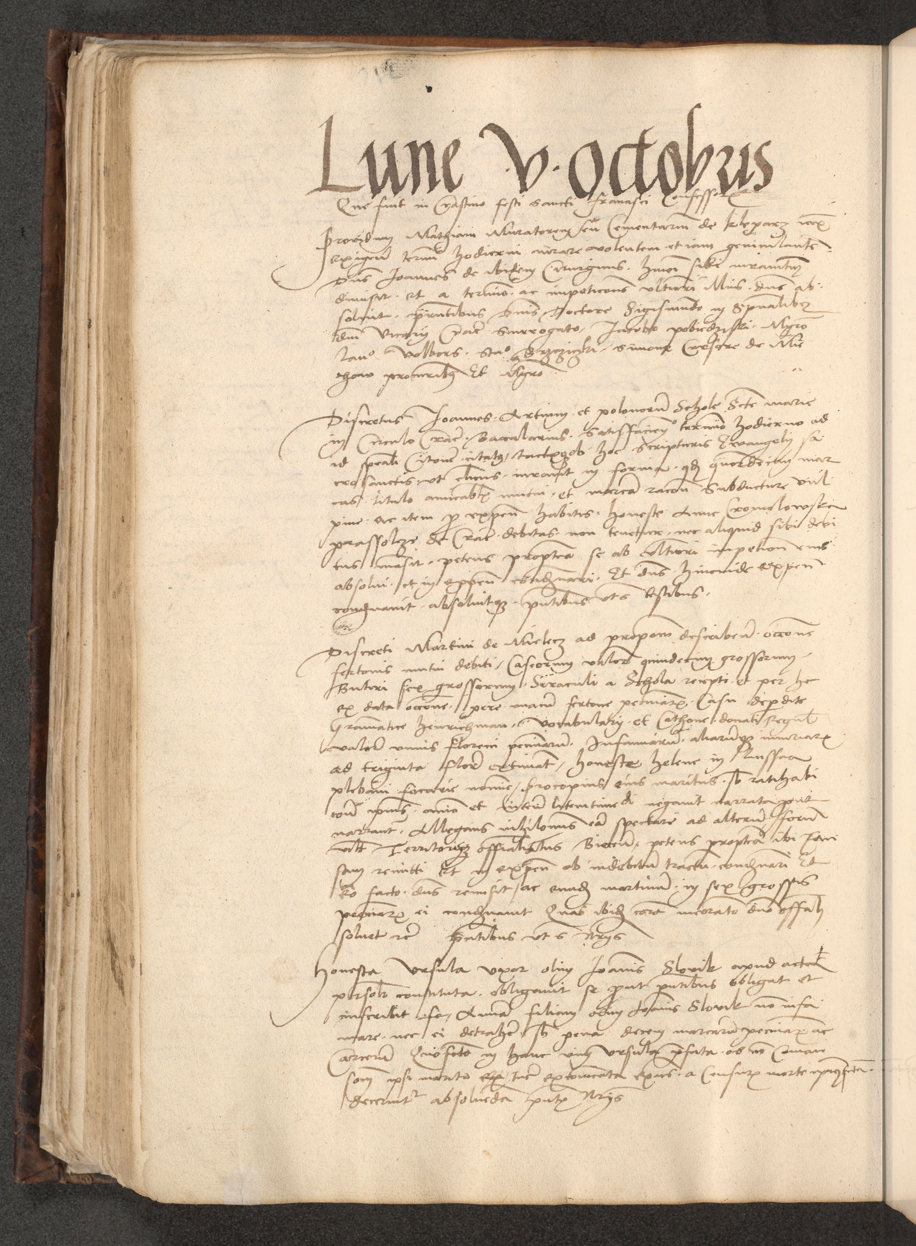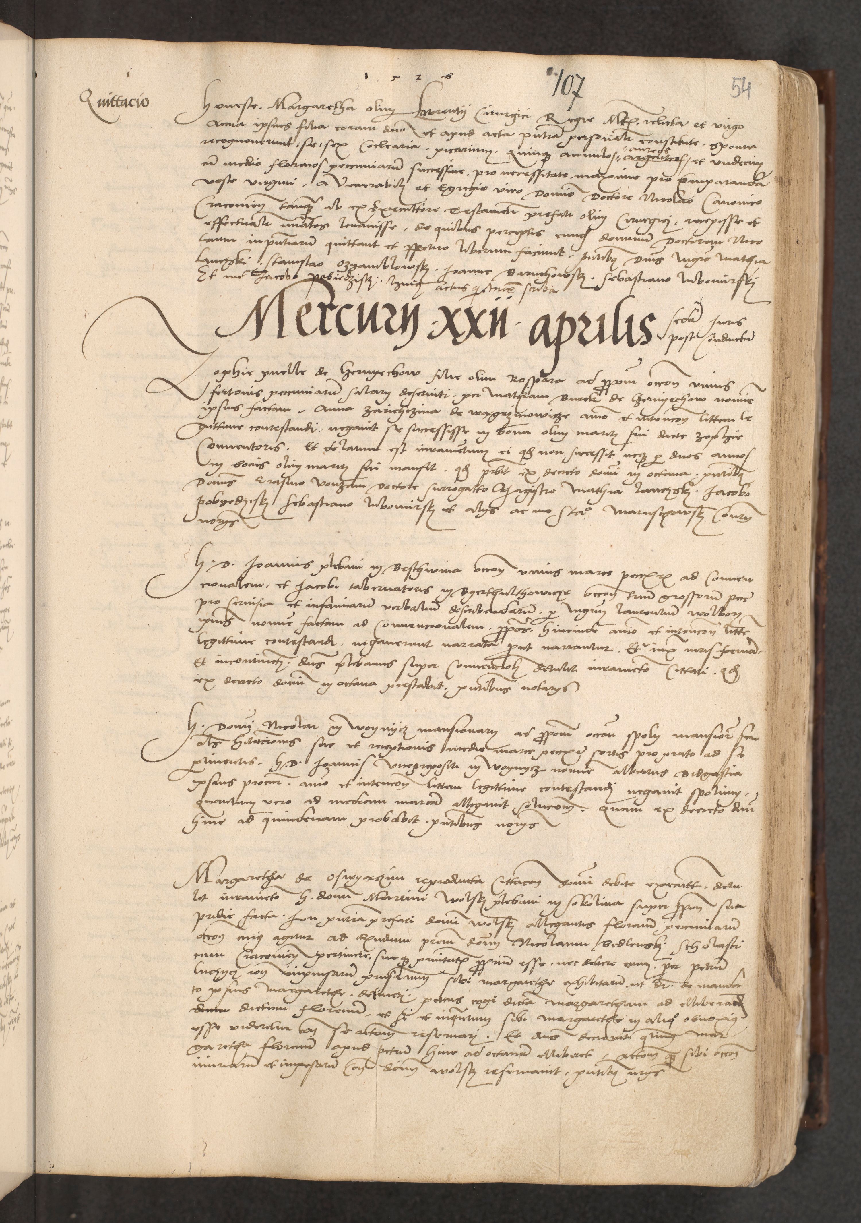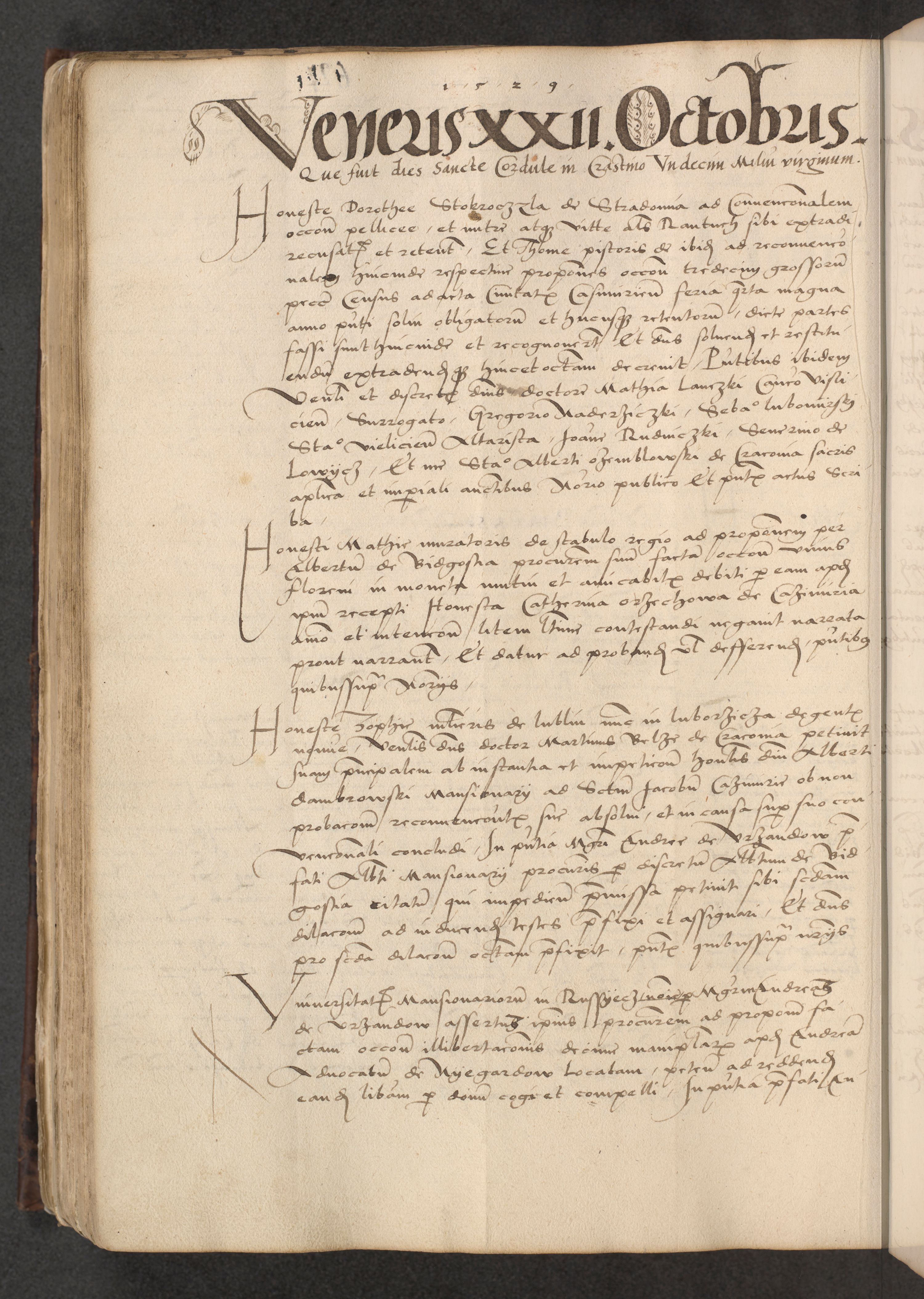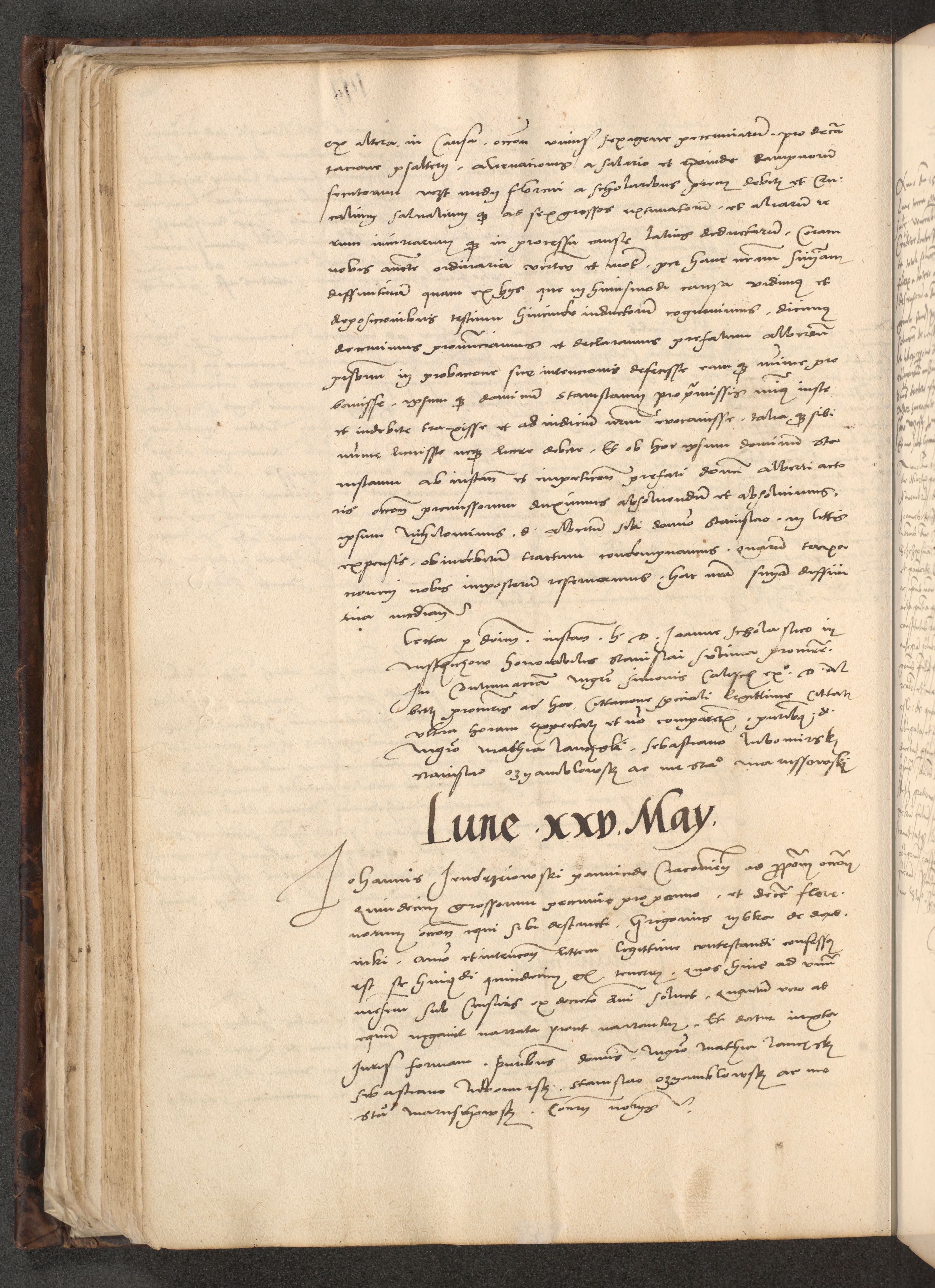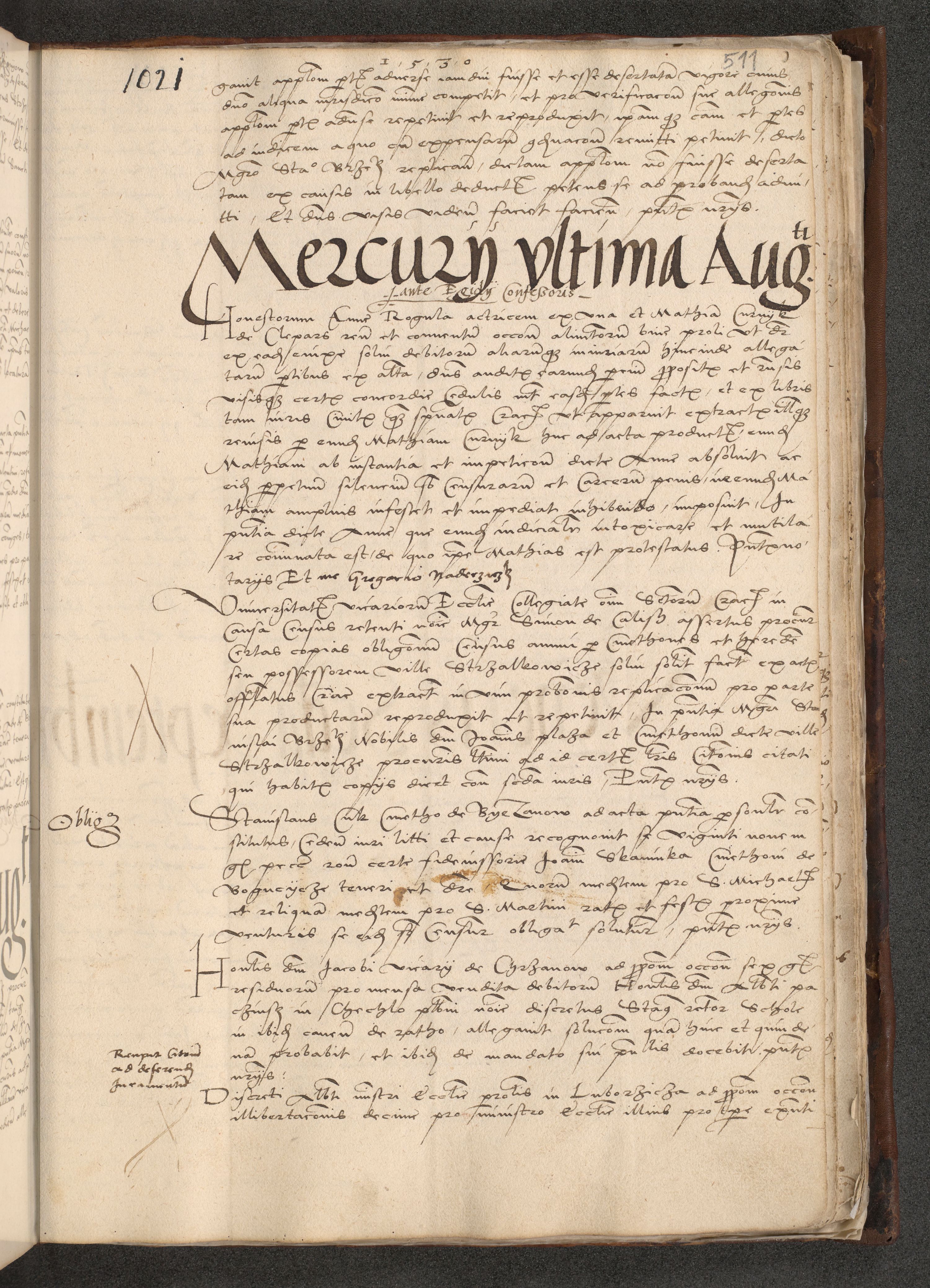 INRI. Acta actorum, obligacionum et sentenciarum tam interlocutoriarum quam diffinitivarum coram reverendo patre ac egregio viro domino Jacobo Erciss[o]wski decretorum doctorem, canonico et officiali generali Cracoviensi ad annum Domini 1528, indicionem primam, pontificatus sanctissimi in Christo patris et domini domini Clementis divina probidendcia pape seprtimi, annum quintum, per Stanislaum de Mordi legalem consistorii notarium omine felici inchoantur