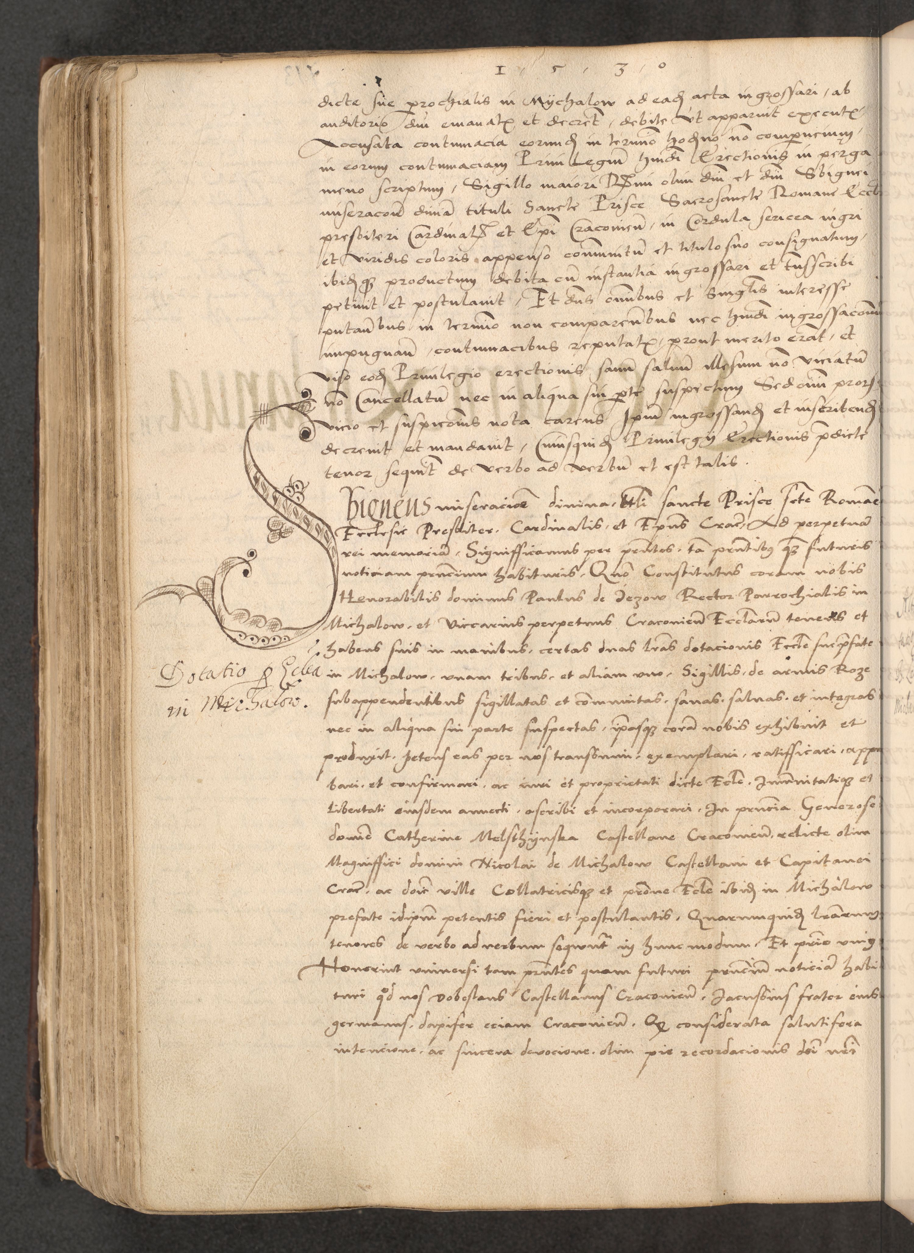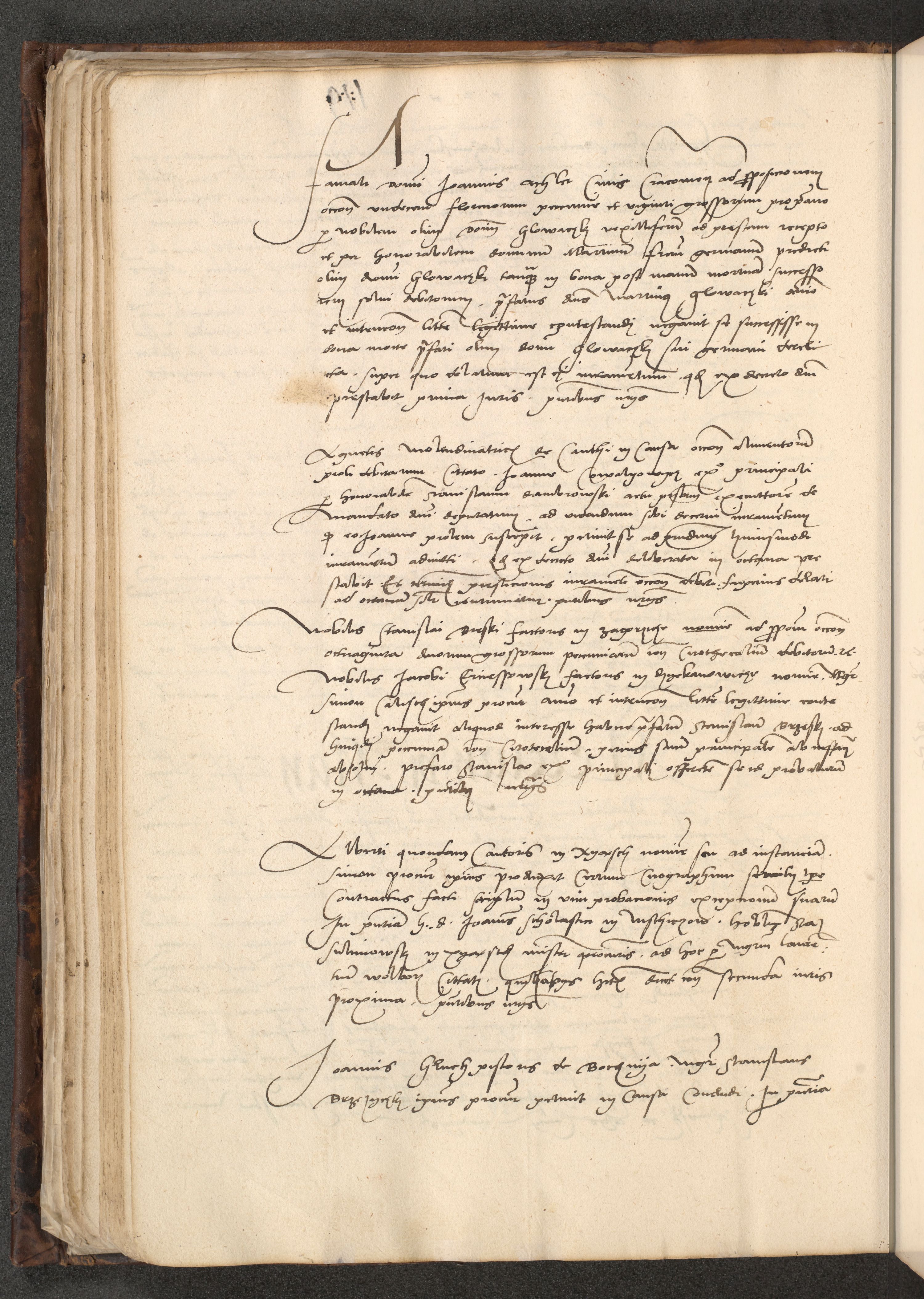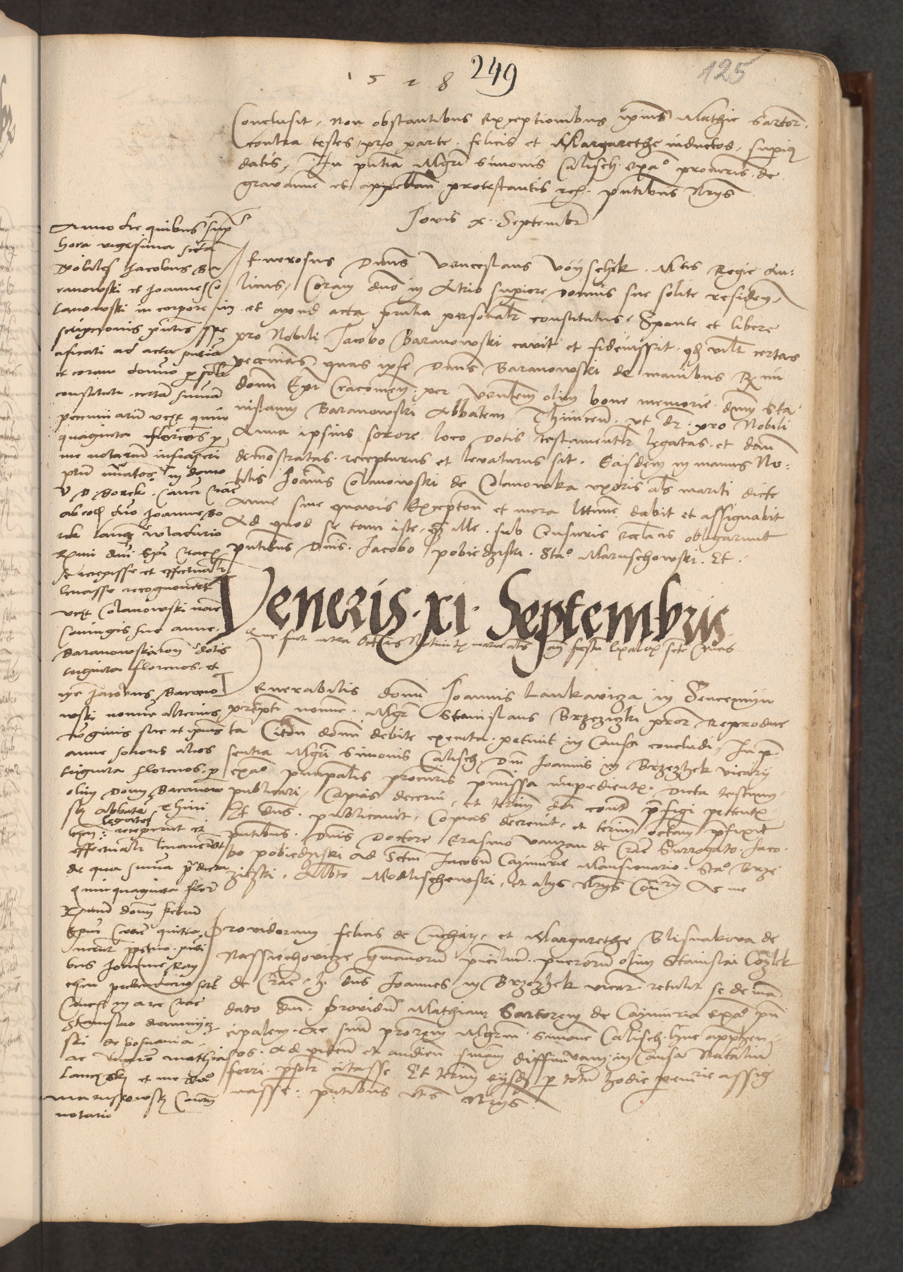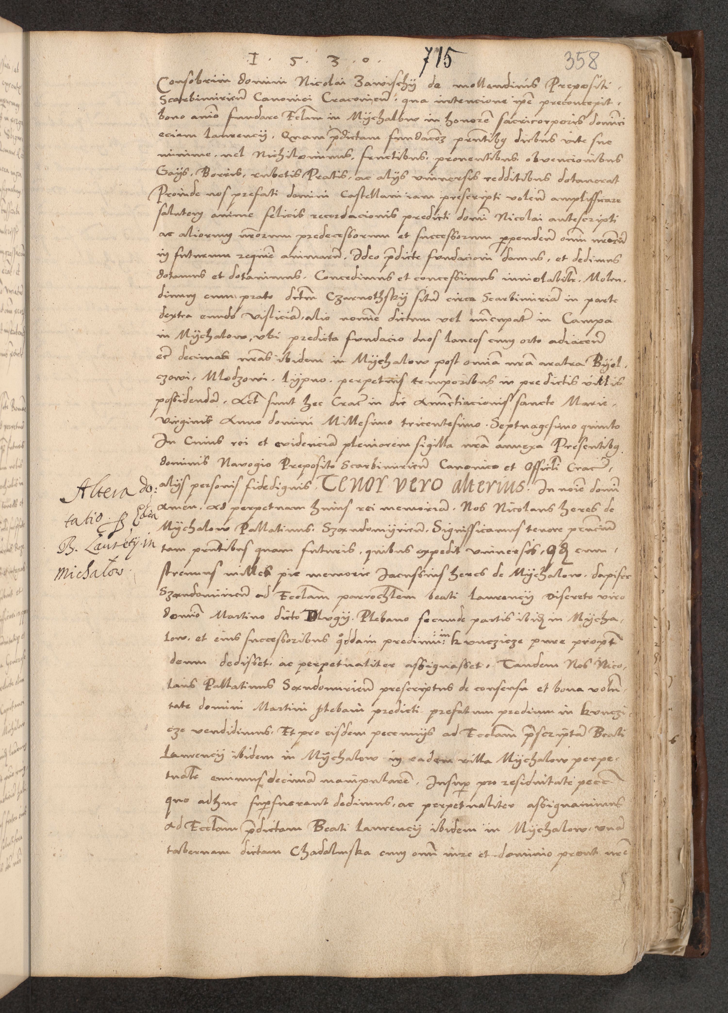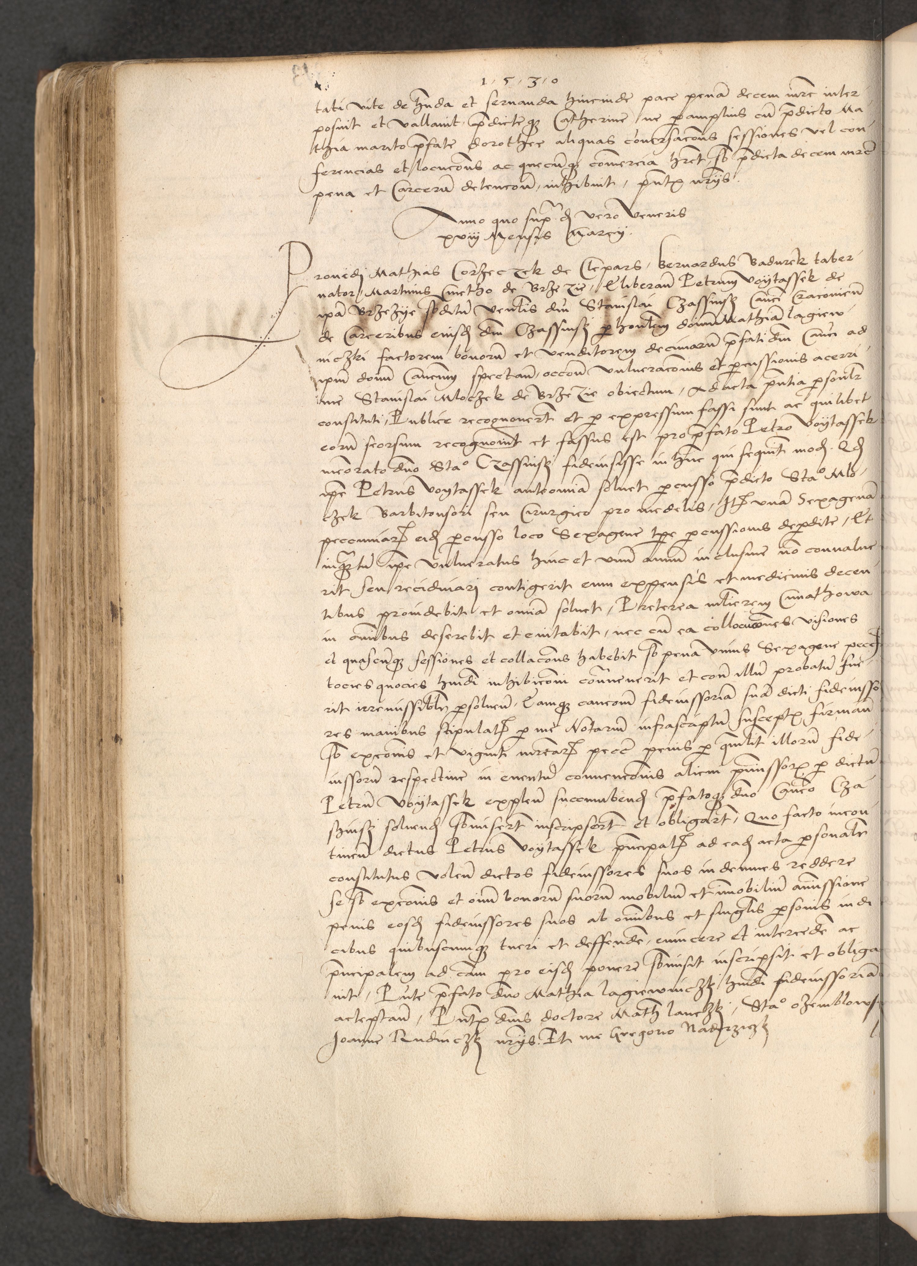 INRI. Acta actorum, obligacionum et sentenciarum tam interlocutoriarum quam diffinitivarum coram reverendo patre ac egregio viro domino Jacobo Erciss[o]wski decretorum doctorem, canonico et officiali generali Cracoviensi ad annum Domini 1528, indicionem primam, pontificatus sanctissimi in Christo patris et domini domini Clementis divina probidendcia pape seprtimi, annum quintum, per Stanislaum de Mordi legalem consistorii notarium omine felici inchoantur