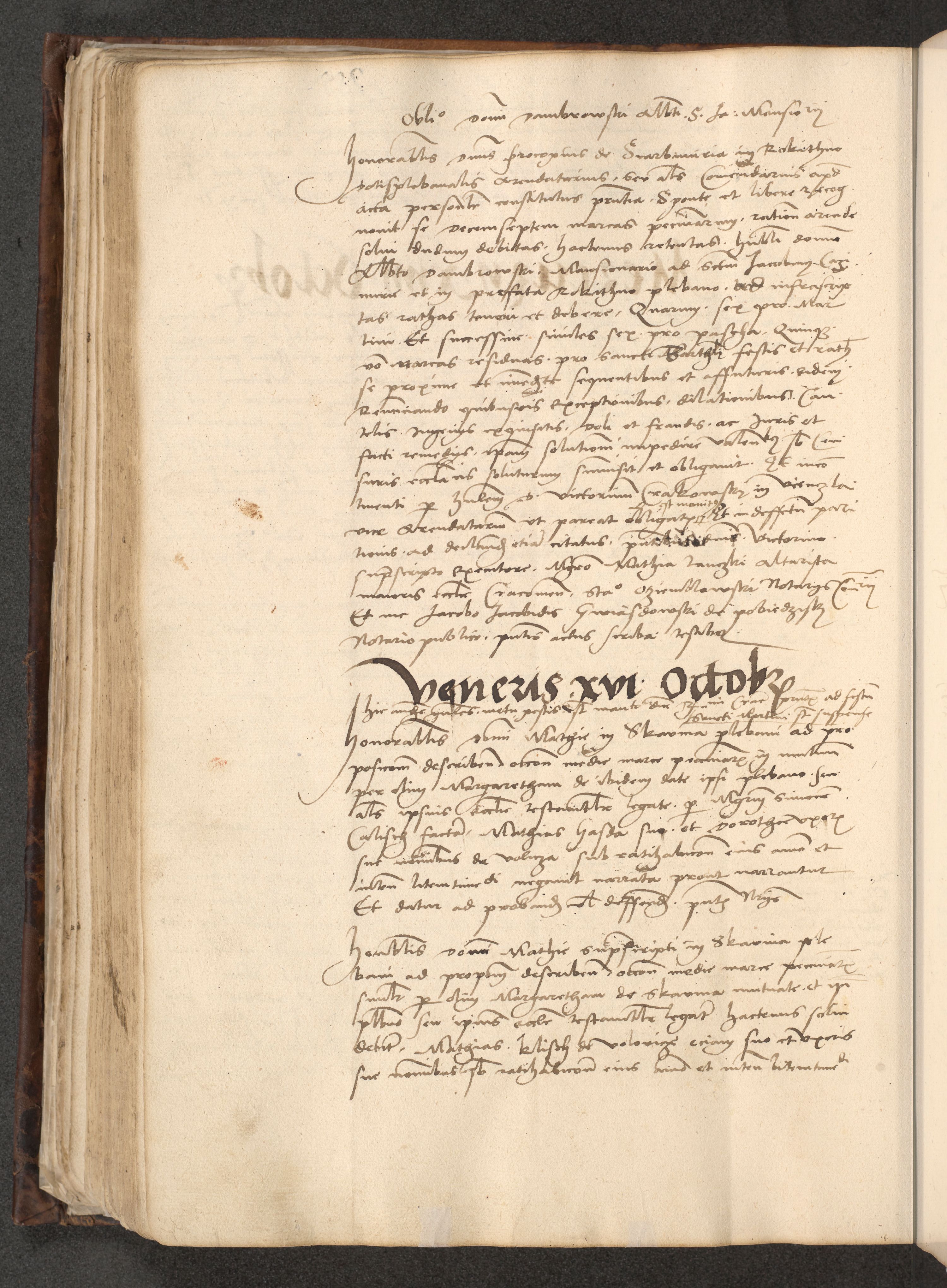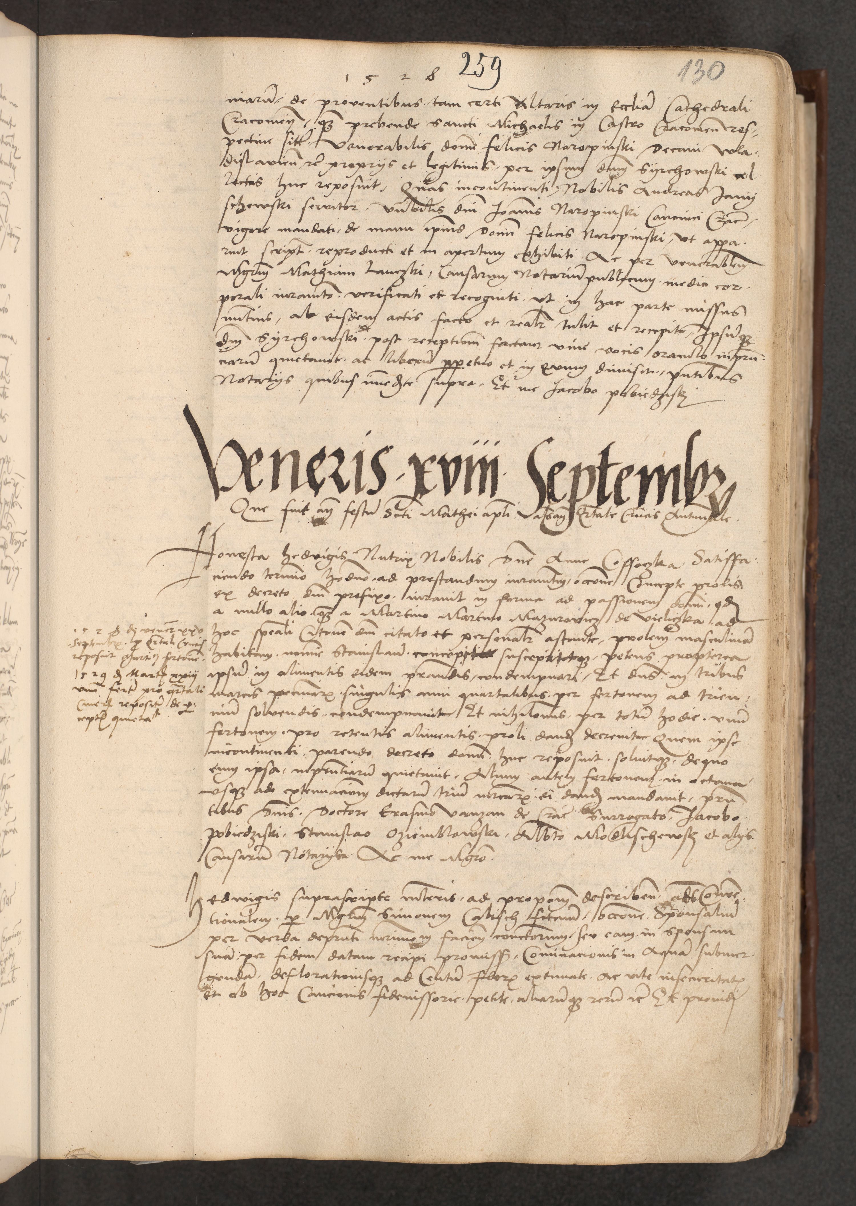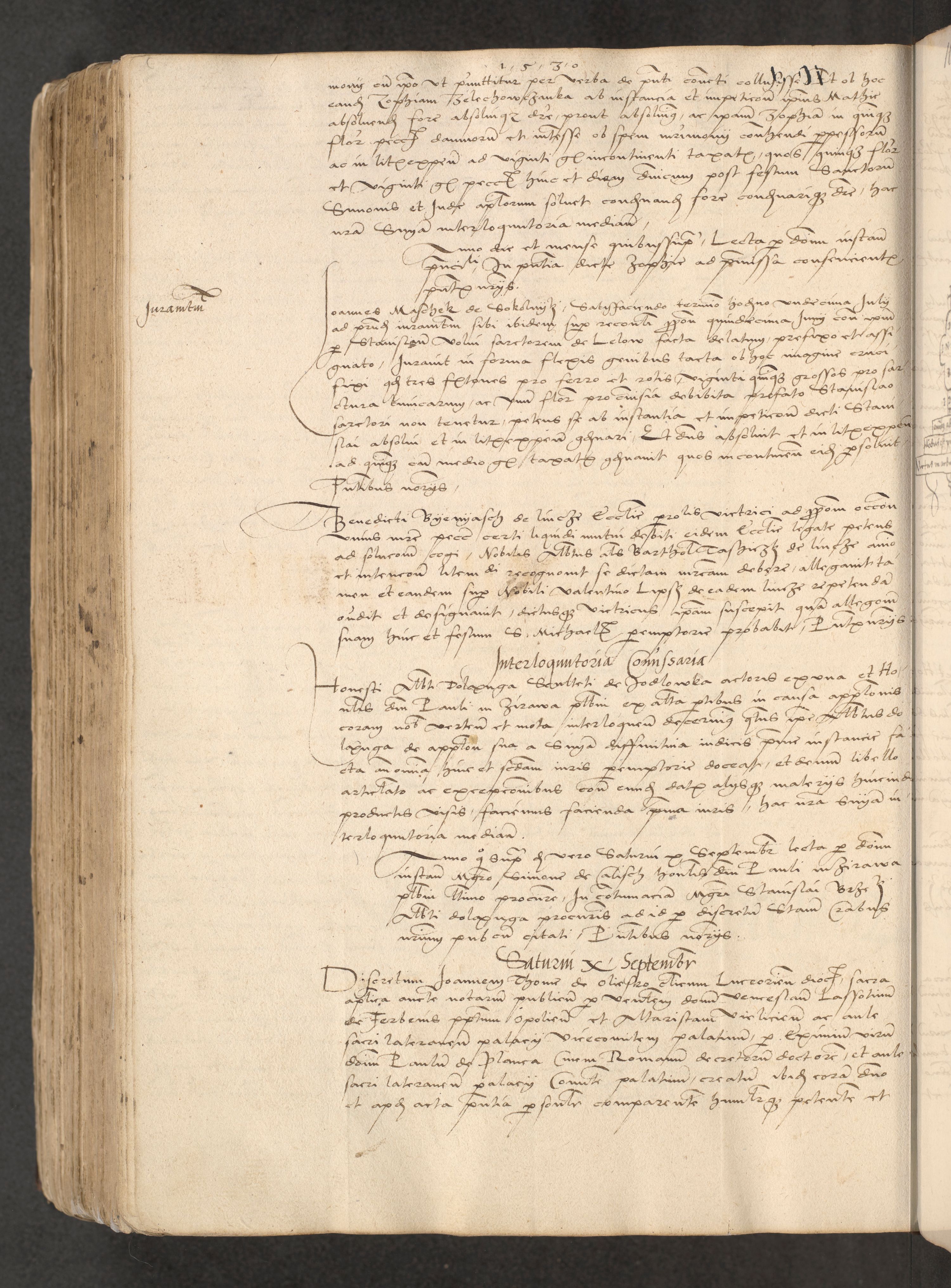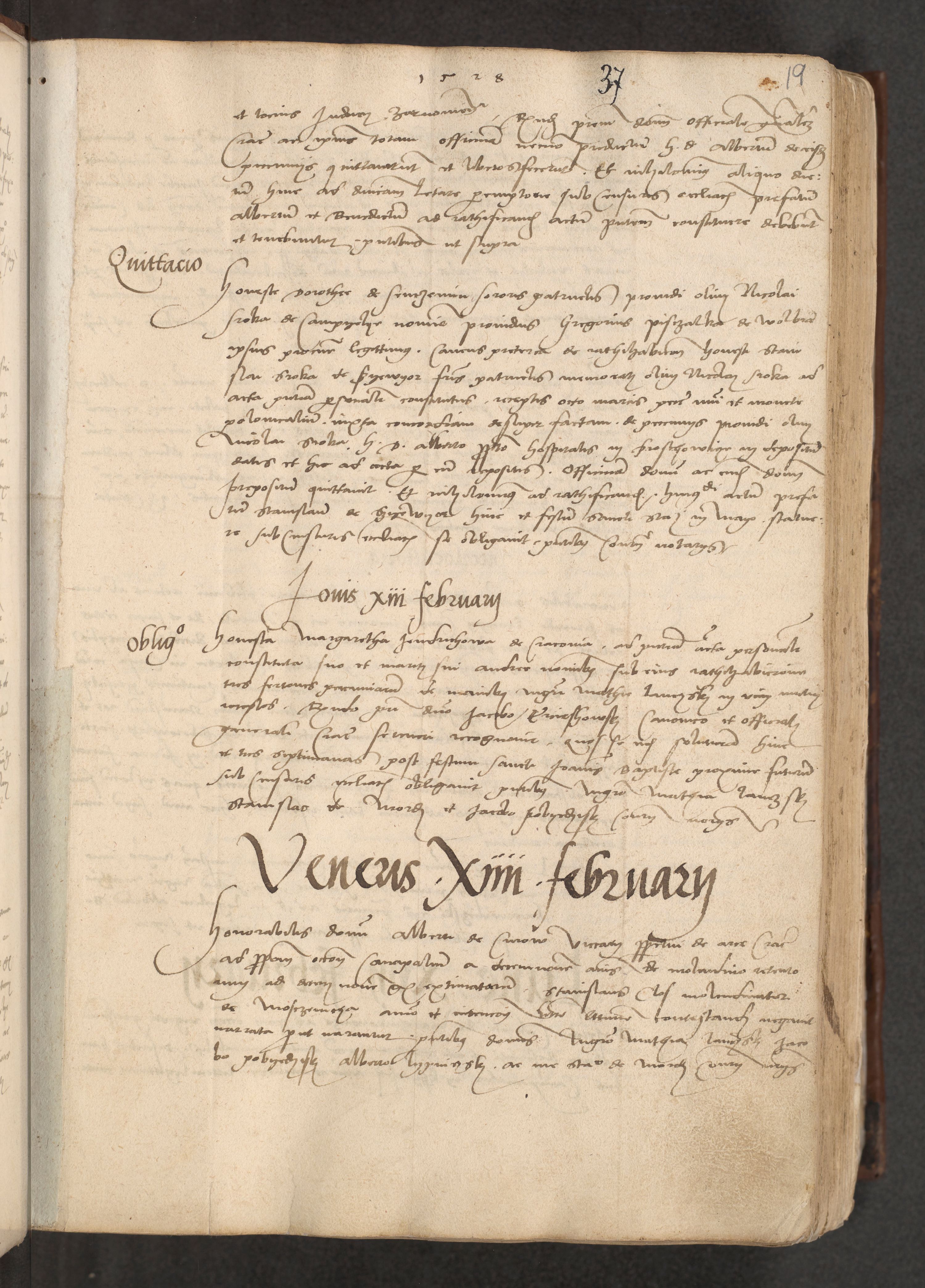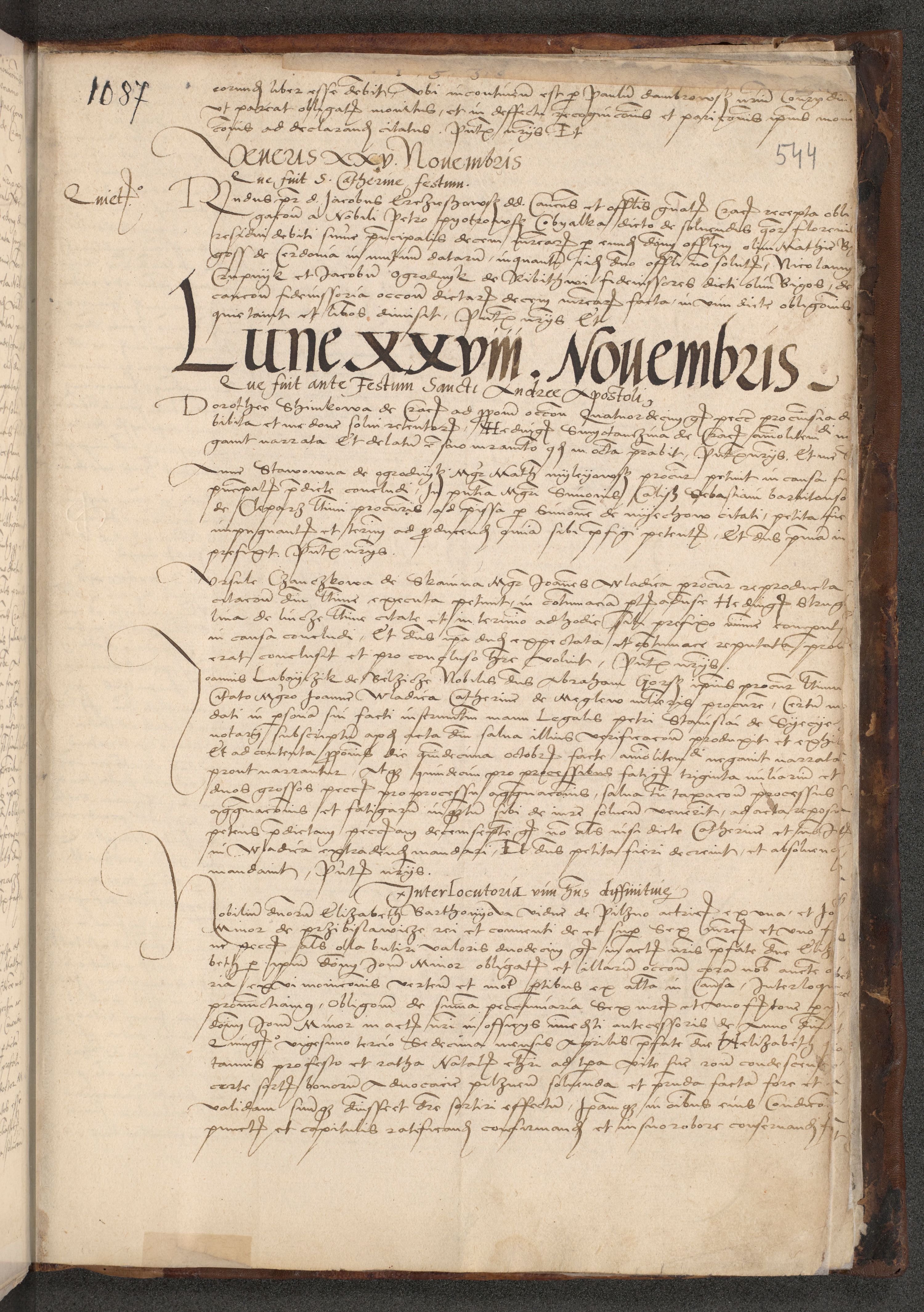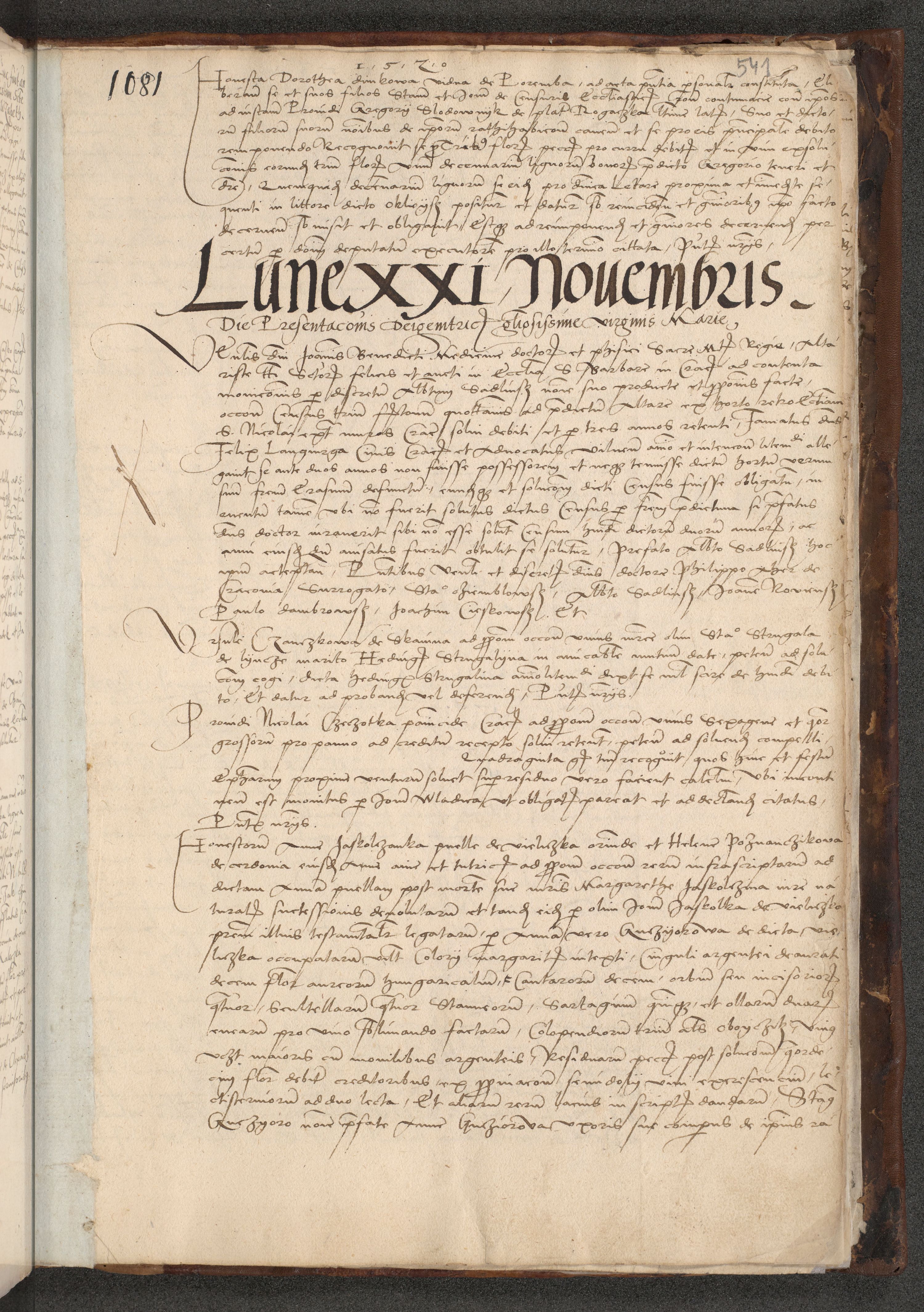 INRI. Acta actorum, obligacionum et sentenciarum tam interlocutoriarum quam diffinitivarum coram reverendo patre ac egregio viro domino Jacobo Erciss[o]wski decretorum doctorem, canonico et officiali generali Cracoviensi ad annum Domini 1528, indicionem primam, pontificatus sanctissimi in Christo patris et domini domini Clementis divina probidendcia pape seprtimi, annum quintum, per Stanislaum de Mordi legalem consistorii notarium omine felici inchoantur