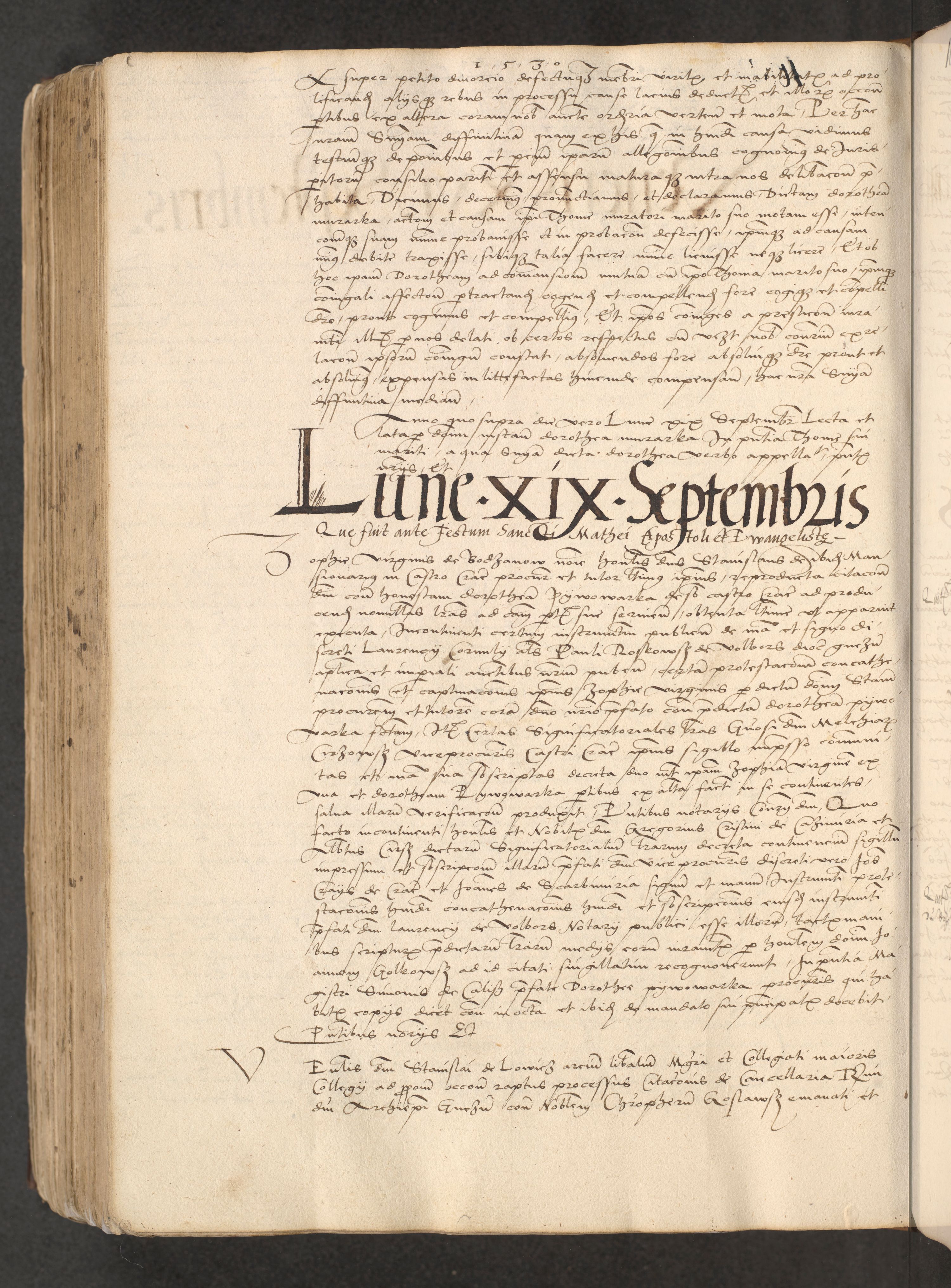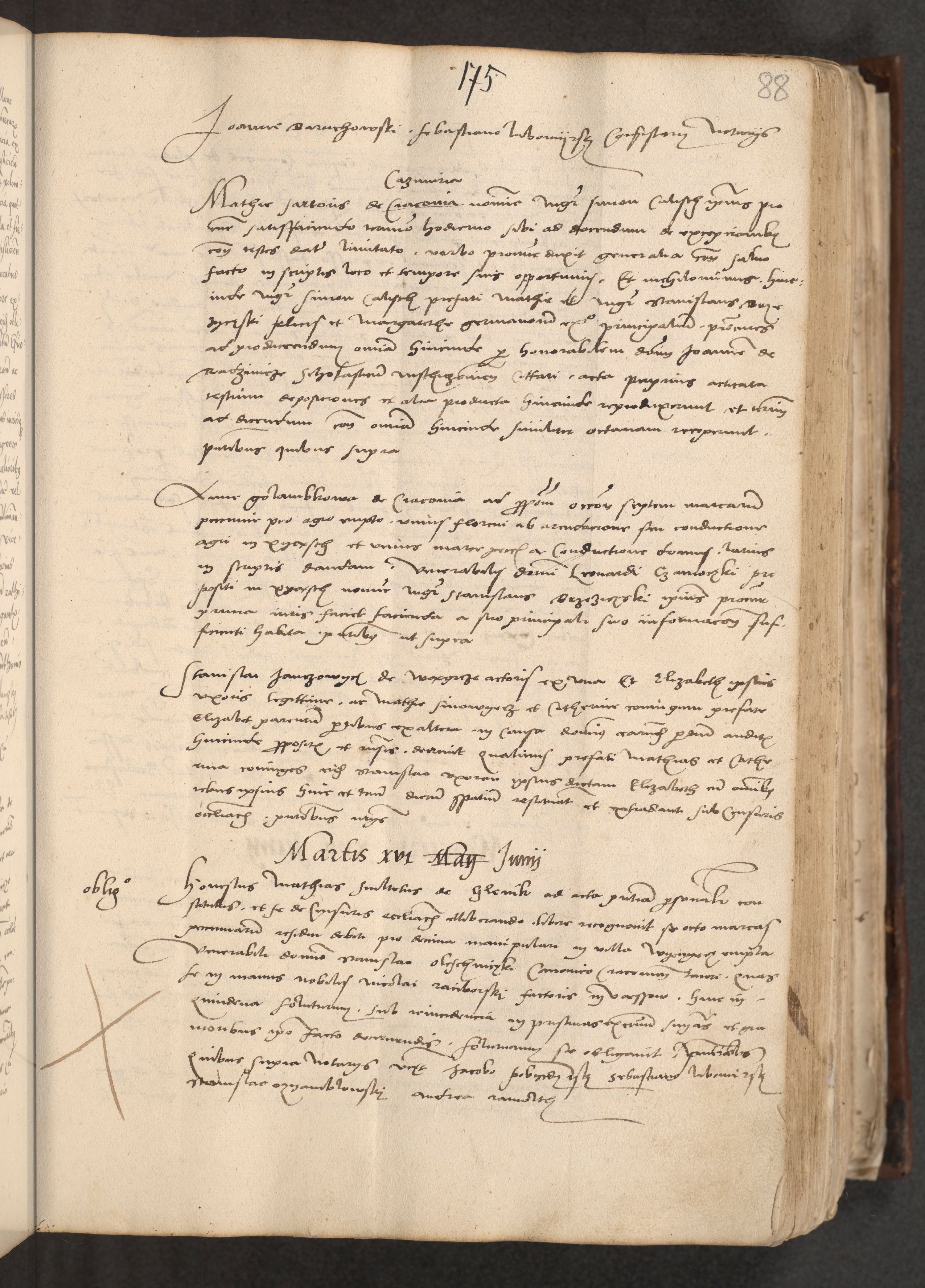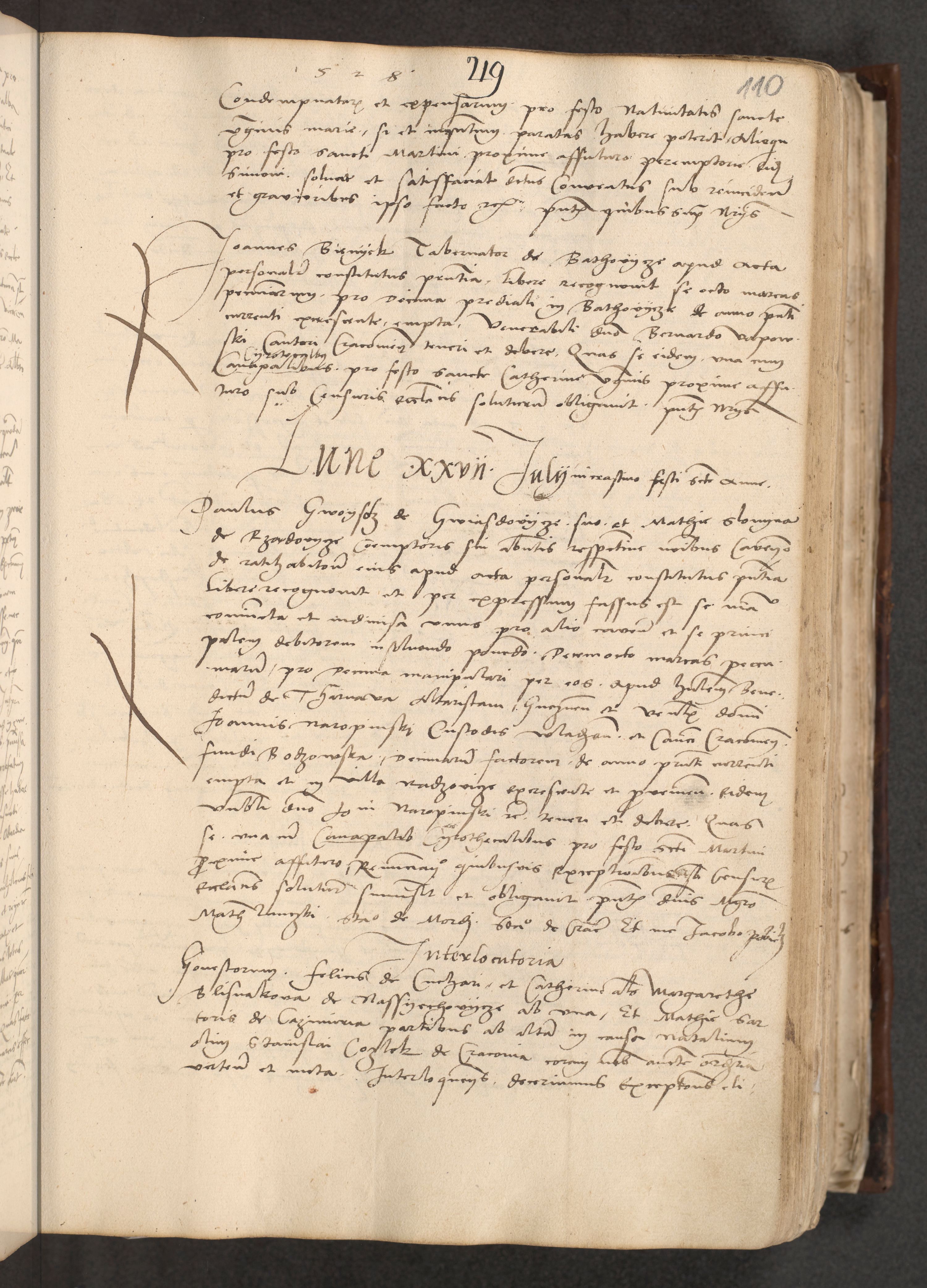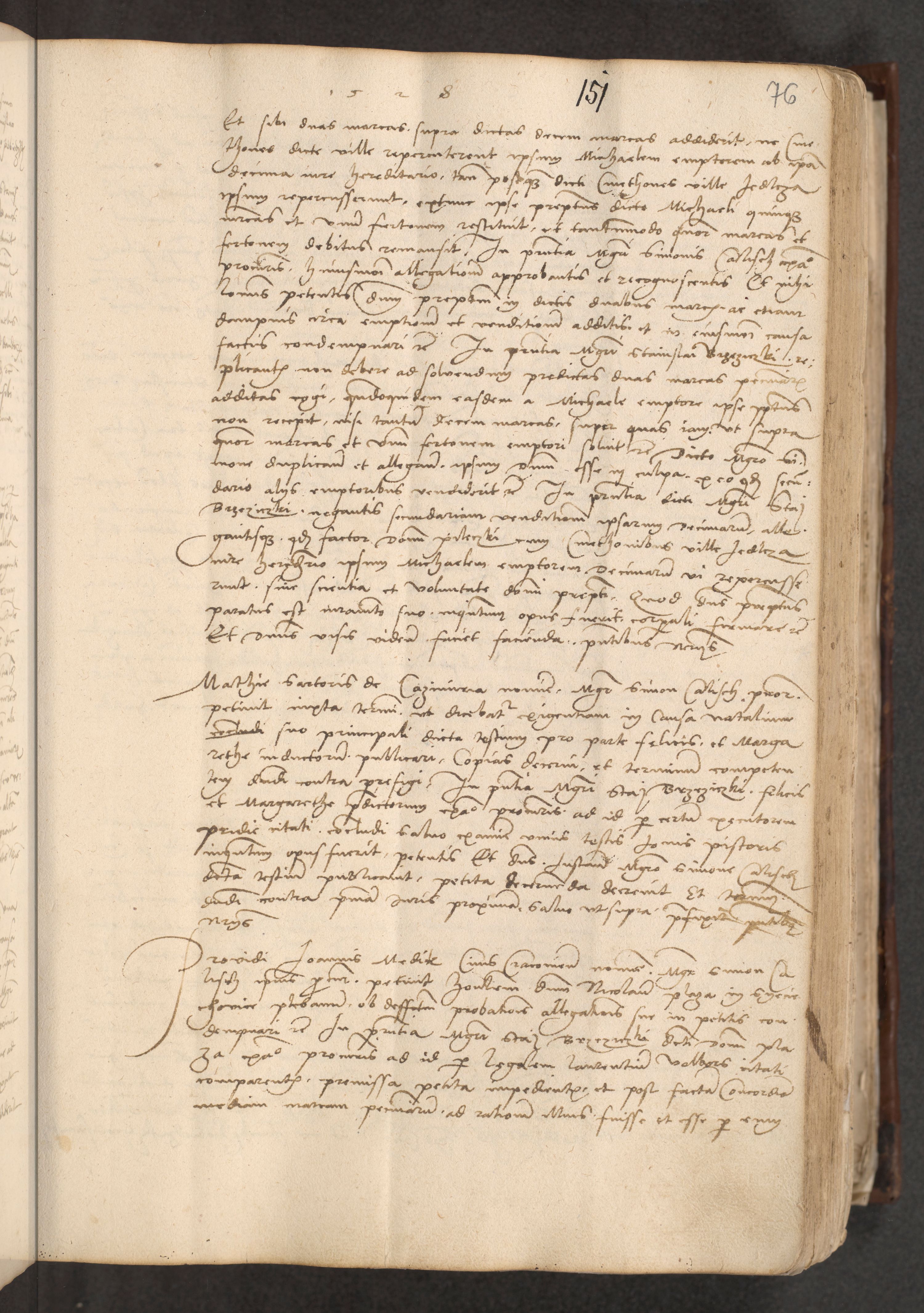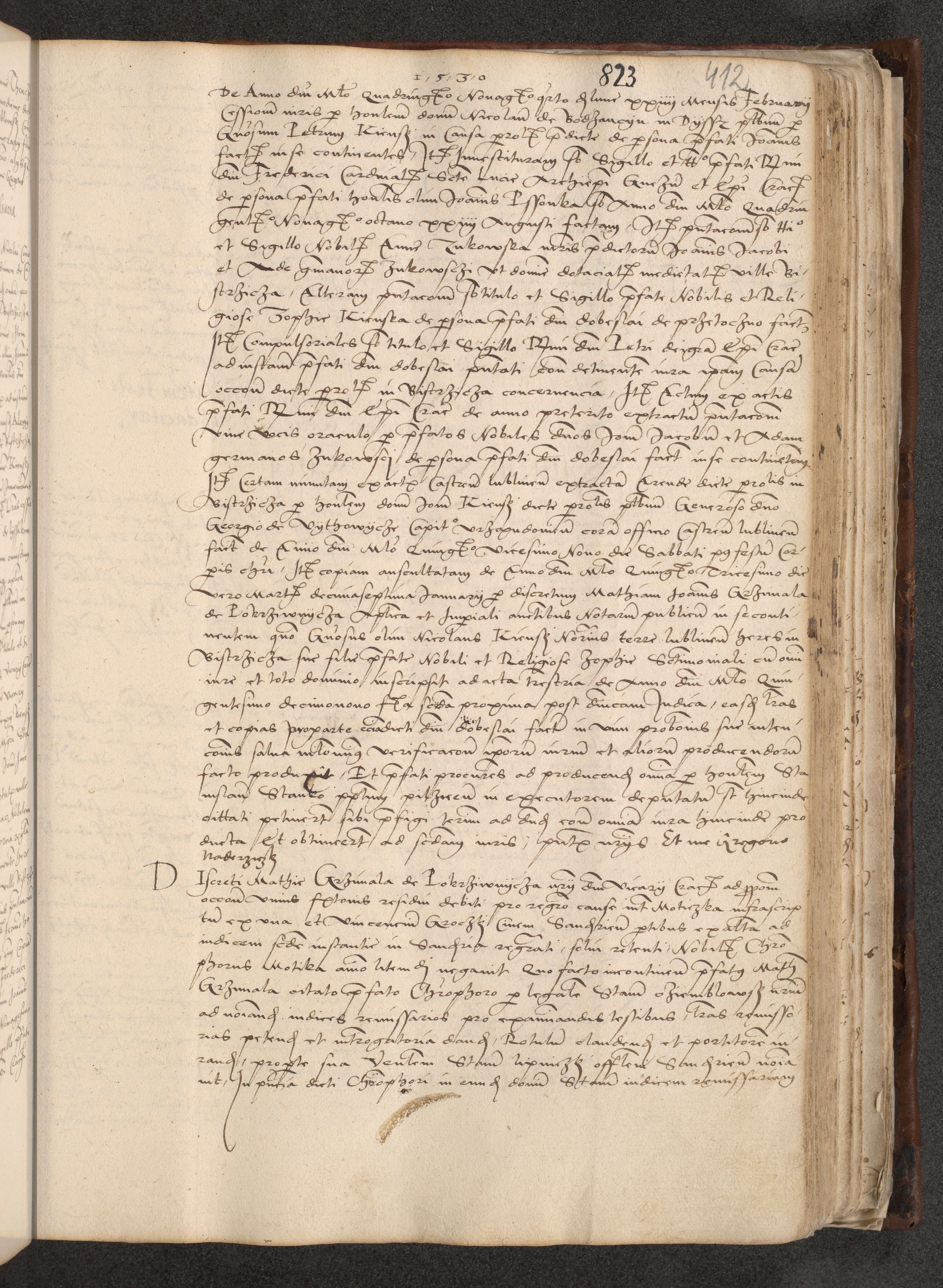 INRI. Acta actorum, obligacionum et sentenciarum tam interlocutoriarum quam diffinitivarum coram reverendo patre ac egregio viro domino Jacobo Erciss[o]wski decretorum doctorem, canonico et officiali generali Cracoviensi ad annum Domini 1528, indicionem primam, pontificatus sanctissimi in Christo patris et domini domini Clementis divina probidendcia pape seprtimi, annum quintum, per Stanislaum de Mordi legalem consistorii notarium omine felici inchoantur
