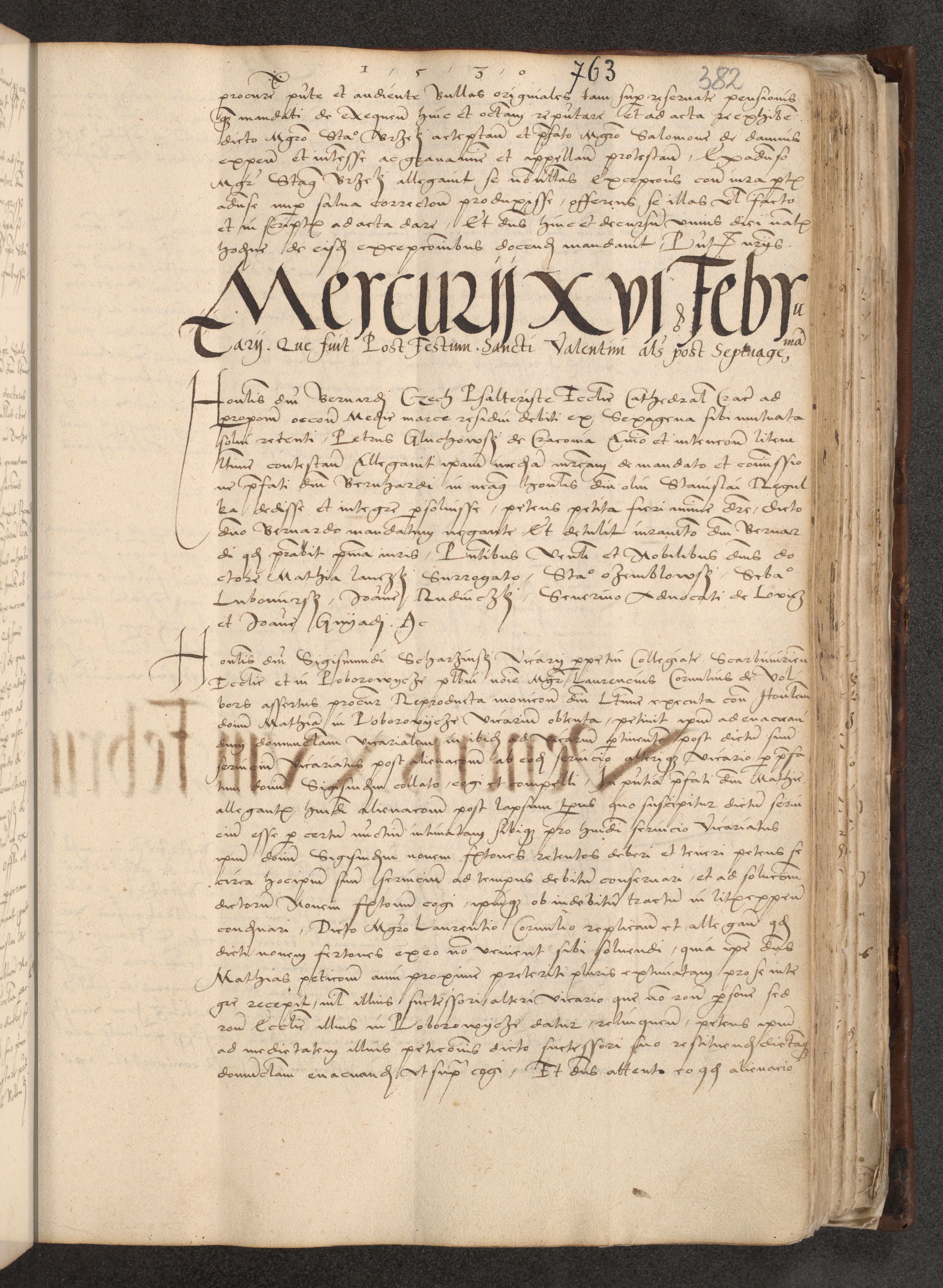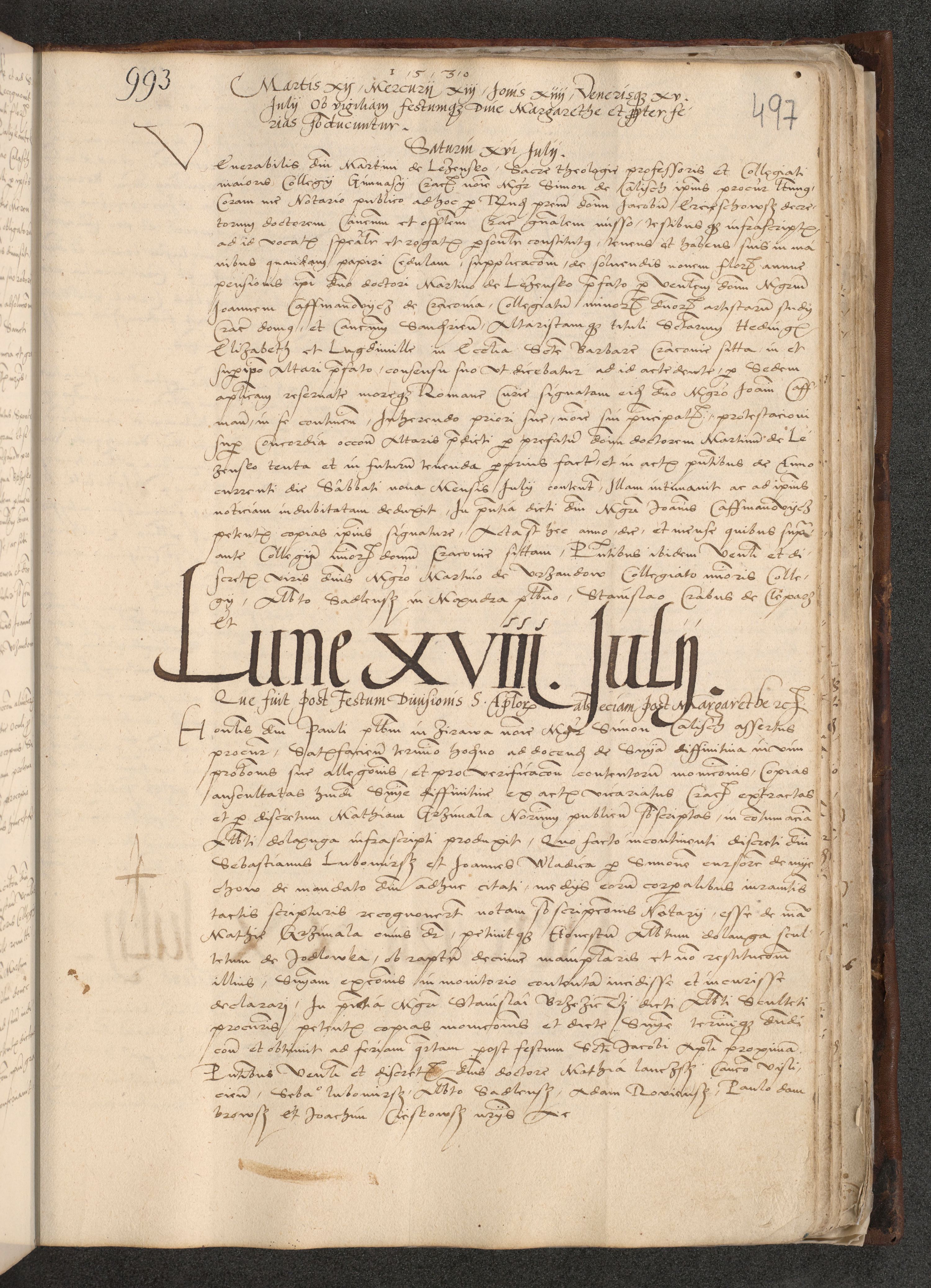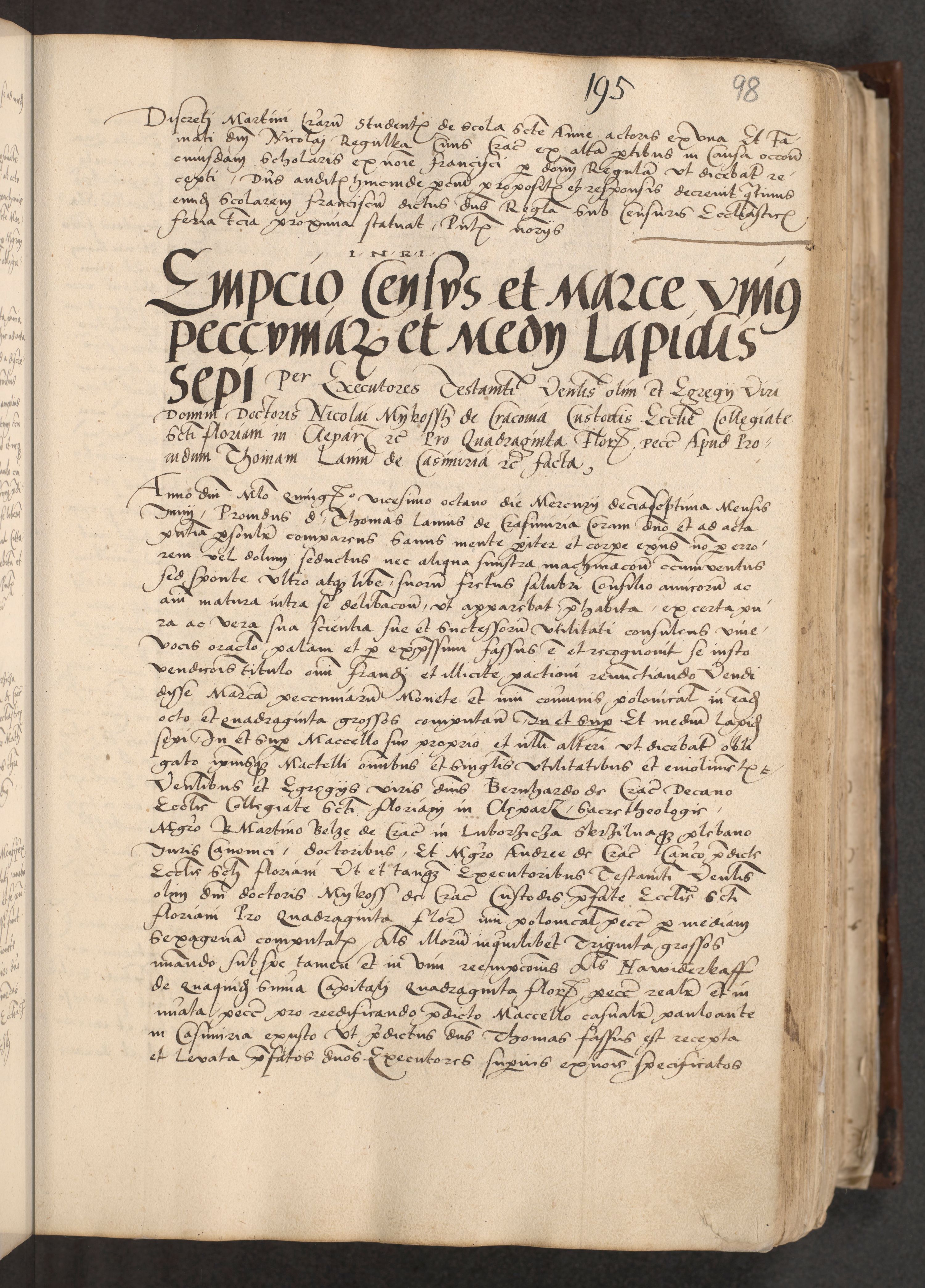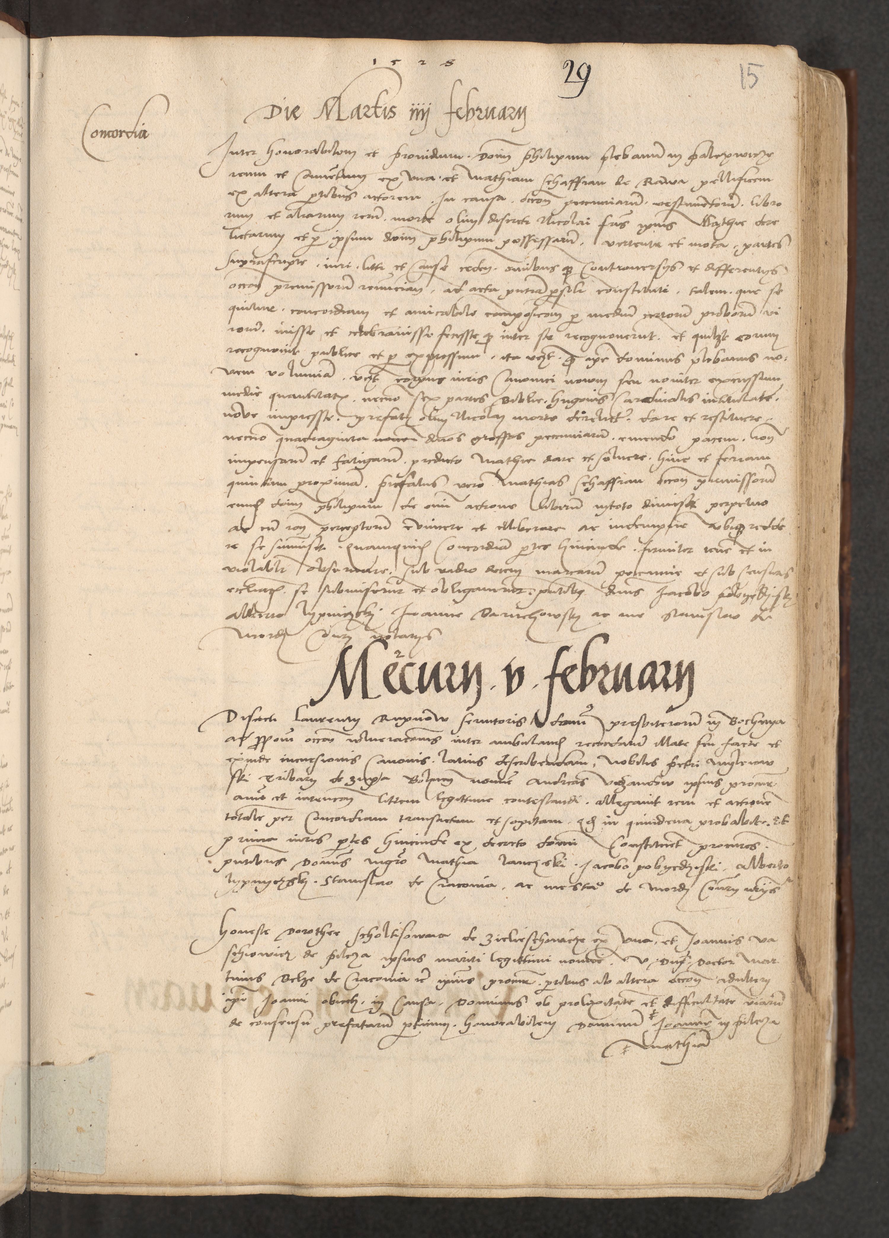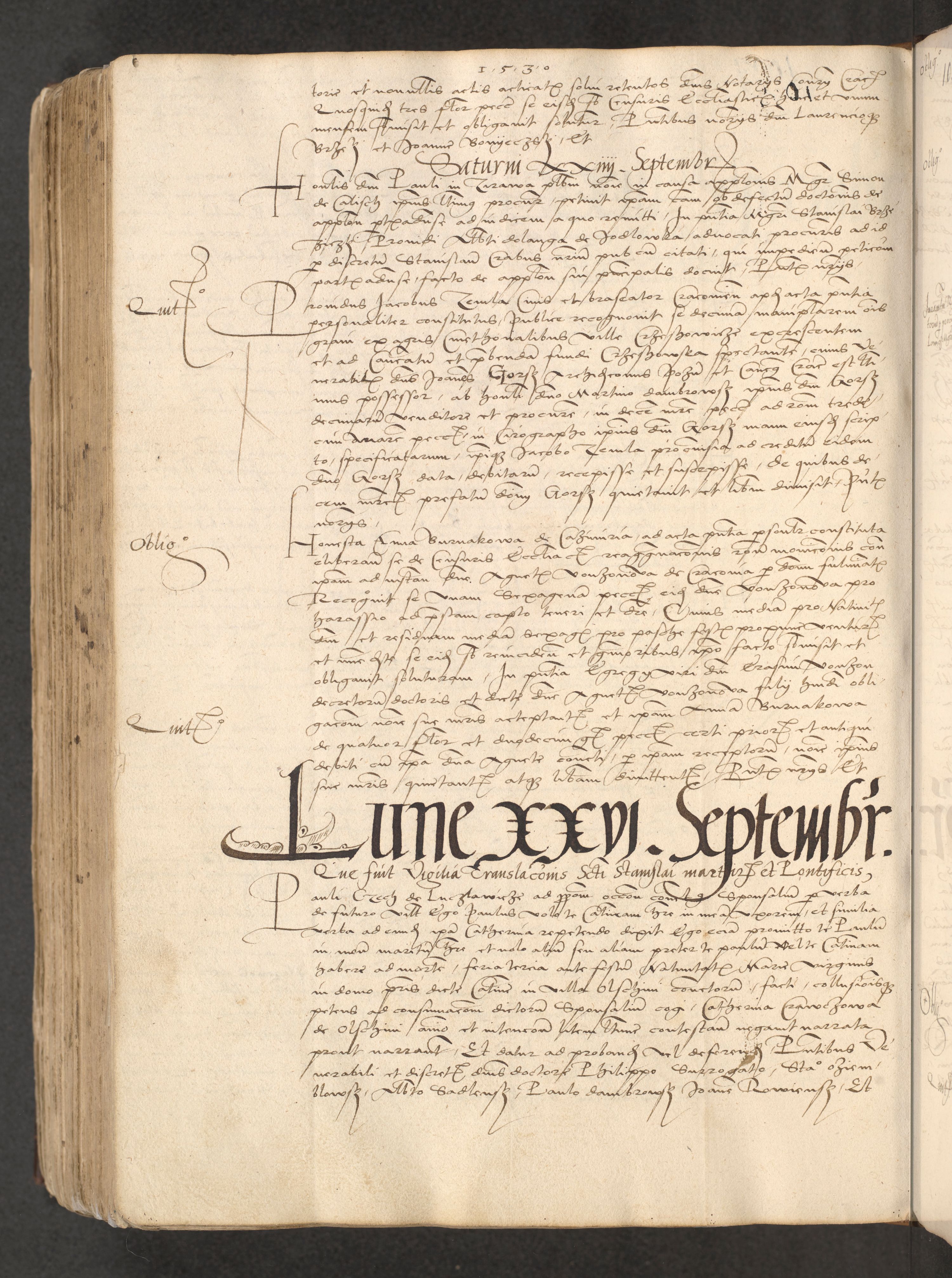 INRI. Acta actorum, obligacionum et sentenciarum tam interlocutoriarum quam diffinitivarum coram reverendo patre ac egregio viro domino Jacobo Erciss[o]wski decretorum doctorem, canonico et officiali generali Cracoviensi ad annum Domini 1528, indicionem primam, pontificatus sanctissimi in Christo patris et domini domini Clementis divina probidendcia pape seprtimi, annum quintum, per Stanislaum de Mordi legalem consistorii notarium omine felici inchoantur