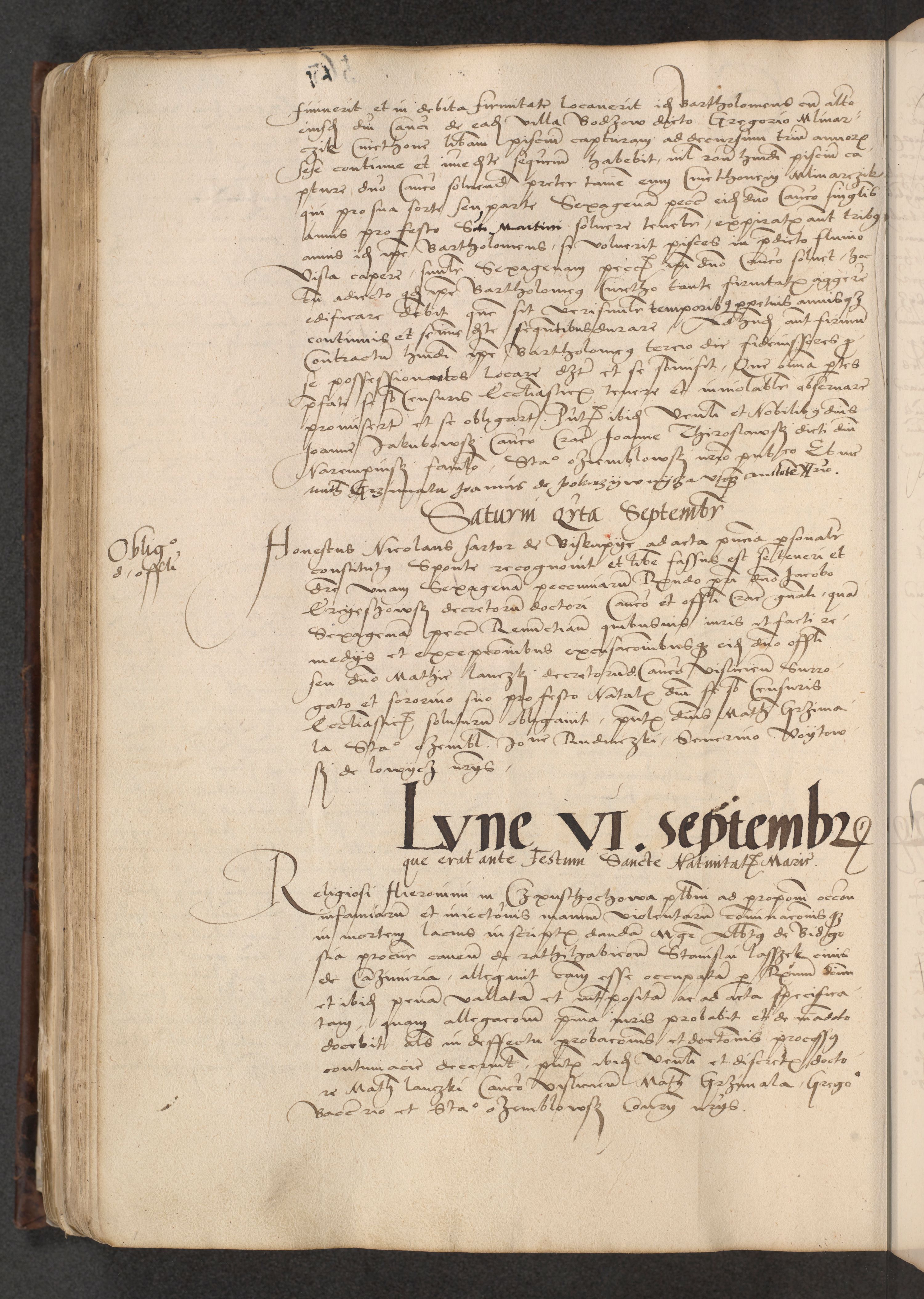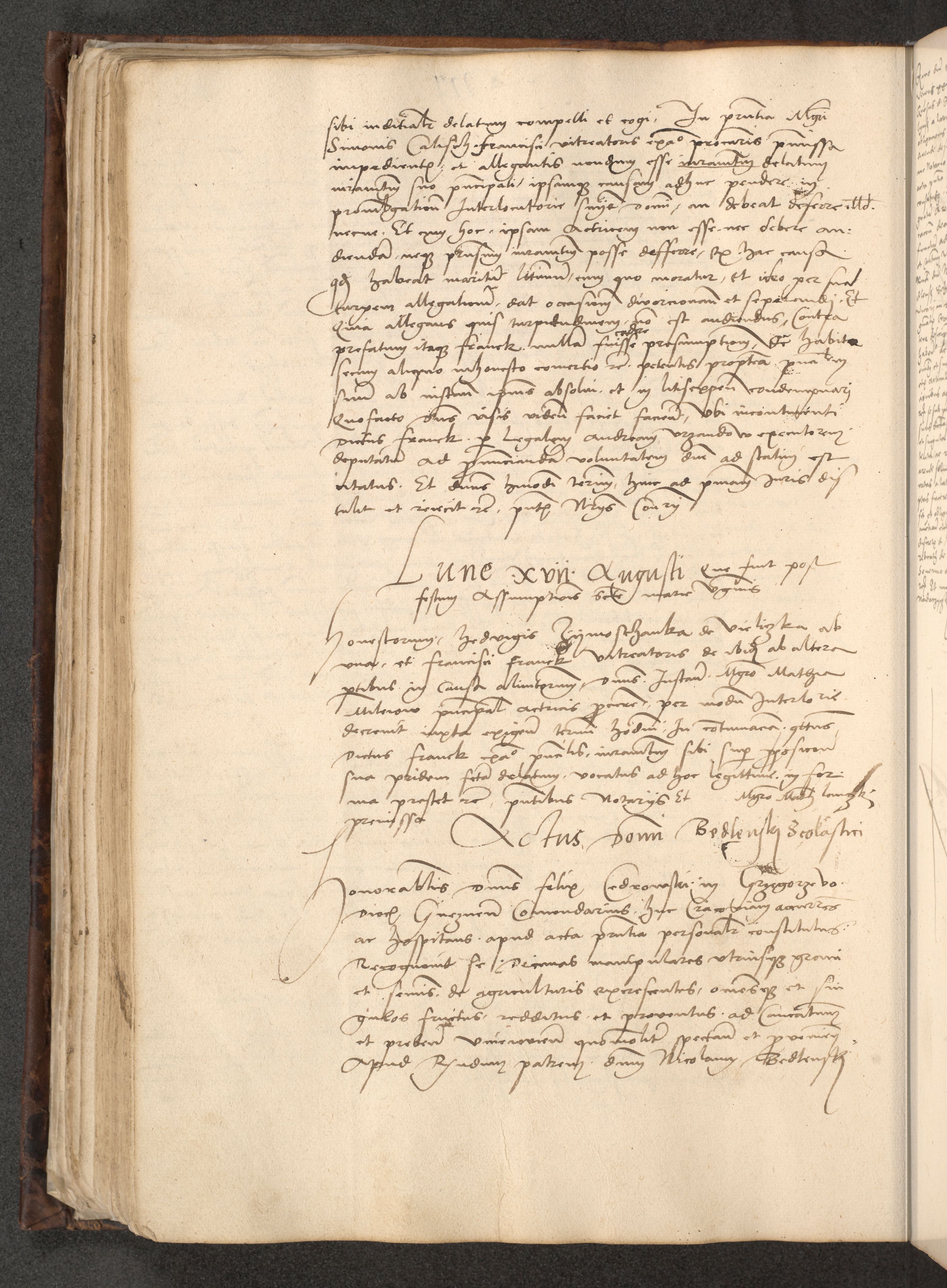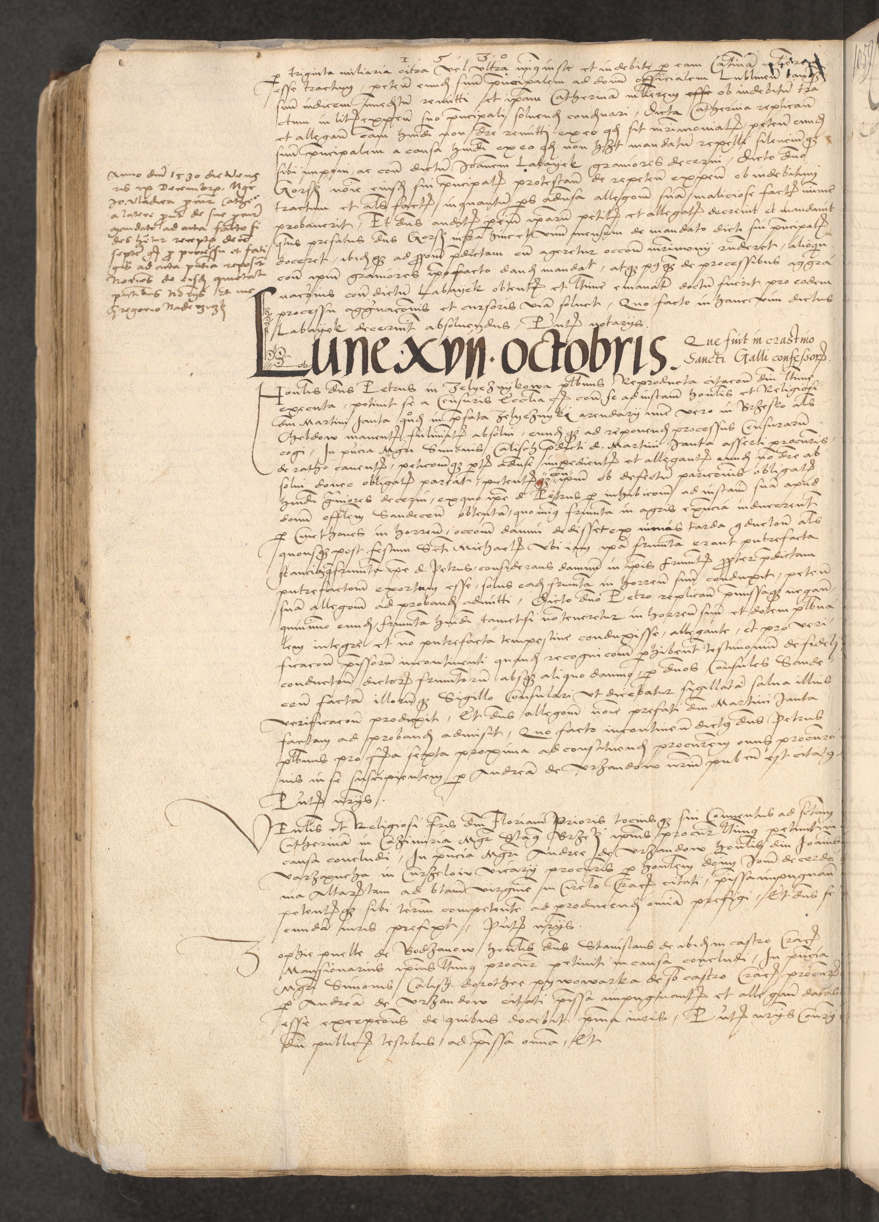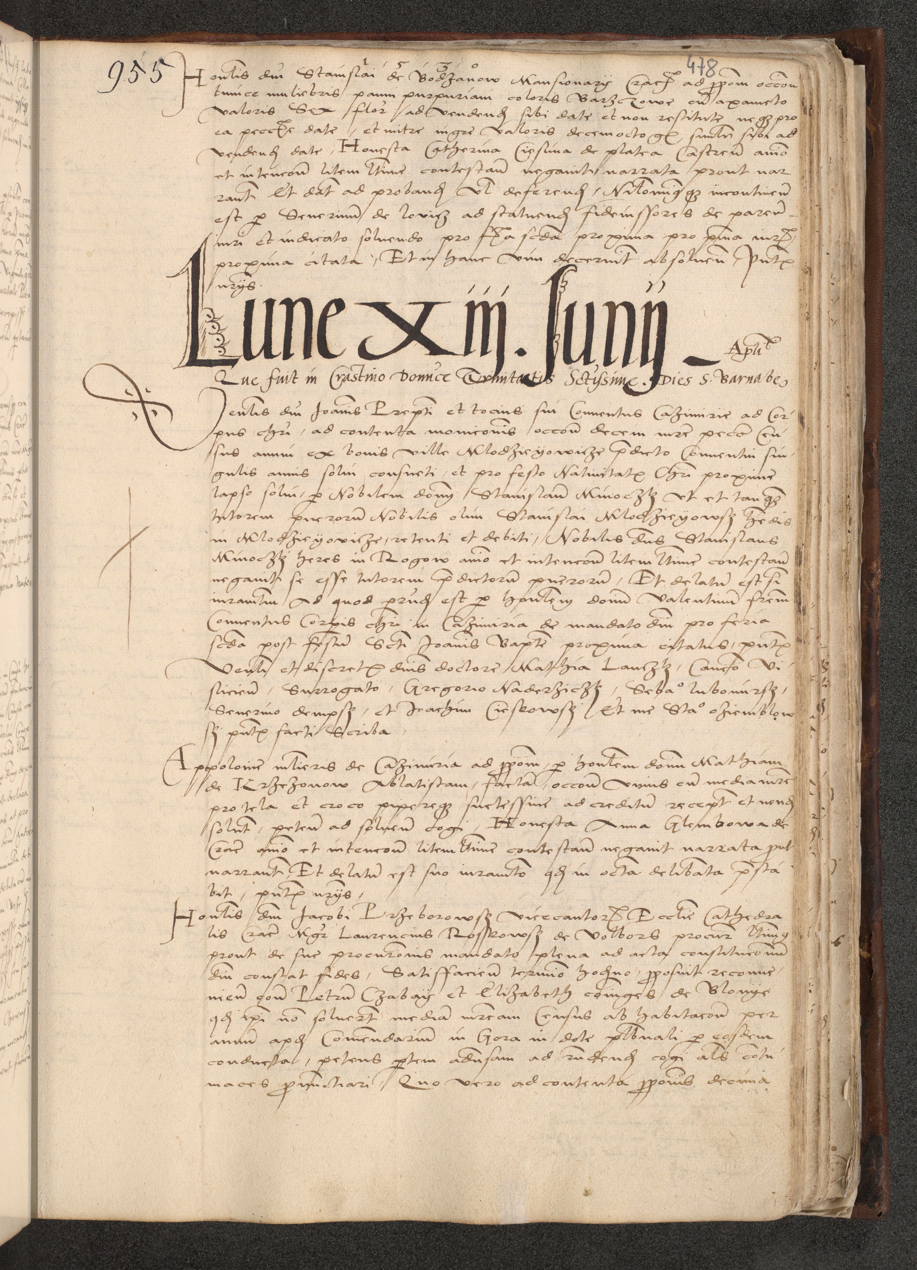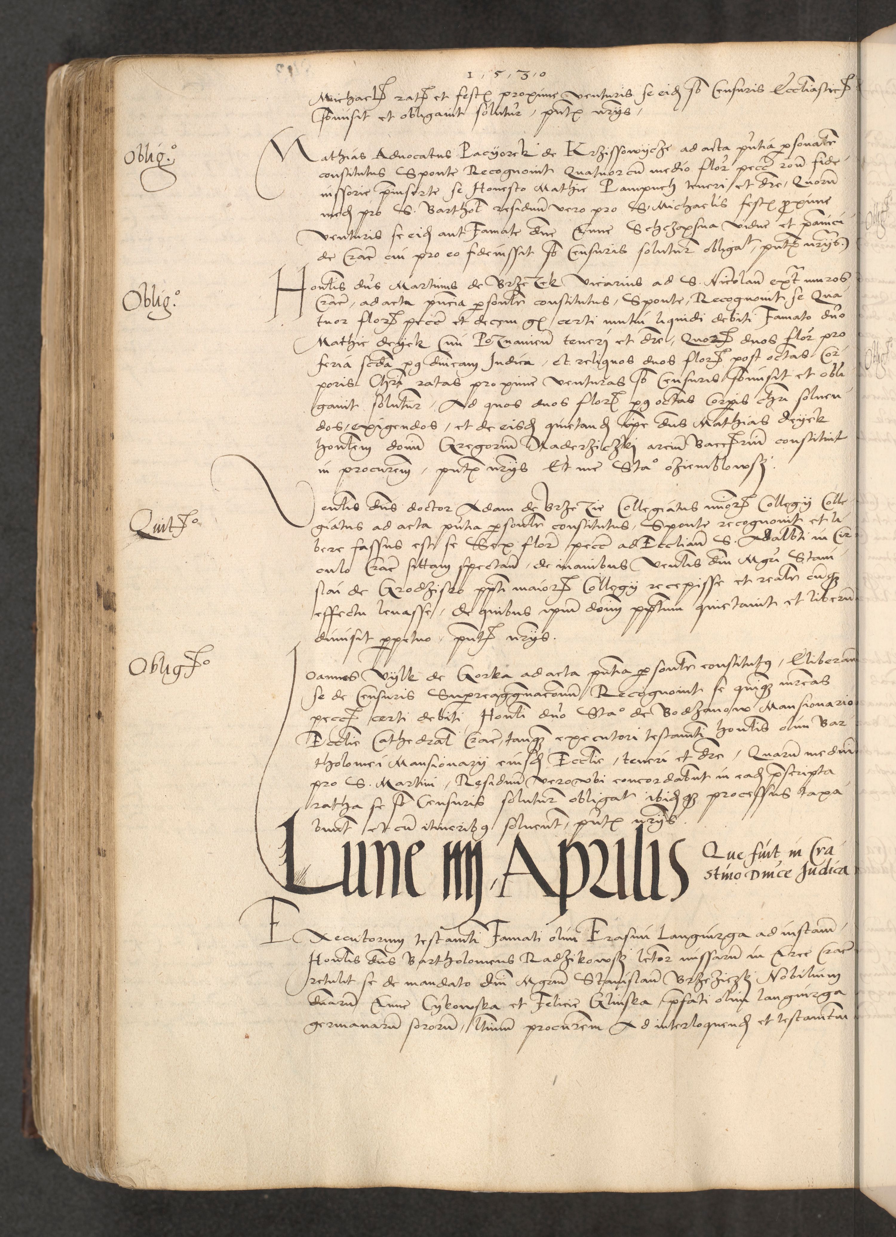 INRI. Acta actorum, obligacionum et sentenciarum tam interlocutoriarum quam diffinitivarum coram reverendo patre ac egregio viro domino Jacobo Erciss[o]wski decretorum doctorem, canonico et officiali generali Cracoviensi ad annum Domini 1528, indicionem primam, pontificatus sanctissimi in Christo patris et domini domini Clementis divina probidendcia pape seprtimi, annum quintum, per Stanislaum de Mordi legalem consistorii notarium omine felici inchoantur