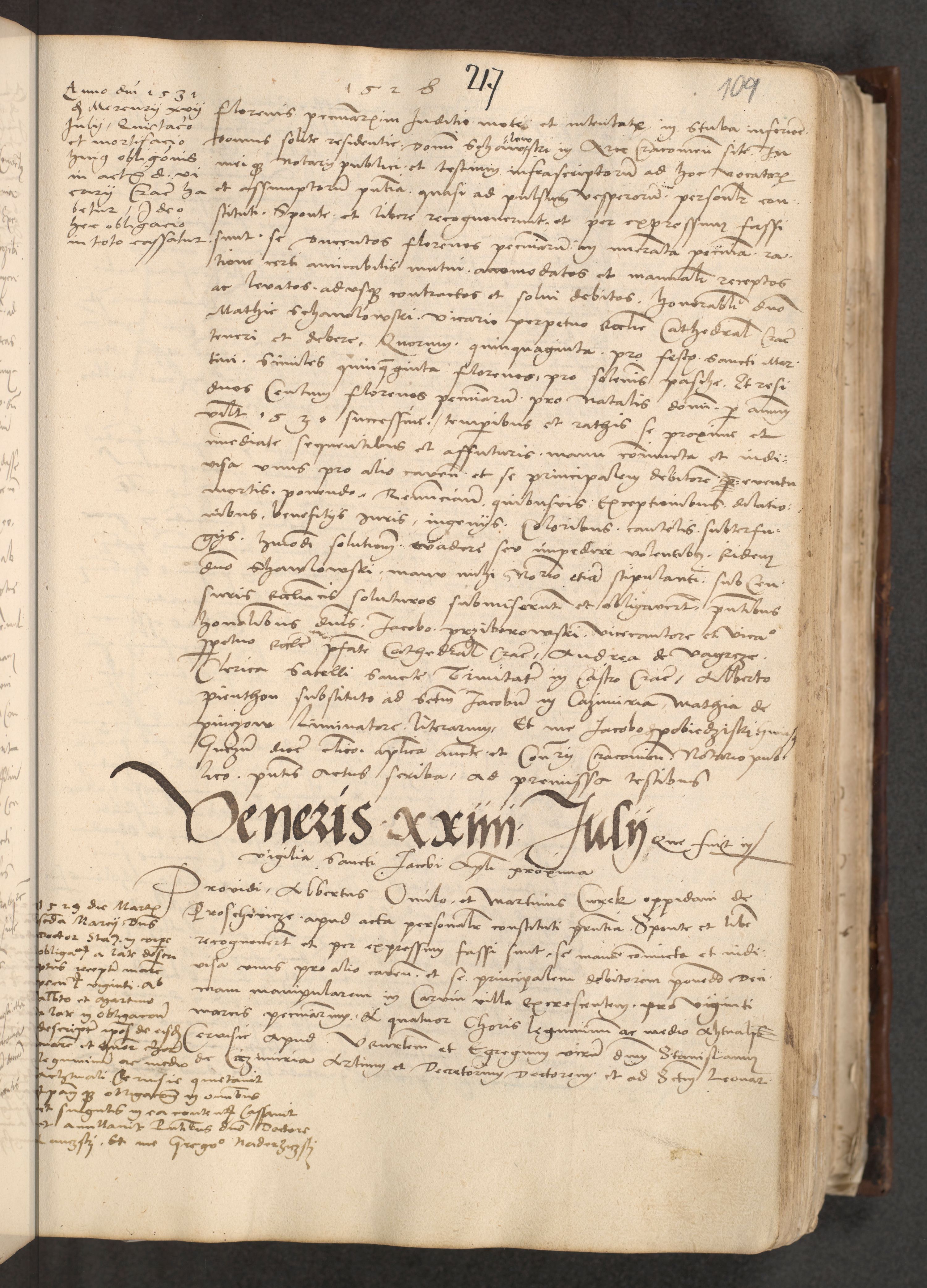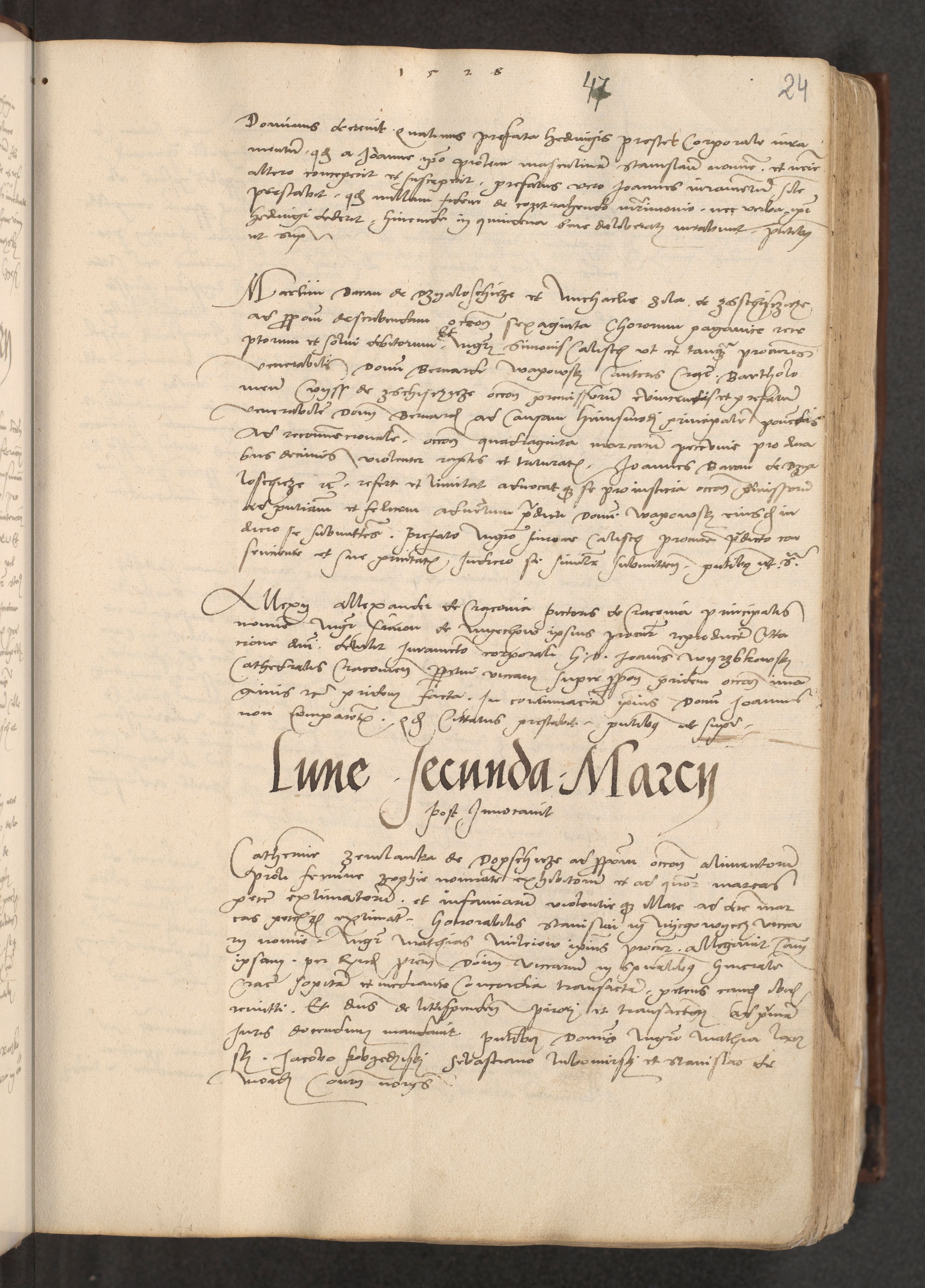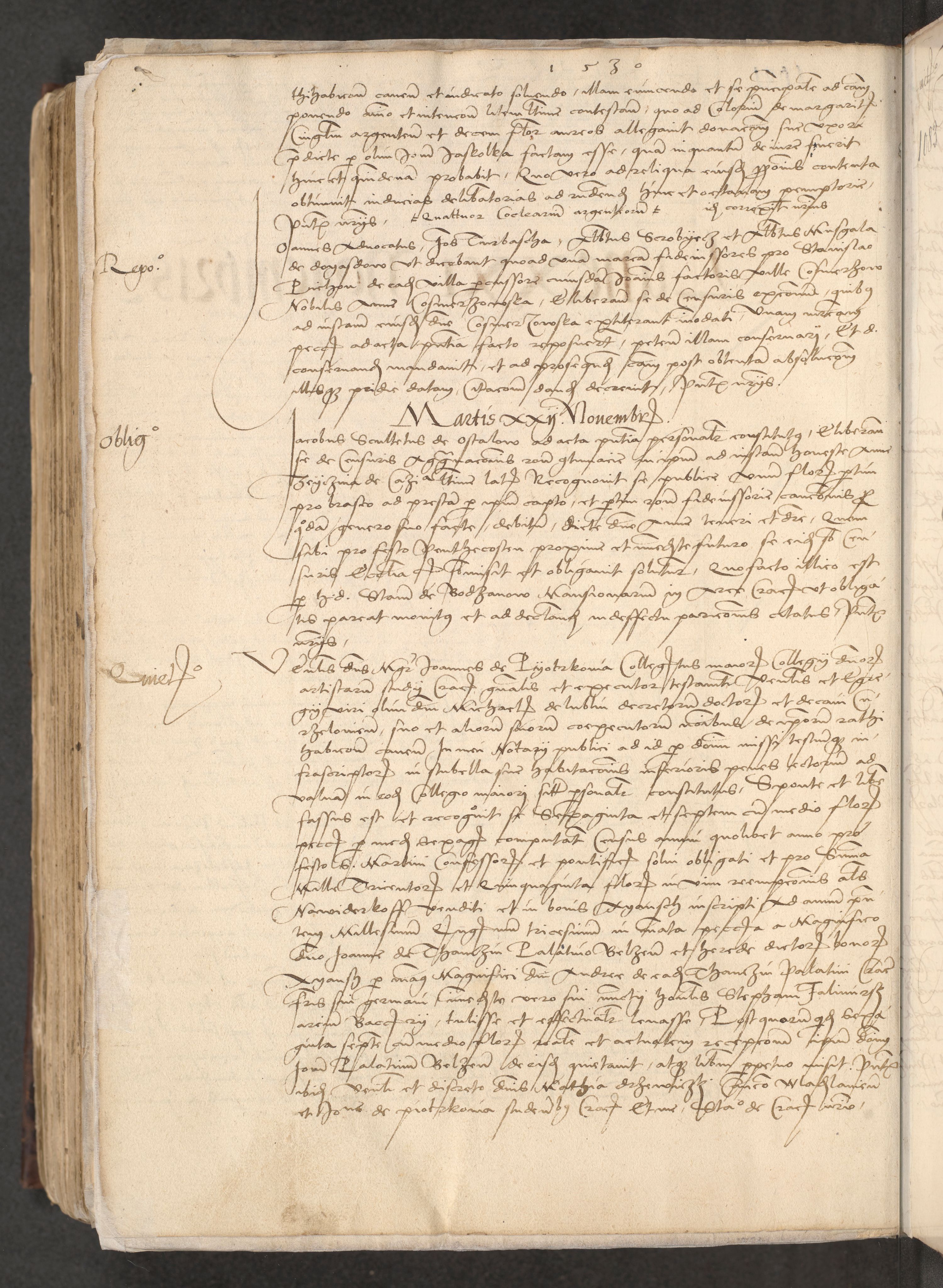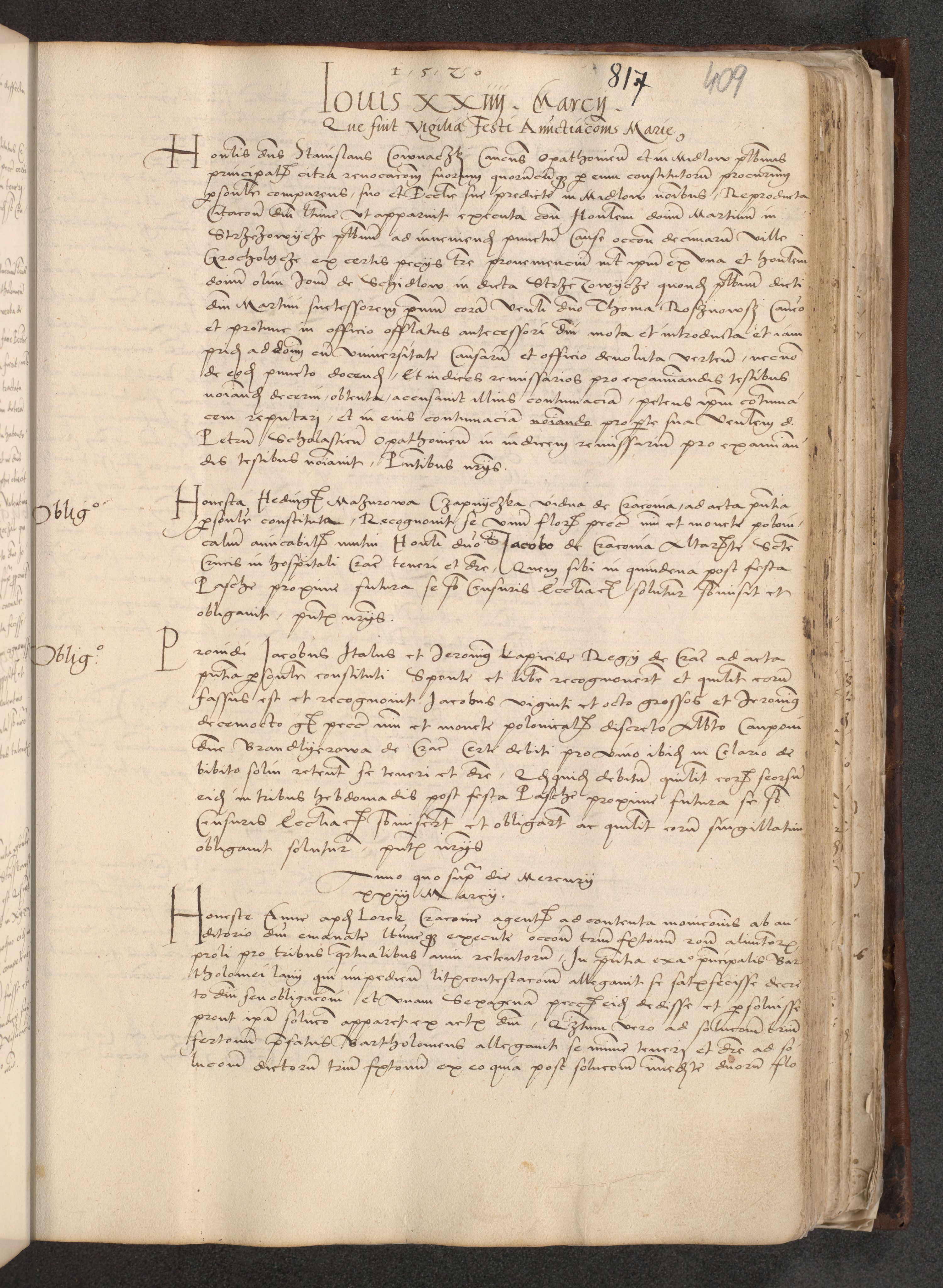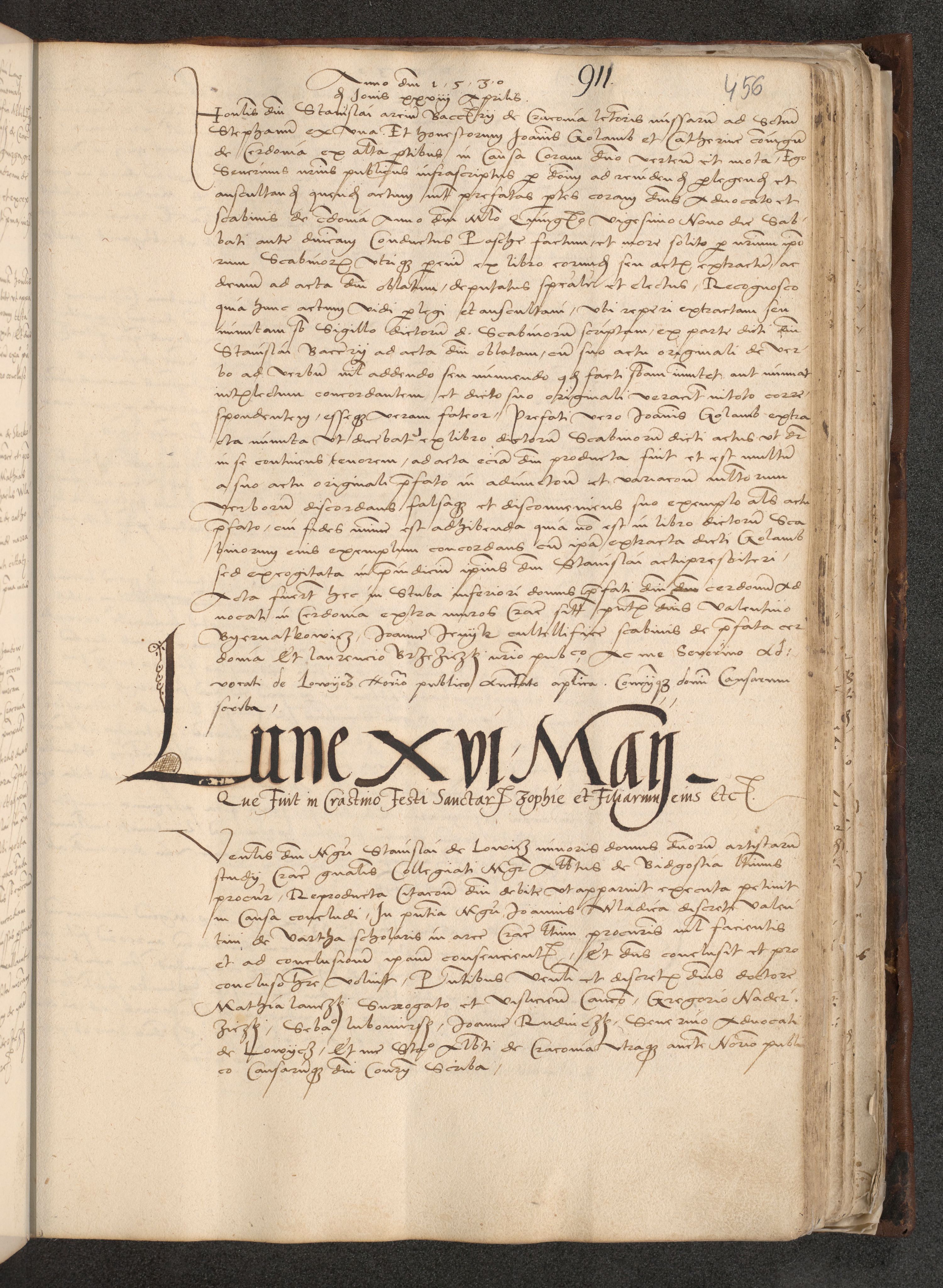 INRI. Acta actorum, obligacionum et sentenciarum tam interlocutoriarum quam diffinitivarum coram reverendo patre ac egregio viro domino Jacobo Erciss[o]wski decretorum doctorem, canonico et officiali generali Cracoviensi ad annum Domini 1528, indicionem primam, pontificatus sanctissimi in Christo patris et domini domini Clementis divina probidendcia pape seprtimi, annum quintum, per Stanislaum de Mordi legalem consistorii notarium omine felici inchoantur