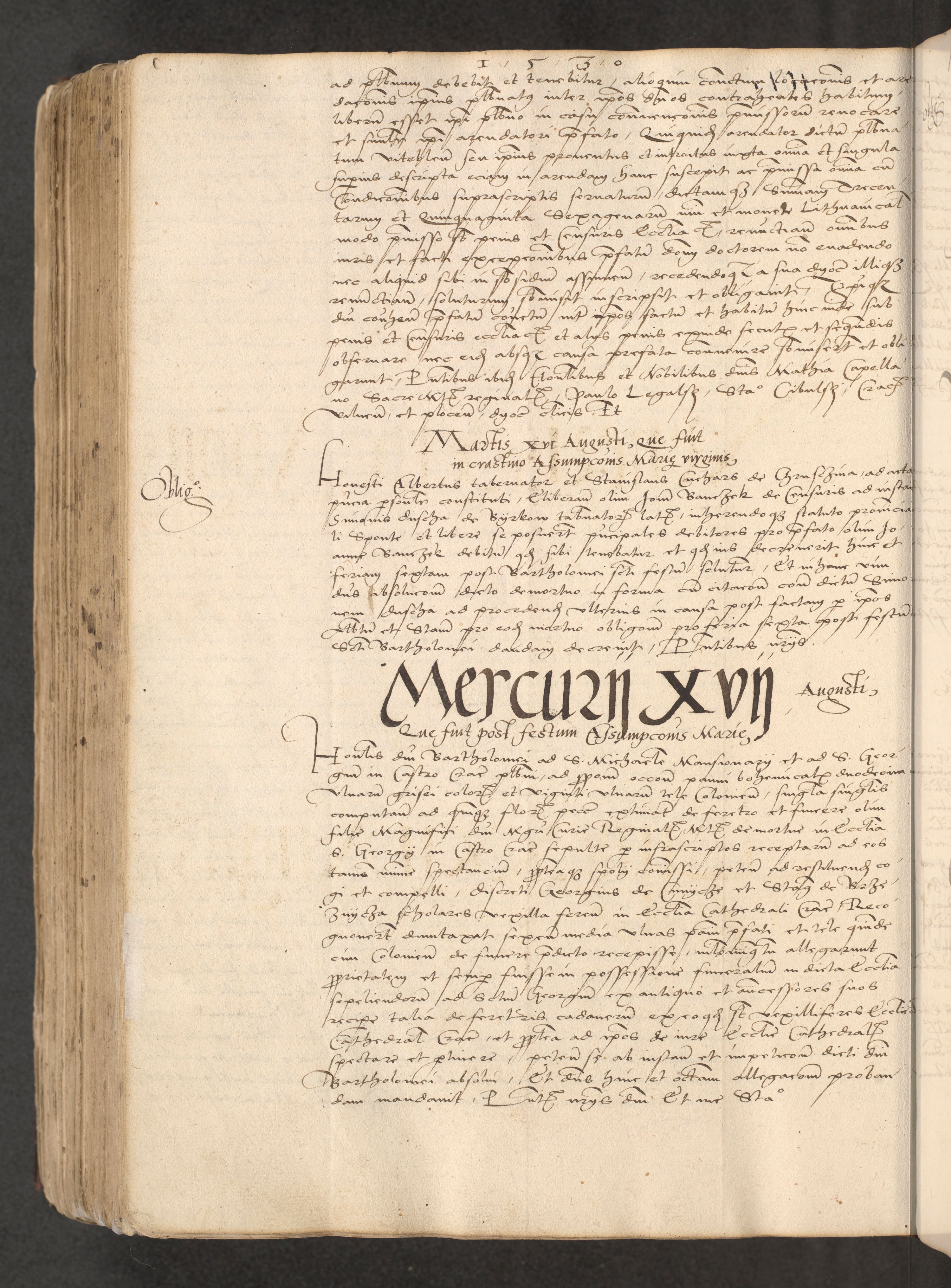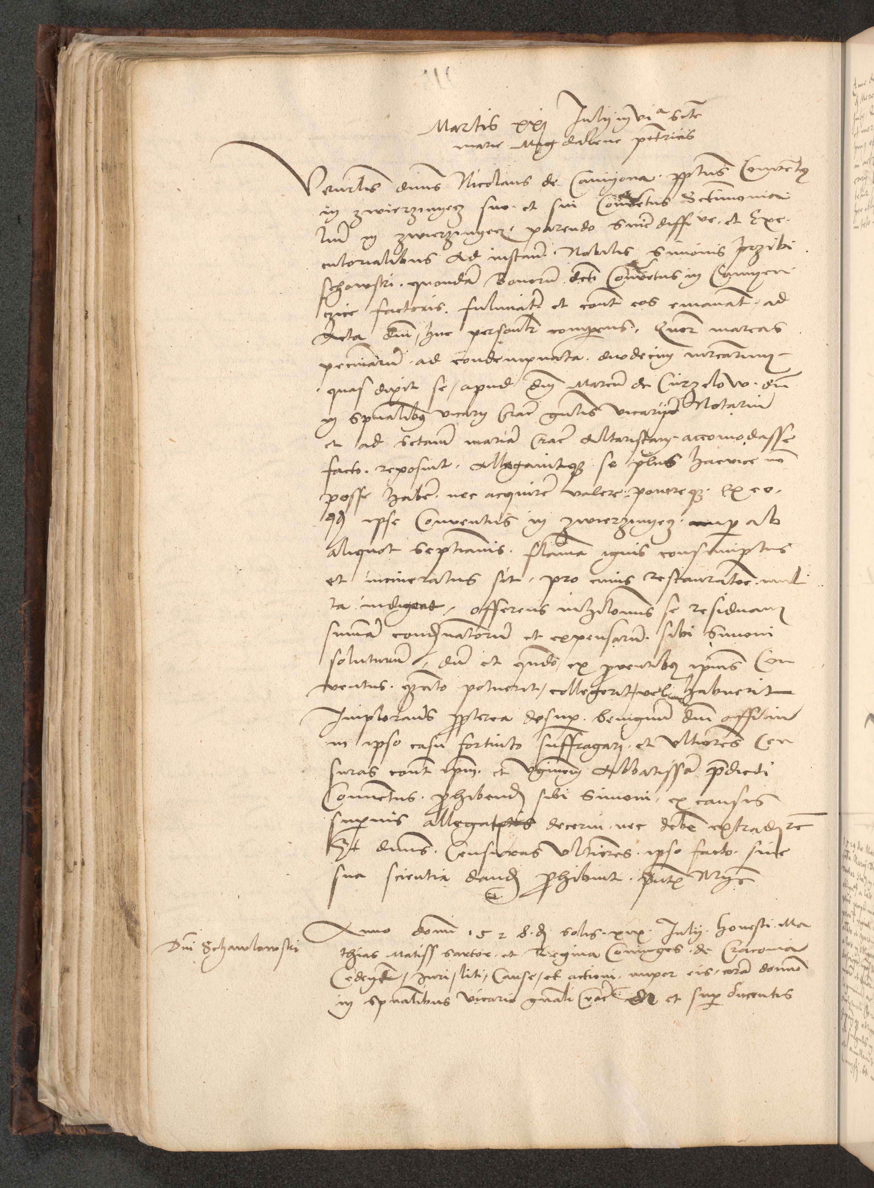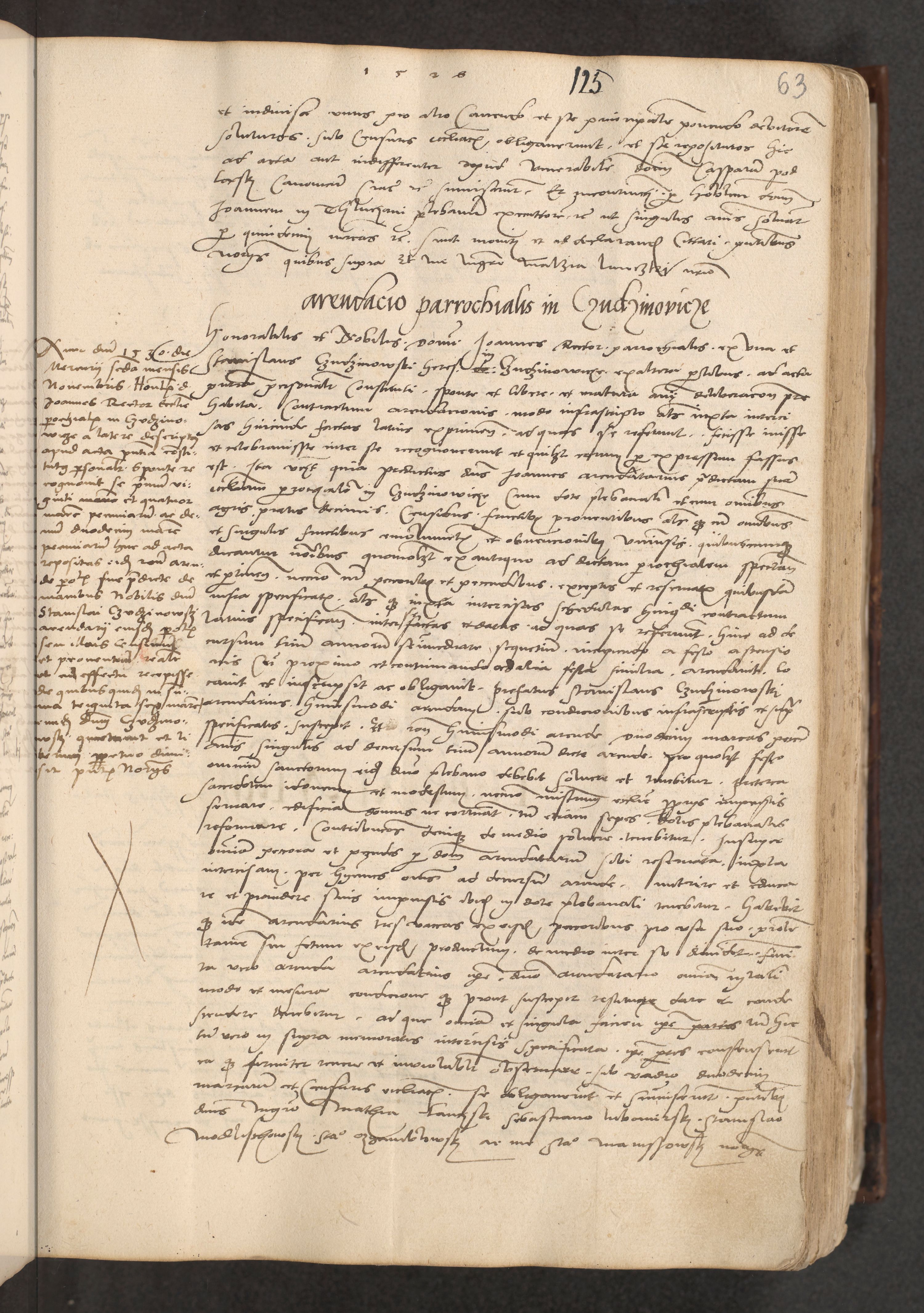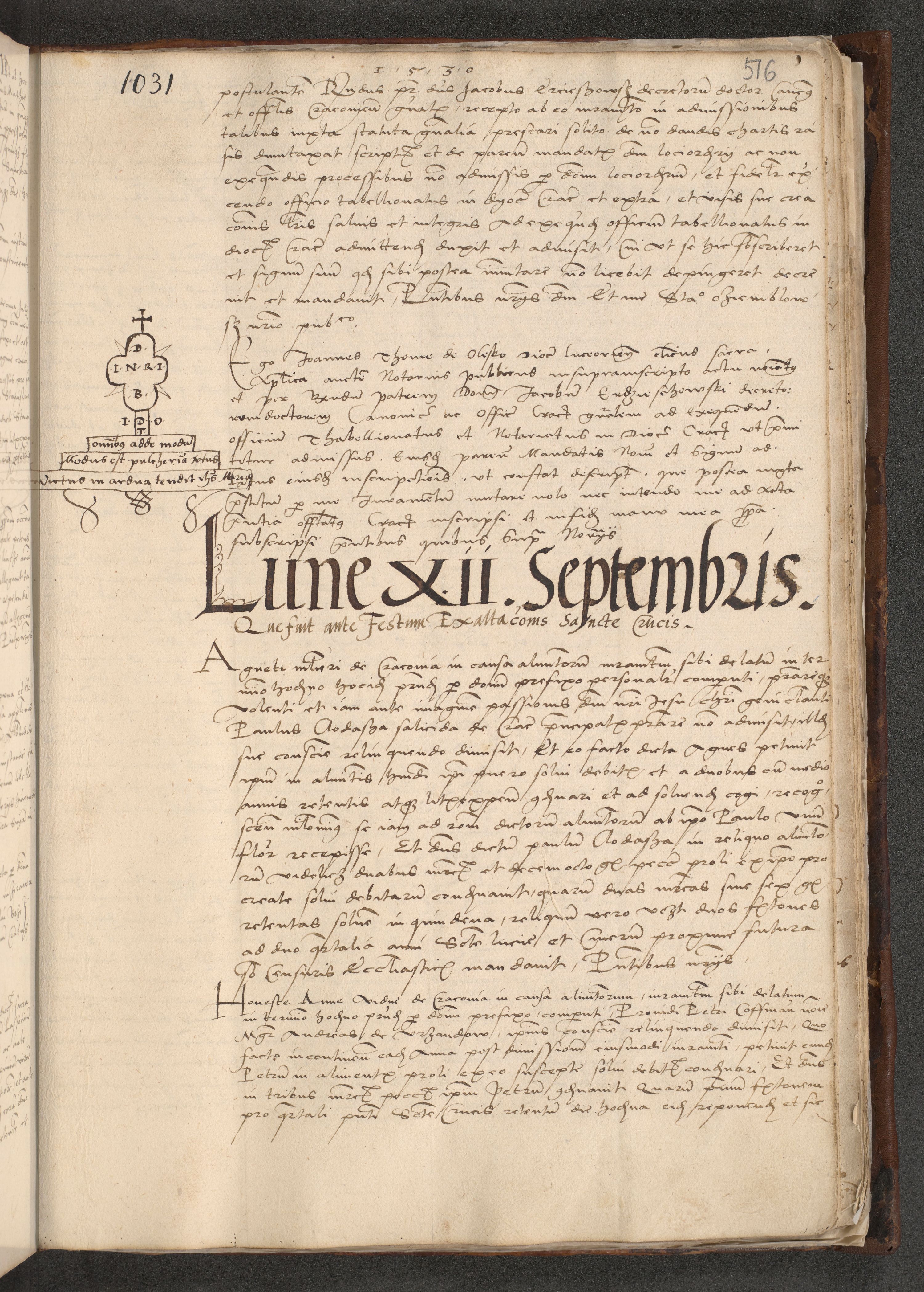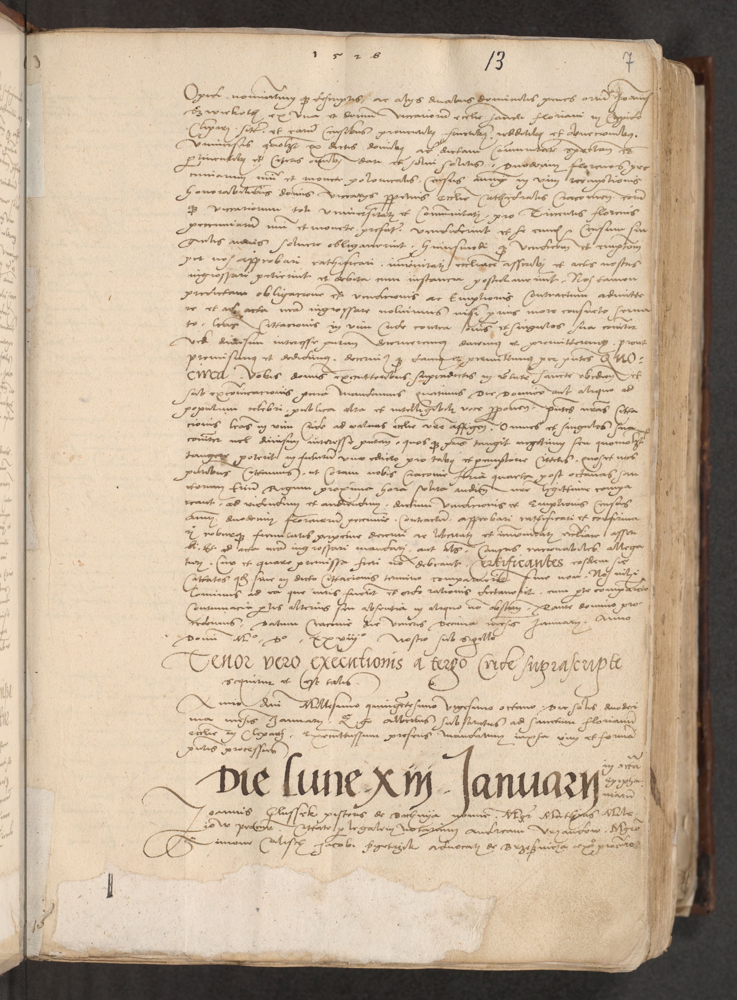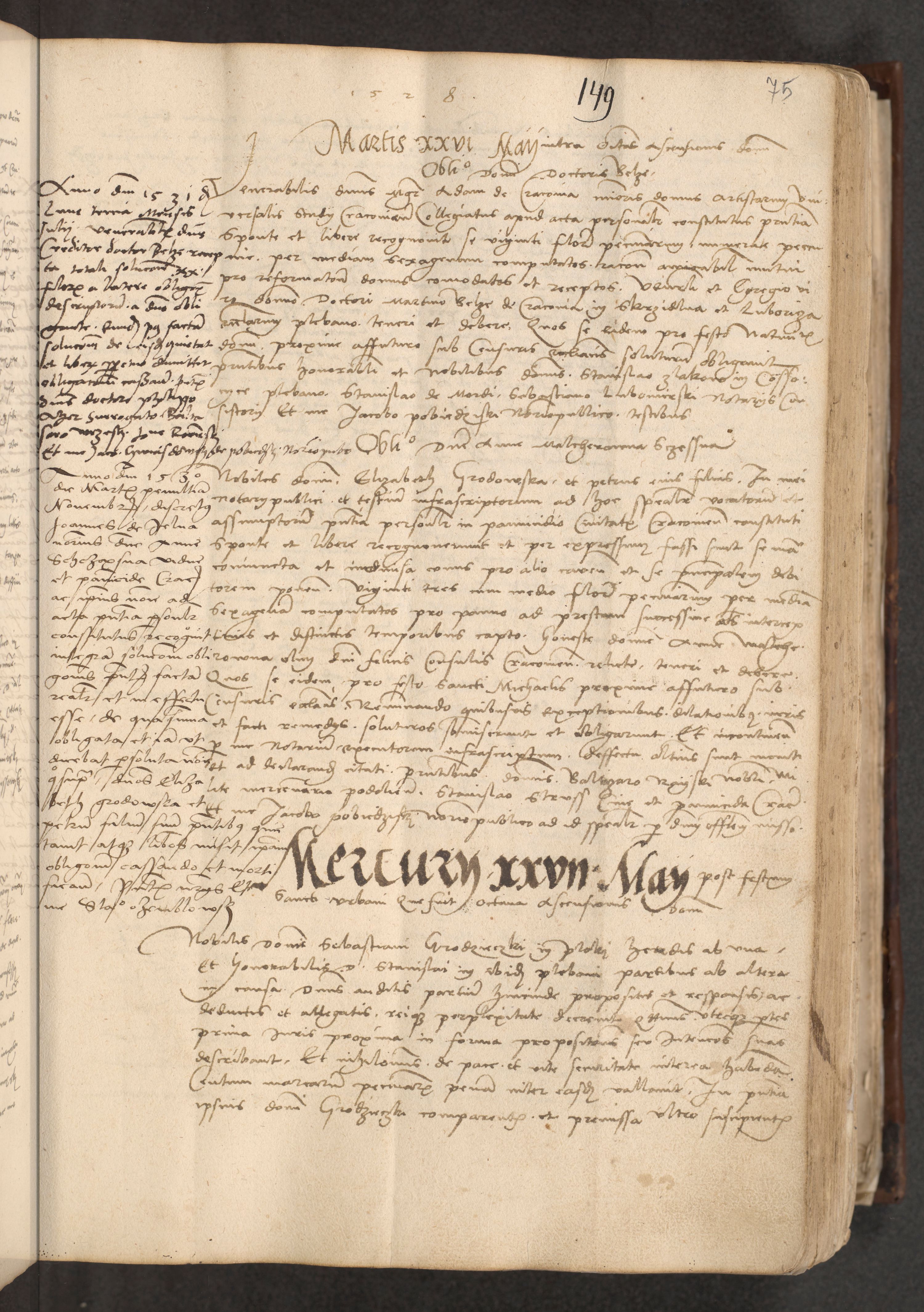 INRI. Acta actorum, obligacionum et sentenciarum tam interlocutoriarum quam diffinitivarum coram reverendo patre ac egregio viro domino Jacobo Erciss[o]wski decretorum doctorem, canonico et officiali generali Cracoviensi ad annum Domini 1528, indicionem primam, pontificatus sanctissimi in Christo patris et domini domini Clementis divina probidendcia pape seprtimi, annum quintum, per Stanislaum de Mordi legalem consistorii notarium omine felici inchoantur