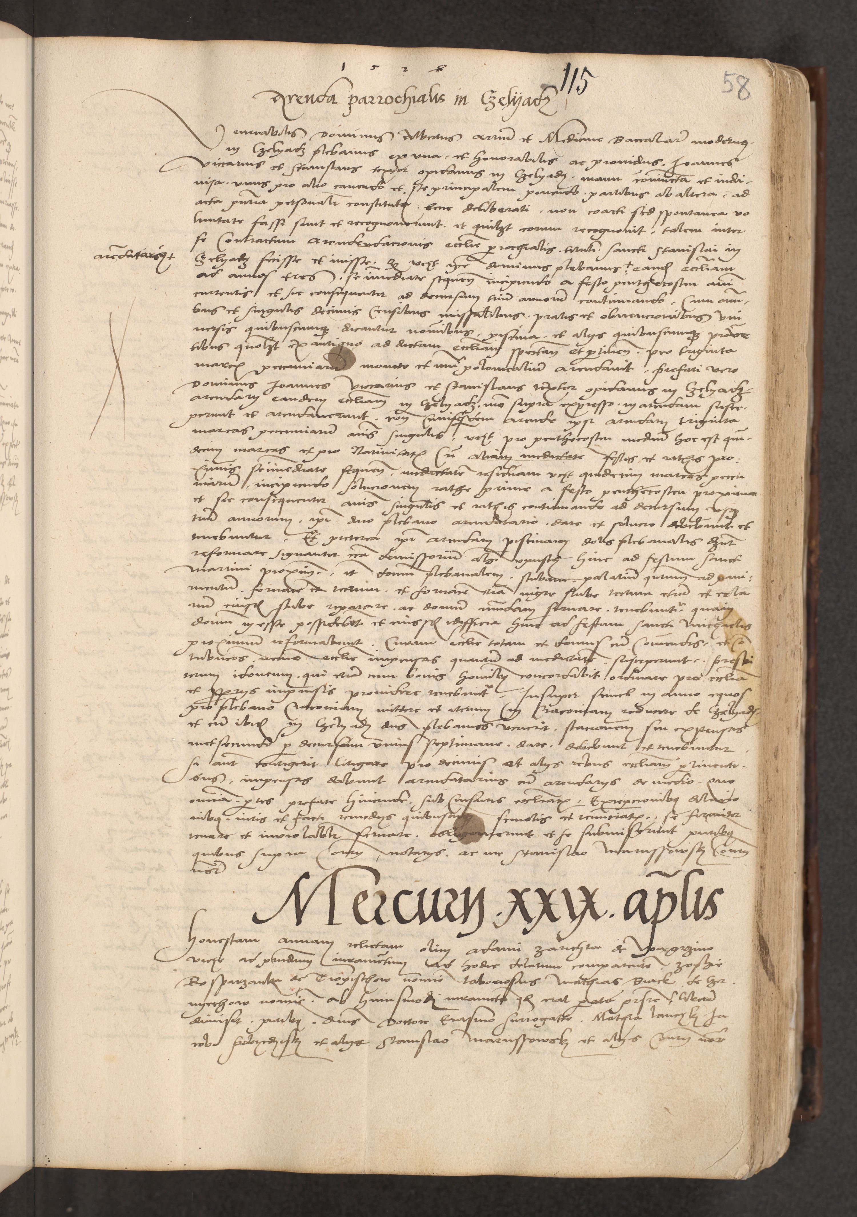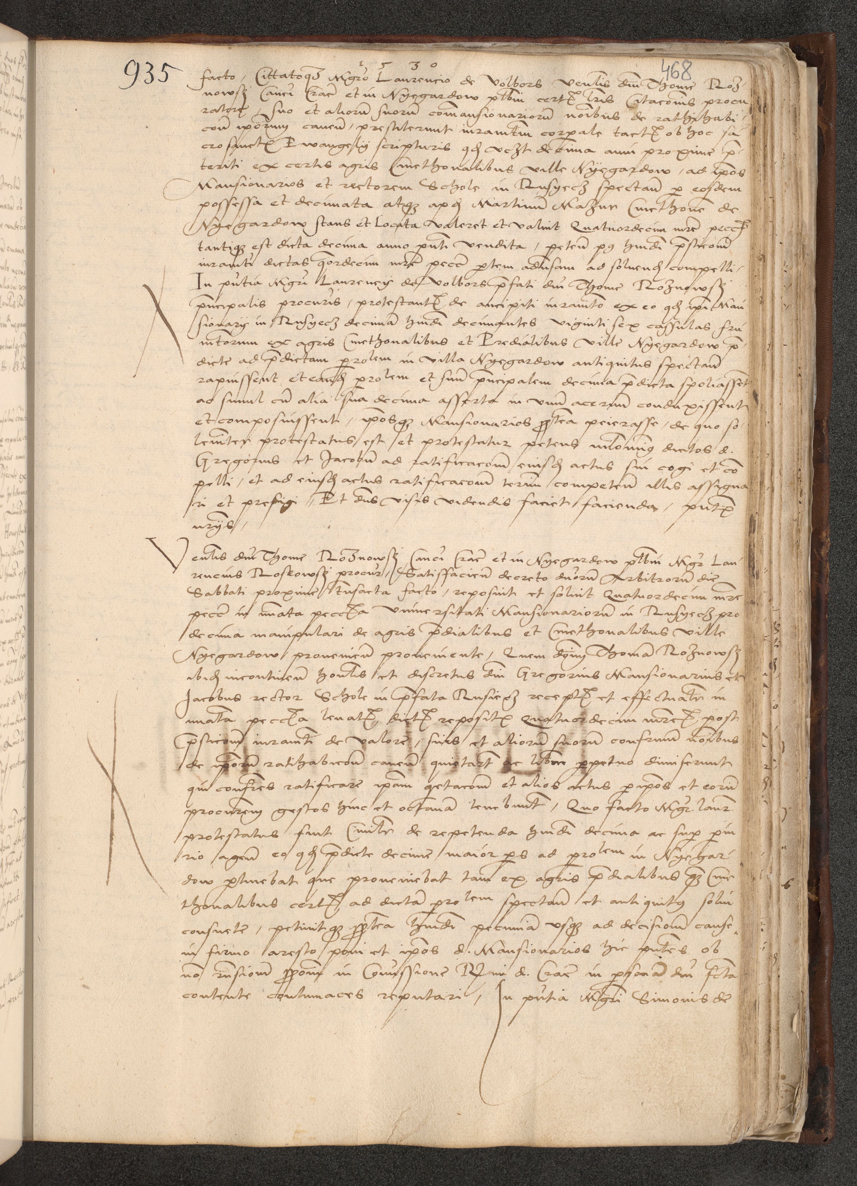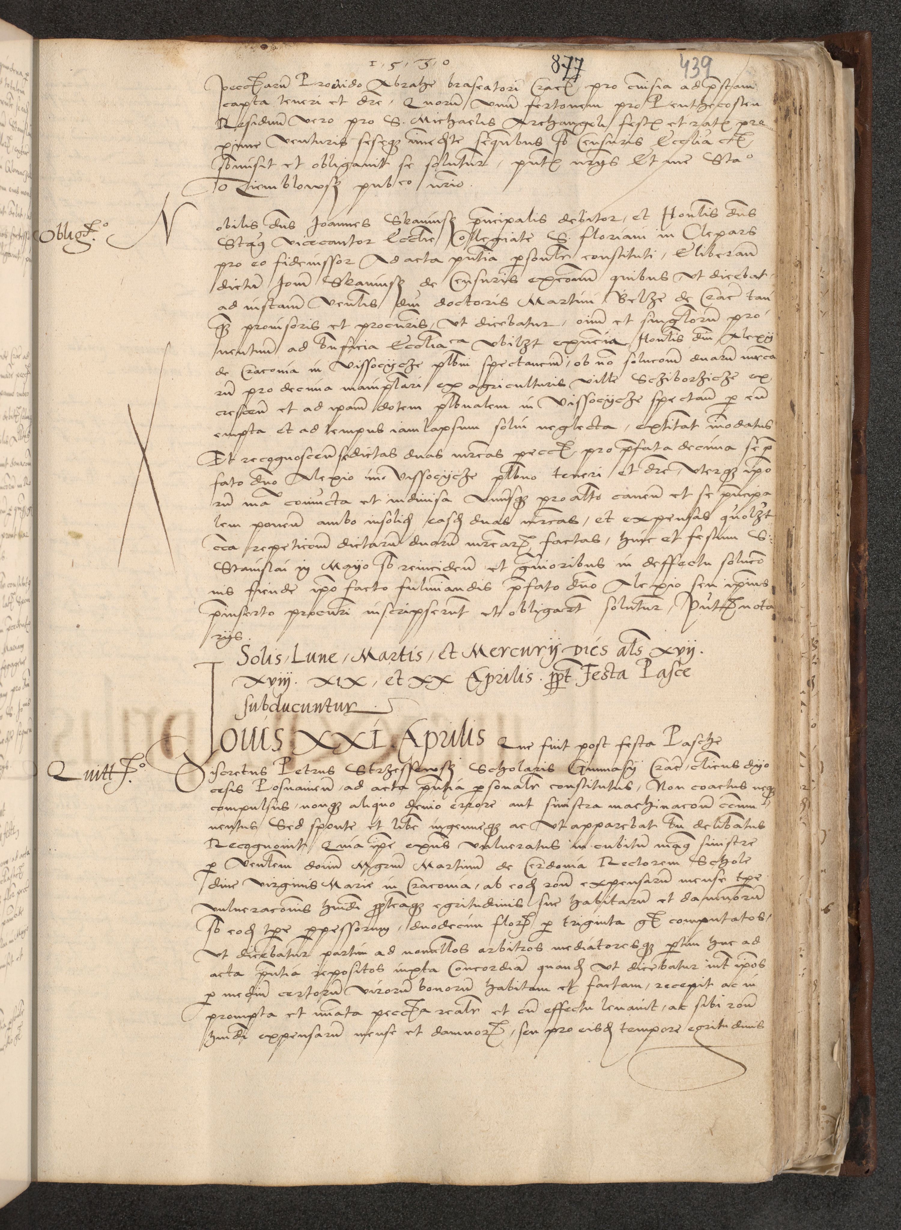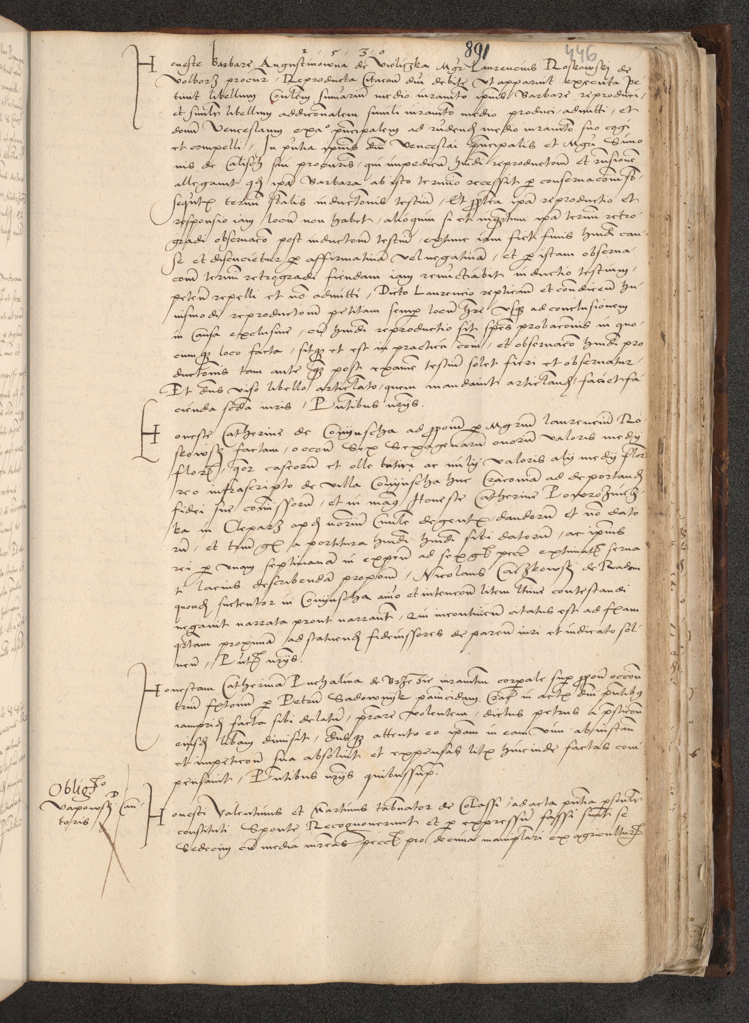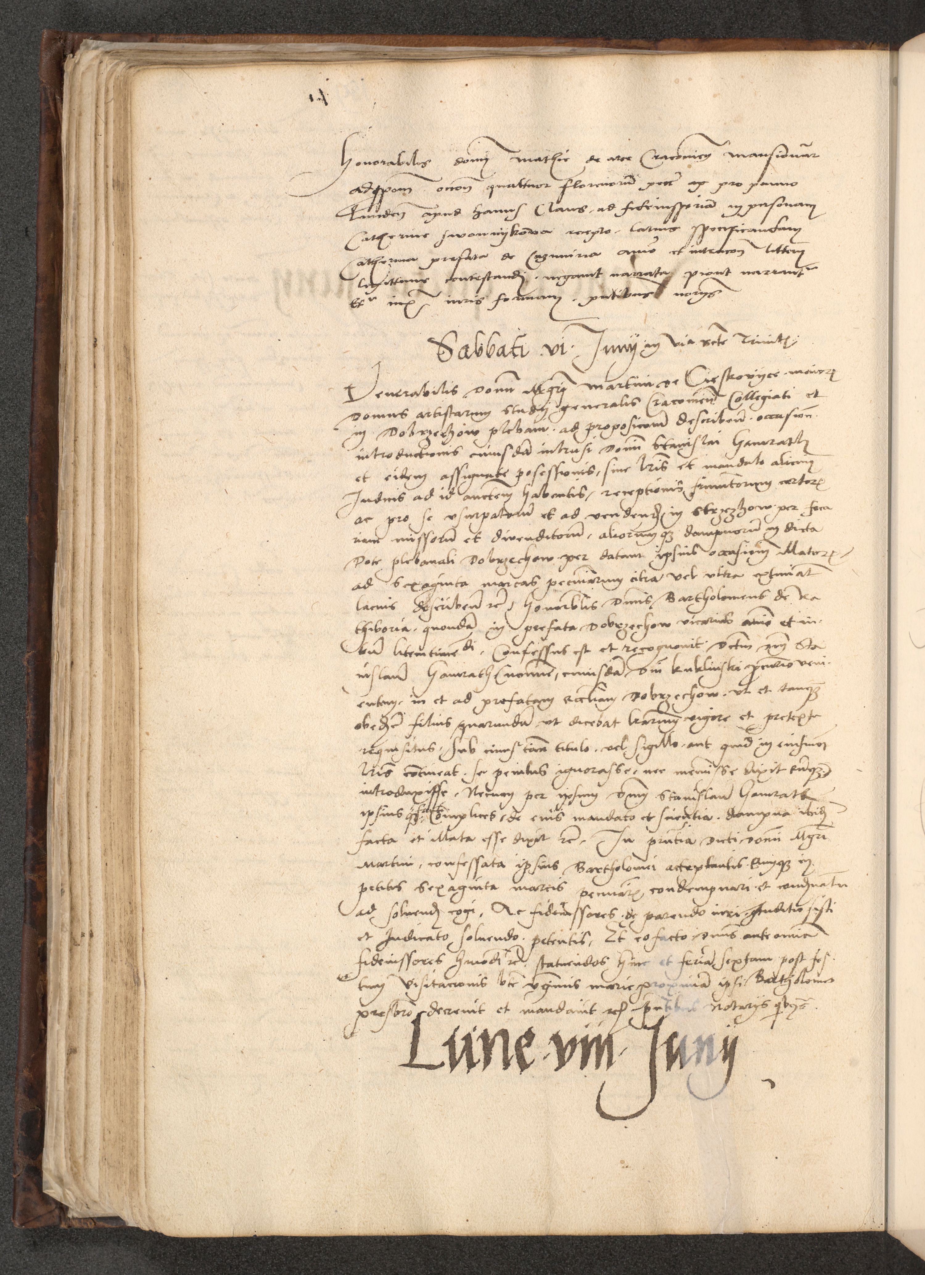 INRI. Acta actorum, obligacionum et sentenciarum tam interlocutoriarum quam diffinitivarum coram reverendo patre ac egregio viro domino Jacobo Erciss[o]wski decretorum doctorem, canonico et officiali generali Cracoviensi ad annum Domini 1528, indicionem primam, pontificatus sanctissimi in Christo patris et domini domini Clementis divina probidendcia pape seprtimi, annum quintum, per Stanislaum de Mordi legalem consistorii notarium omine felici inchoantur