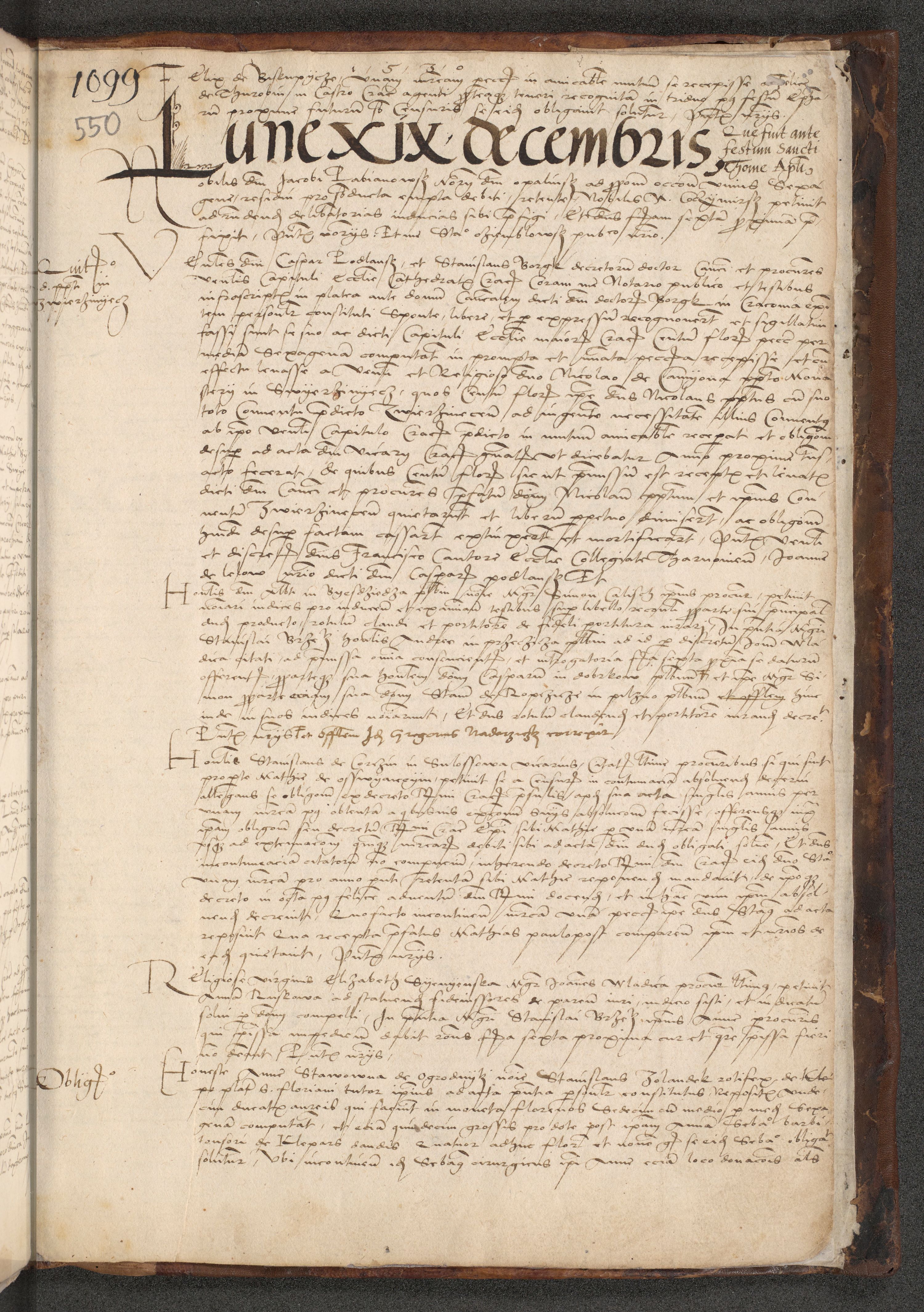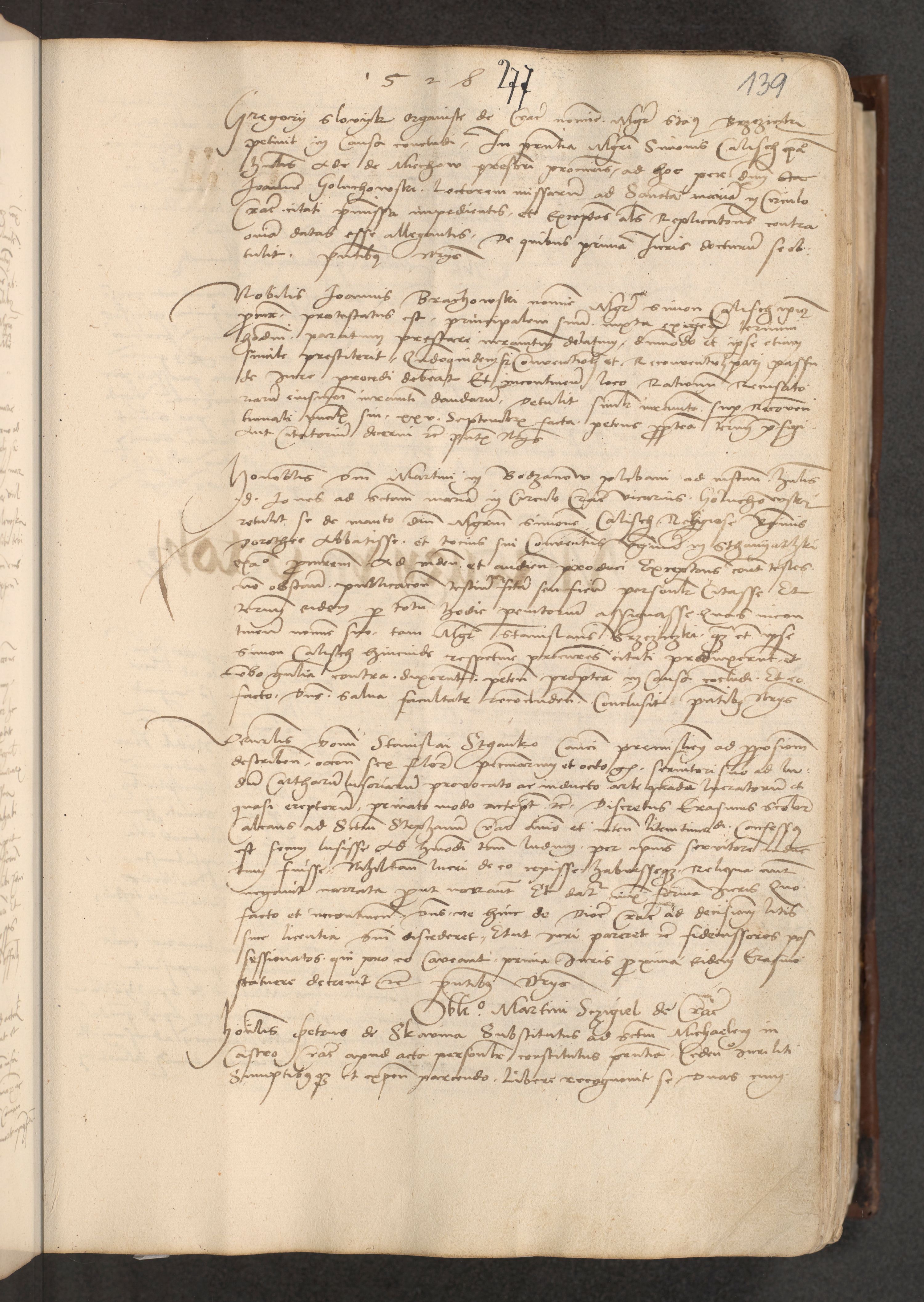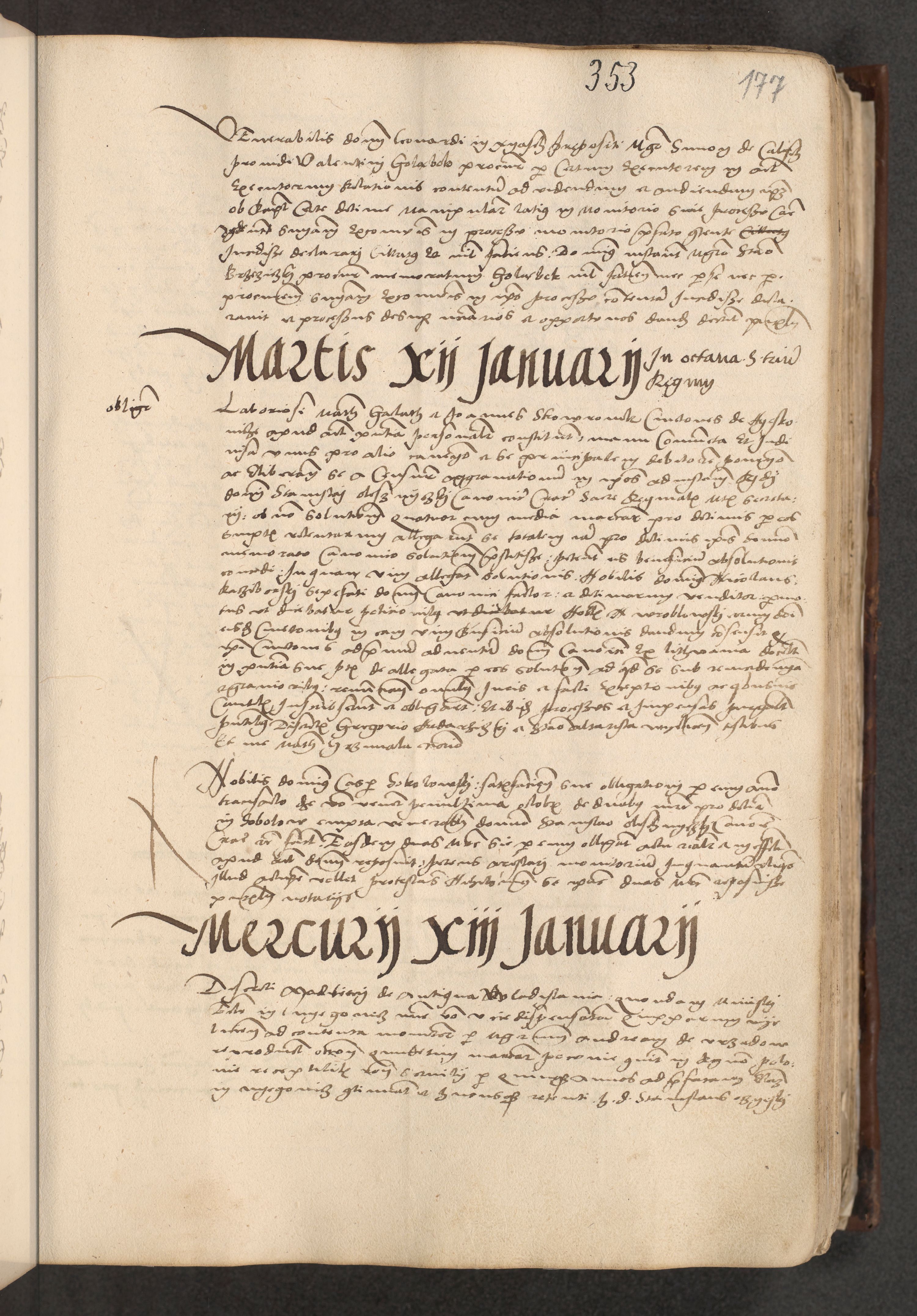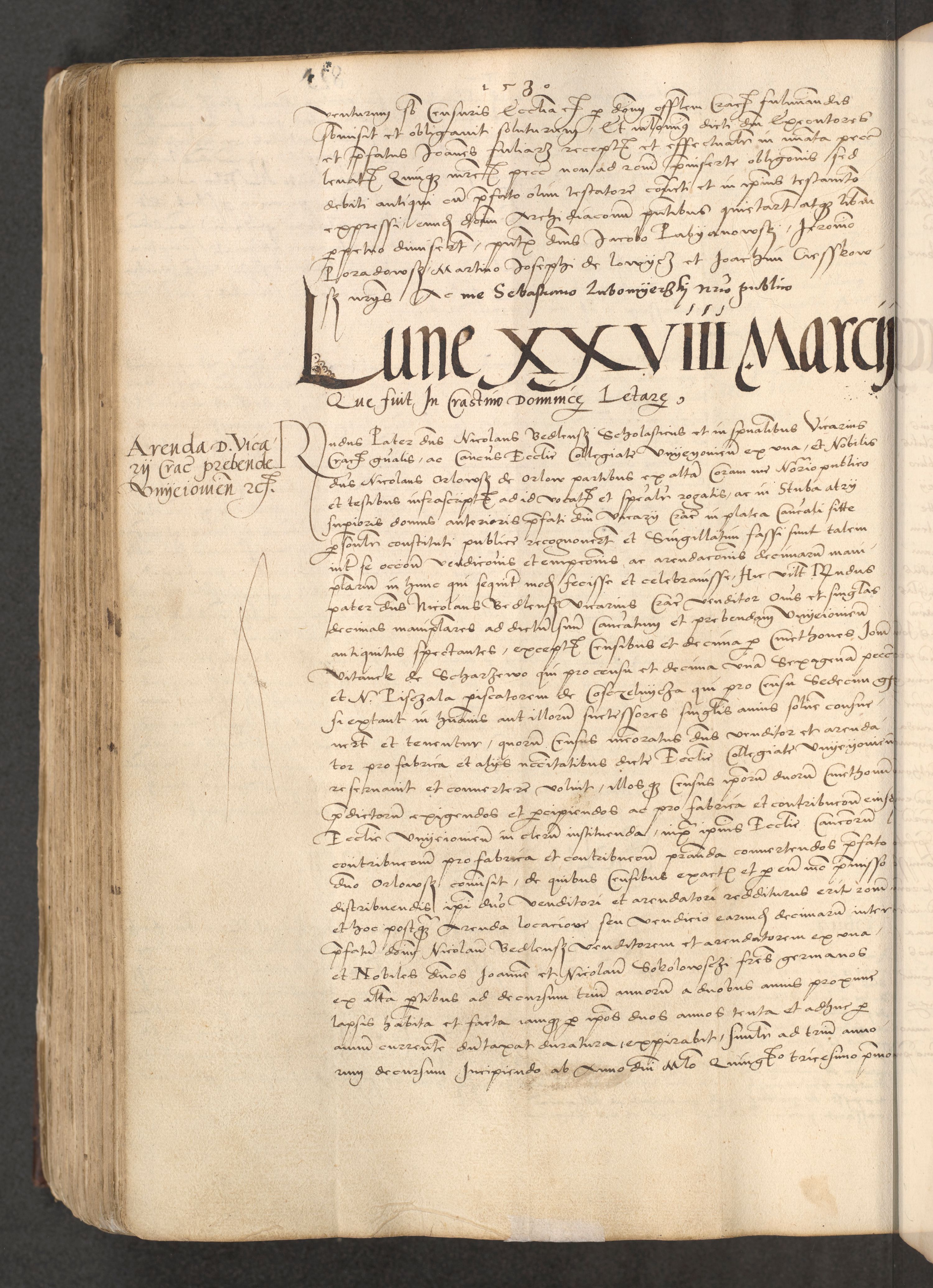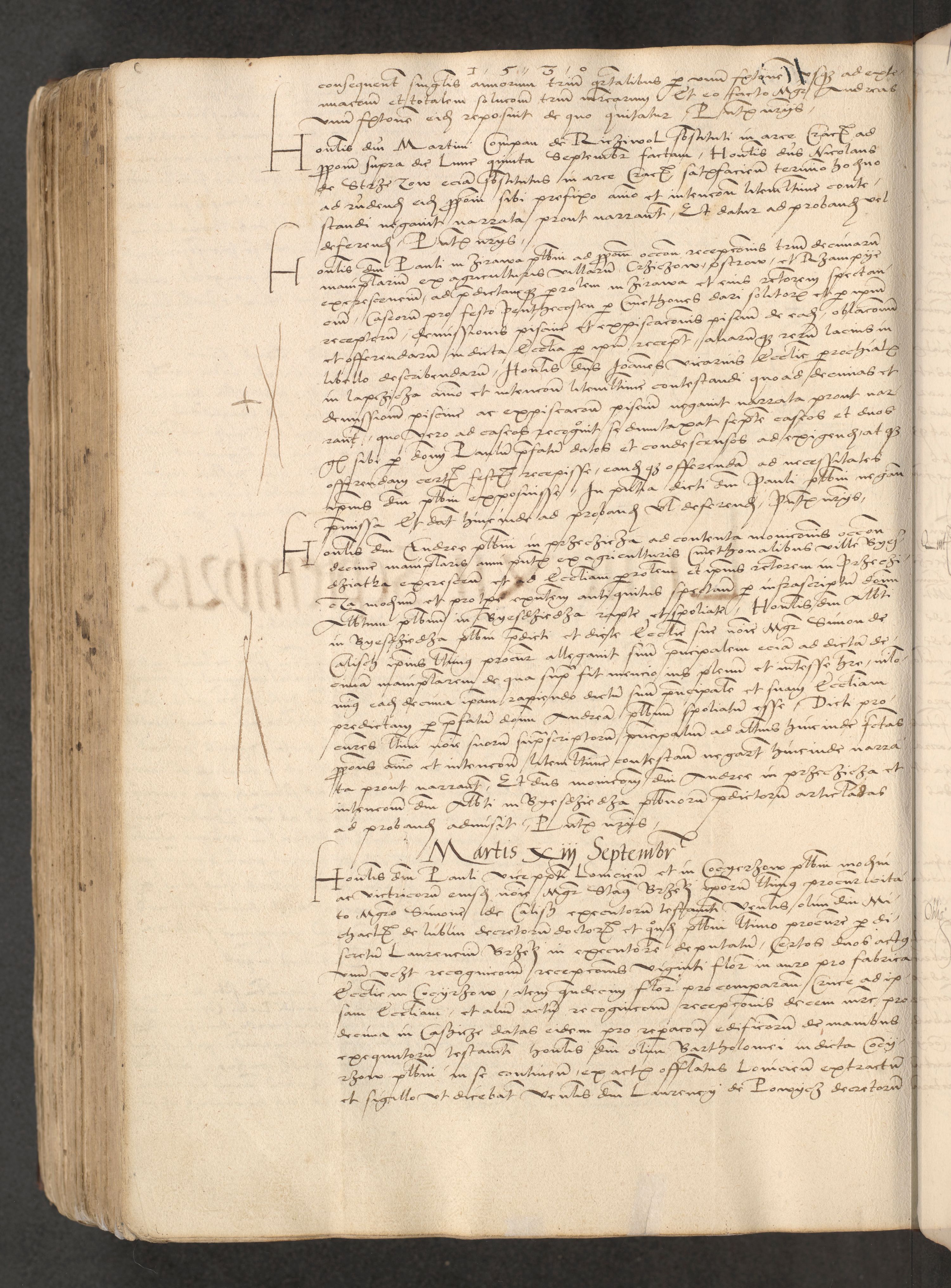 INRI. Acta actorum, obligacionum et sentenciarum tam interlocutoriarum quam diffinitivarum coram reverendo patre ac egregio viro domino Jacobo Erciss[o]wski decretorum doctorem, canonico et officiali generali Cracoviensi ad annum Domini 1528, indicionem primam, pontificatus sanctissimi in Christo patris et domini domini Clementis divina probidendcia pape seprtimi, annum quintum, per Stanislaum de Mordi legalem consistorii notarium omine felici inchoantur