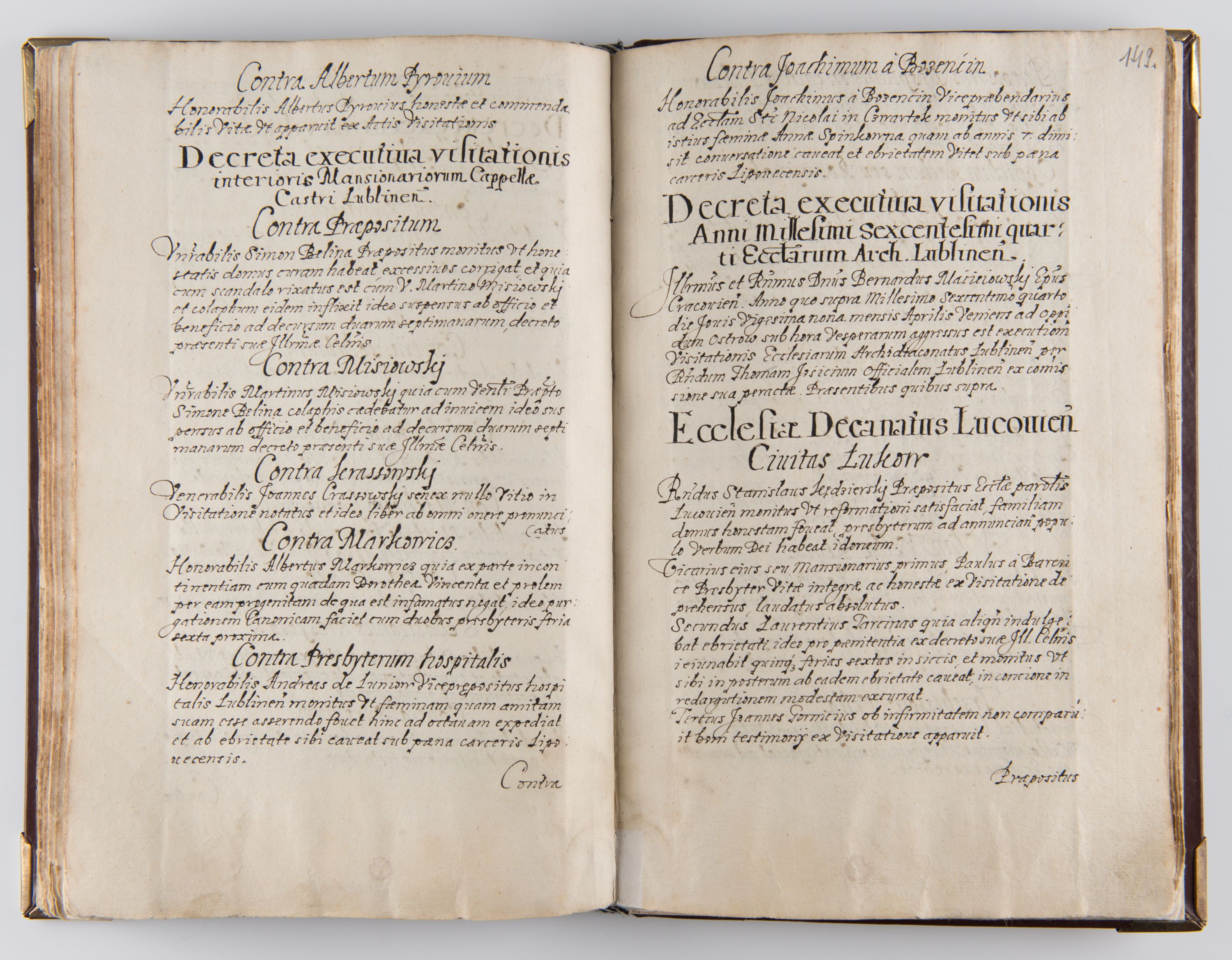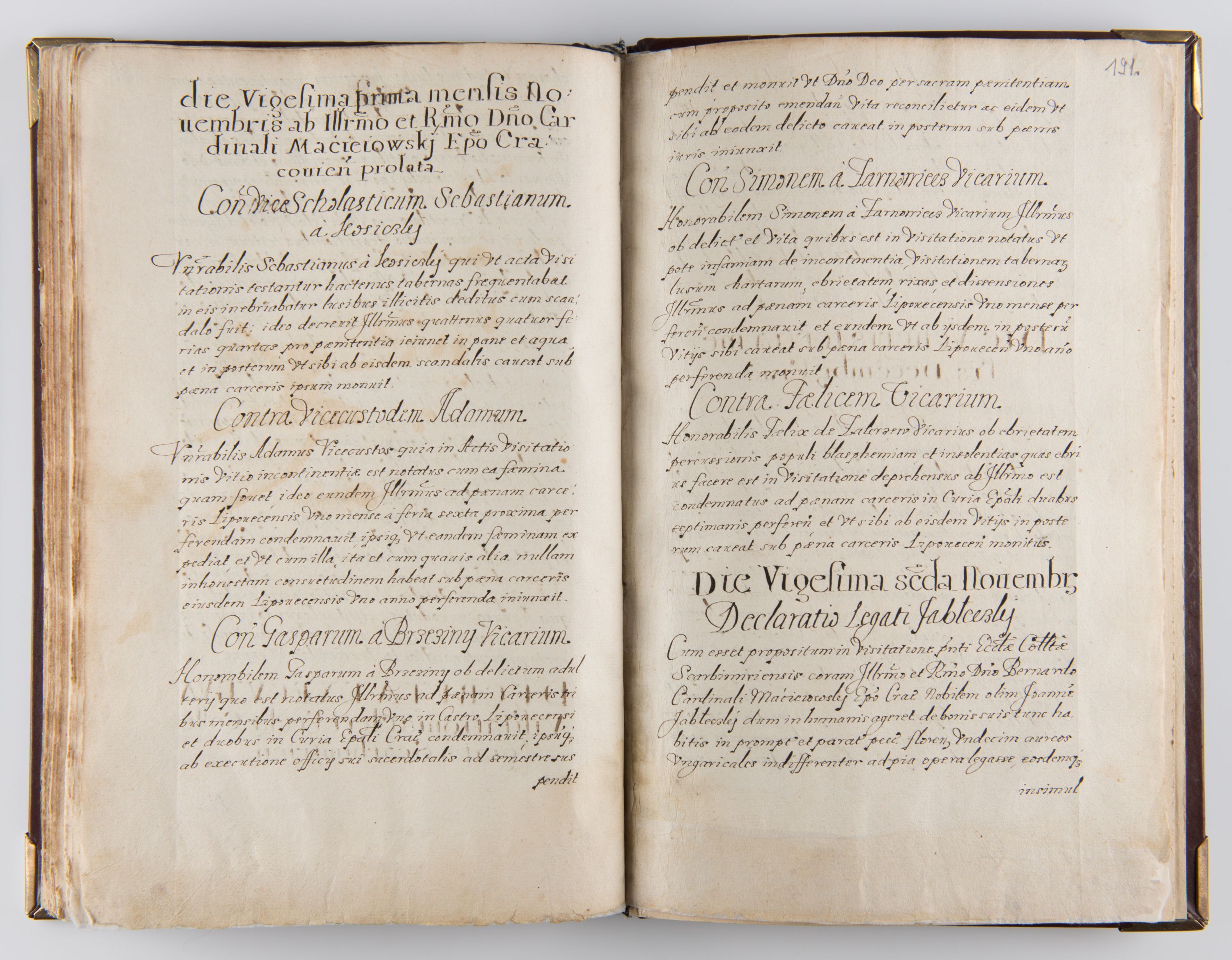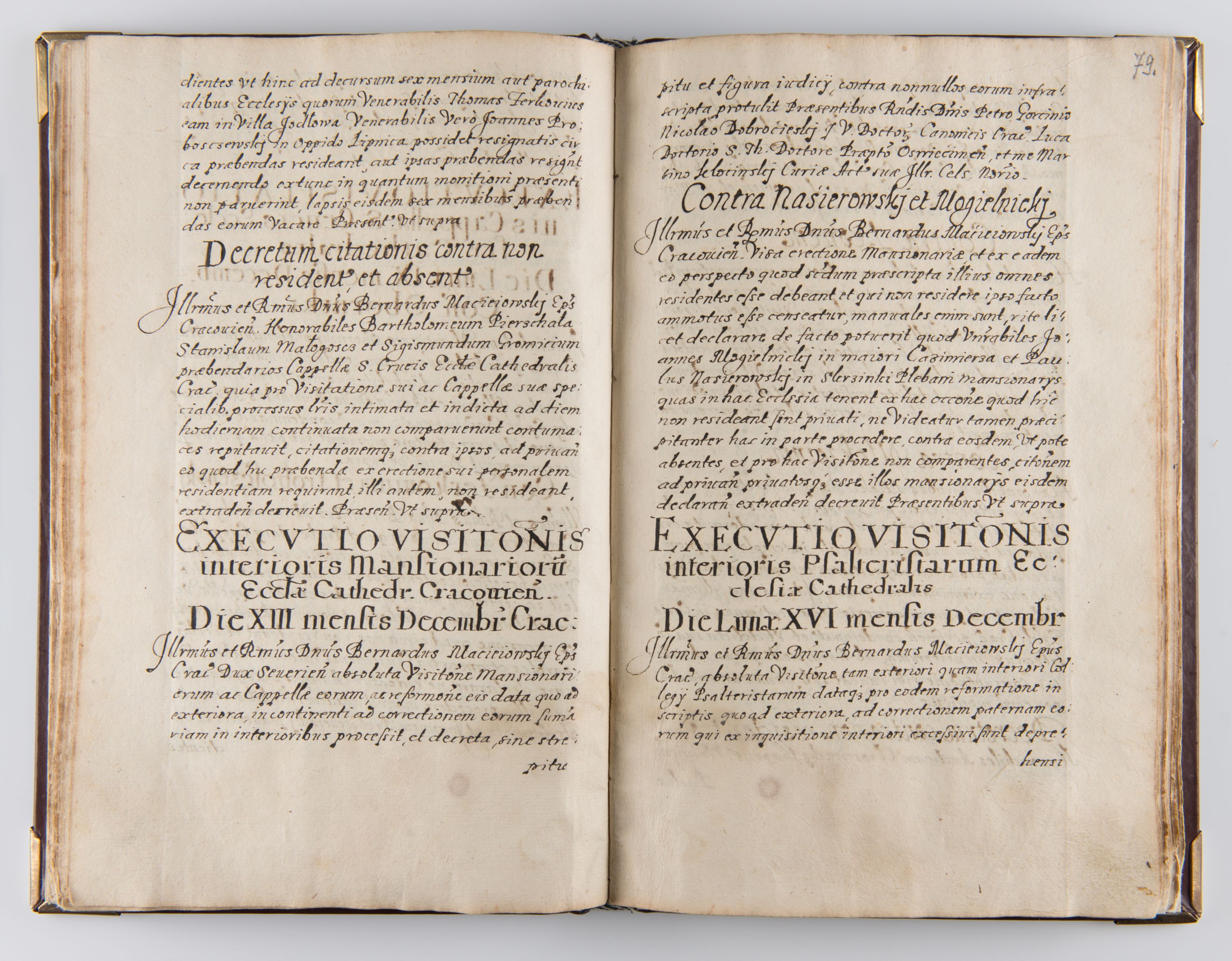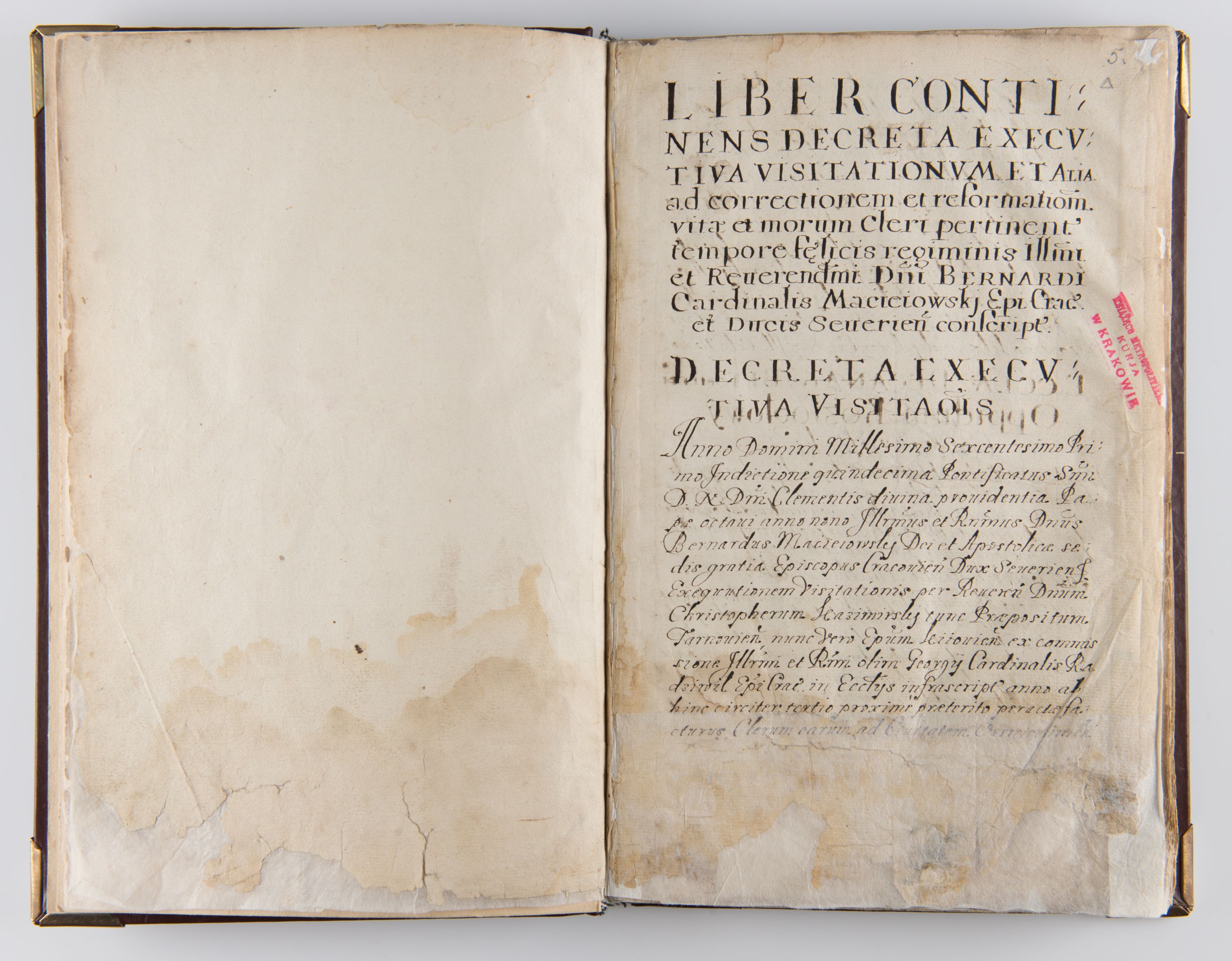 Liber continens decreta executiva visitationum et alia ad correctionem et reformationem vitae et morum cleri pertinentia tempore fel. rec. R.D. Bernardi Maciejowski Cardinalis et episcopi Cracoviensis ac ducis Severiensis conscripta ex annis 1601 et sequent