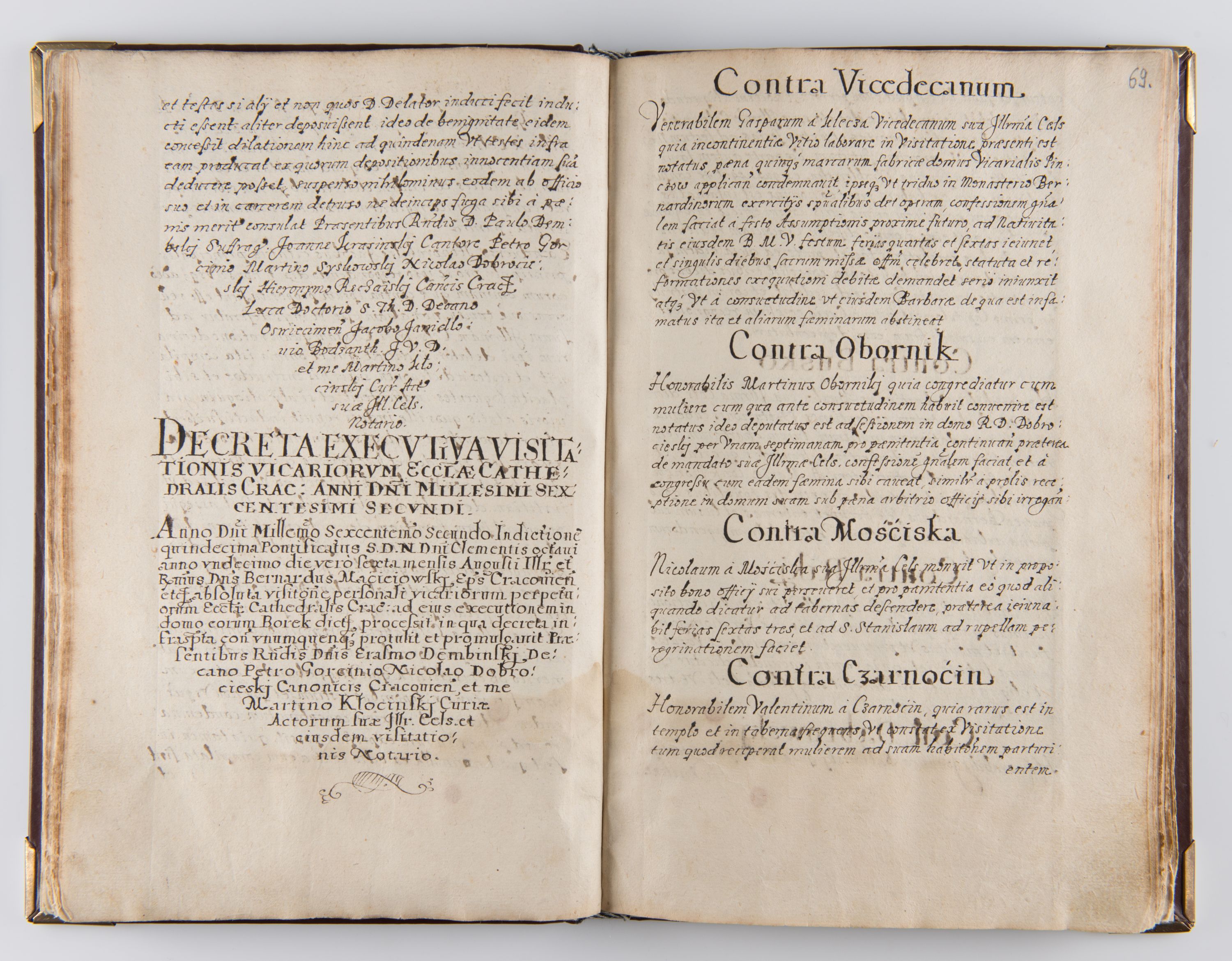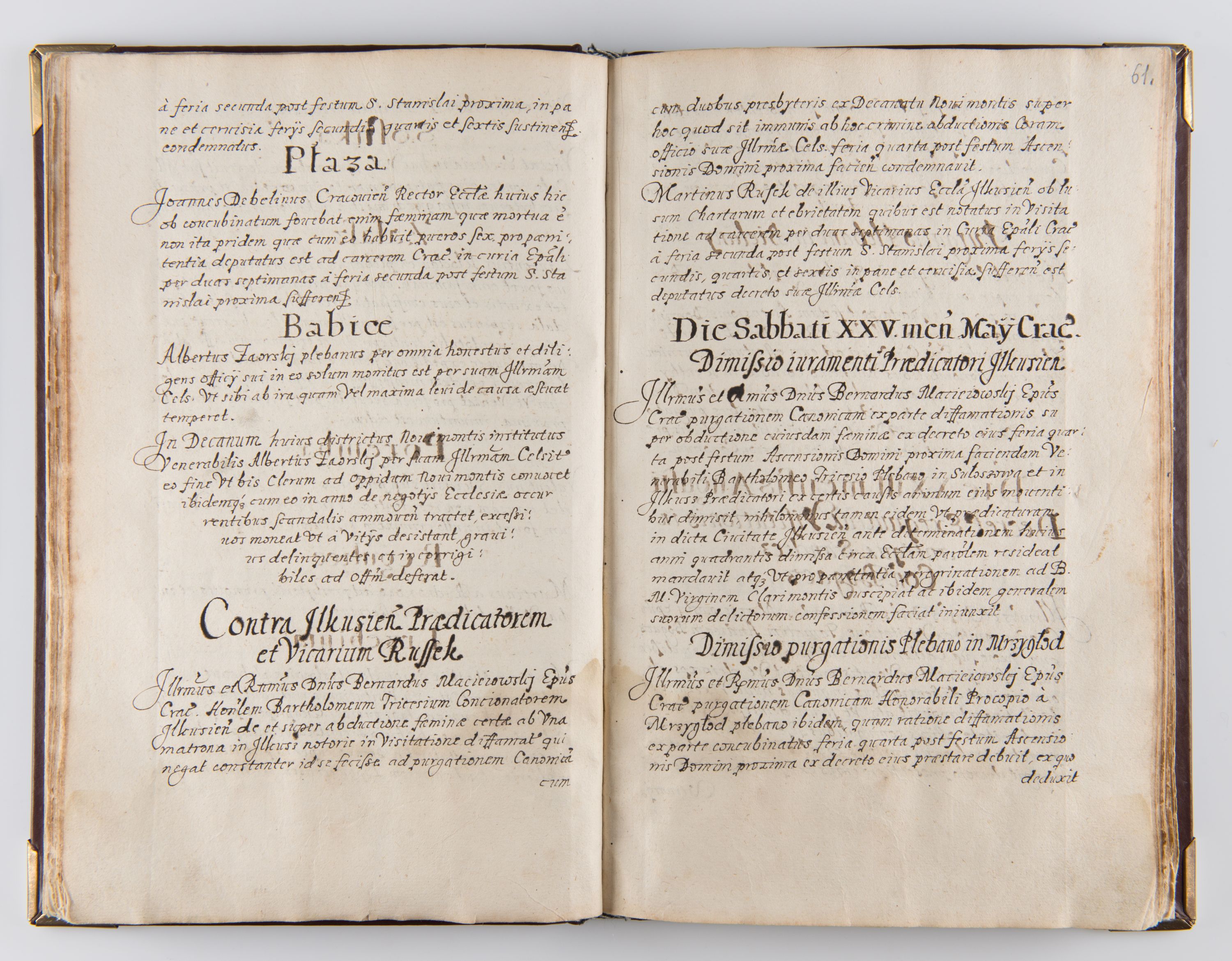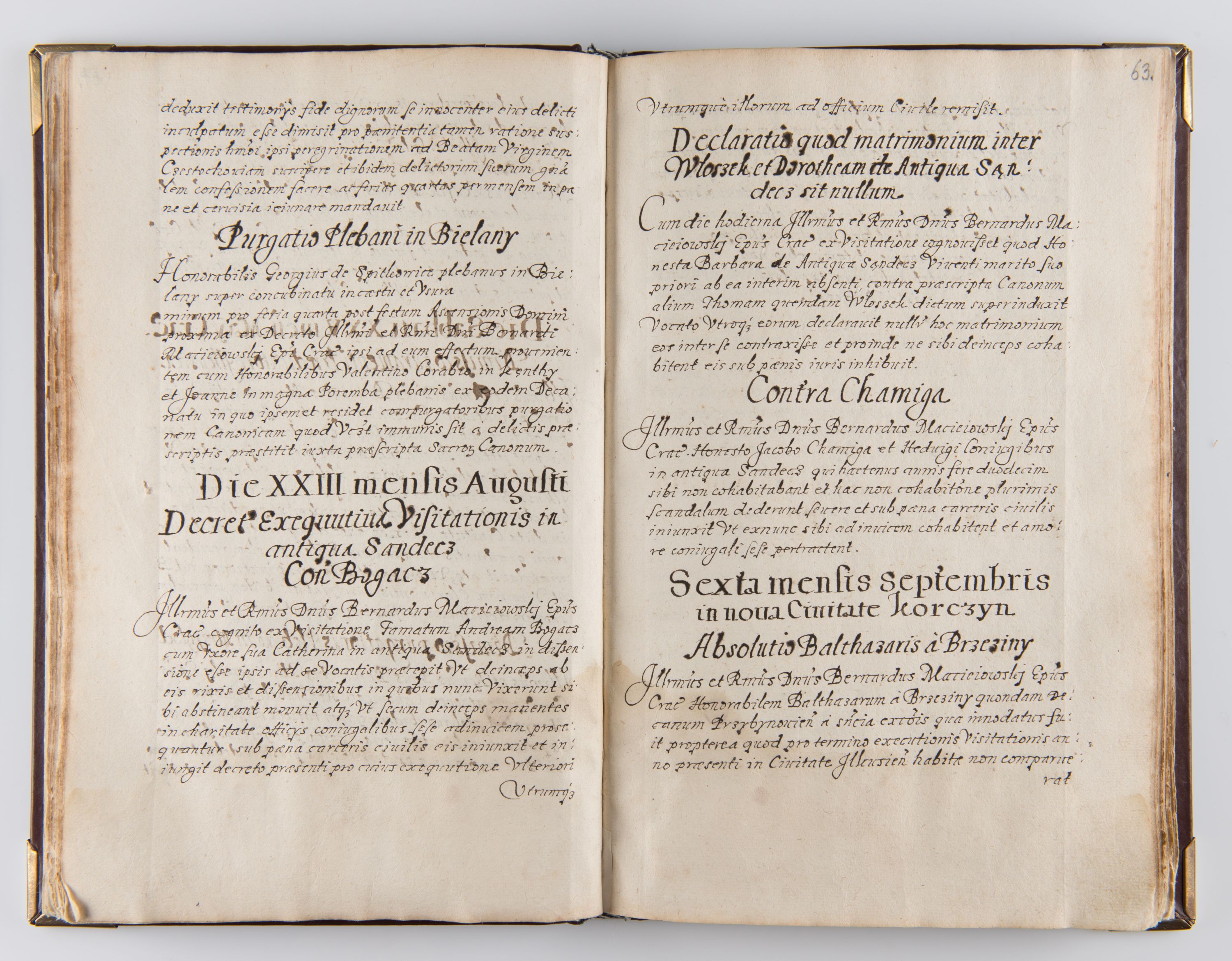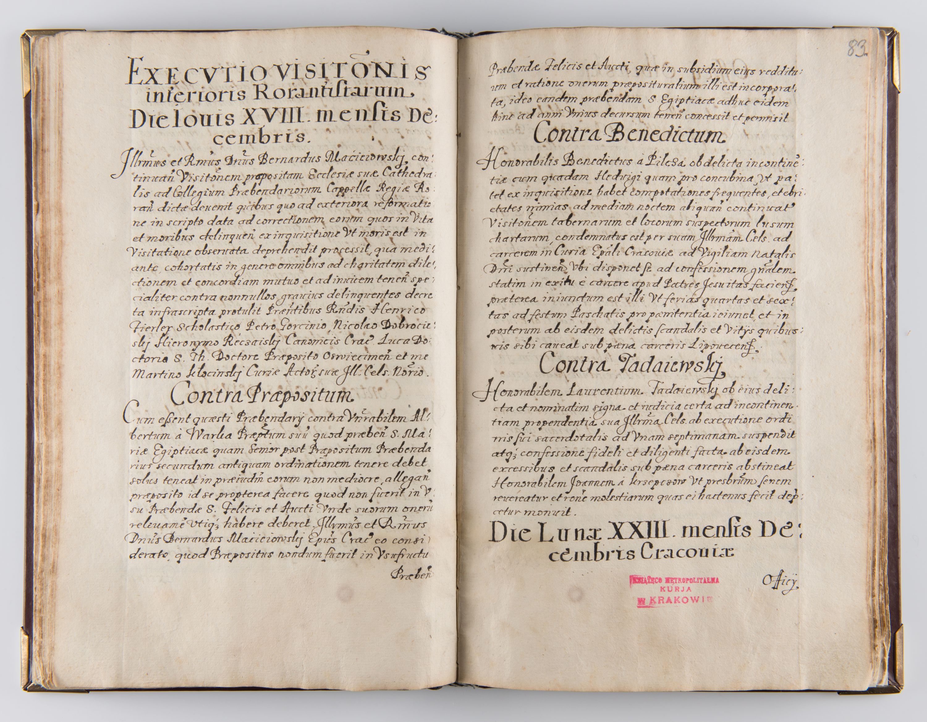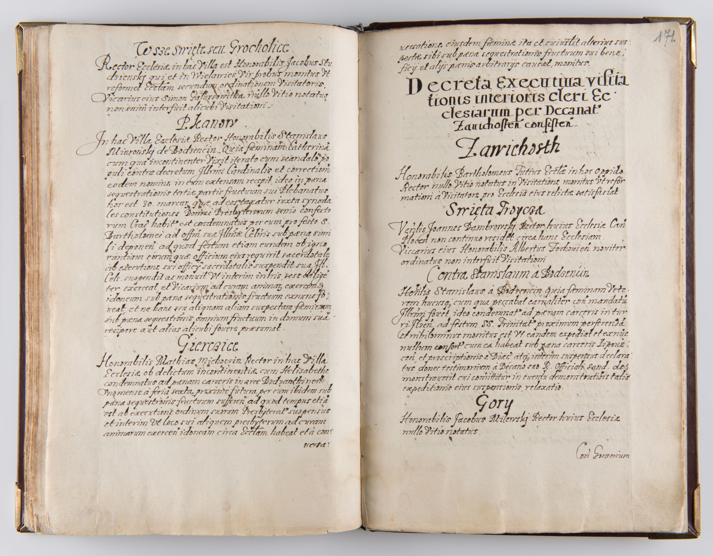 Liber continens decreta executiva visitationum et alia ad correctionem et reformationem vitae et morum cleri pertinentia tempore fel. rec. R.D. Bernardi Maciejowski Cardinalis et episcopi Cracoviensis ac ducis Severiensis conscripta ex annis 1601 et sequent
