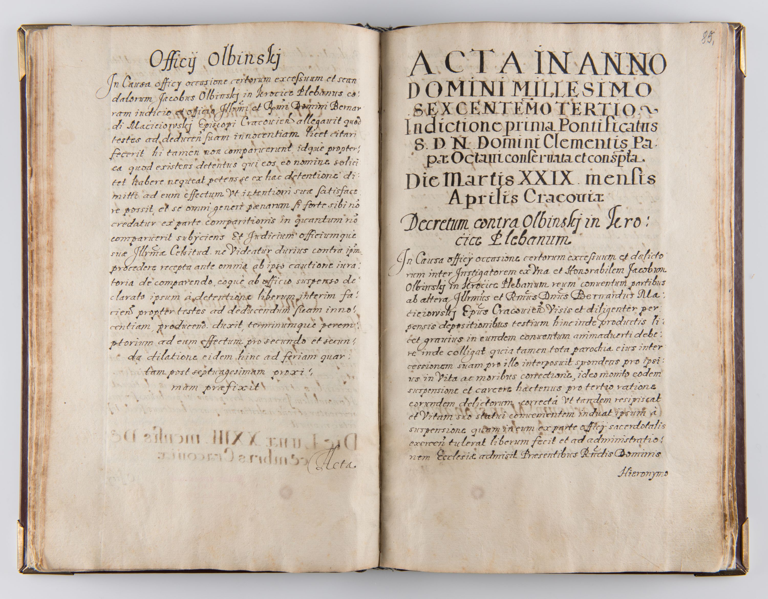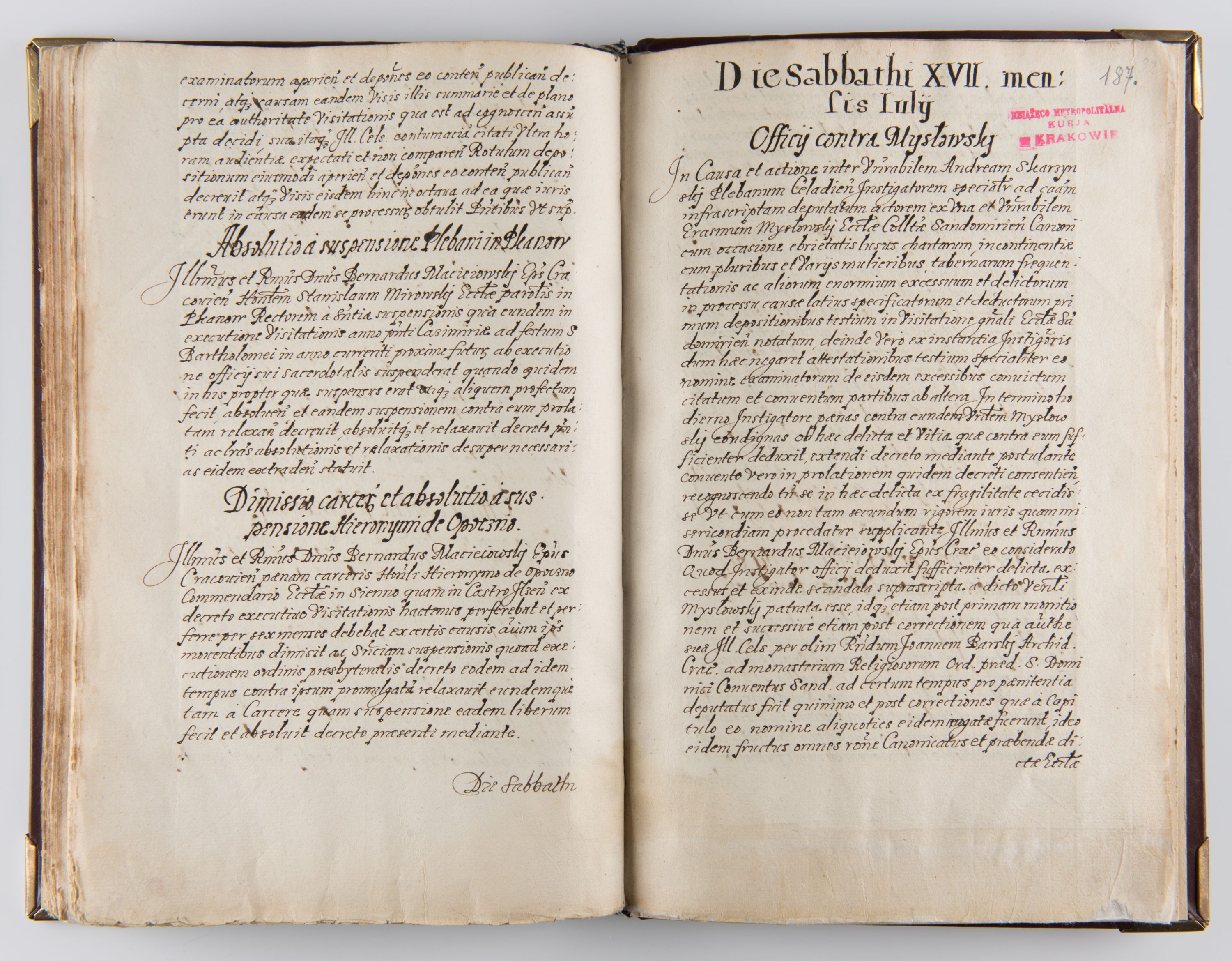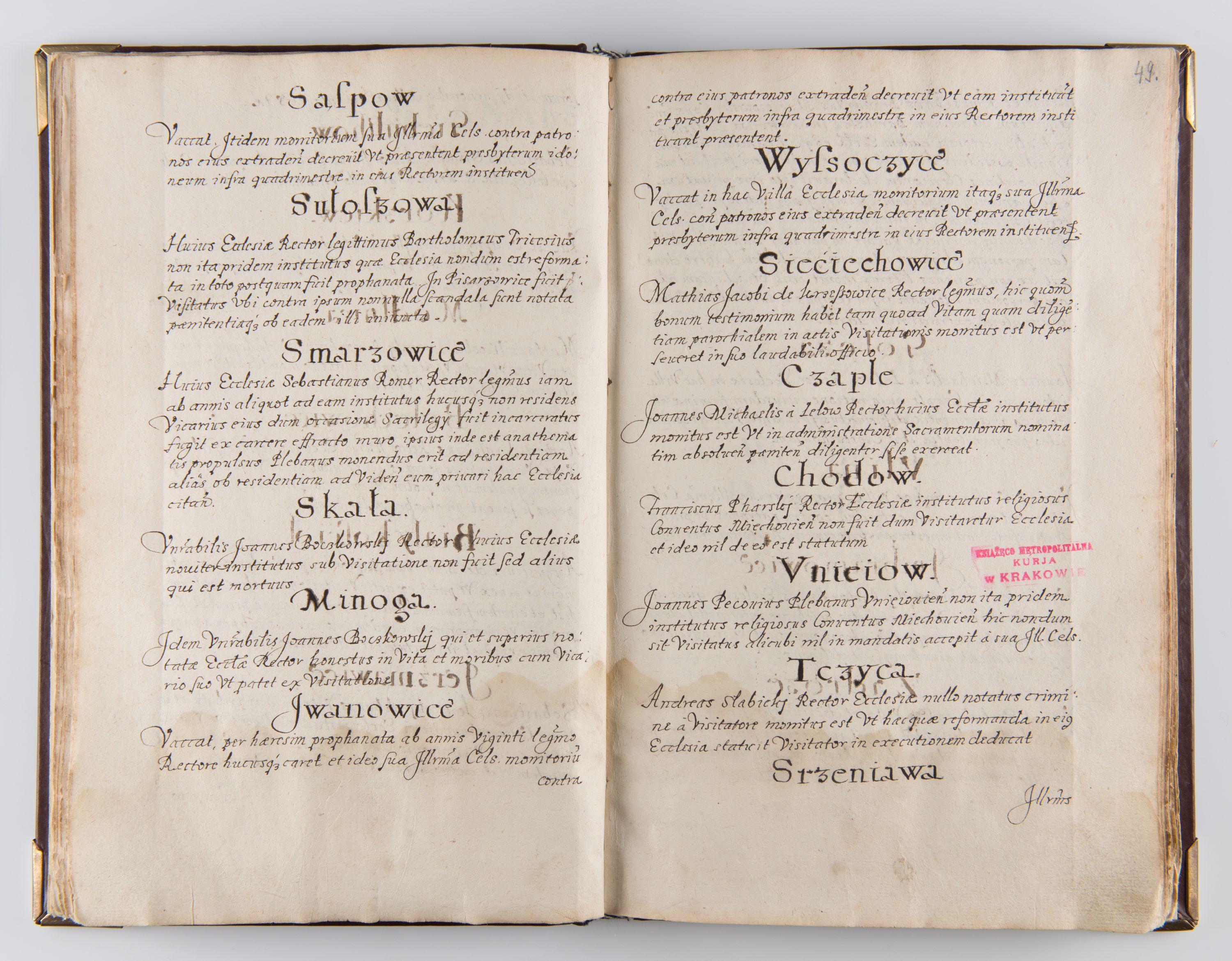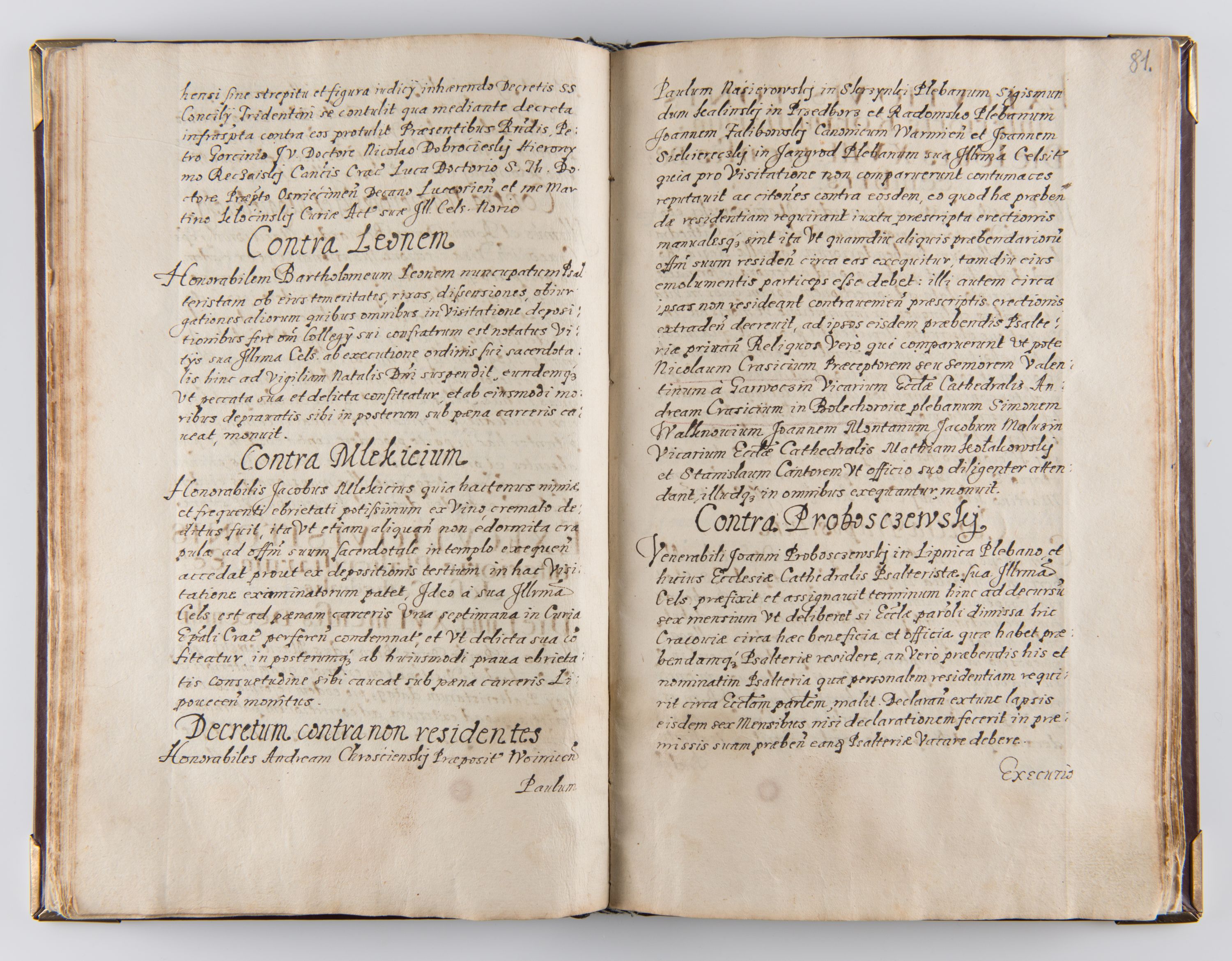 Liber continens decreta executiva visitationum et alia ad correctionem et reformationem vitae et morum cleri pertinentia tempore fel. rec. R.D. Bernardi Maciejowski Cardinalis et episcopi Cracoviensis ac ducis Severiensis conscripta ex annis 1601 et sequent