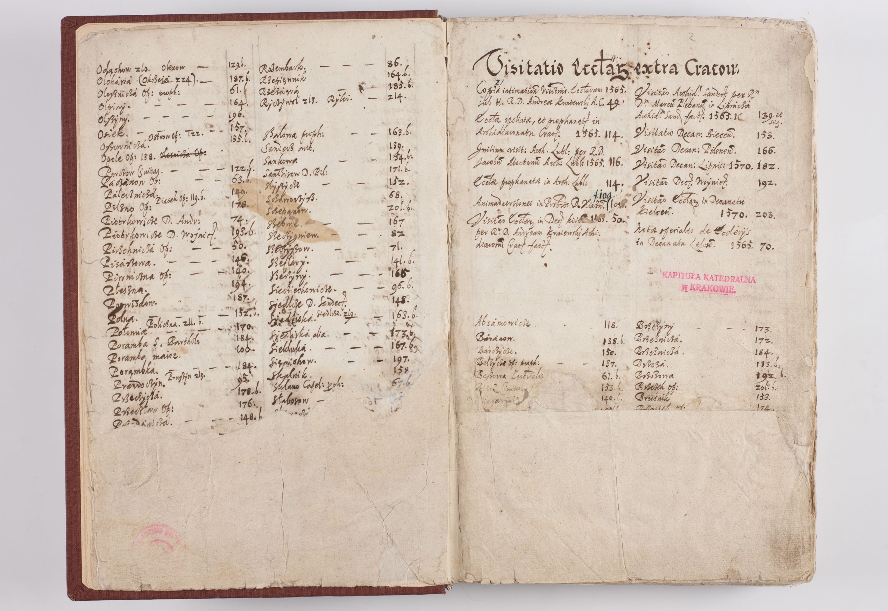 Liber visitationis ecclesiarum in civitate ac Dioecesi Cracoviensi consistentium... Philippi Padniwski Ep. Crac. 1565.