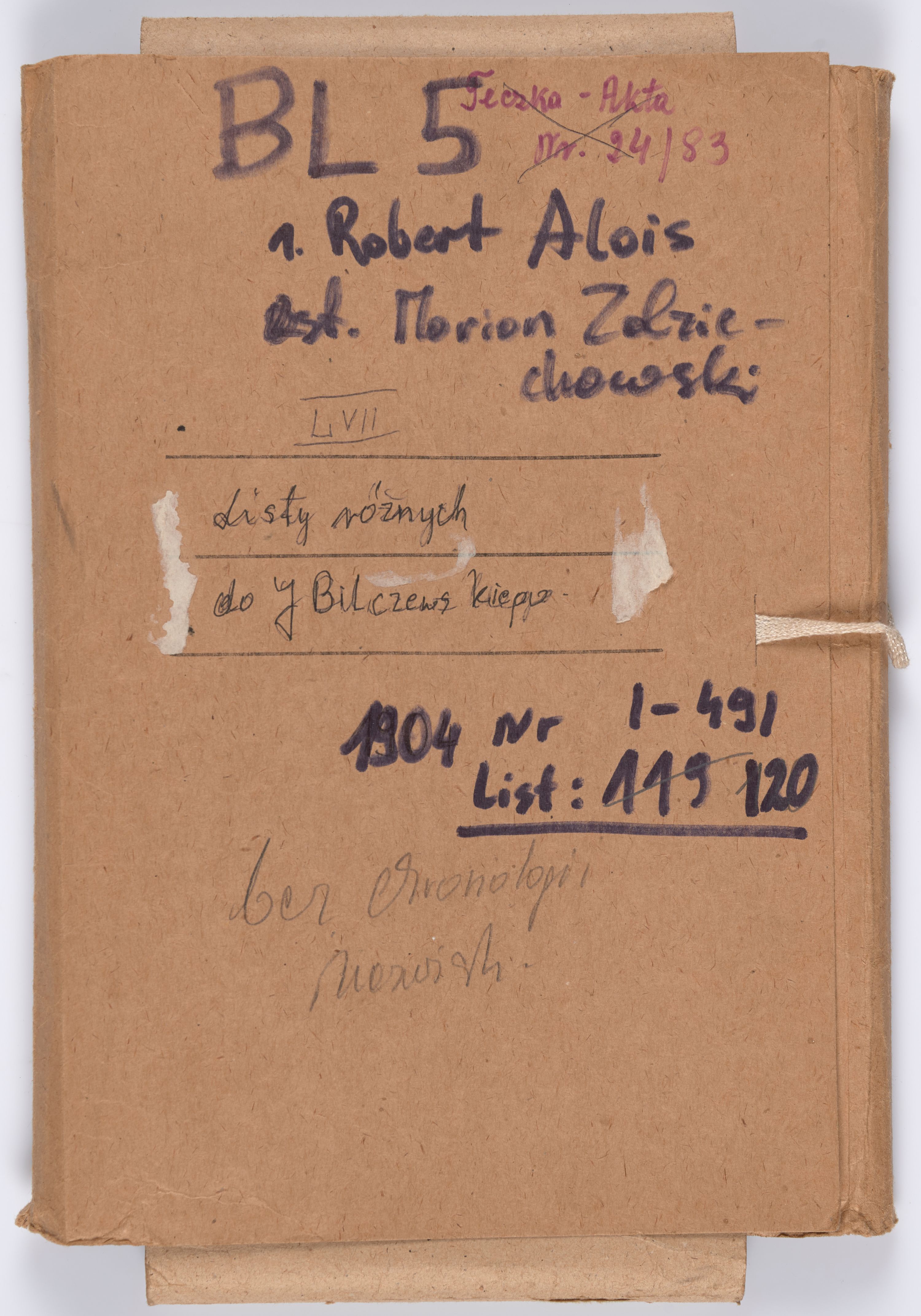 Kolekcję otwiera list od: br. Roberta Aloisa (nr 1-4); ostatnim jest list od: Mariana Zdziechowskiego (nr 488-491)