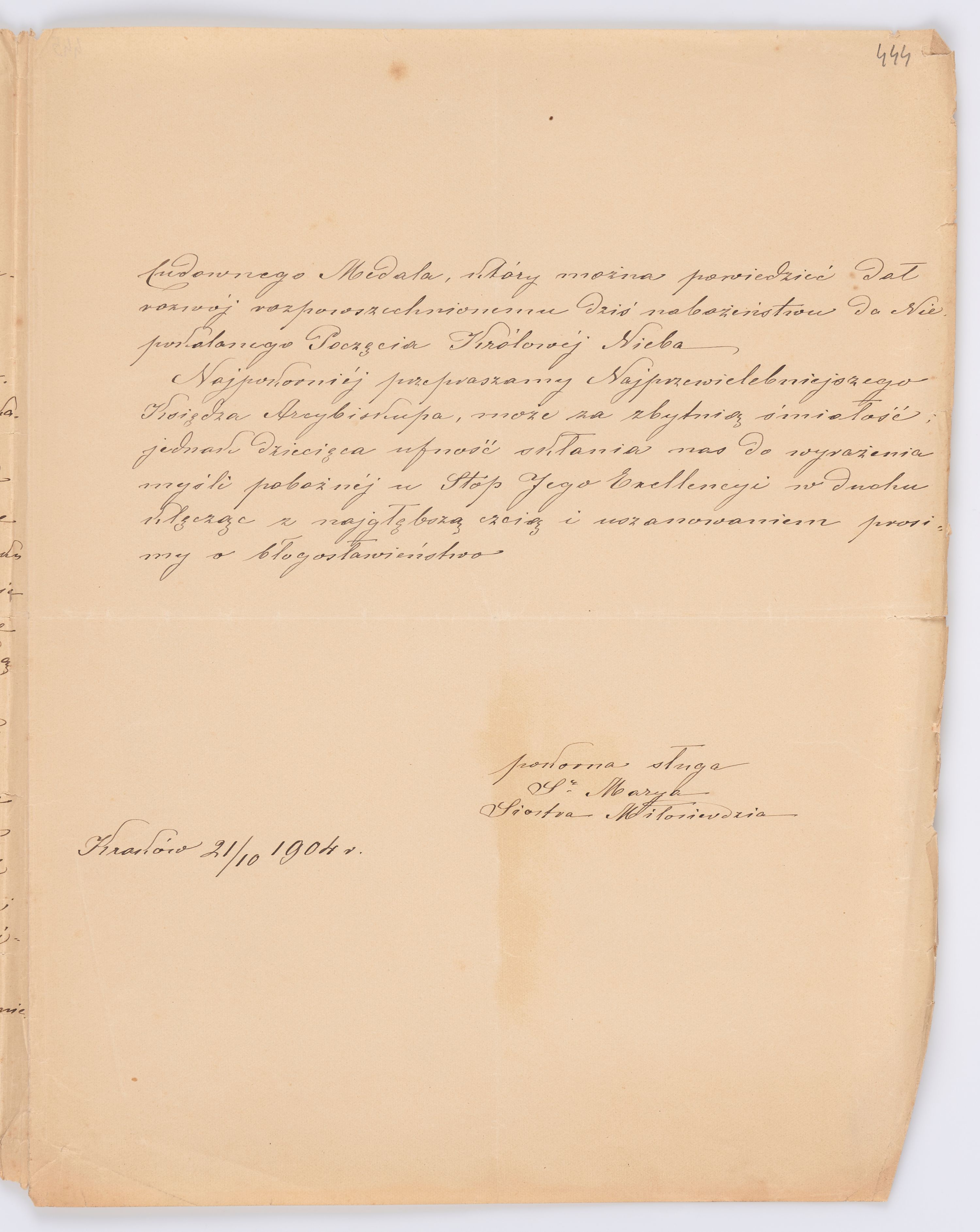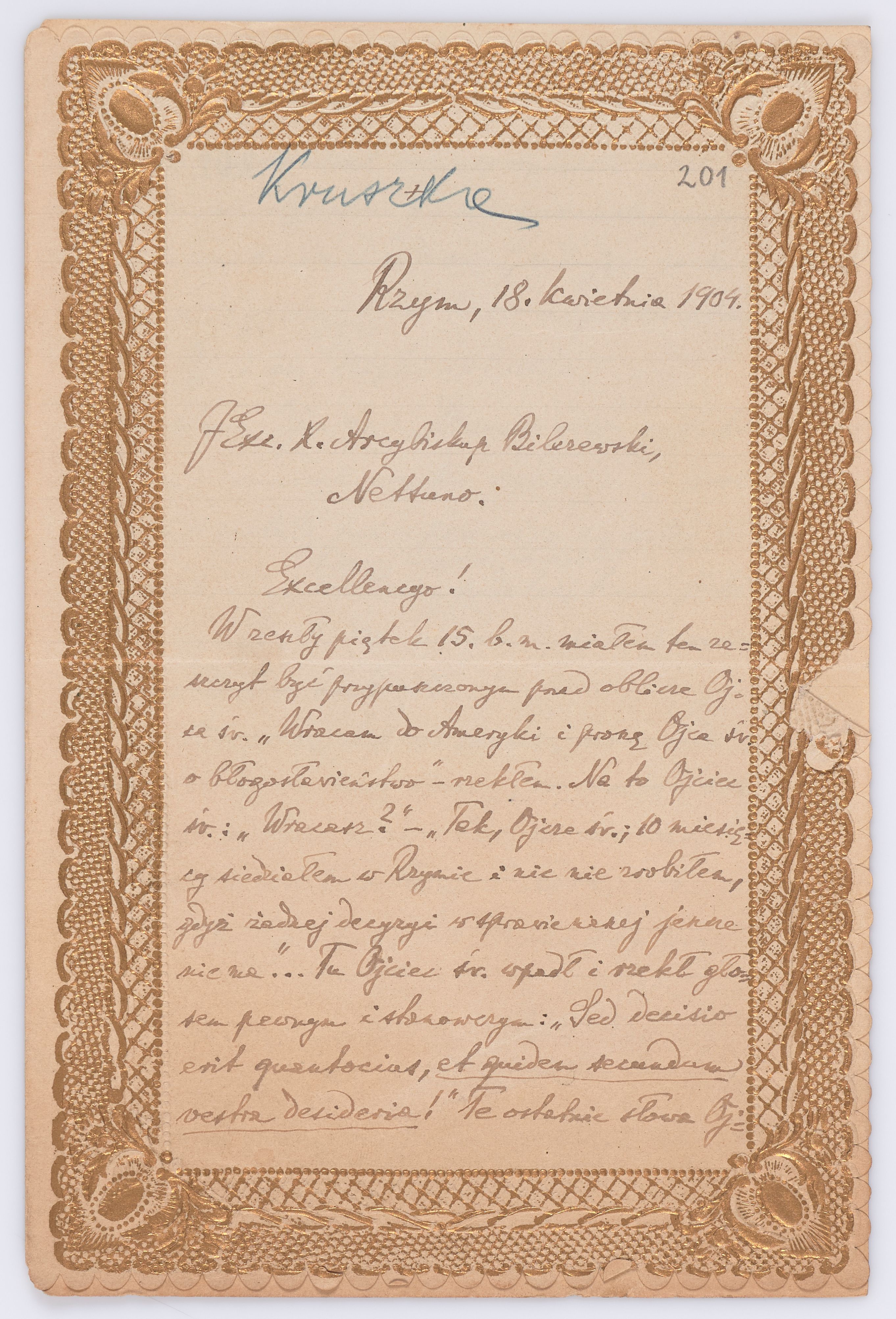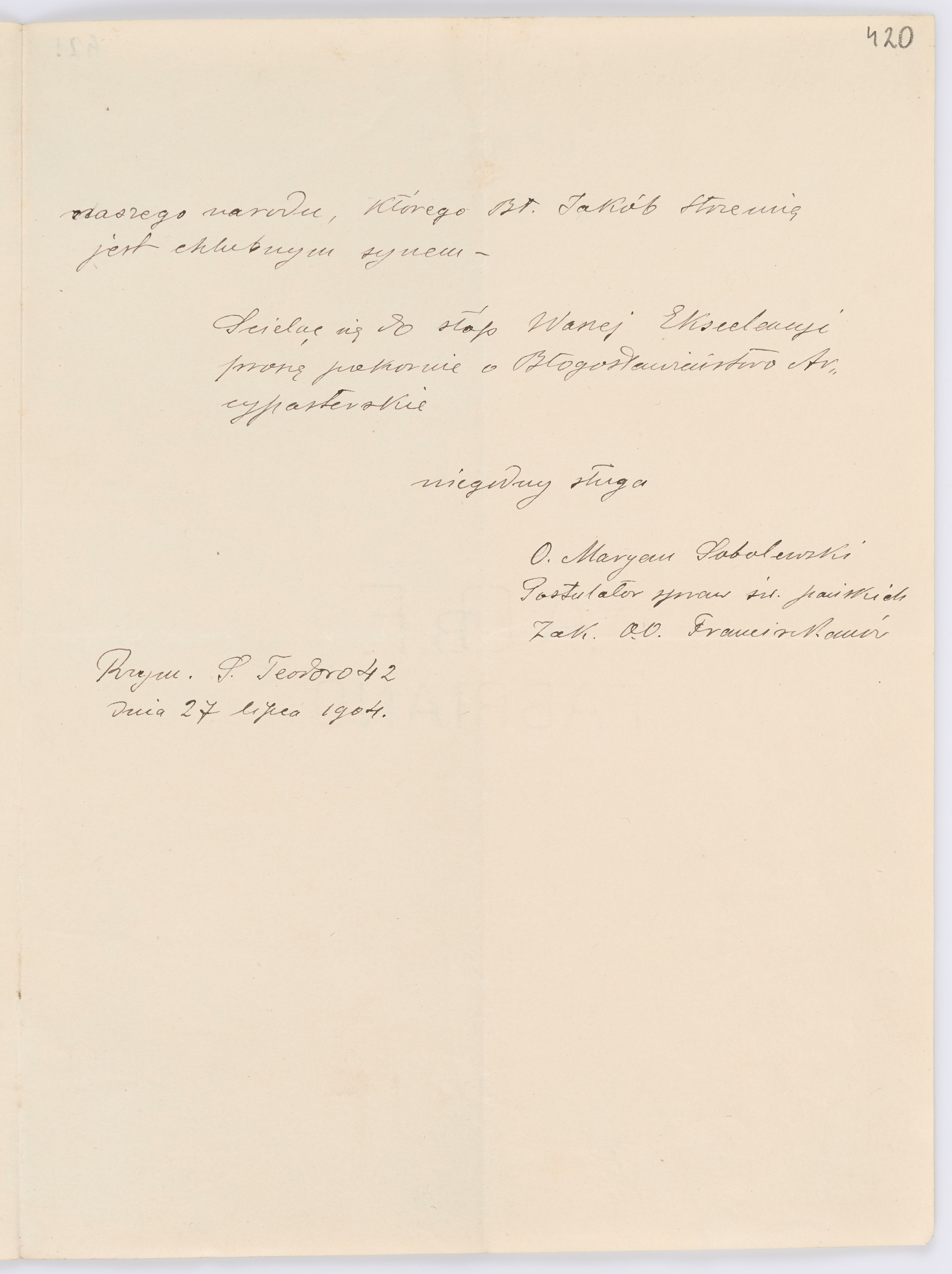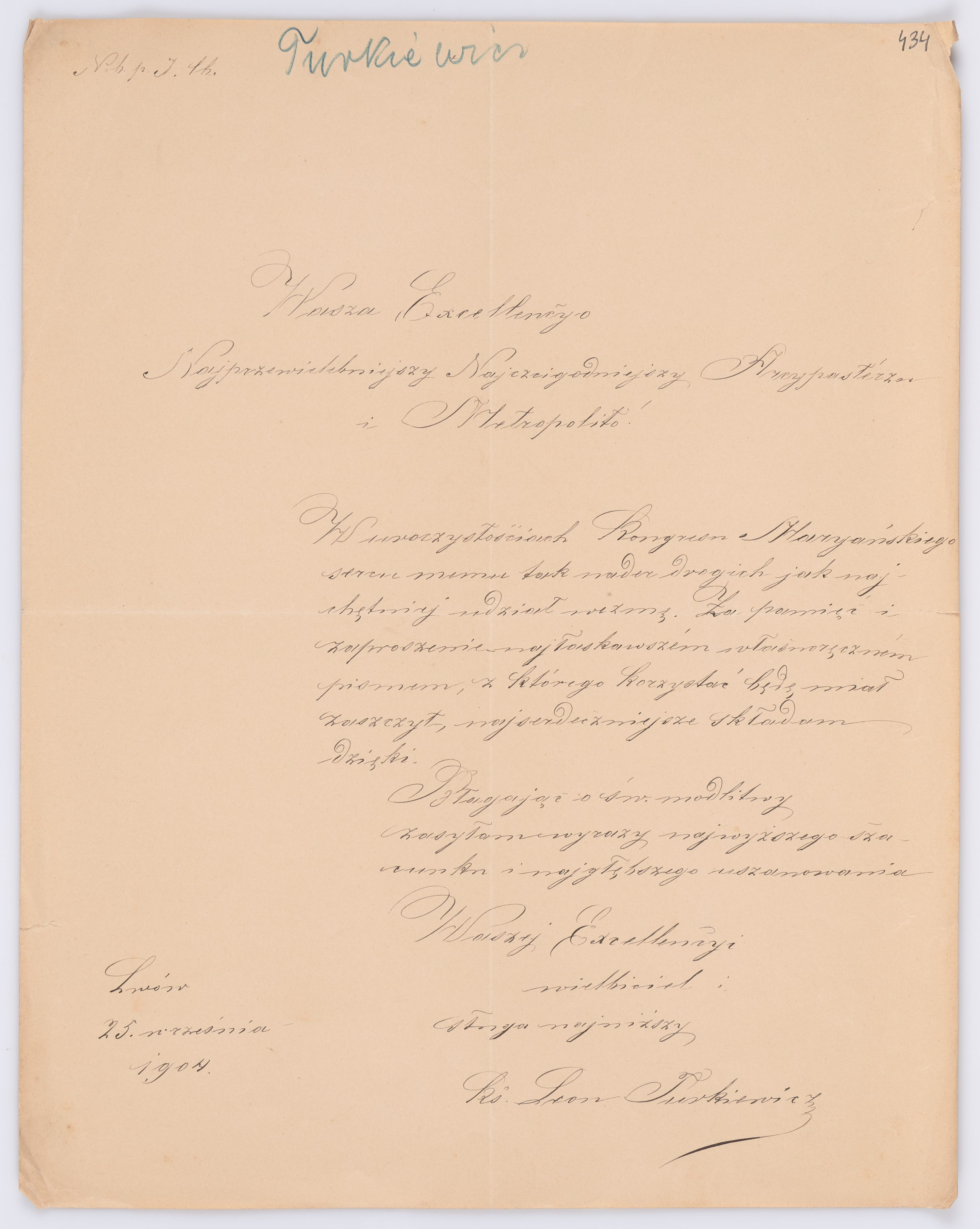 Jednostka zawiera kolekcję 120 listów kierowanych w roku 1904 (01.01.1904-31.12.1904) do arcybiskupa ks. Józefa Bilczewskiego.