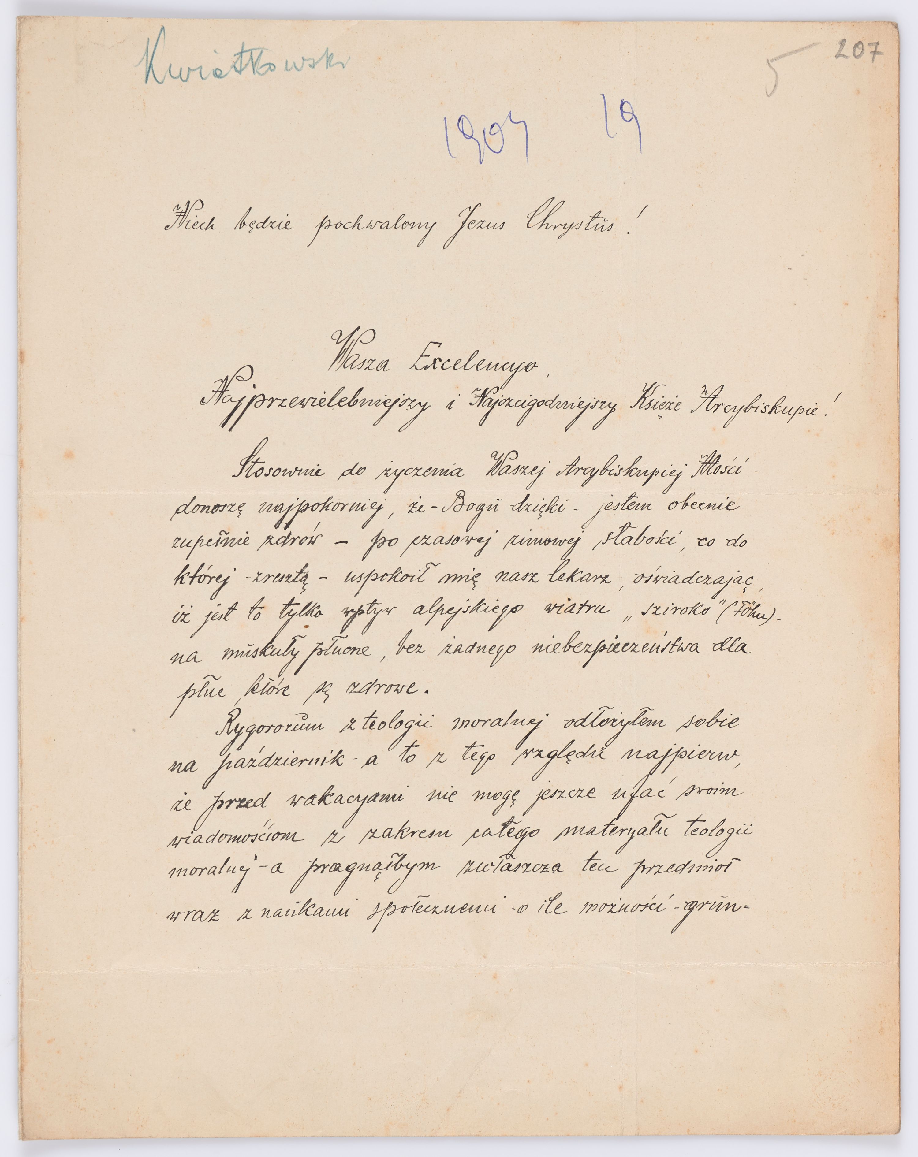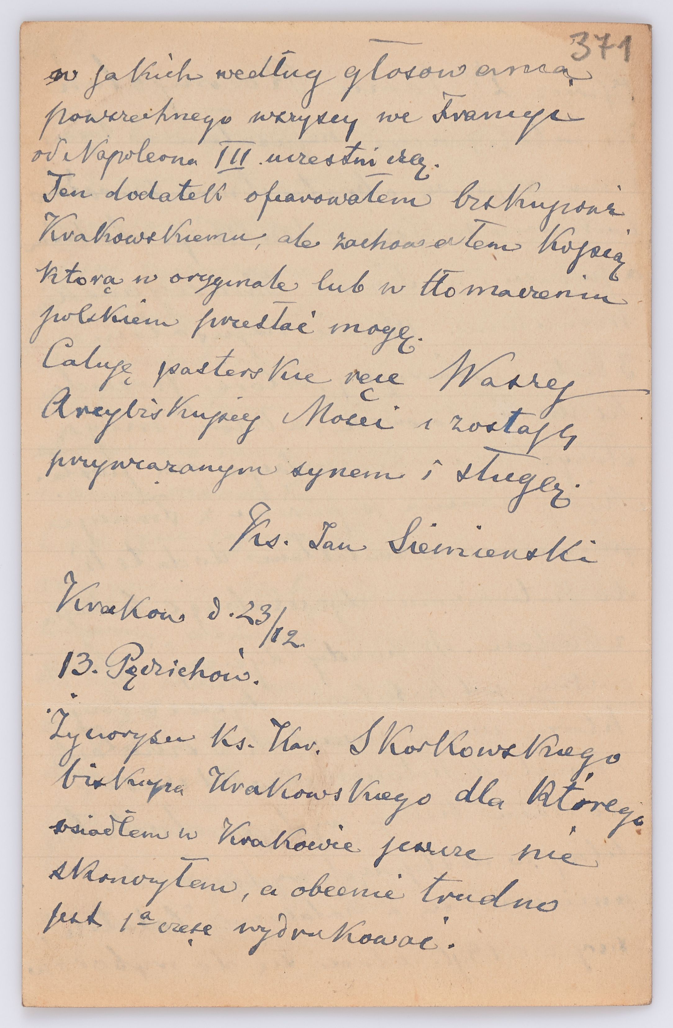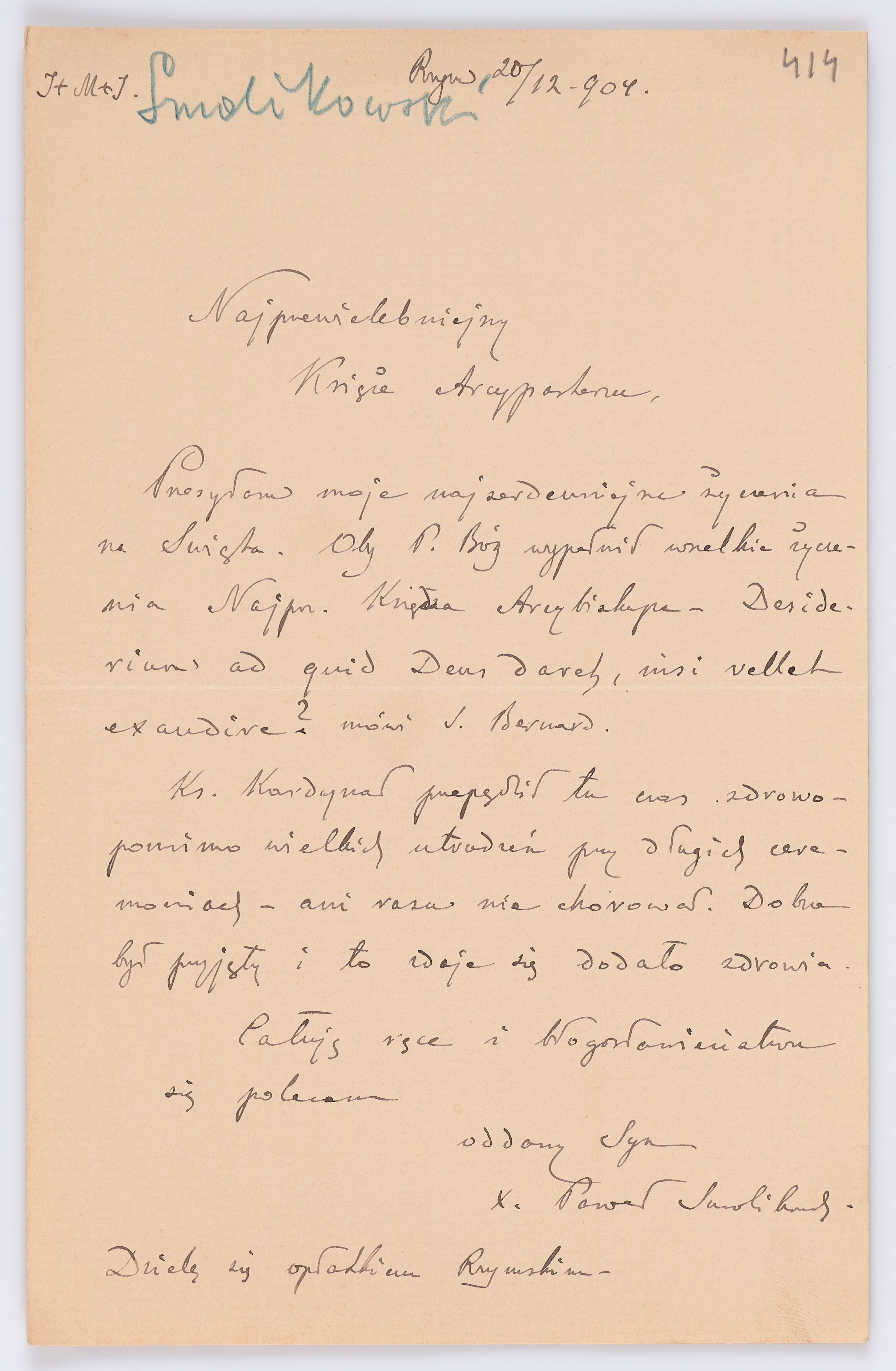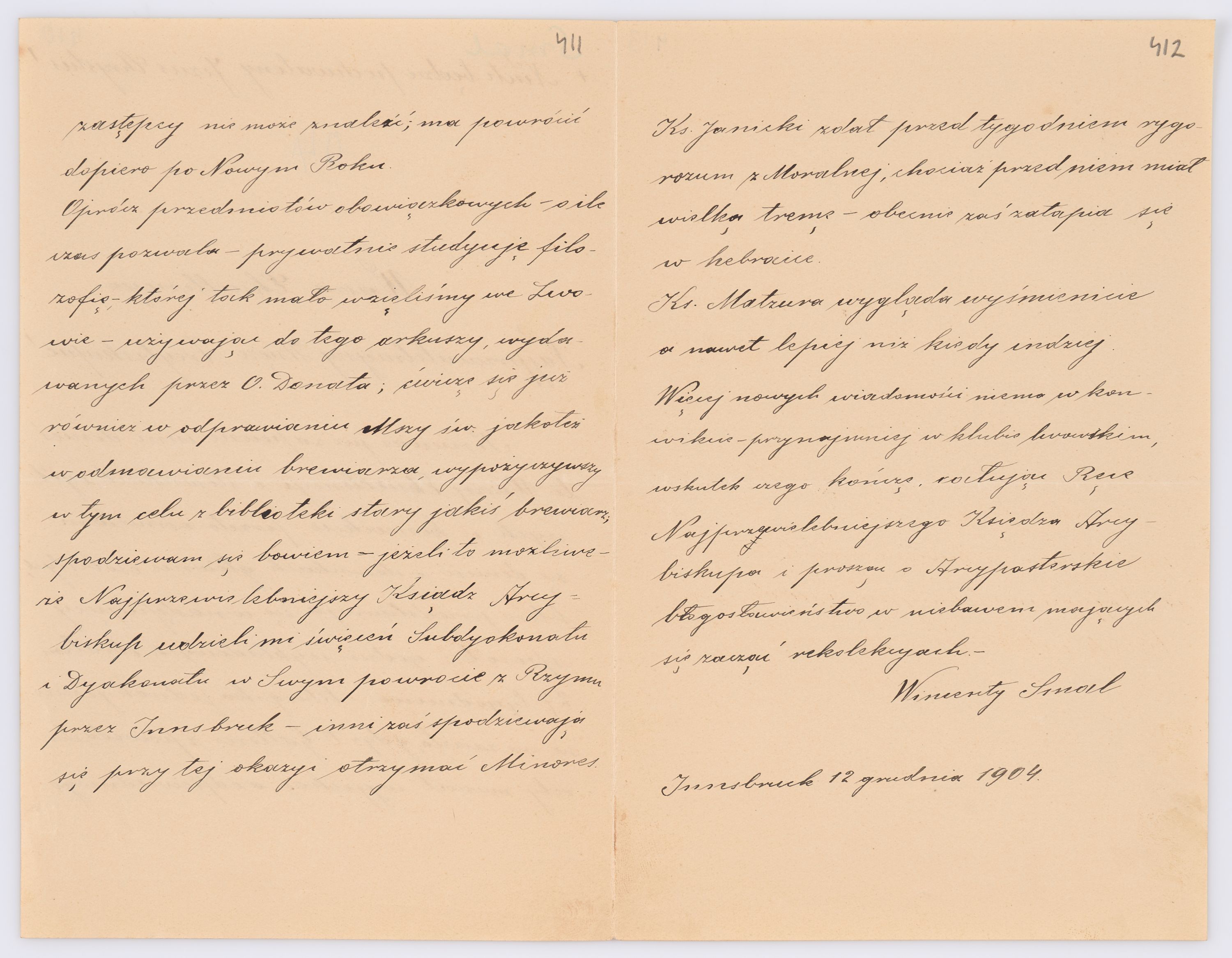 Jednostka zawiera kolekcję 120 listów kierowanych w roku 1904 (01.01.1904-31.12.1904) do arcybiskupa ks. Józefa Bilczewskiego.