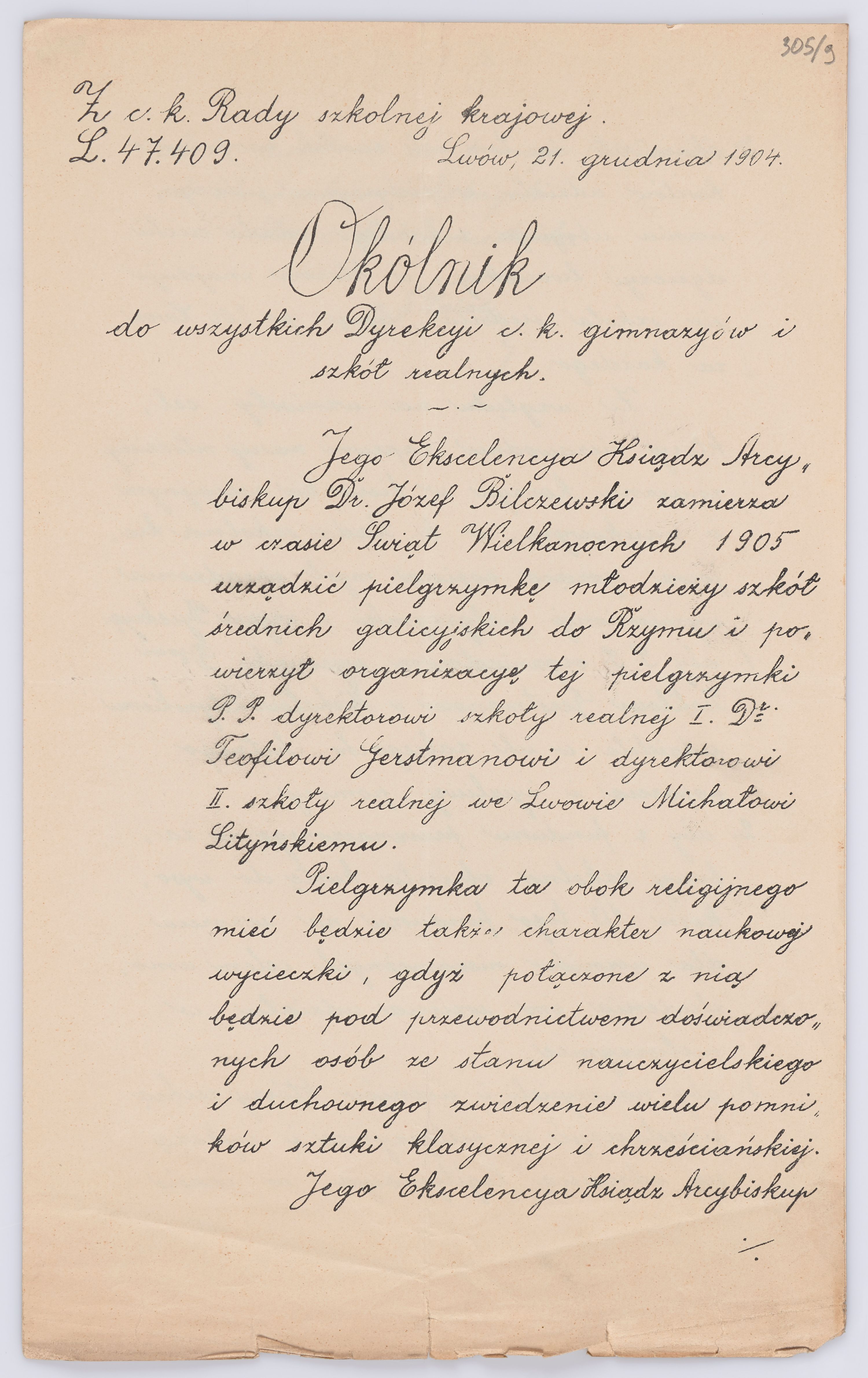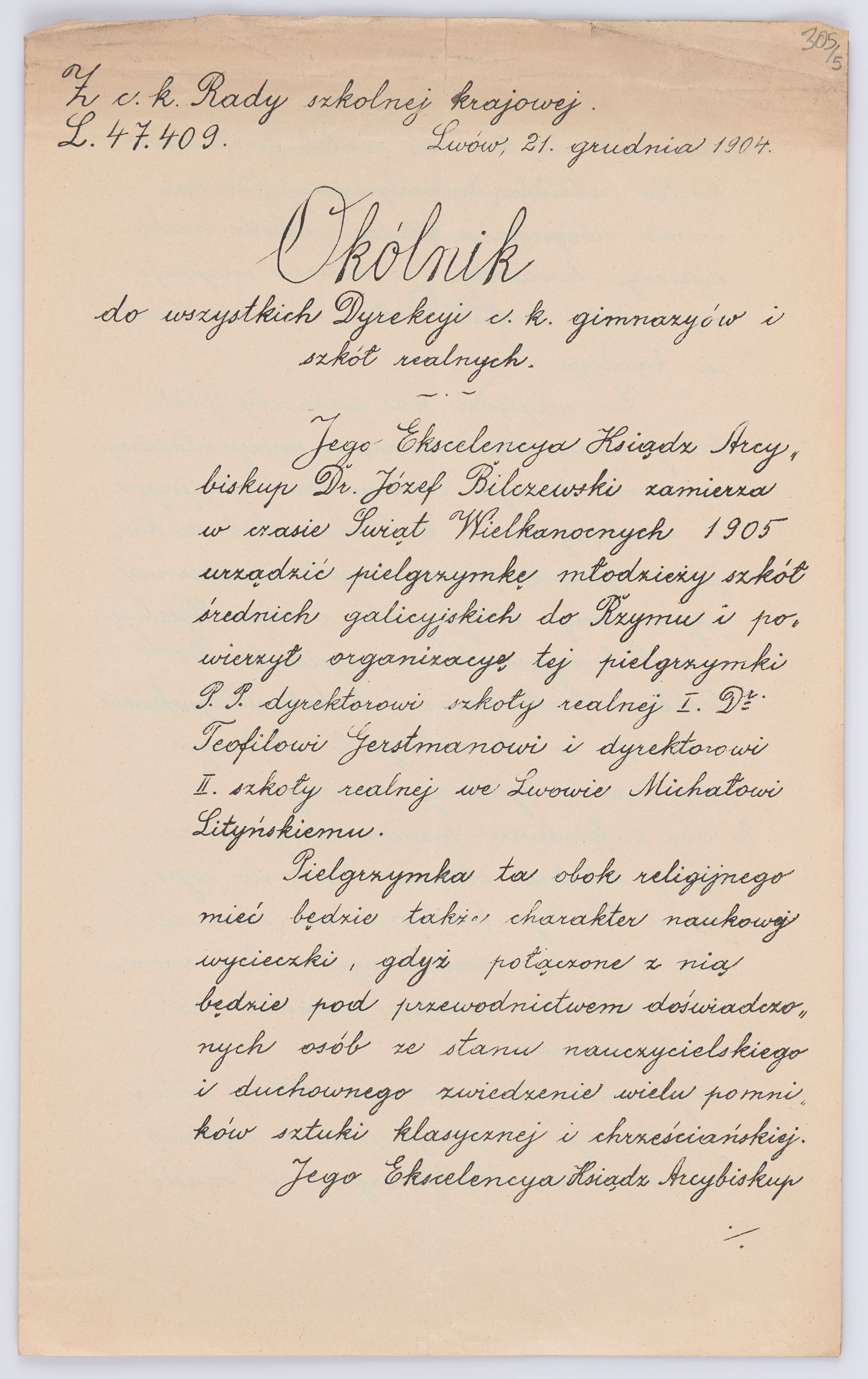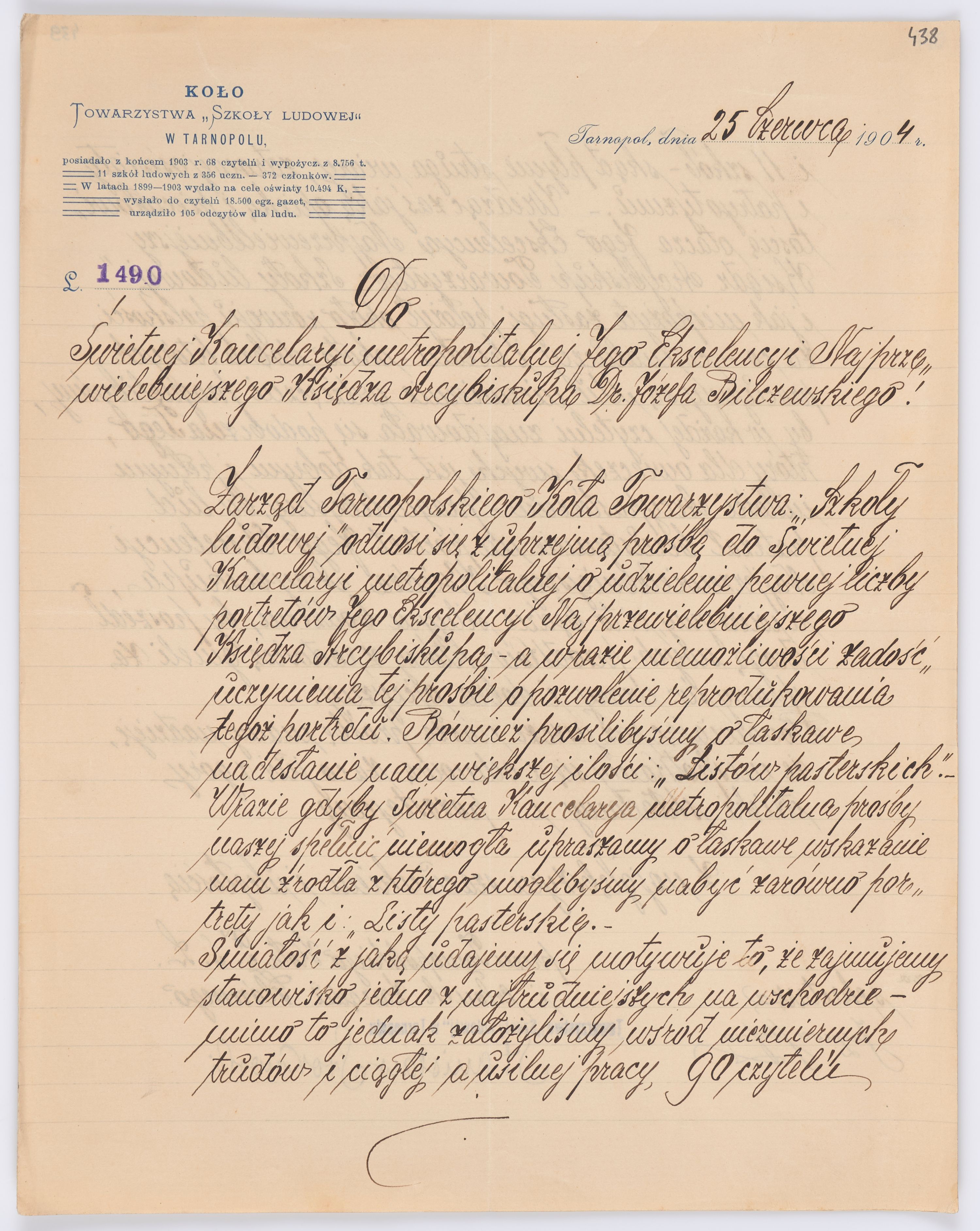 Listy kierowane do Józefa Bilczewskiego w roku 1904