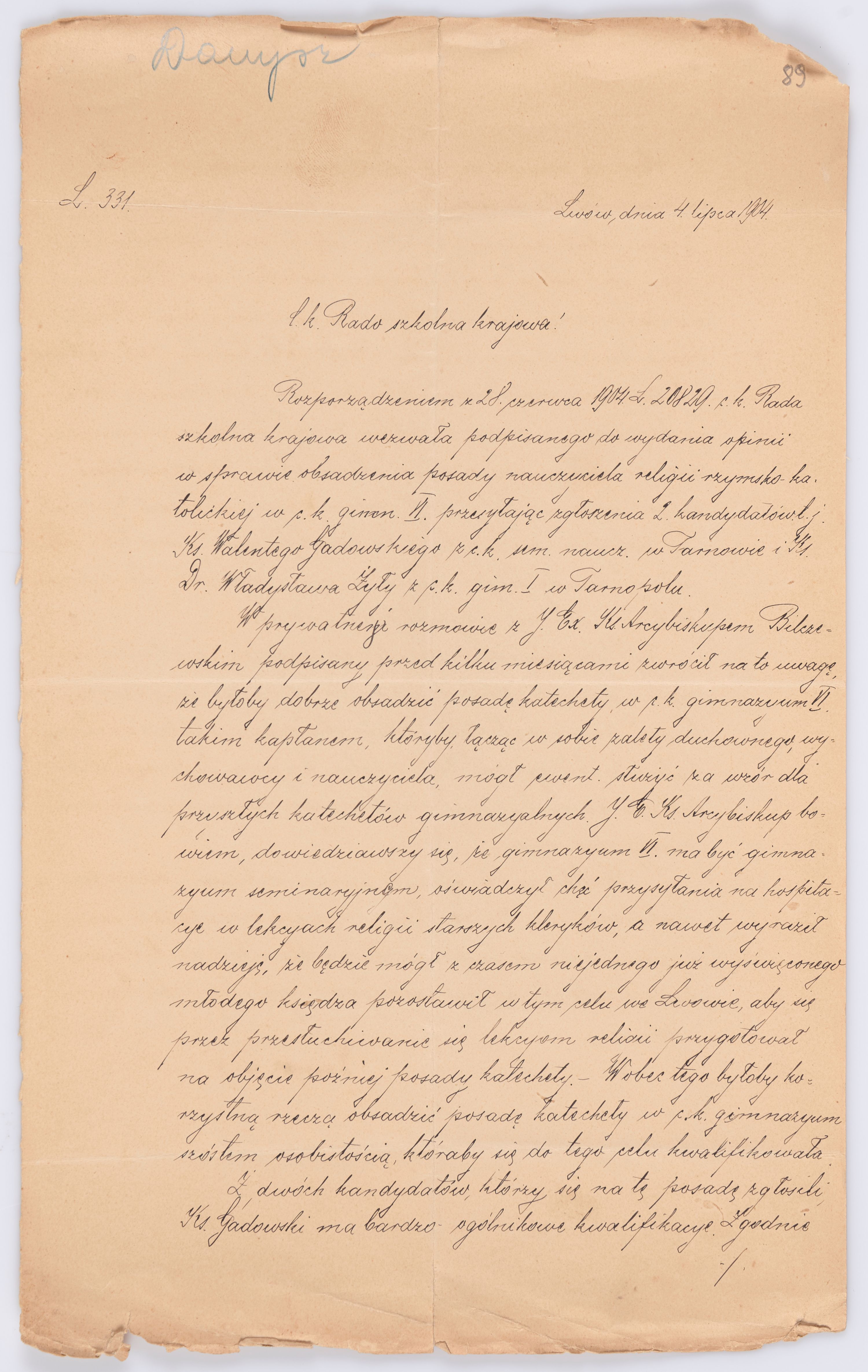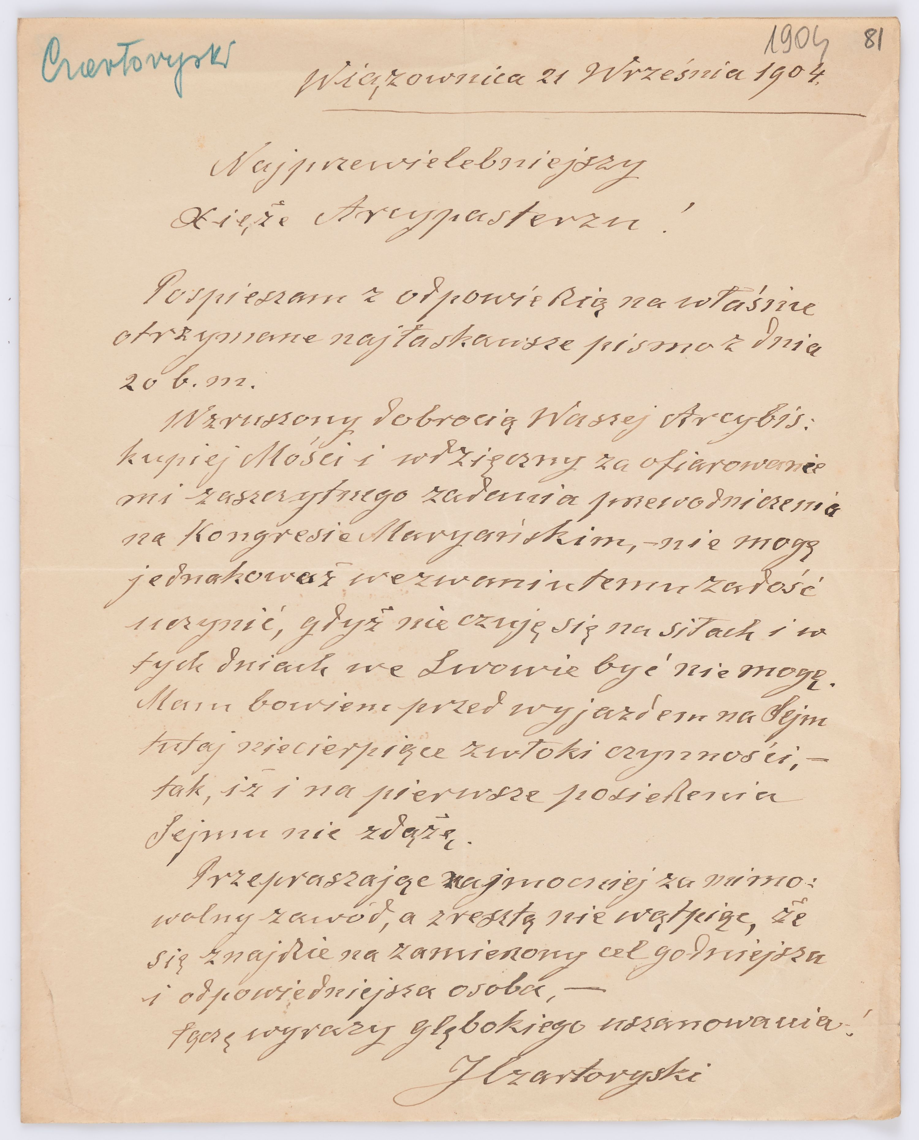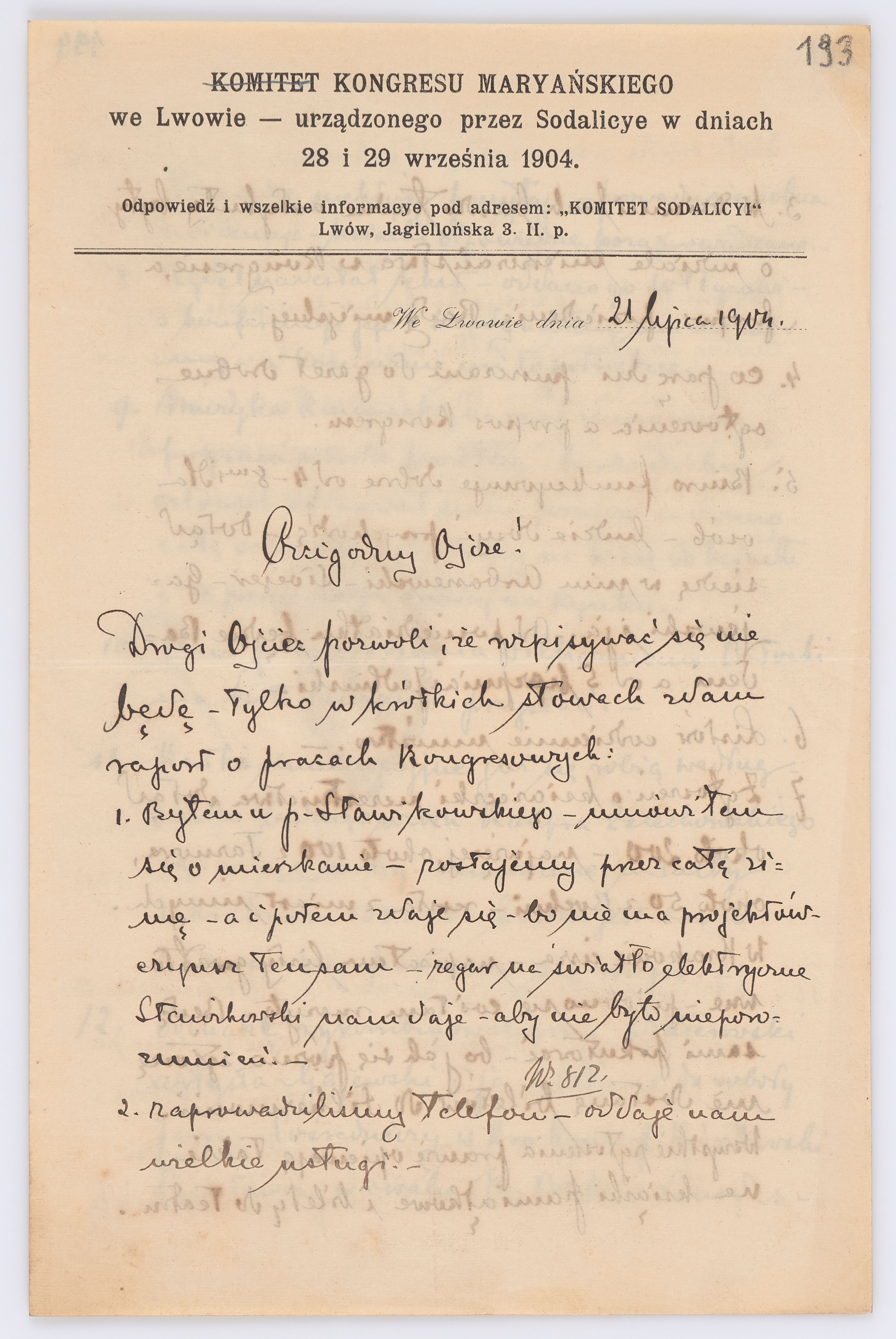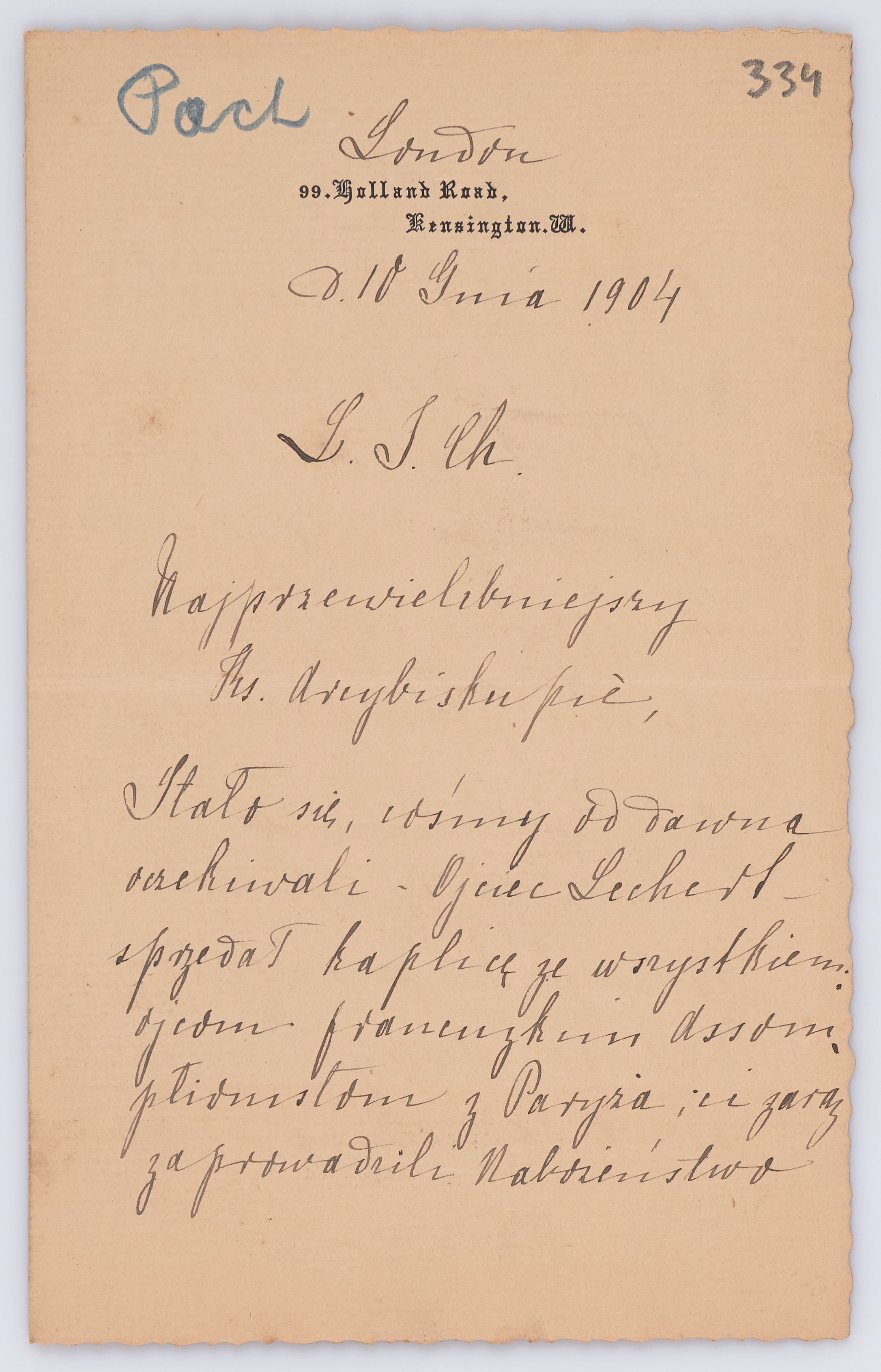 Listy kierowane do Józefa Bilczewskiego w roku 1904