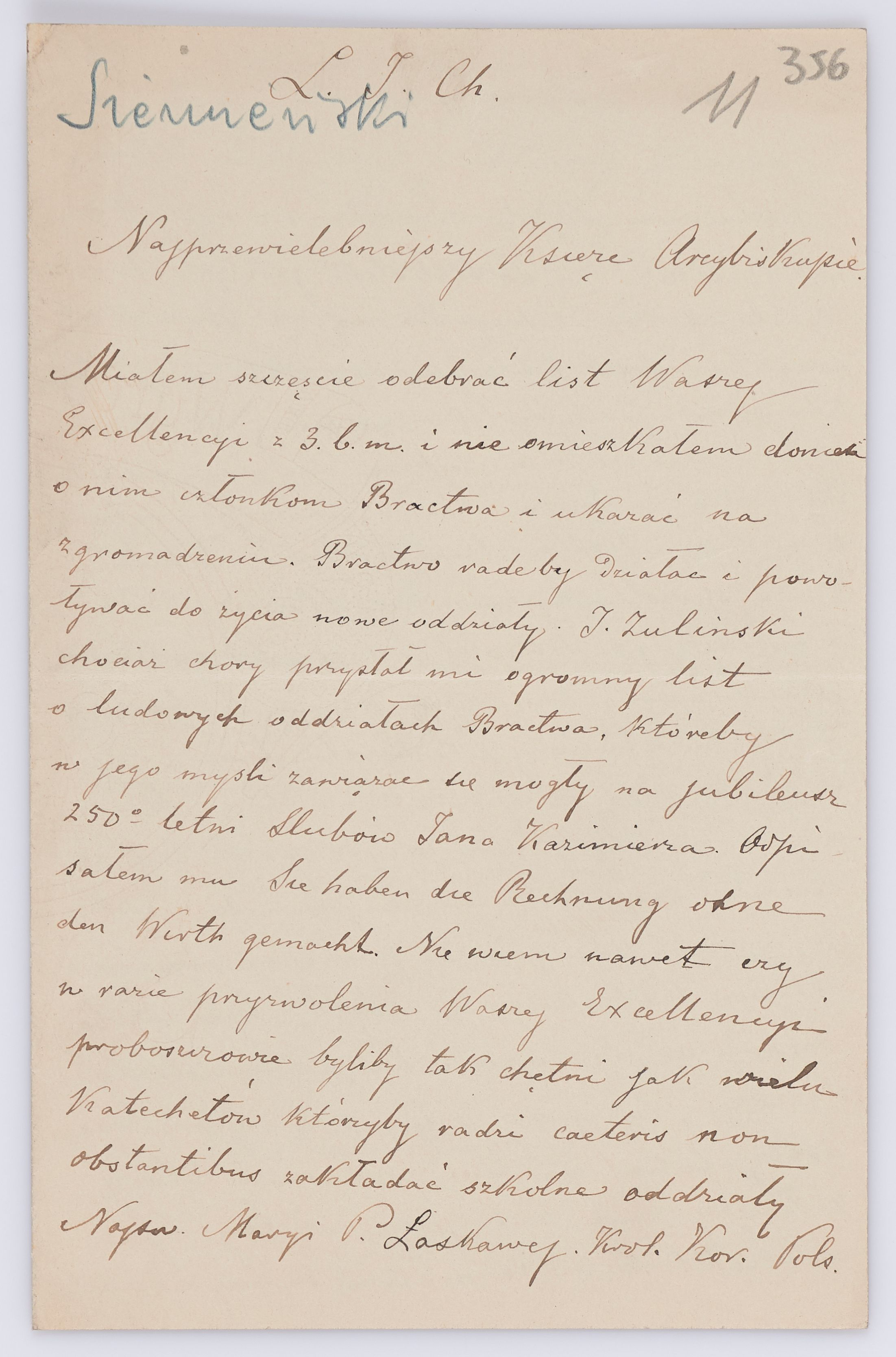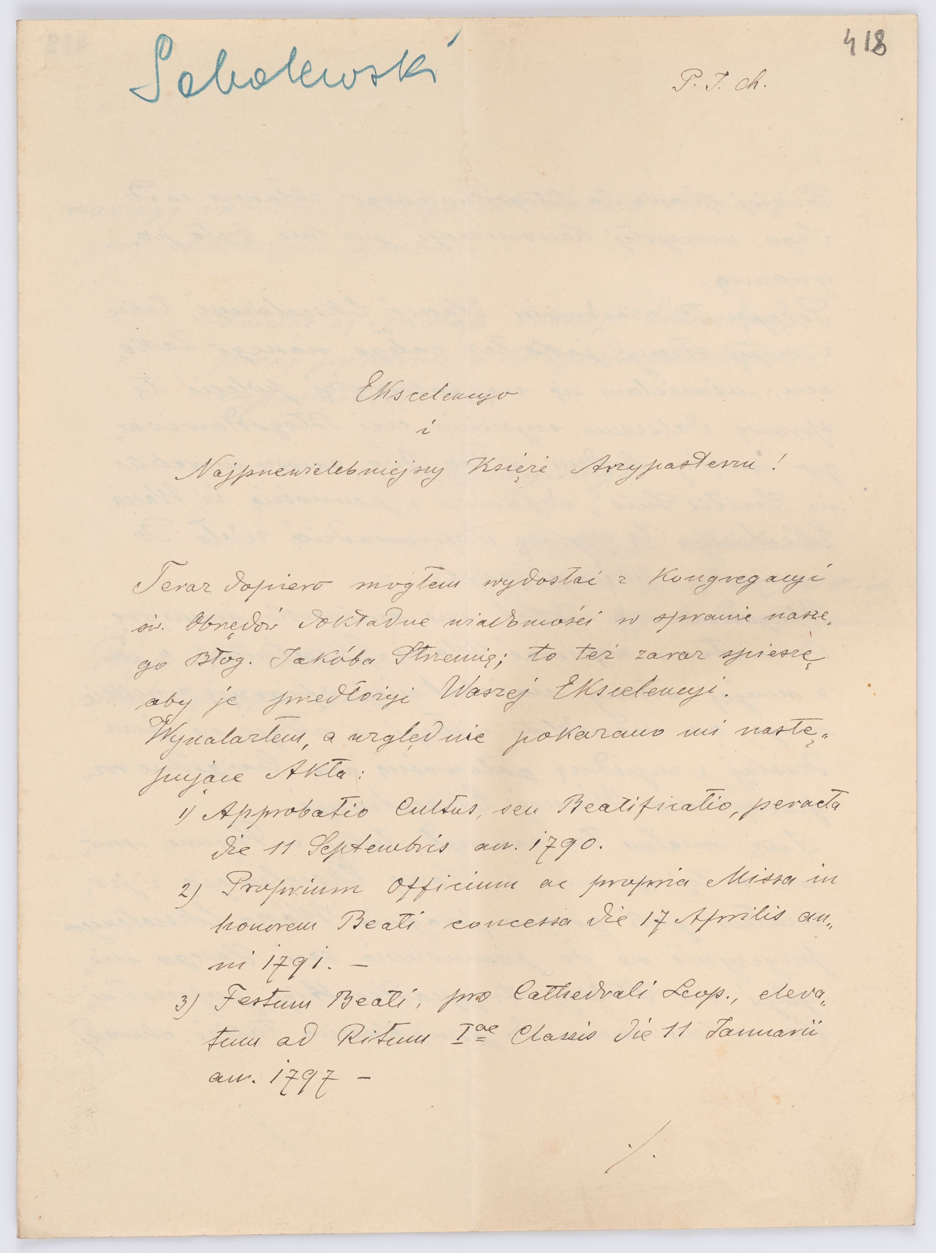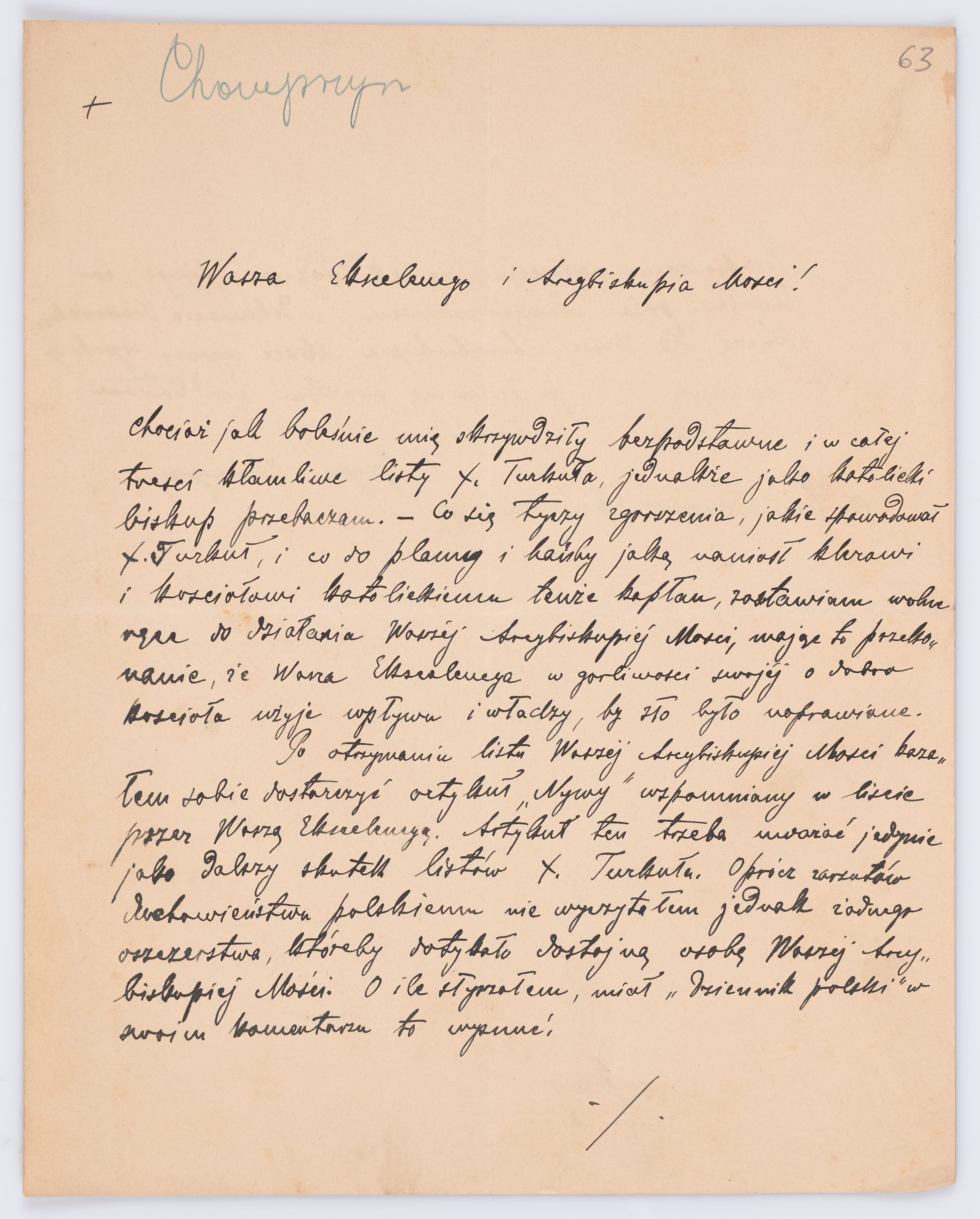 Adresatem wszystkich listów jest św. Józef Bilczewski (1860-1923), arcybiskup lwowski obrządku łacińskiego (1901-1923). Św. Józef Bilczewski powszechnie znany jest z działalności duszpasterskiej, administracyjnej i patriotycznej, którą prowadził przewodząc archidiecezji lwowskiej przez 23 lata, jego zasługi na tym polu są niepodważalne, a świadectwem aktywności tych działań jest właśnie bogata korespondencja z tego okresu.