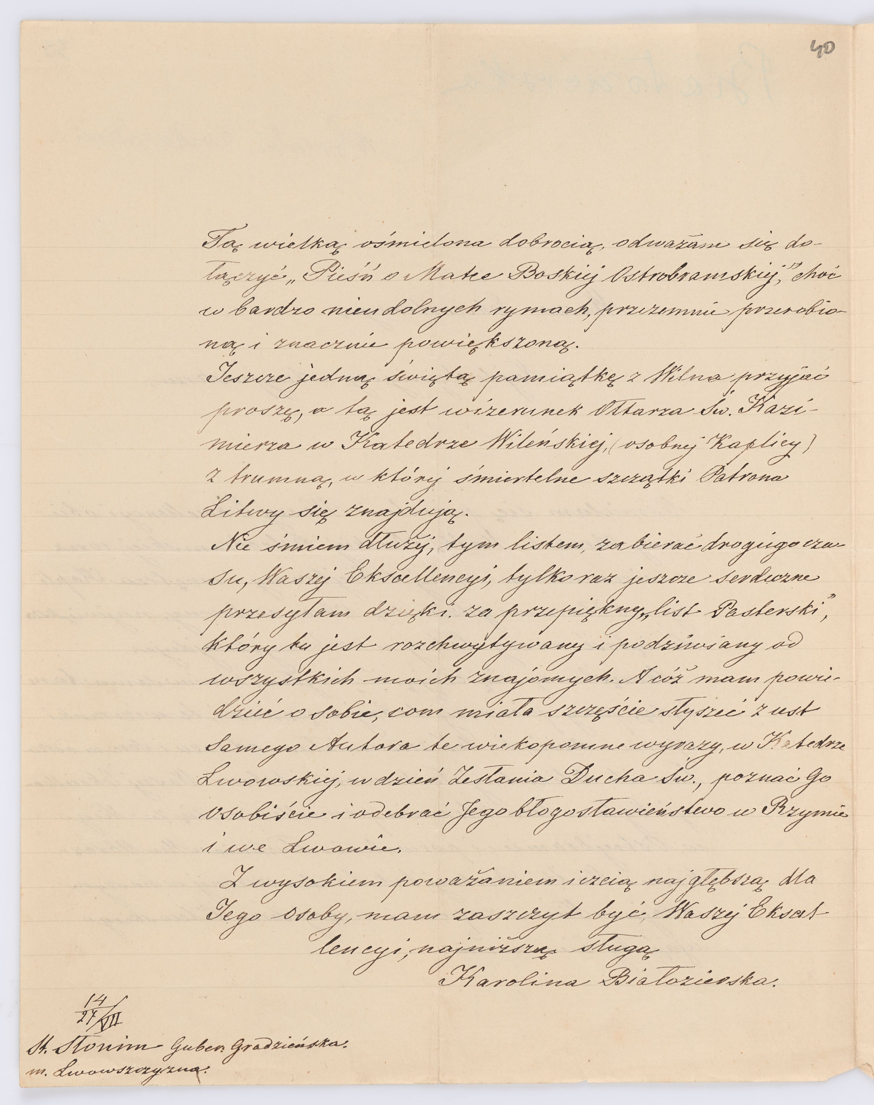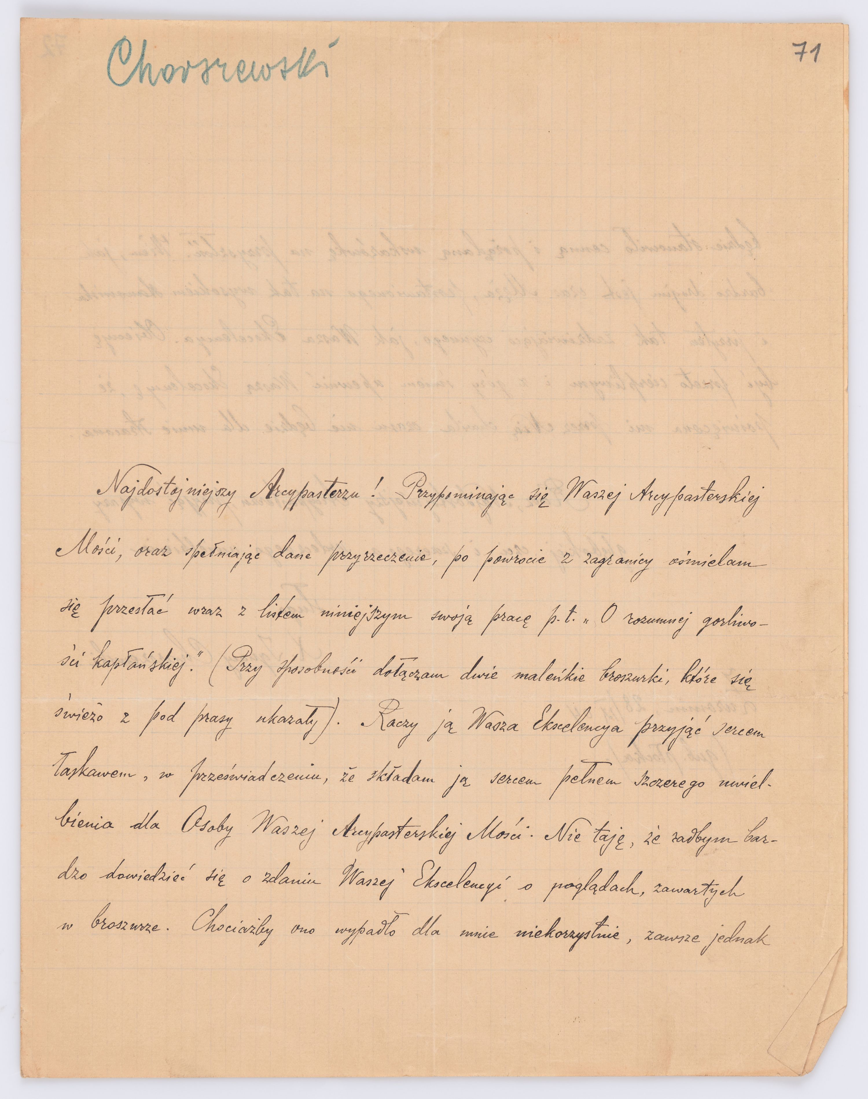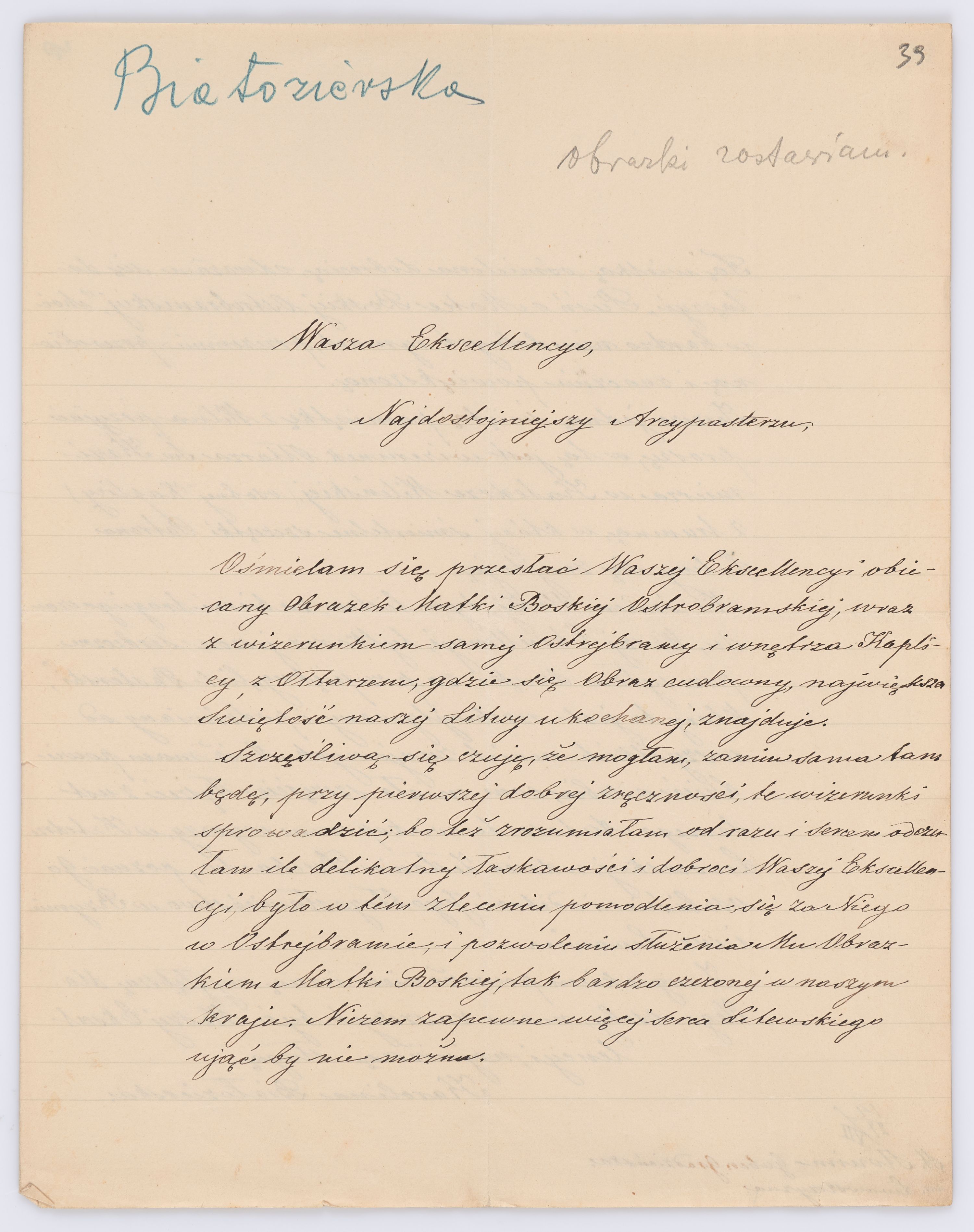 Adresatem wszystkich listów jest św. Józef Bilczewski (1860-1923), arcybiskup lwowski obrządku łacińskiego (1901-1923). Św. Józef Bilczewski powszechnie znany jest z działalności duszpasterskiej, administracyjnej i patriotycznej, którą prowadził przewodząc archidiecezji lwowskiej przez 23 lata, jego zasługi na tym polu są niepodważalne, a świadectwem aktywności tych działań jest właśnie bogata korespondencja z tego okresu.