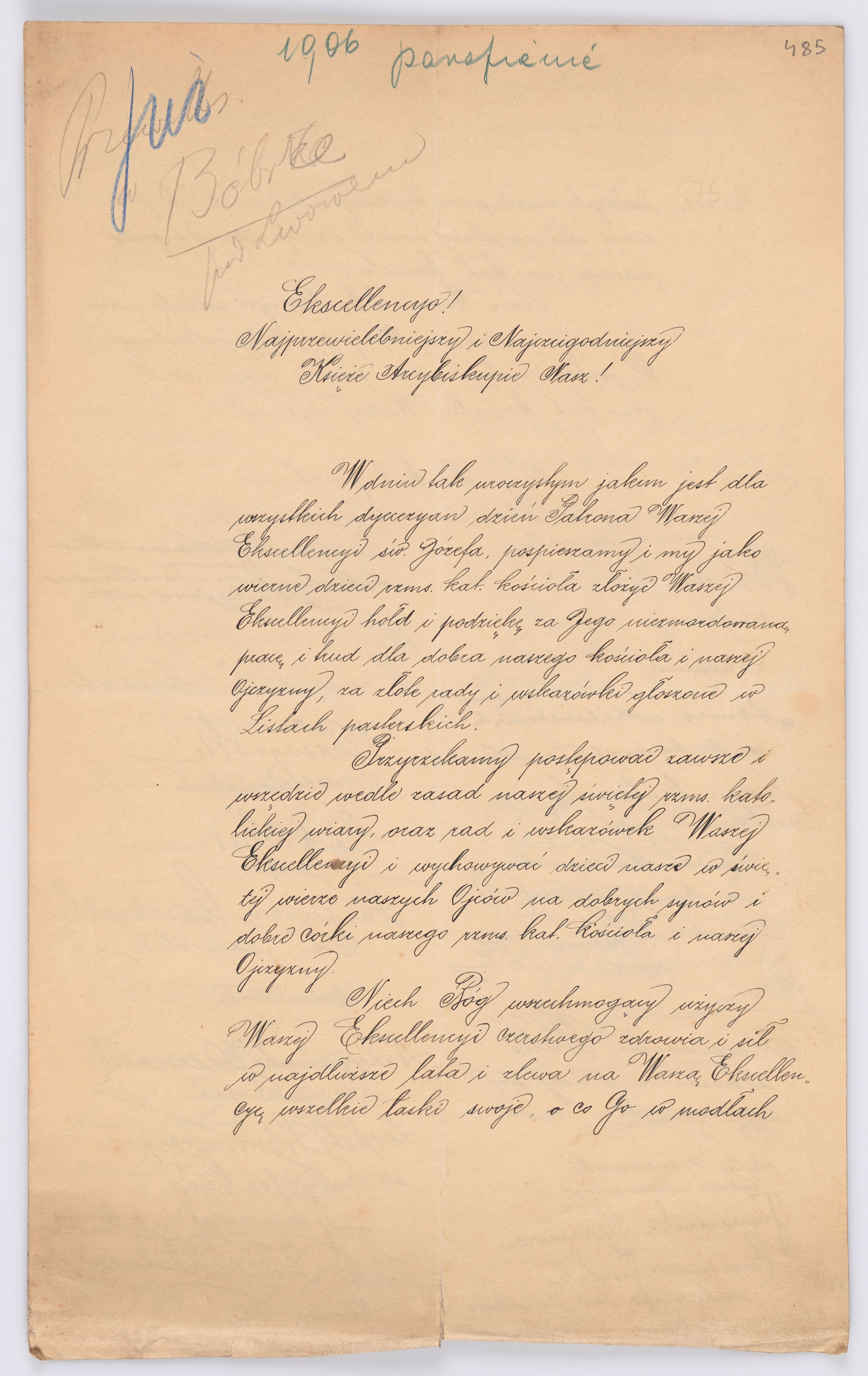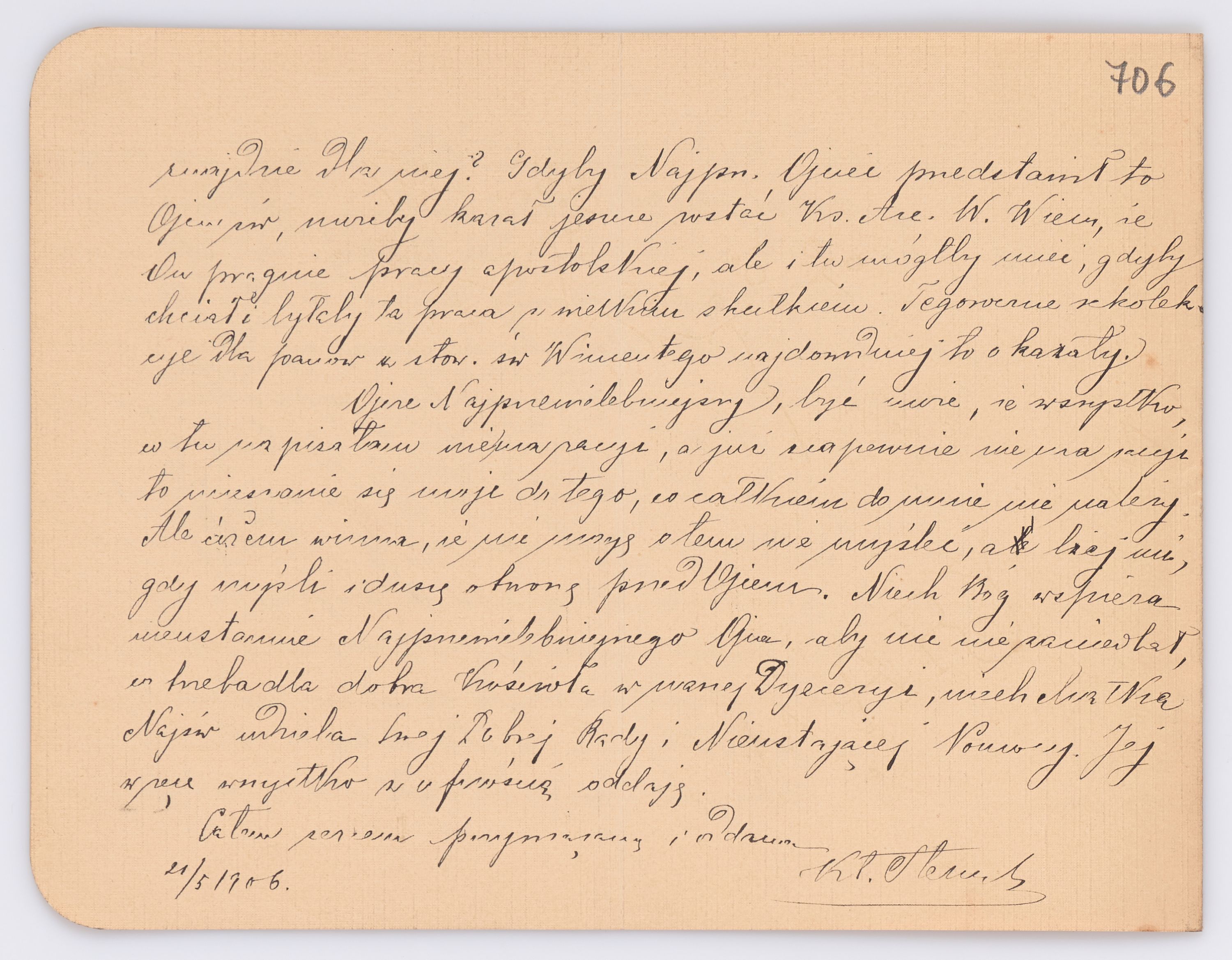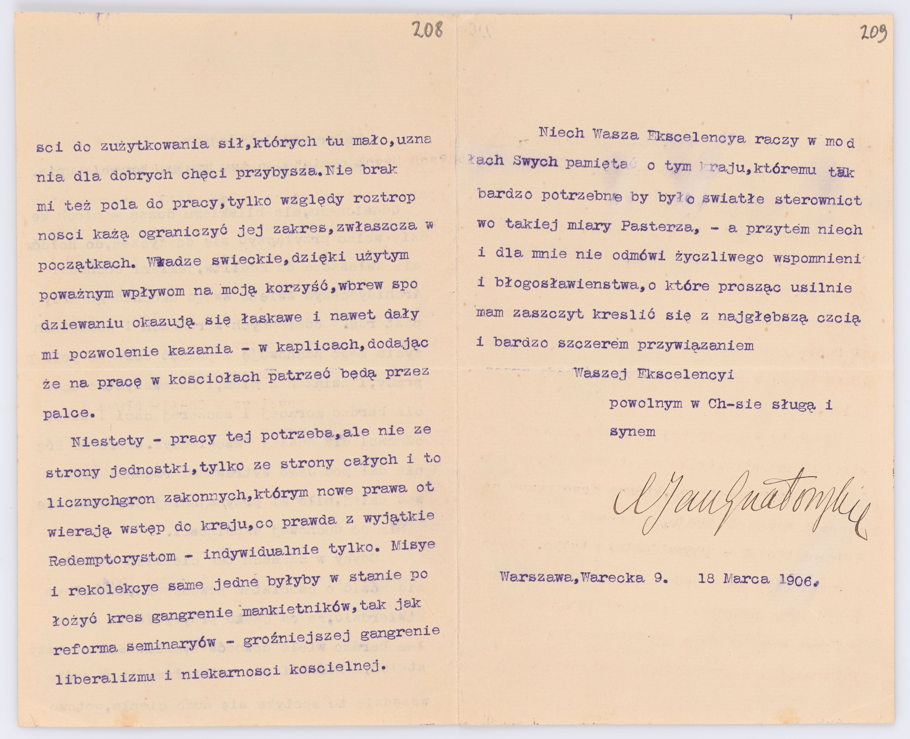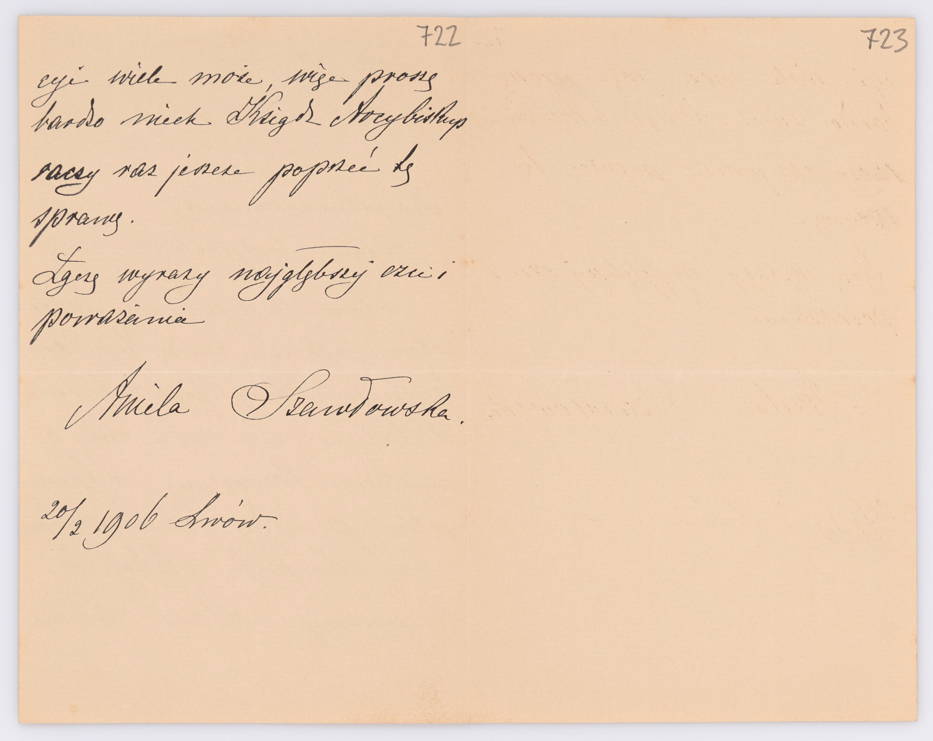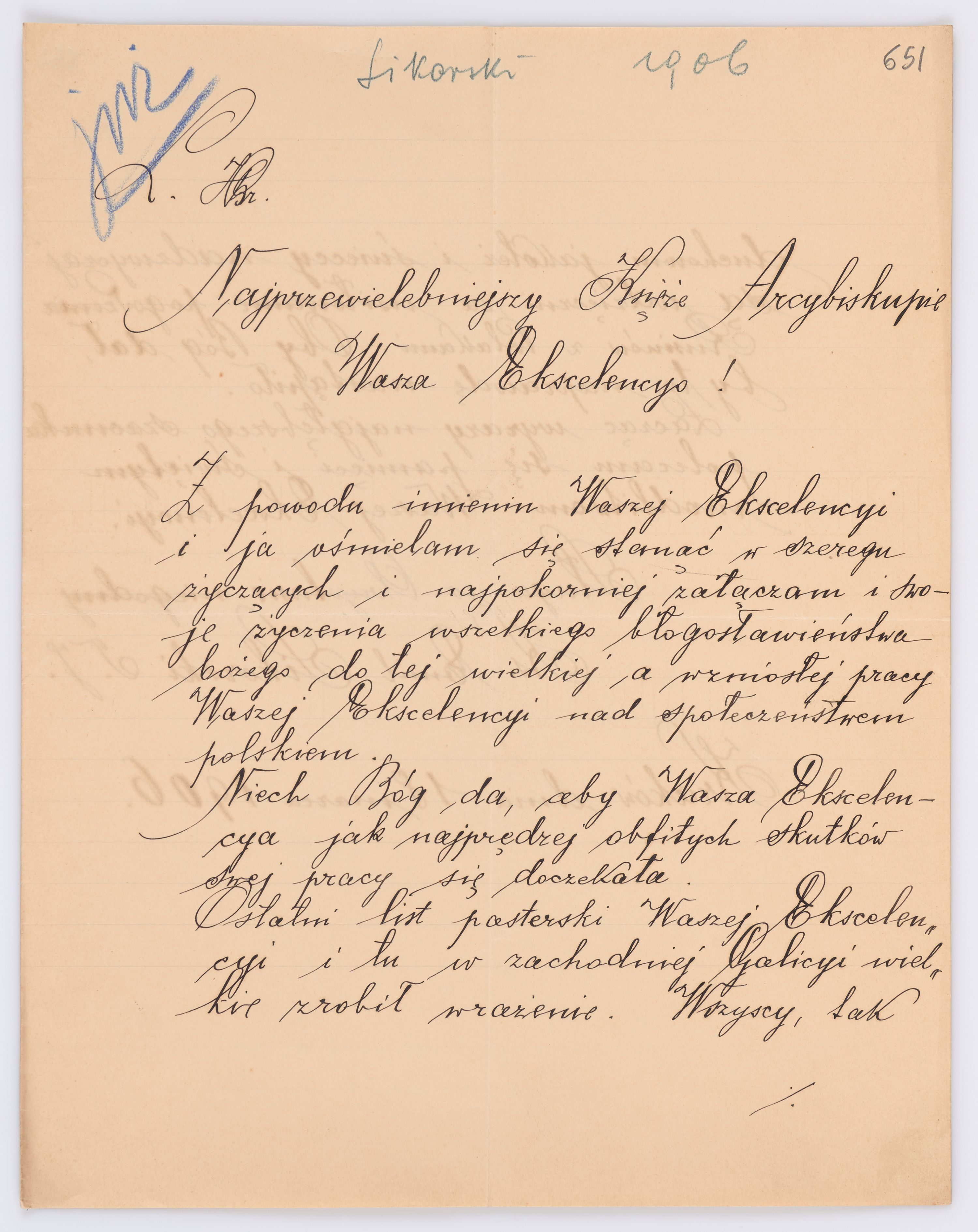 Jednostka zawiera kolekcję 195 listów kierowanych w roku 1906 (01.01.1906-31.12.1906) do arcybiskupa ks. Józefa Bilczewskiego.