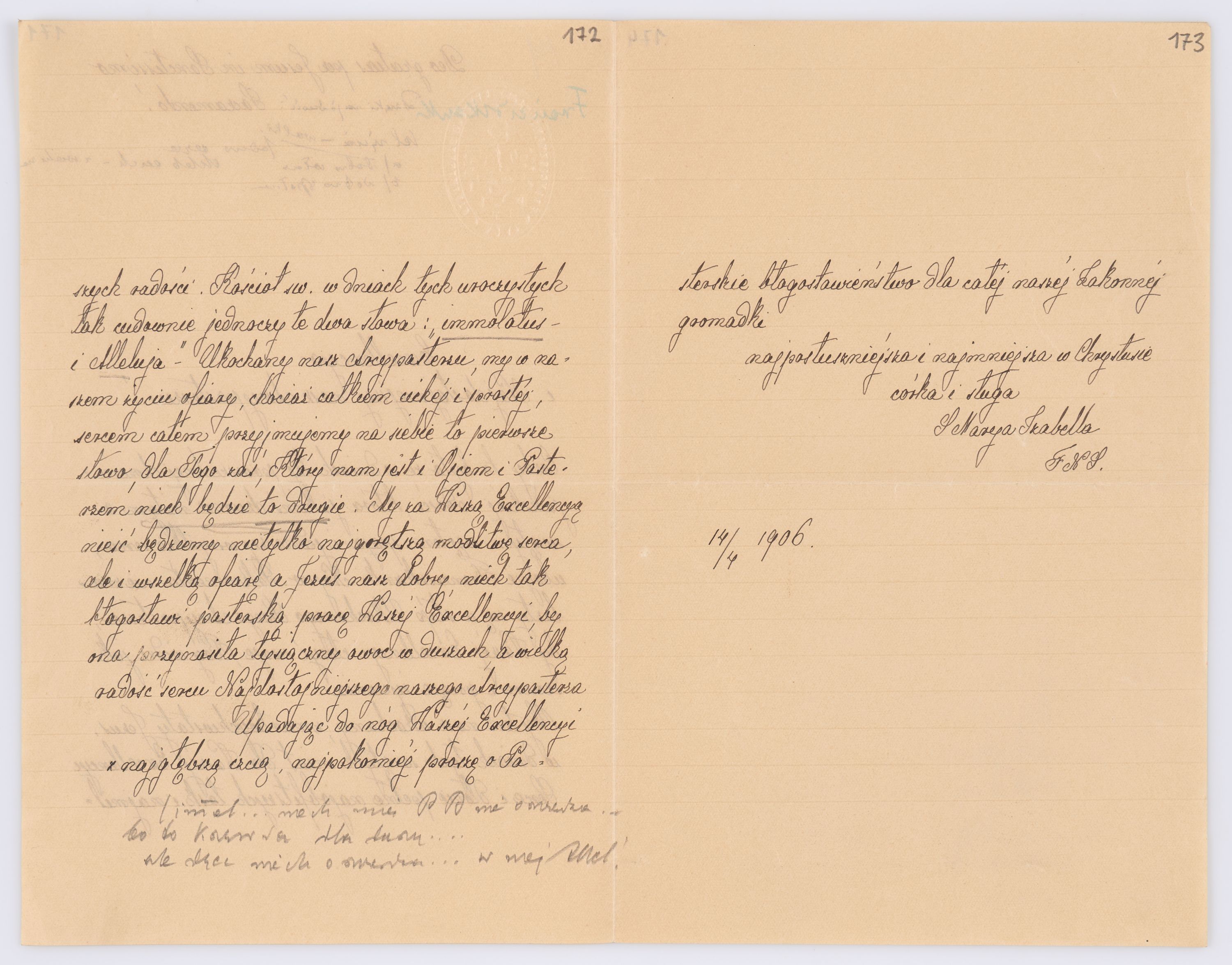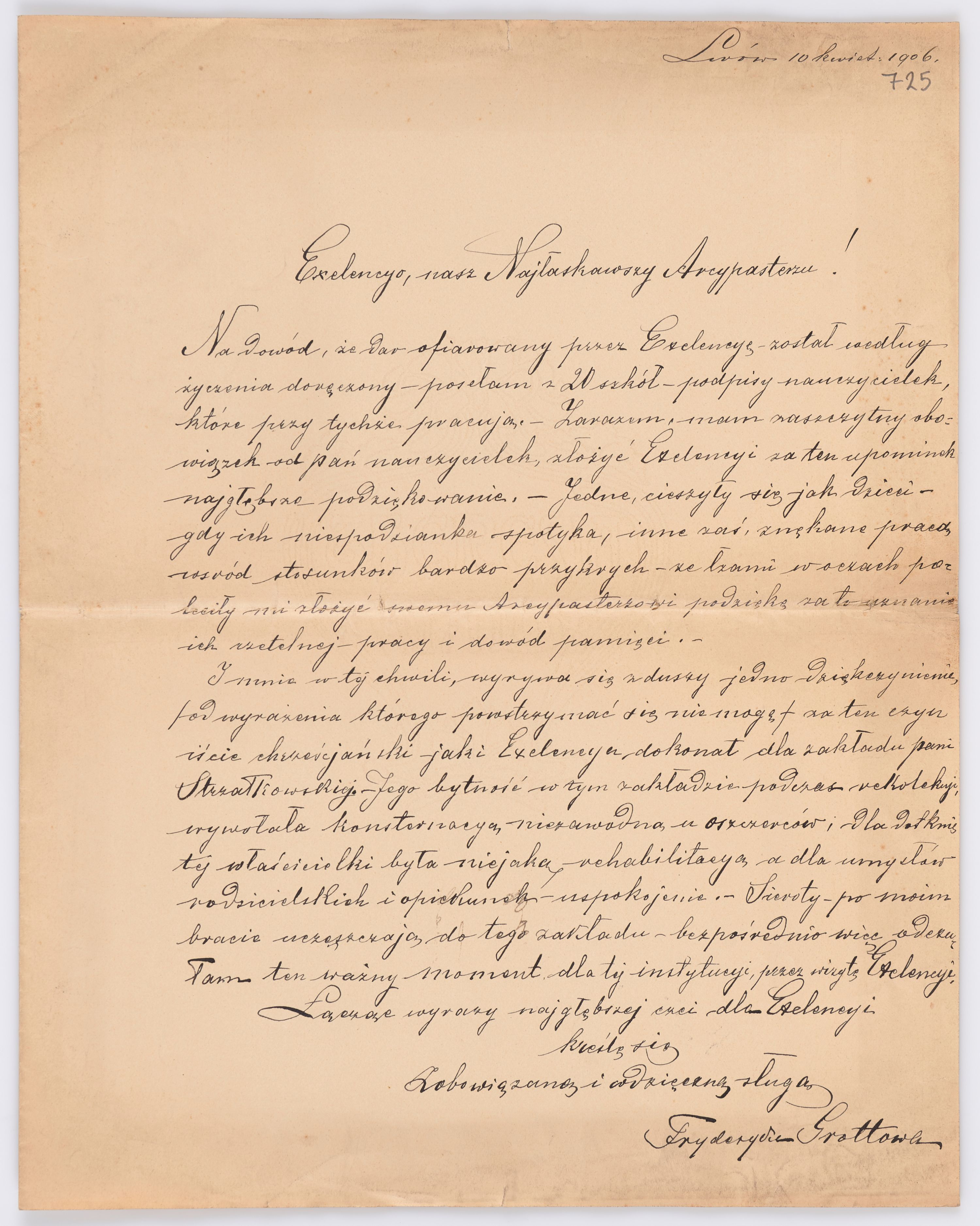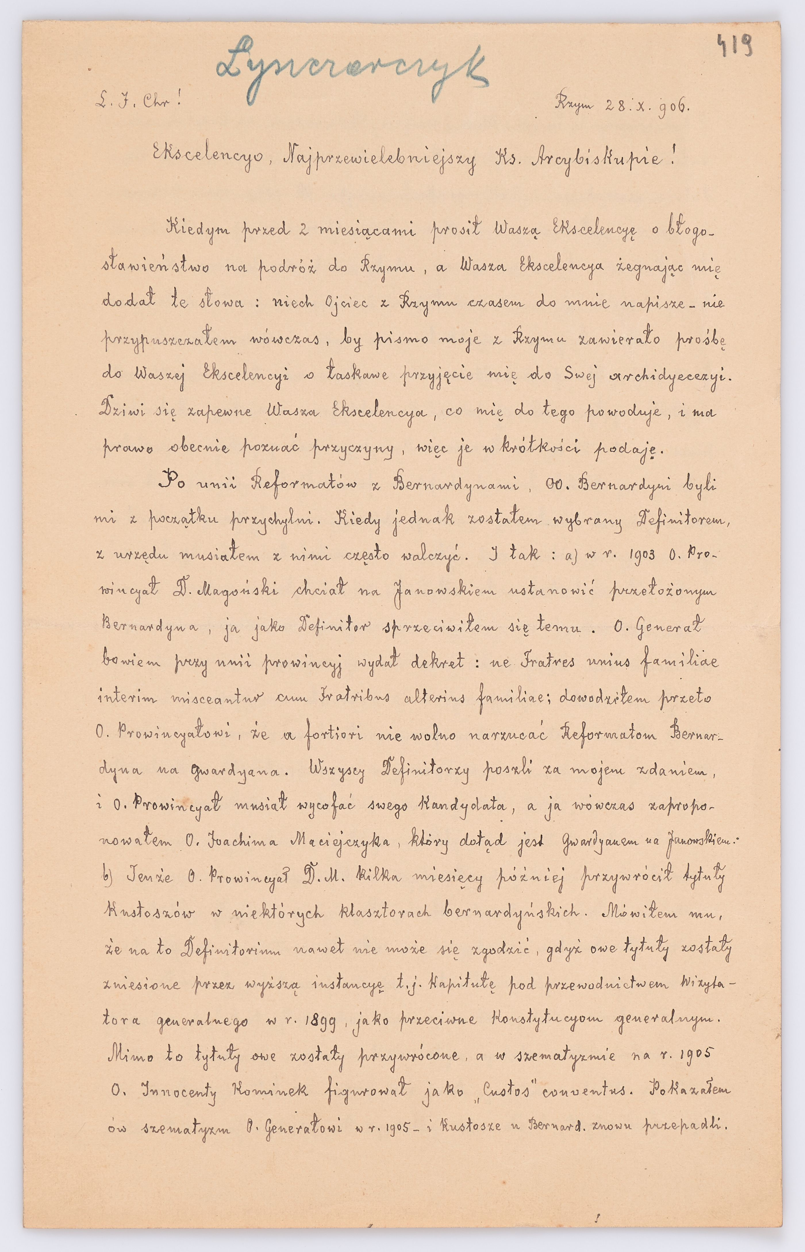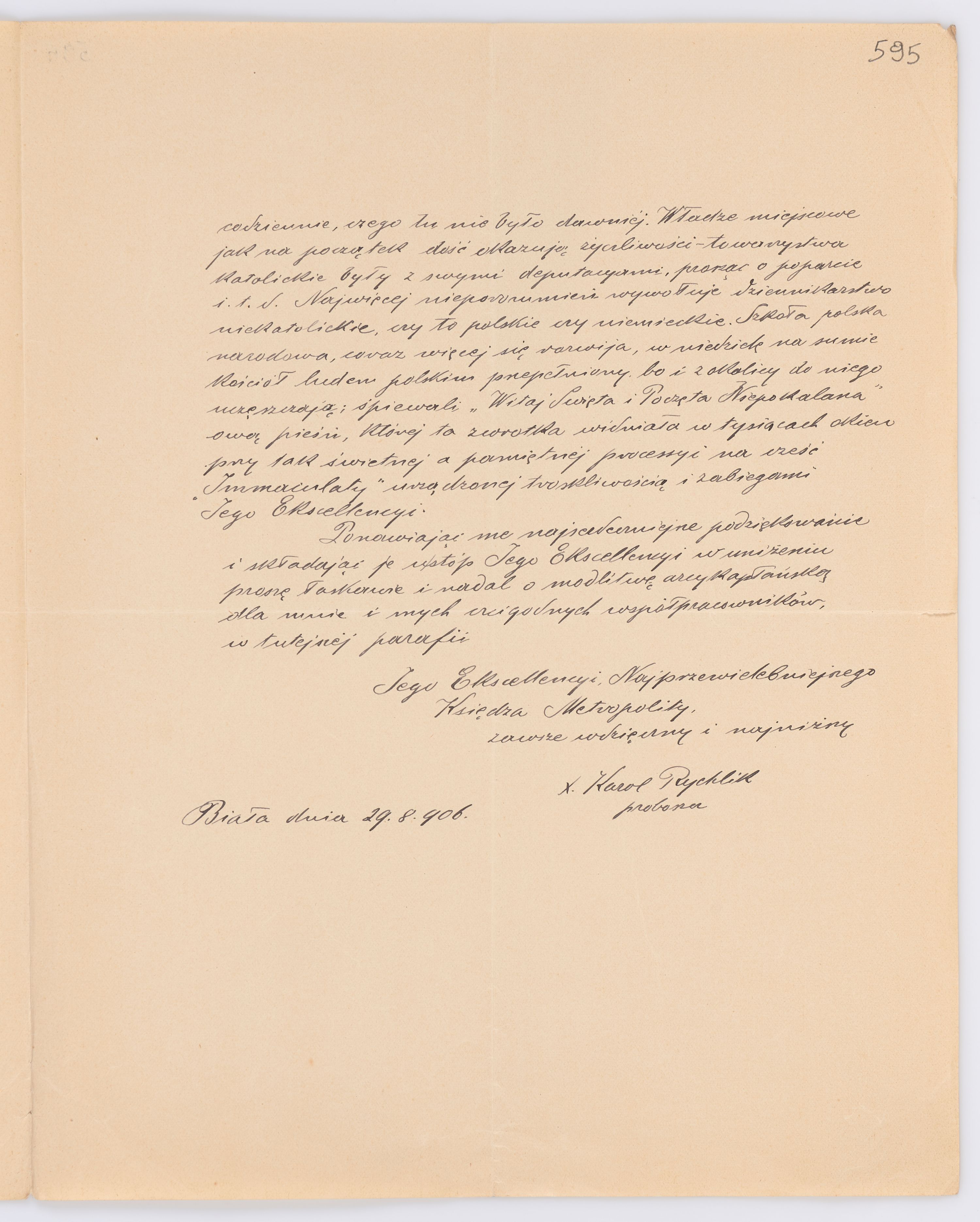 Jednostka zawiera kolekcję 195 listów kierowanych w roku 1906 (01.01.1906-31.12.1906) do arcybiskupa ks. Józefa Bilczewskiego.