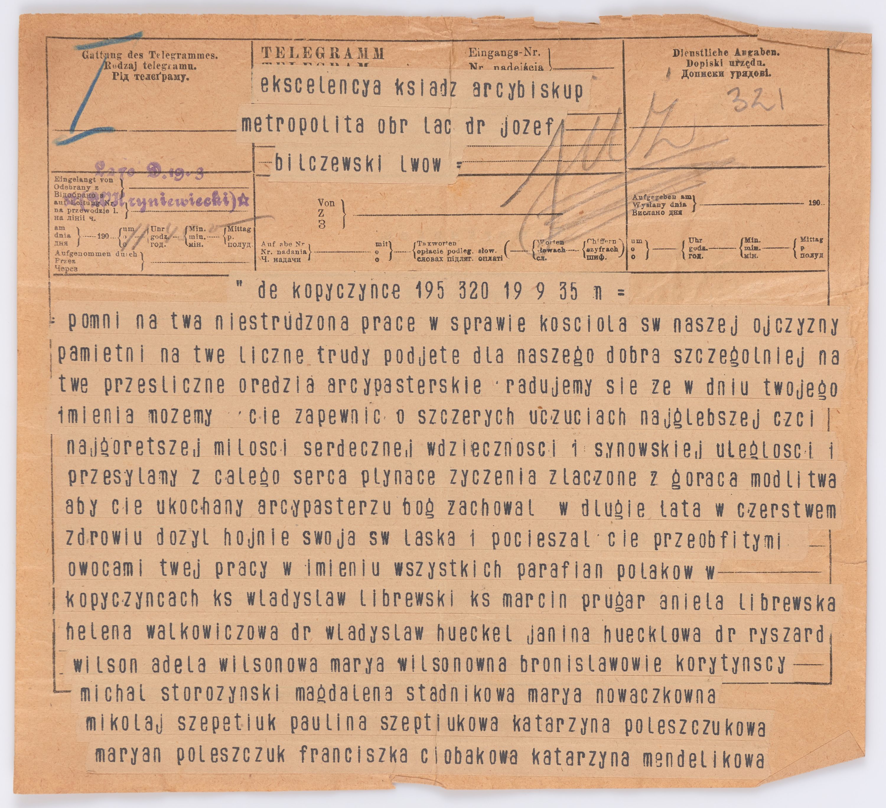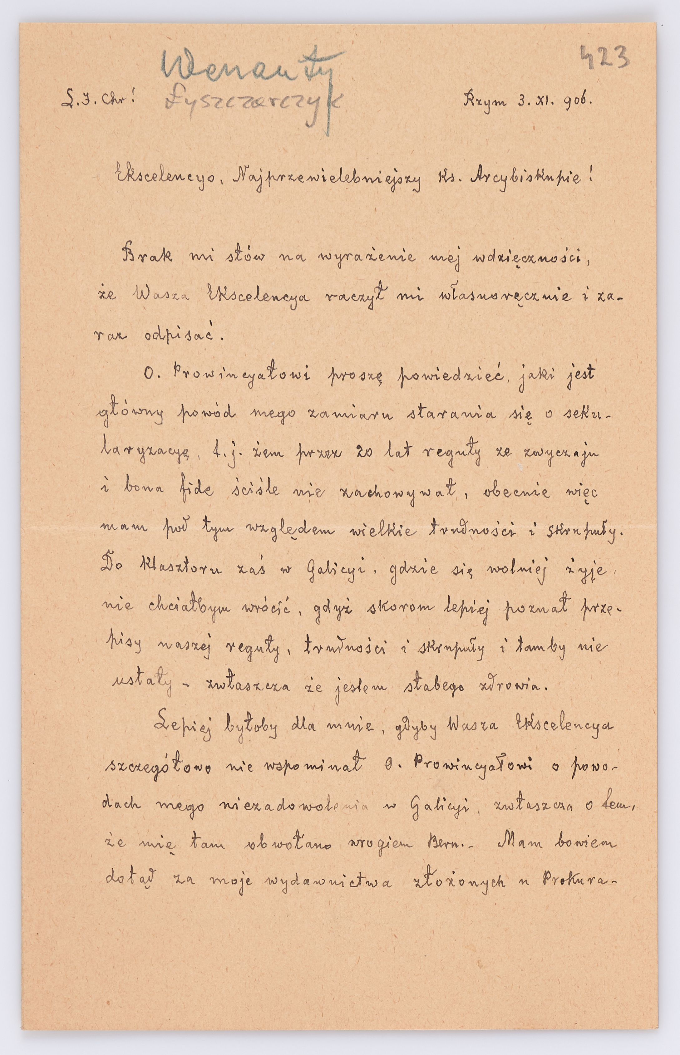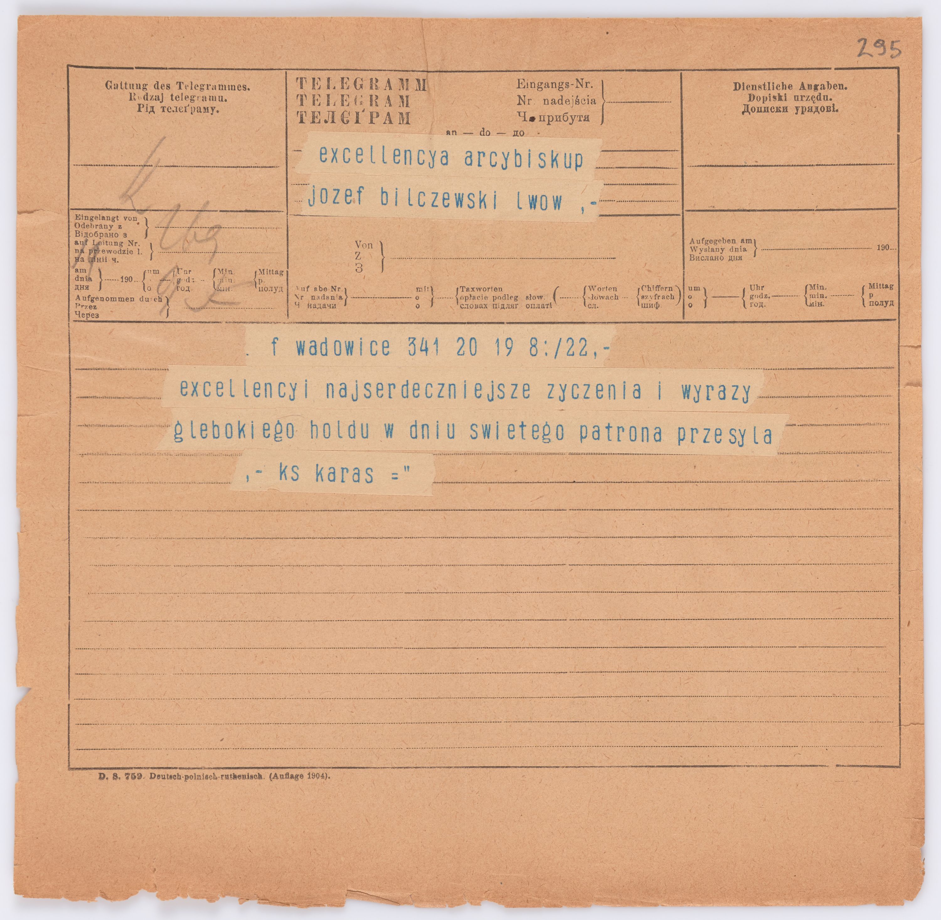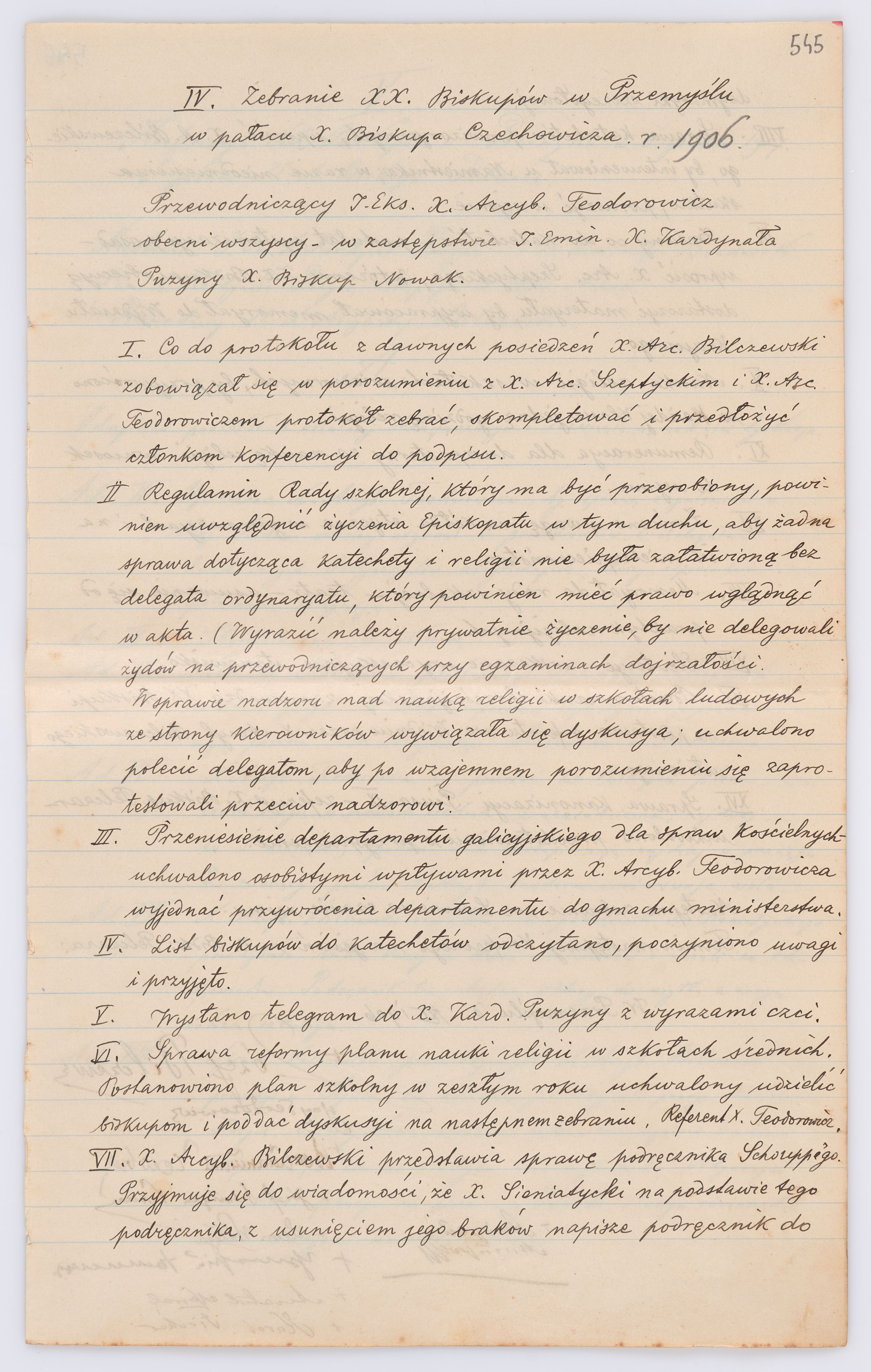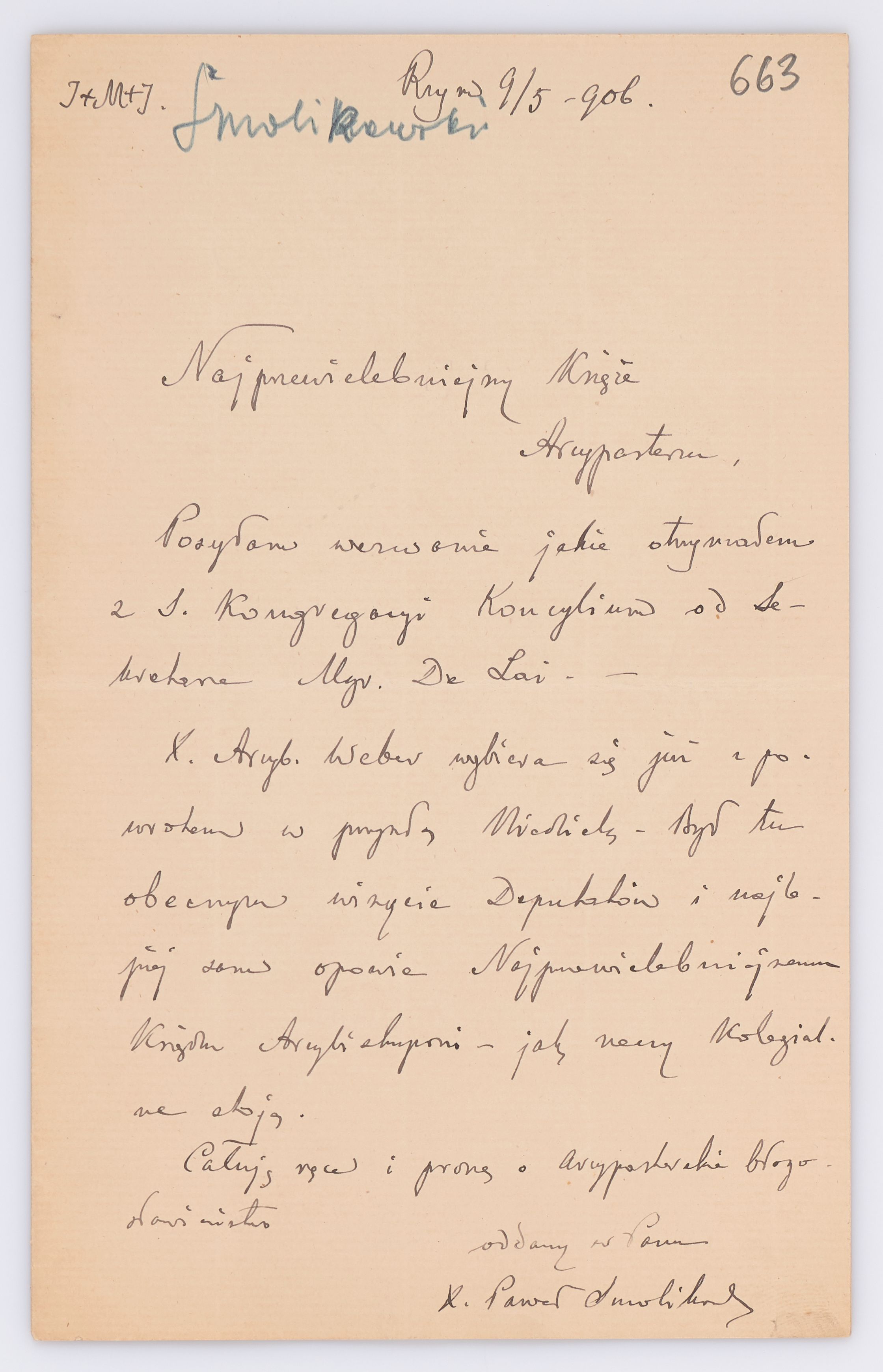 Jednostka zawiera kolekcję 195 listów kierowanych w roku 1906 (01.01.1906-31.12.1906) do arcybiskupa ks. Józefa Bilczewskiego.